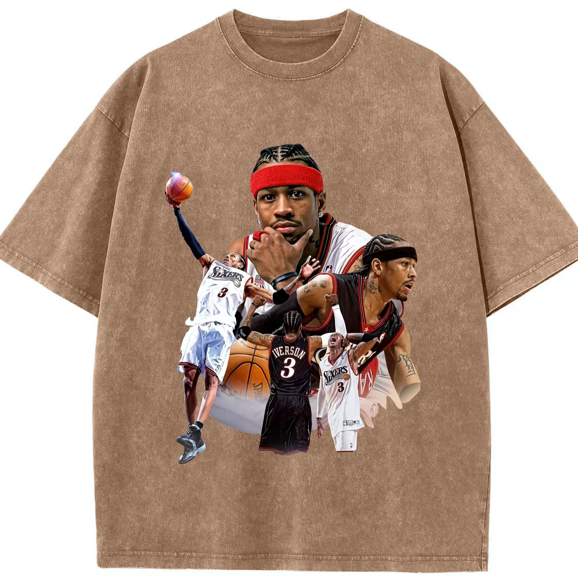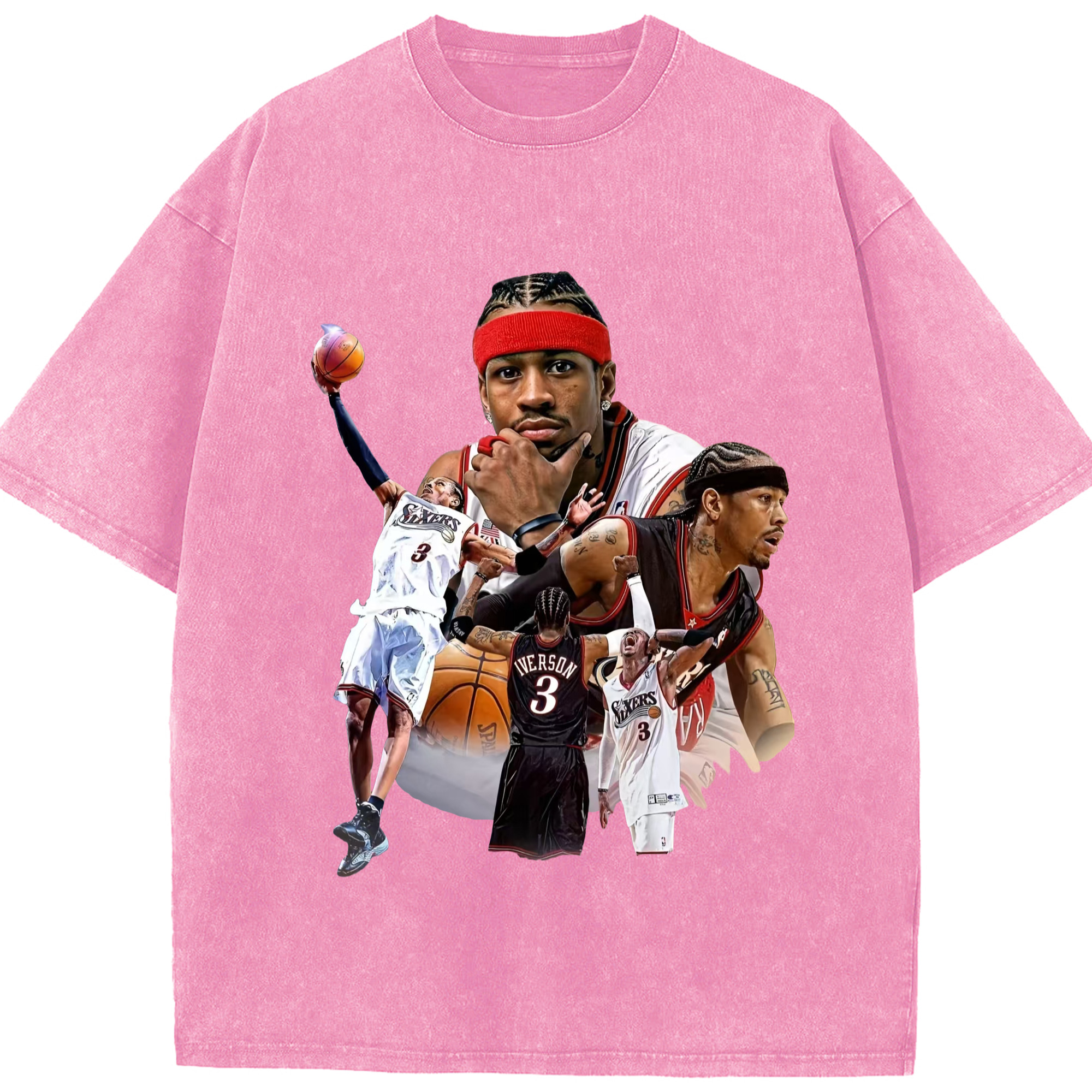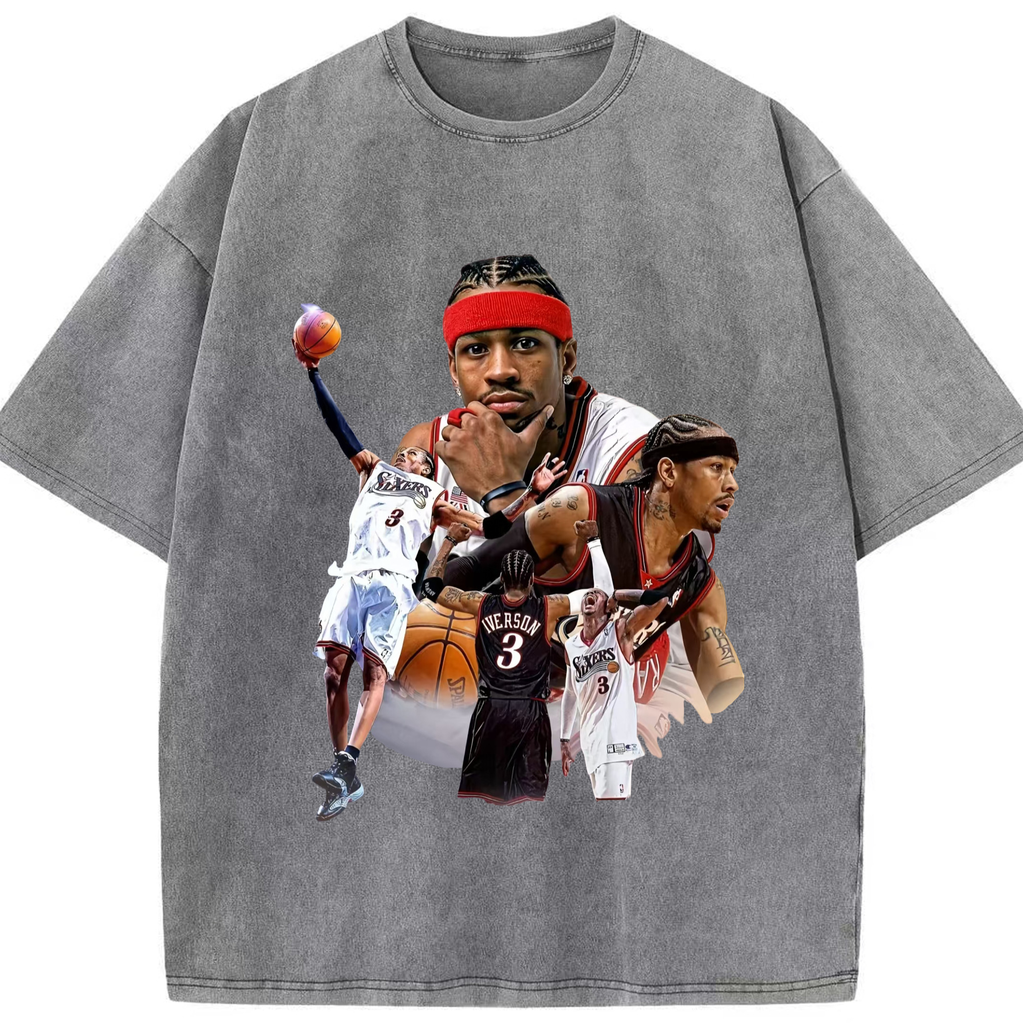 Allen Iverson 76ers #3 celebratory gesture T-shirt - Washed Vintage Look 230g Cotton Oversized T-Shirt With Front Heat Transfer Print – Soft, Lightweight, Stylish Fit – Comfortable Casual Wear For Sports & Everyday Use