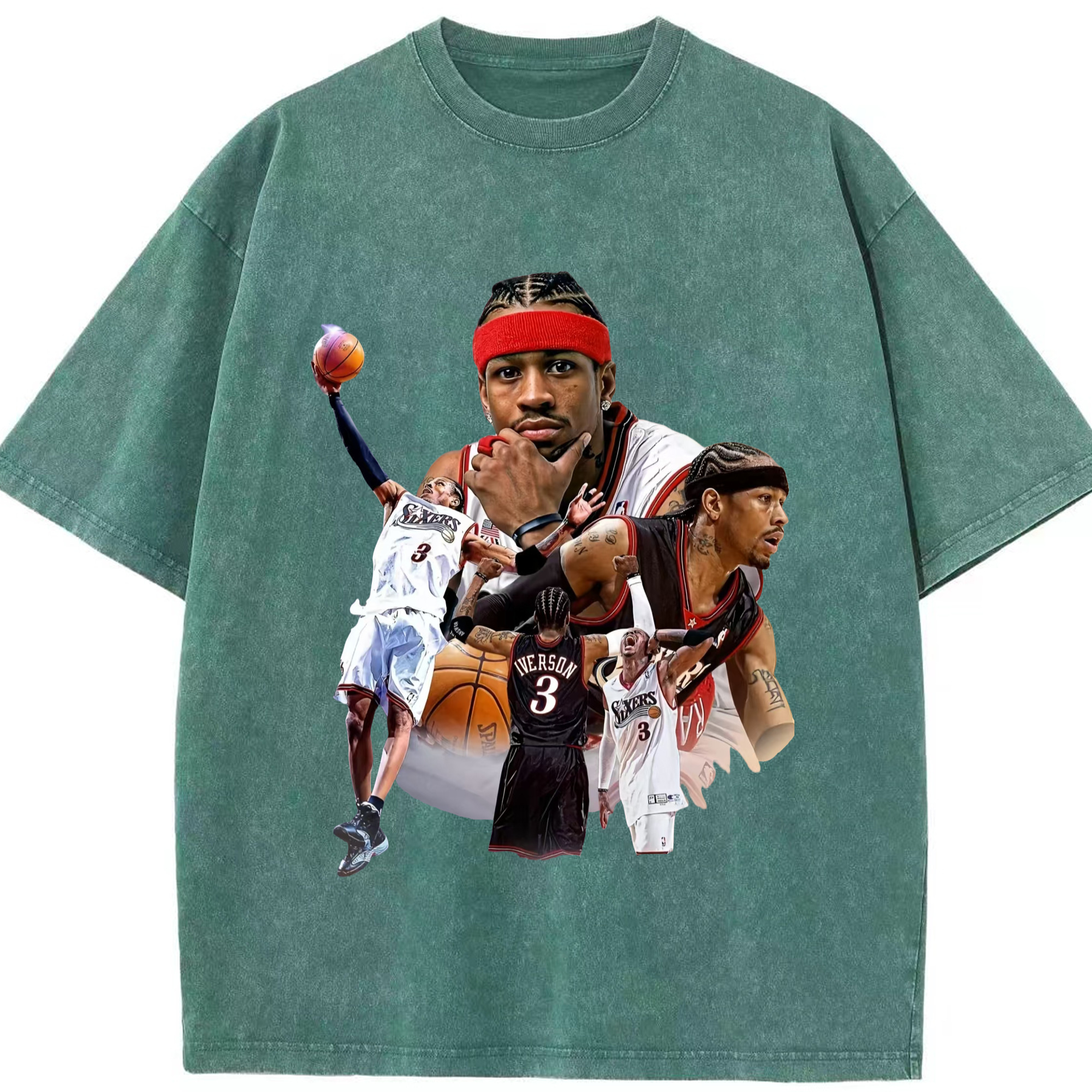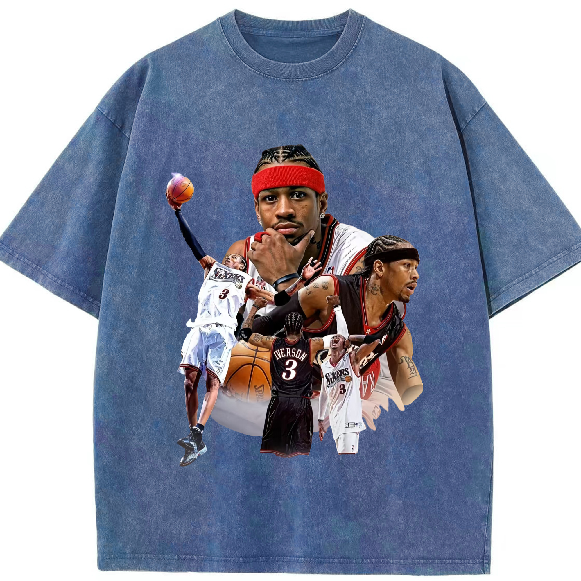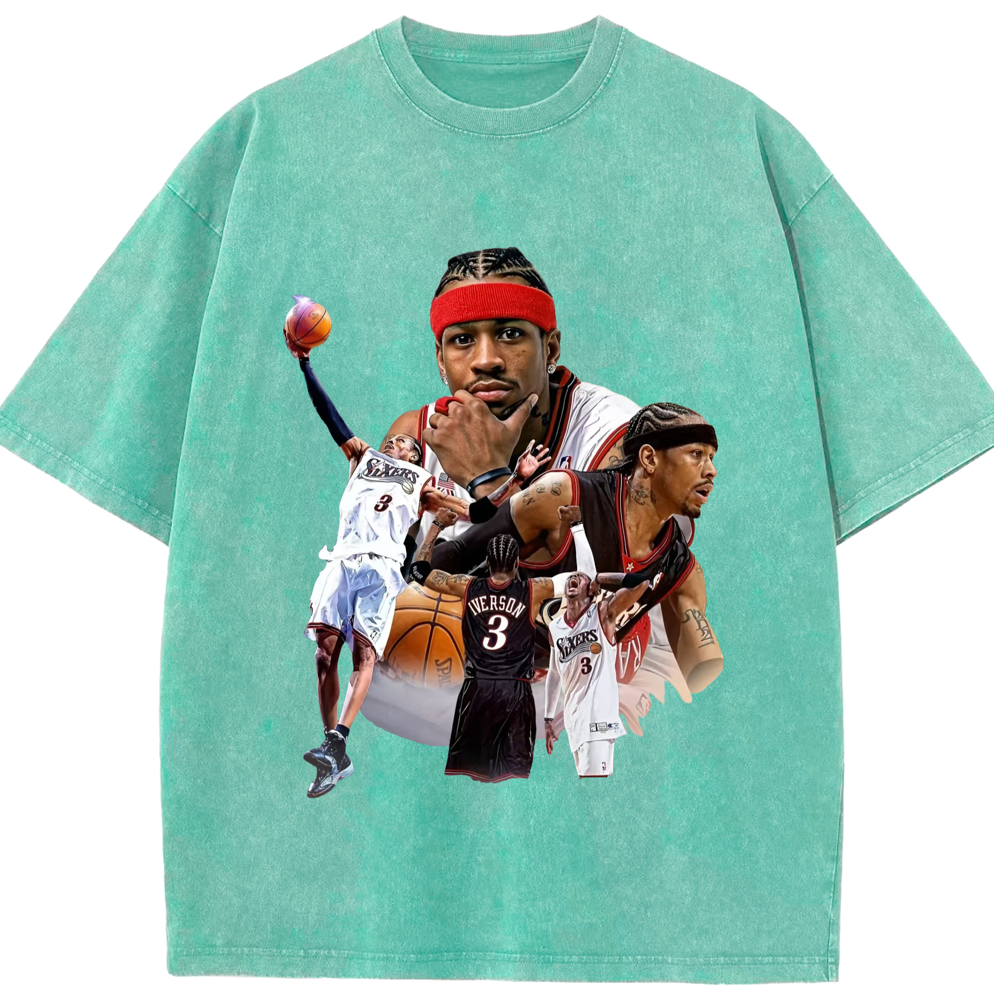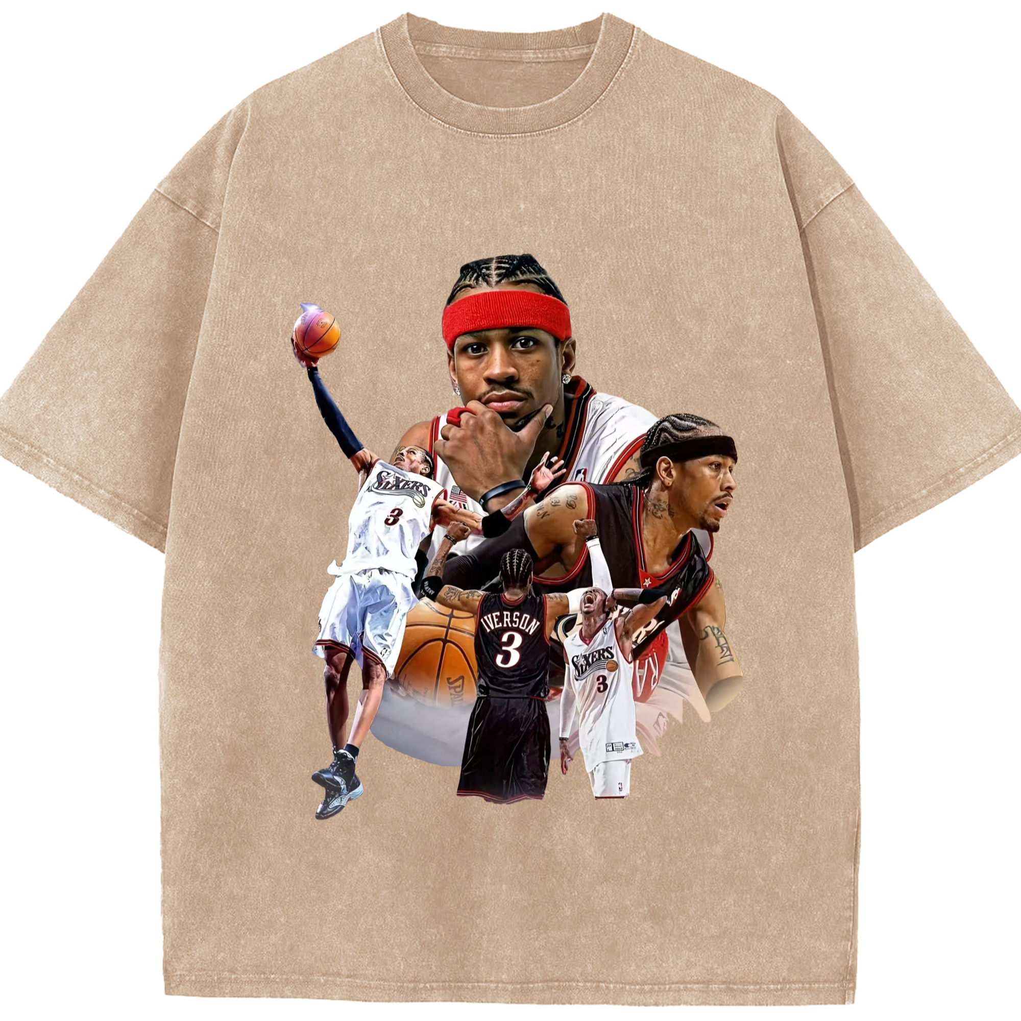Allen Iverson 76ers #3 celebratory gesture T-shirt - Washed Vintage Look 230g Cotton Oversized T-Shirt With Front Heat Transfer Print – Soft, Lightweight, Stylish Fit – Comfortable Casual Wear For Sports & Everyday Use