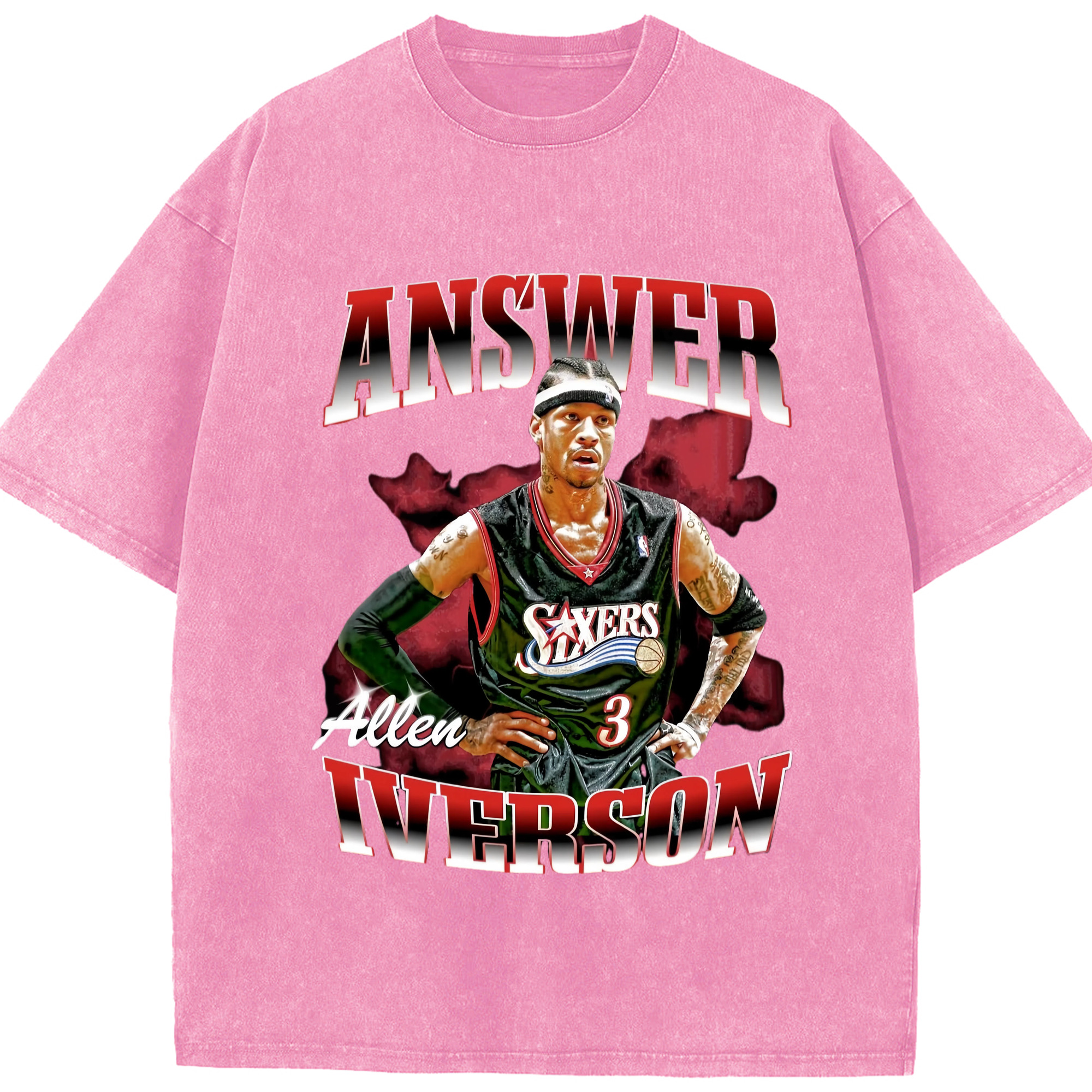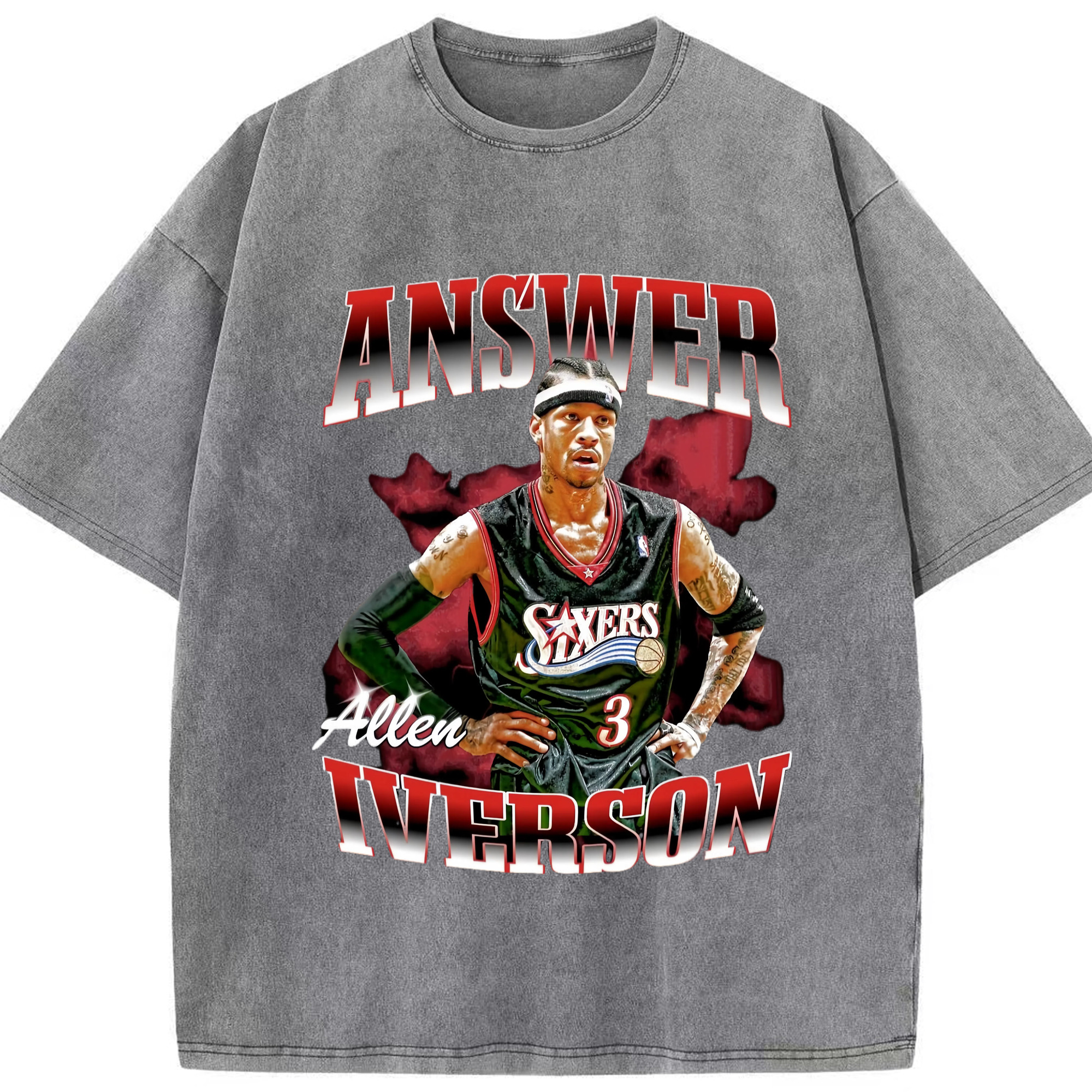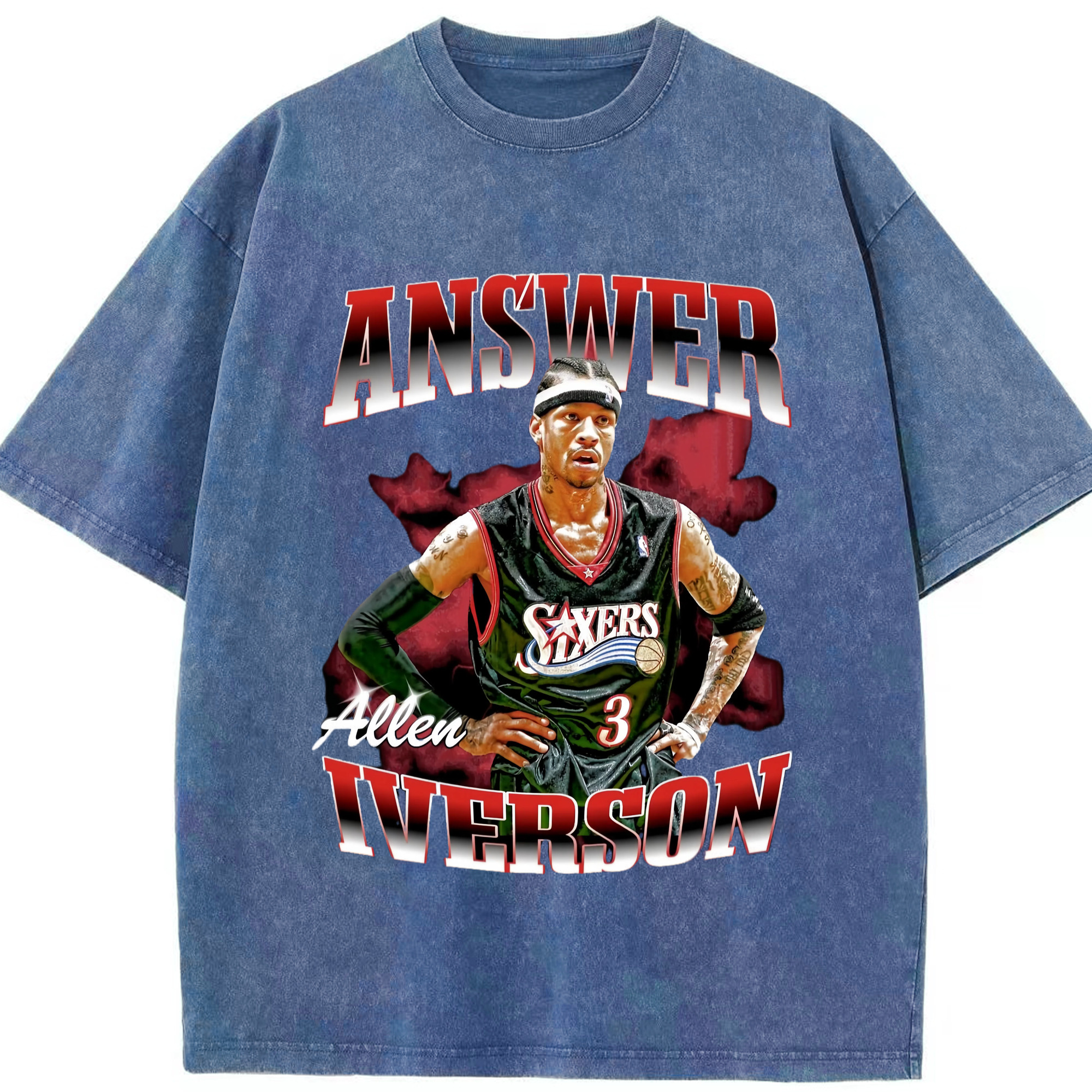 Allen Iverson 76ers #3 T-shirt - Washed Vintage Look 230g Cotton Oversized T-Shirt With Front Heat Transfer Print – Soft, Lightweight, Stylish Fit – Comfortable Casual Wear For Sports & Everyday Use