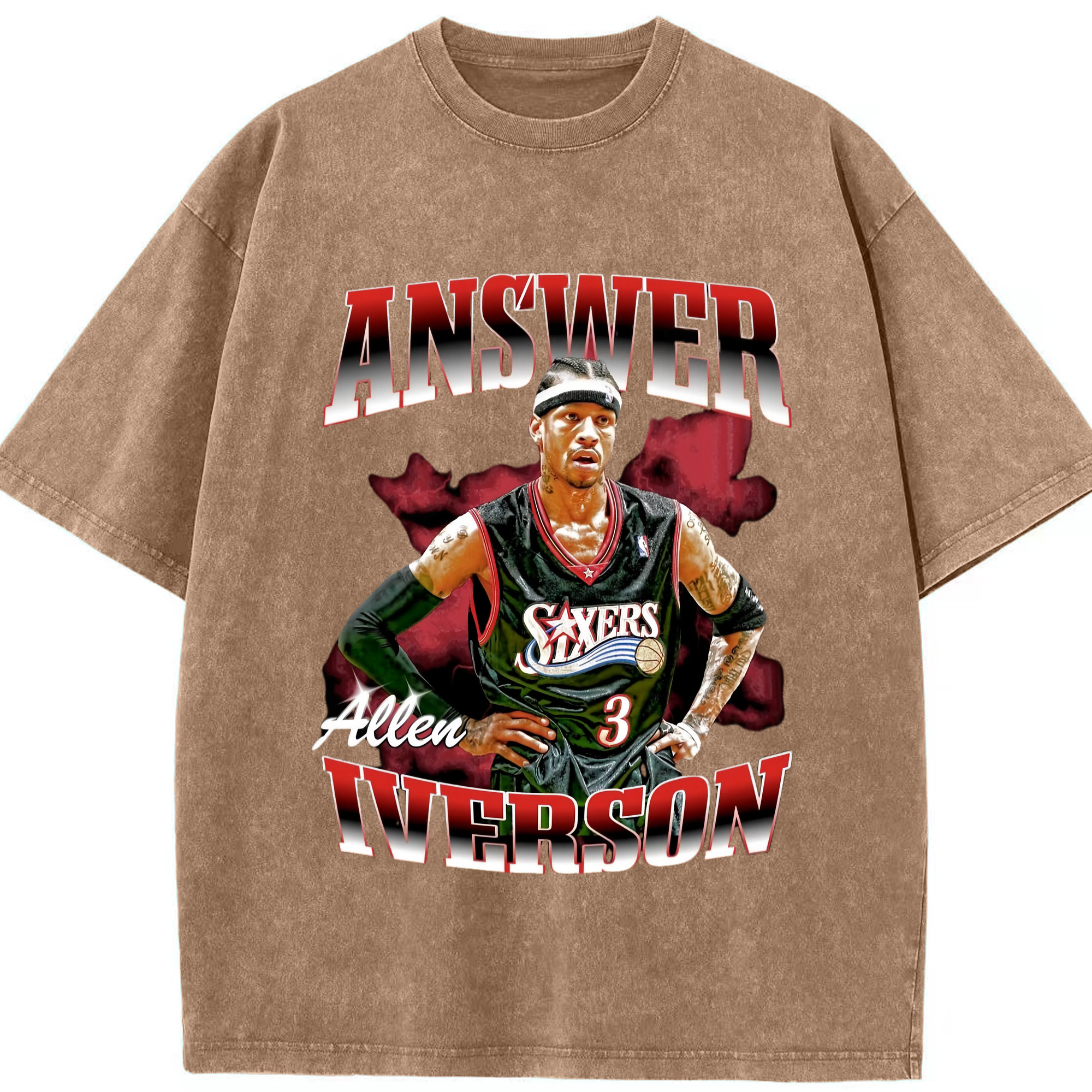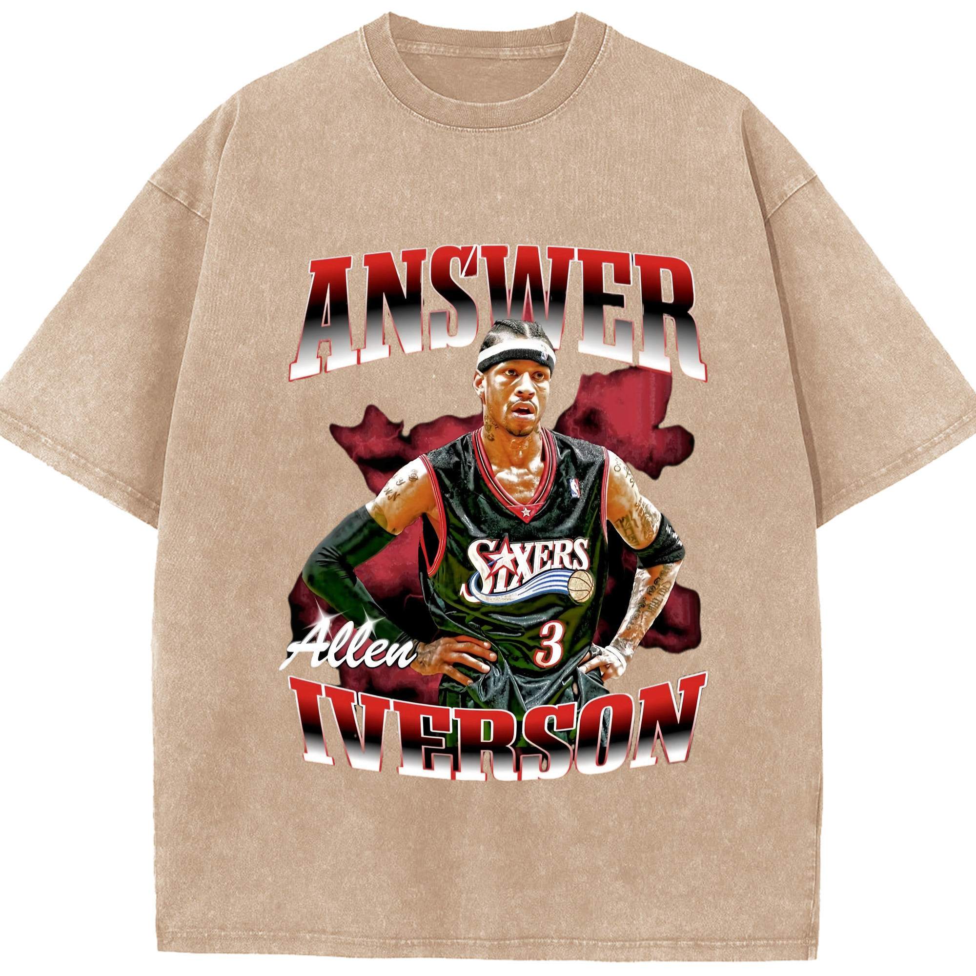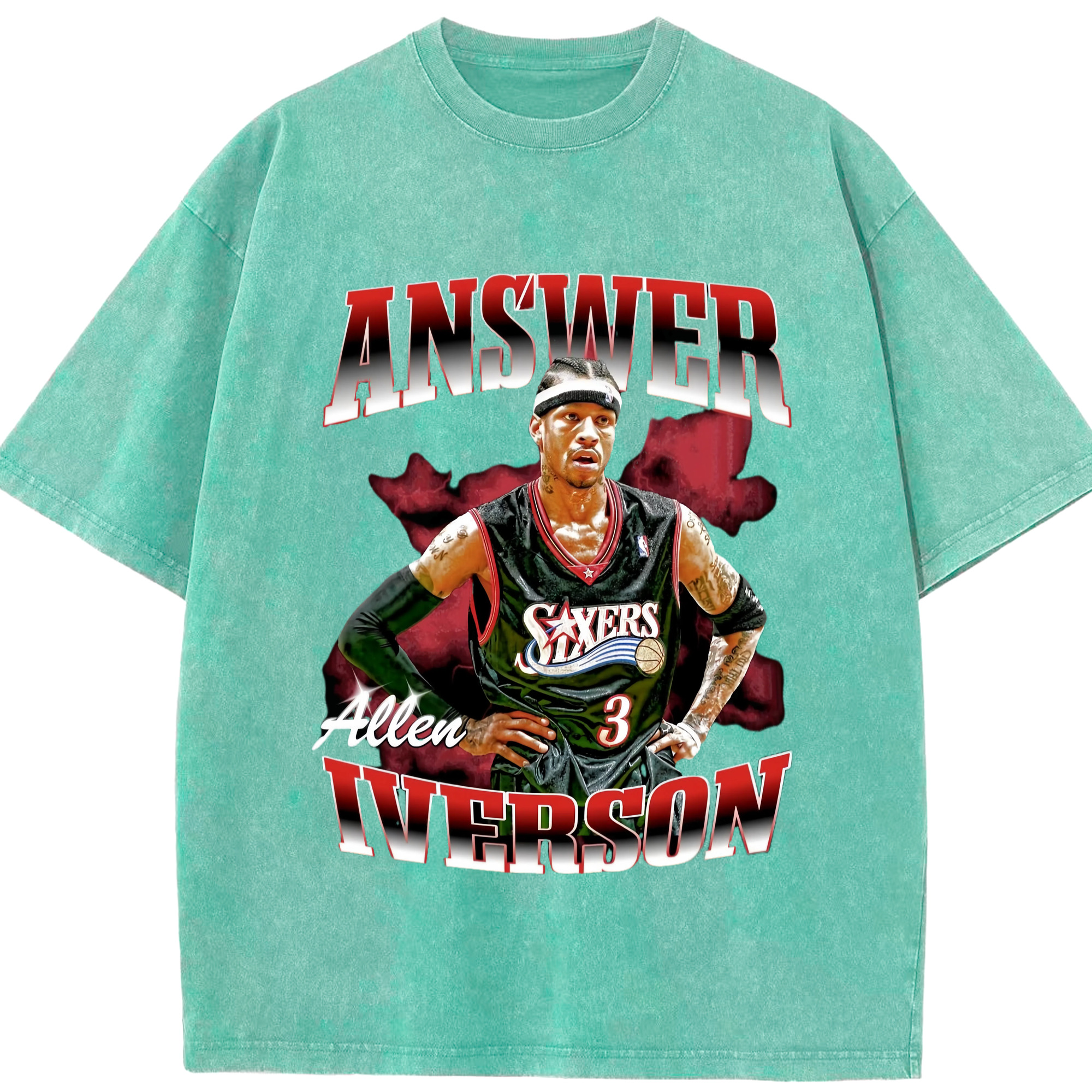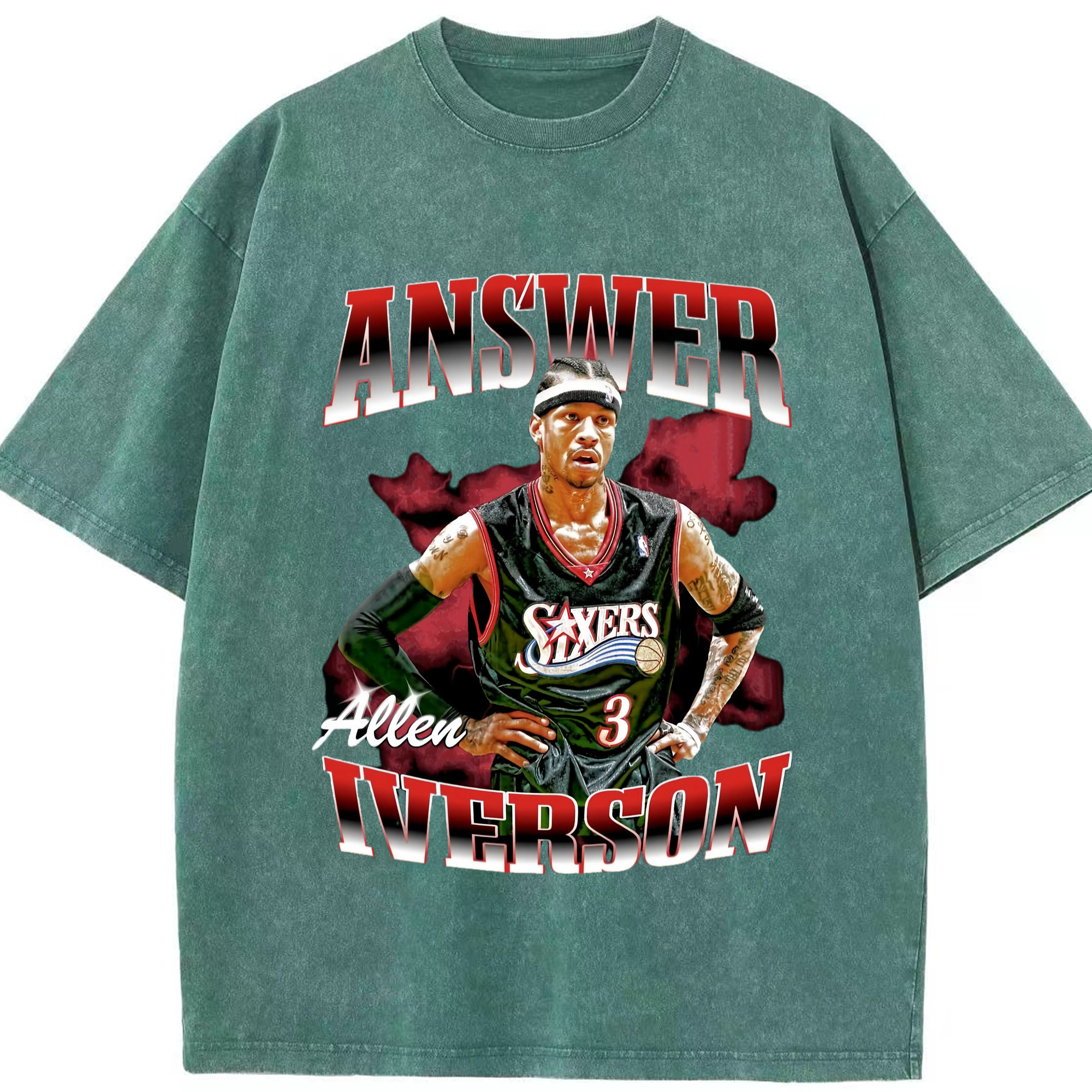 Allen Iverson 76ers #3 T-shirt - Washed Vintage Look 230g Cotton Oversized T-Shirt With Front Heat Transfer Print – Soft, Lightweight, Stylish Fit – Comfortable Casual Wear For Sports & Everyday Use