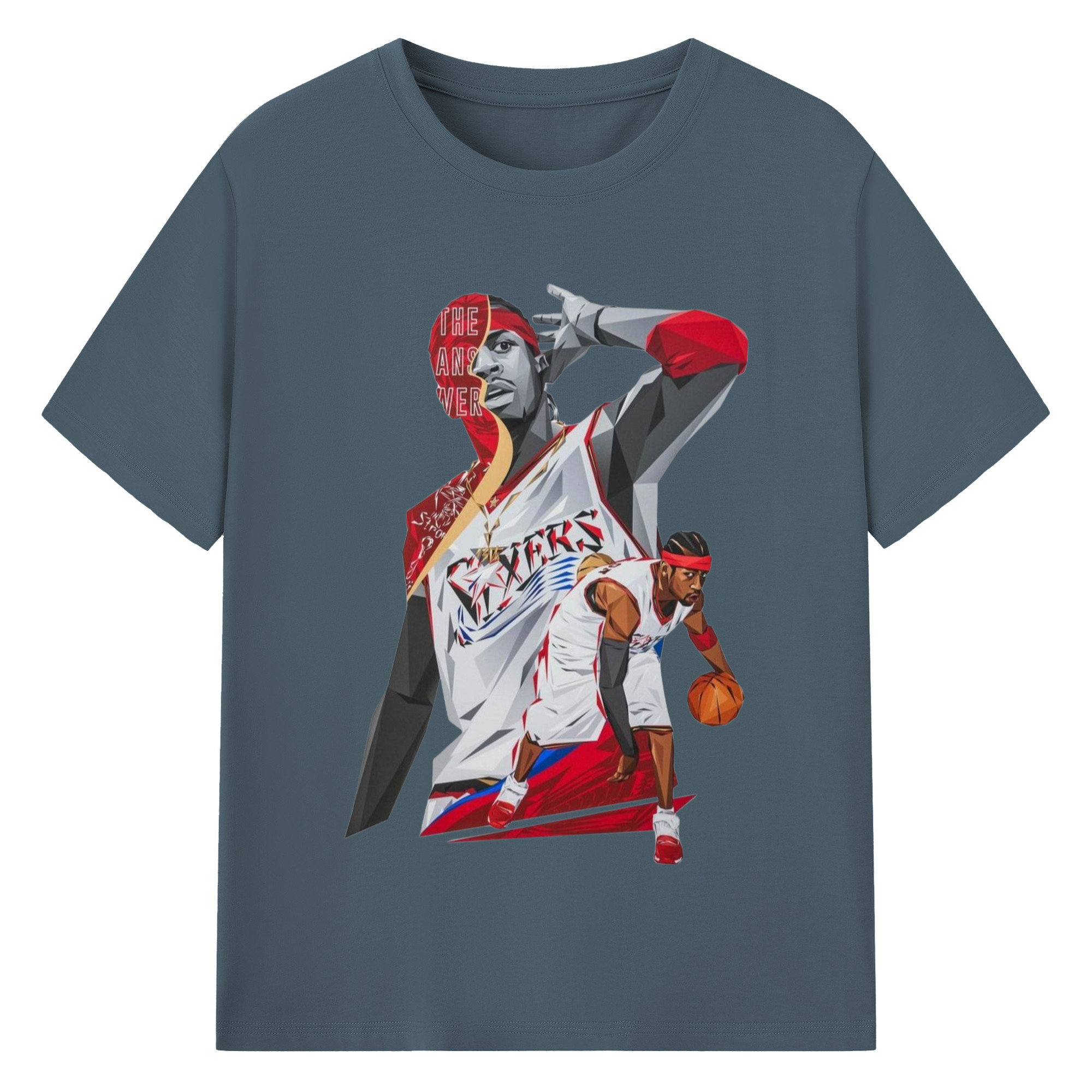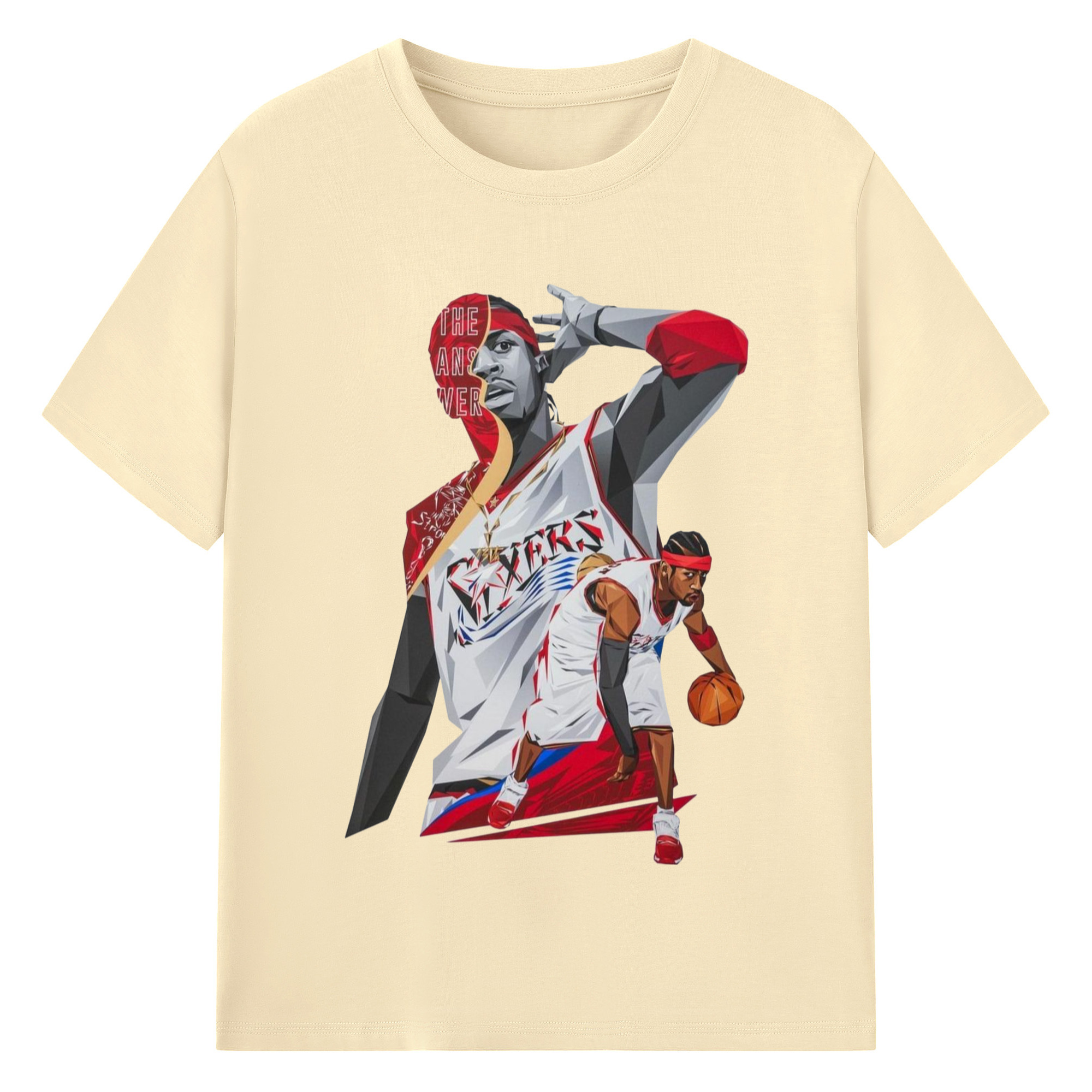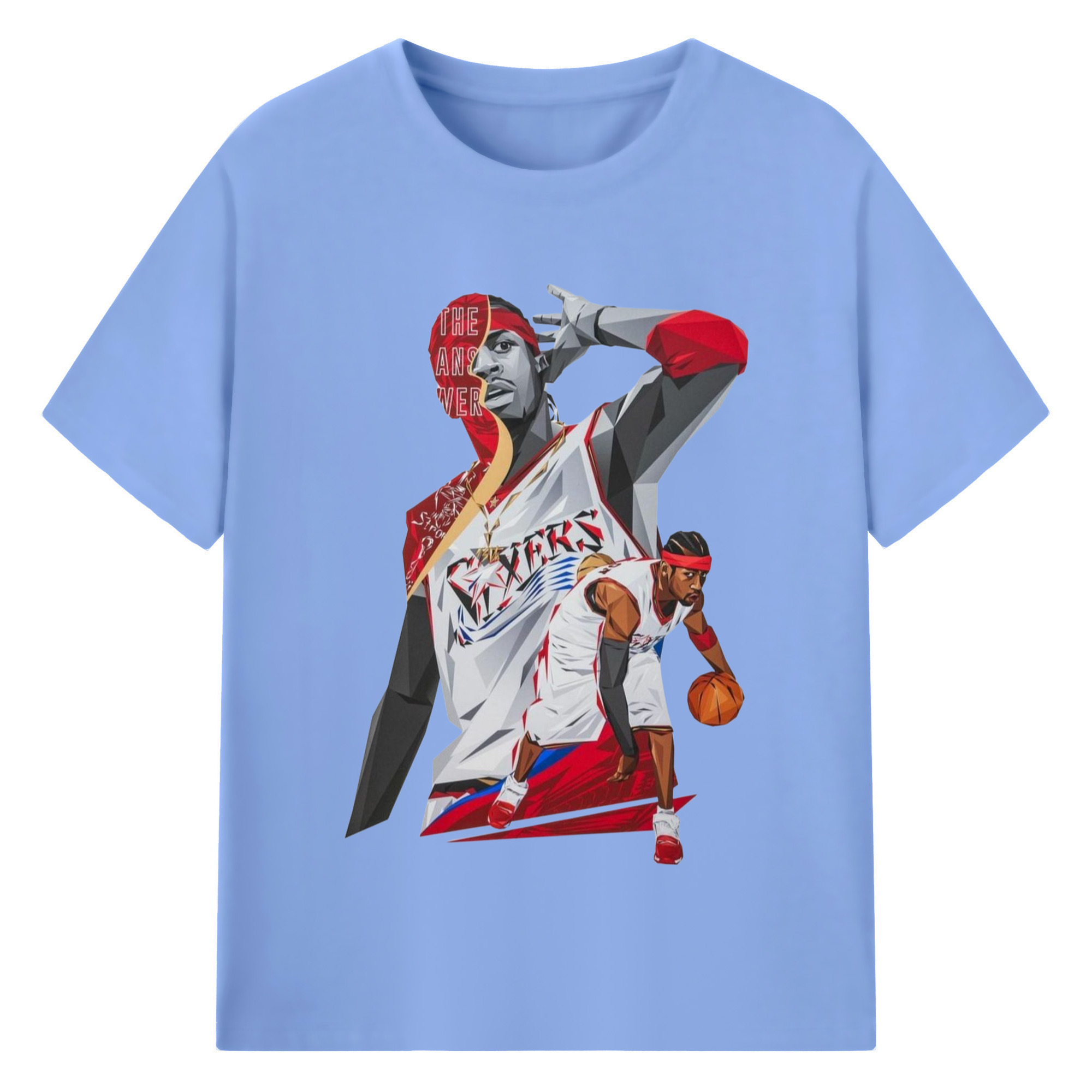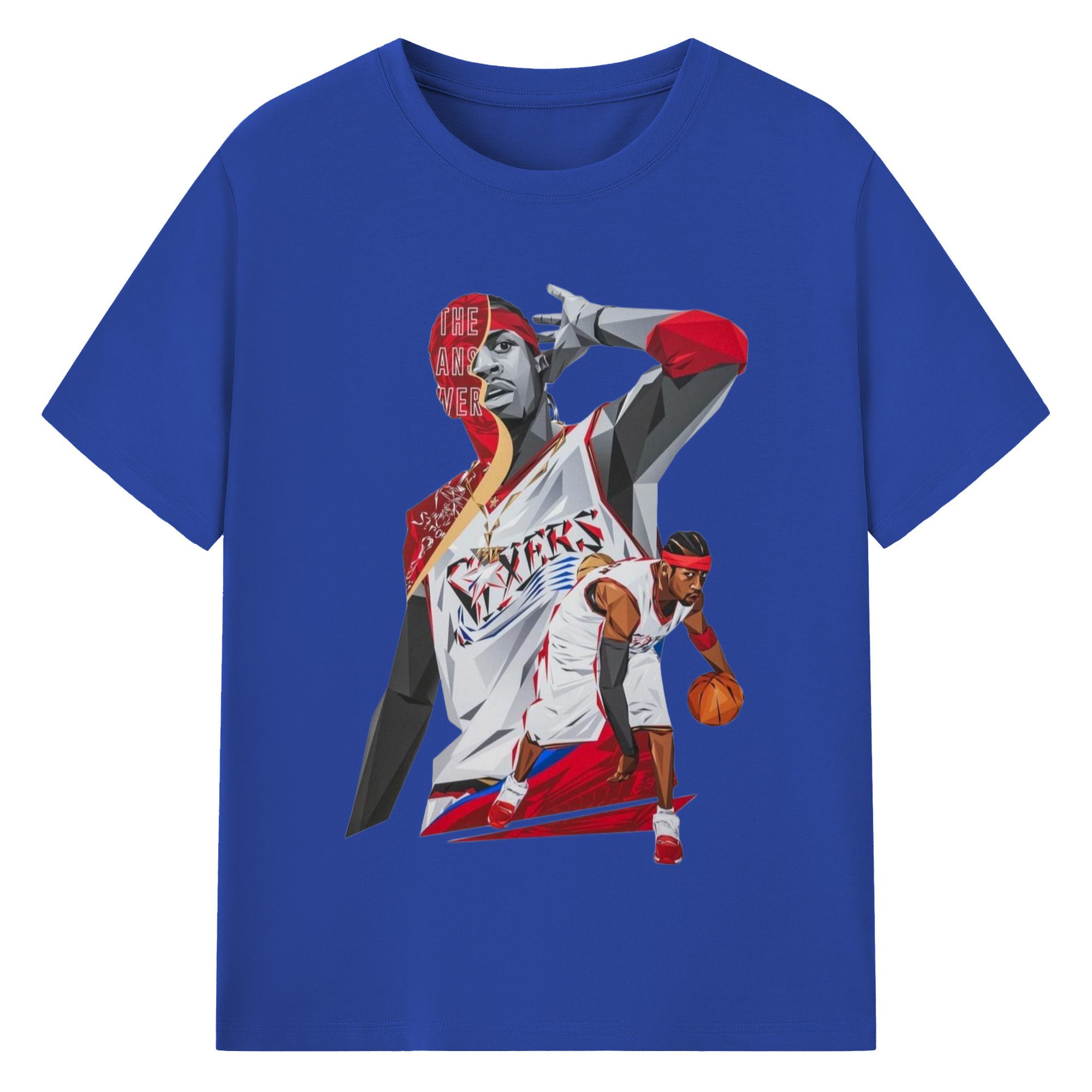 Allen Iverson 76ers cartoon The Answer Art T-shirt - 180g Cotton T-Shirt With Front Heat Transfer Print – Soft, Lightweight, Fitted Design – Comfortable Casual Wear For Sports & Everyday Use