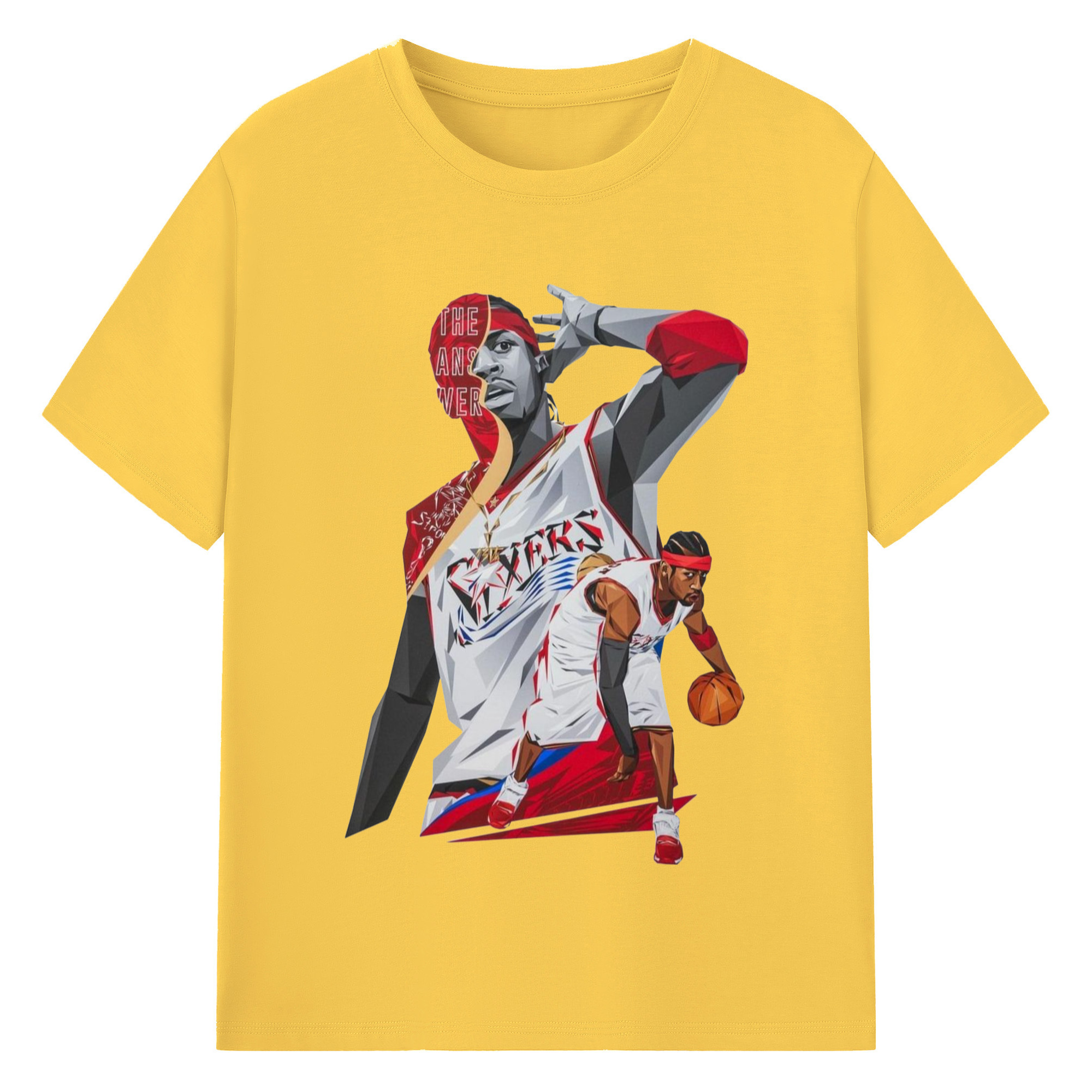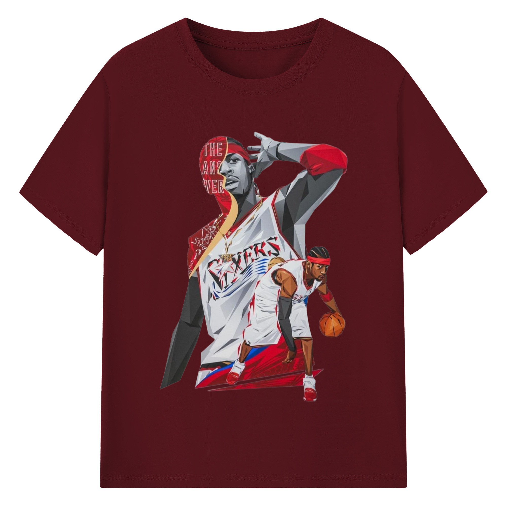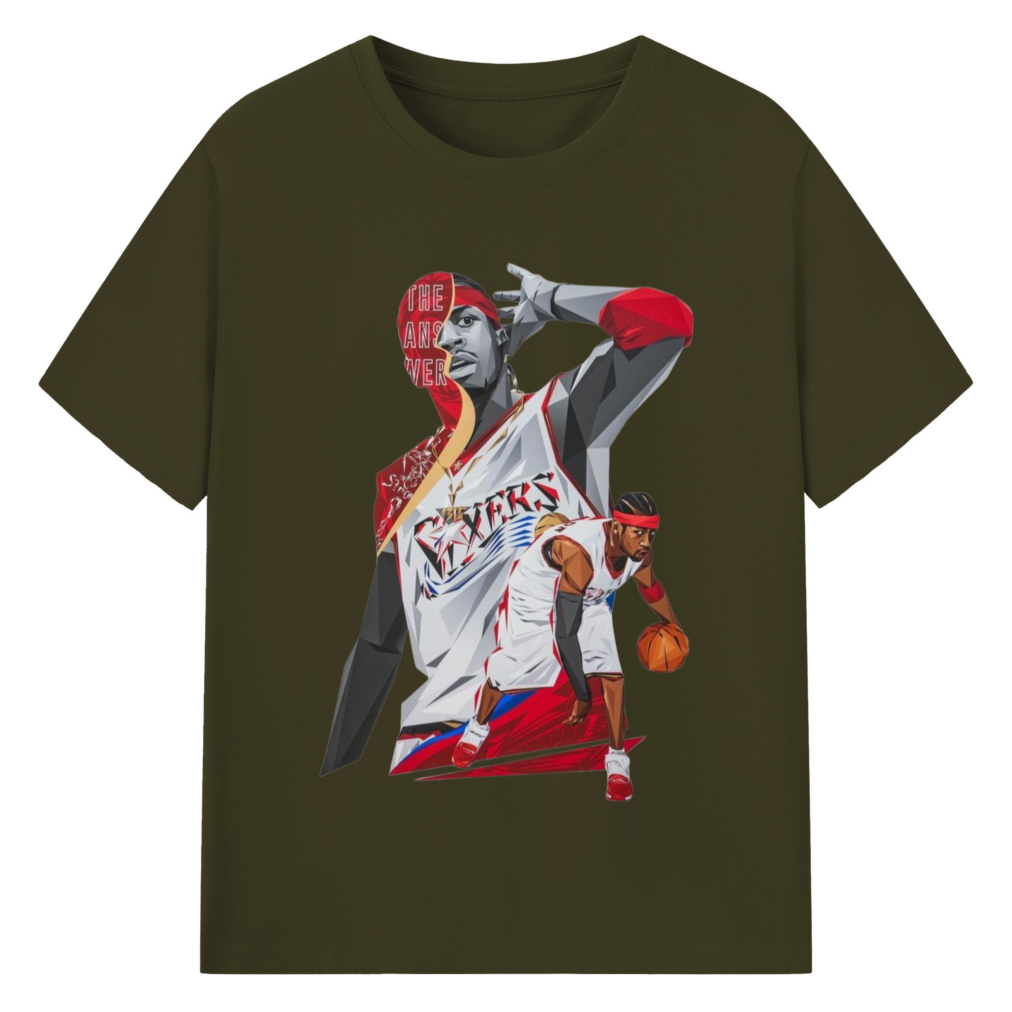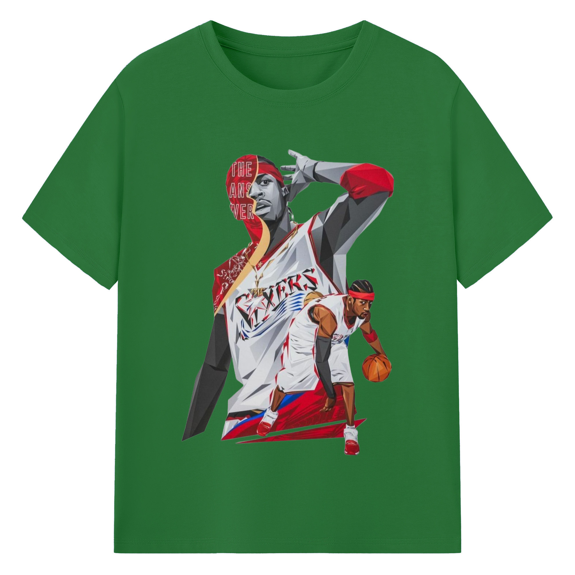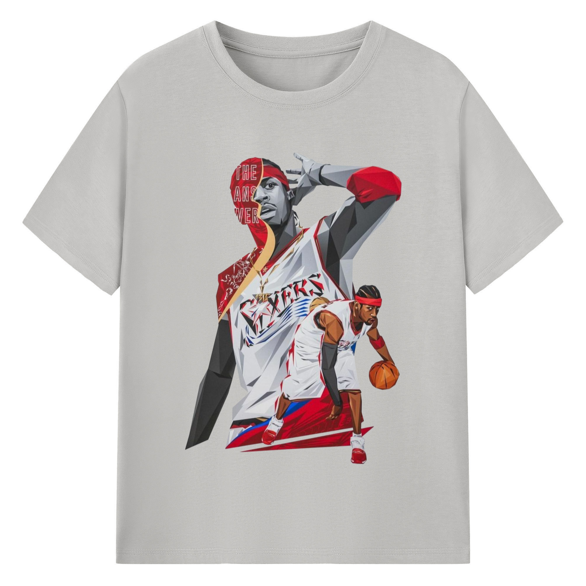 Allen Iverson 76ers cartoon The Answer Art T-shirt - 180g Cotton T-Shirt With Front Heat Transfer Print – Soft, Lightweight, Fitted Design – Comfortable Casual Wear For Sports & Everyday Use