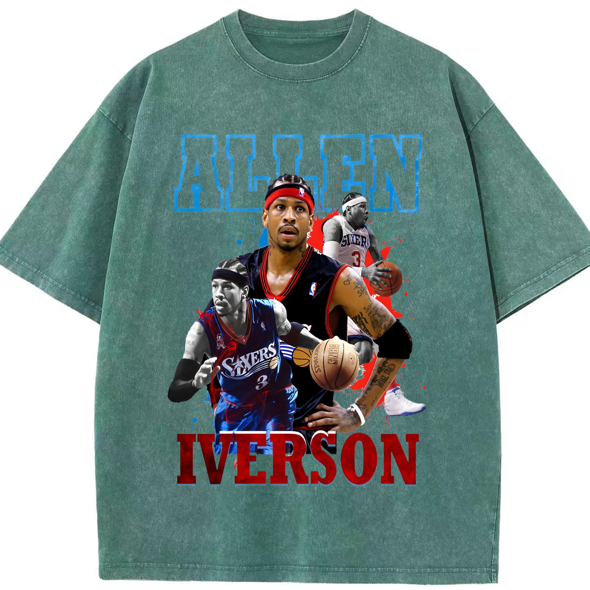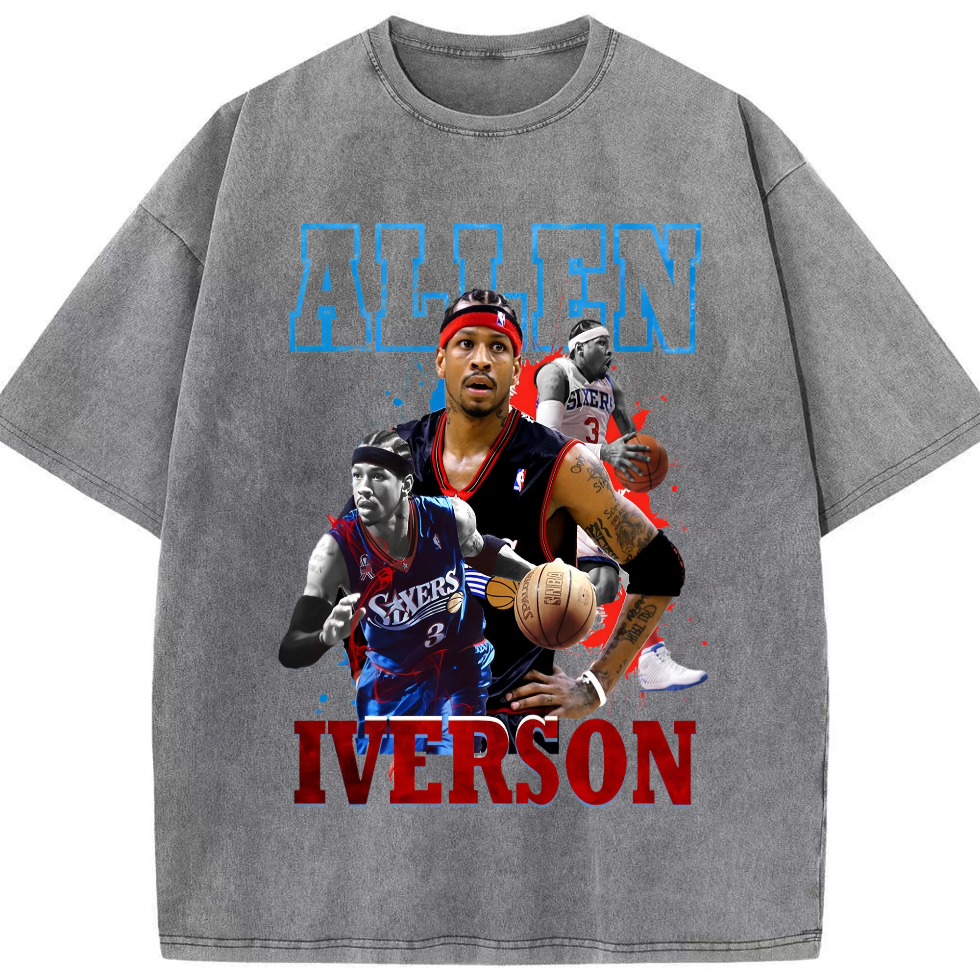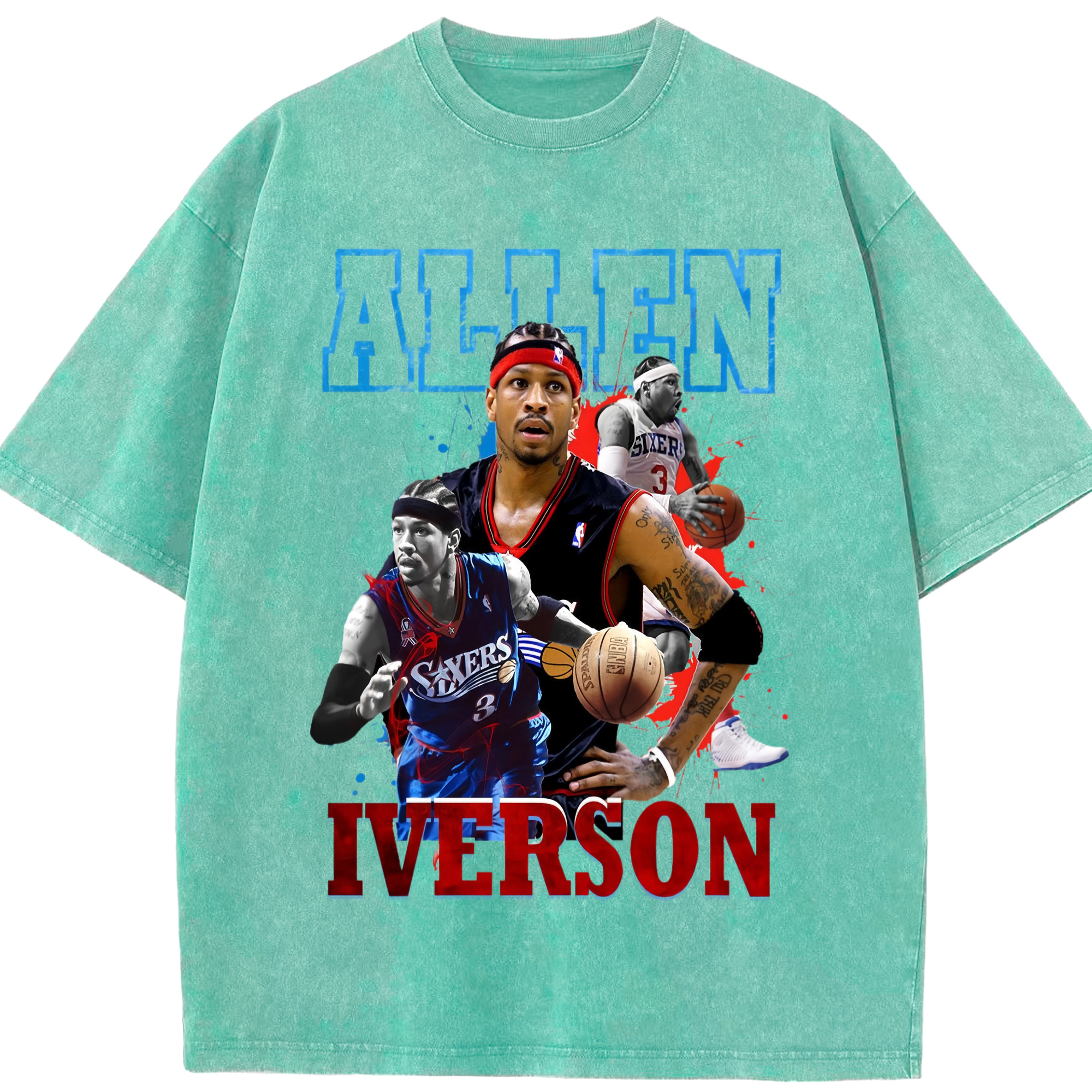 Allen Iverson 76ers collage graphic T-shirt - Washed Vintage Look 230g Cotton Oversized T-Shirt With Front Heat Transfer Print – Soft, Lightweight, Stylish Fit – Comfortable Casual Wear For Sports & Everyday Use