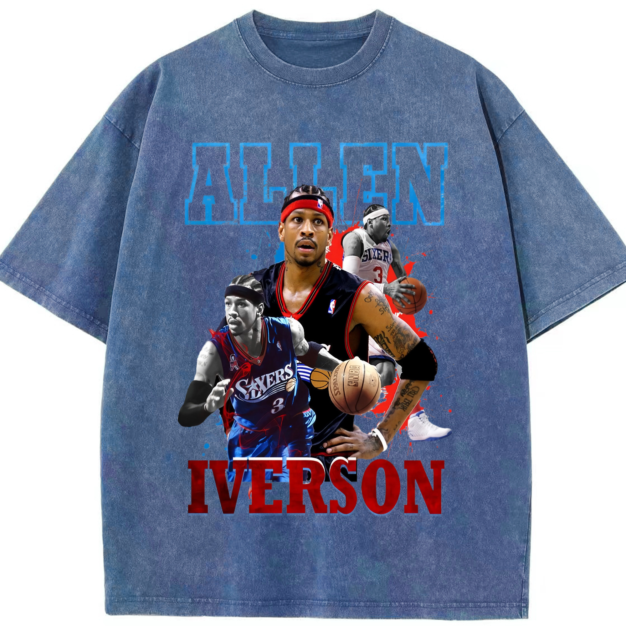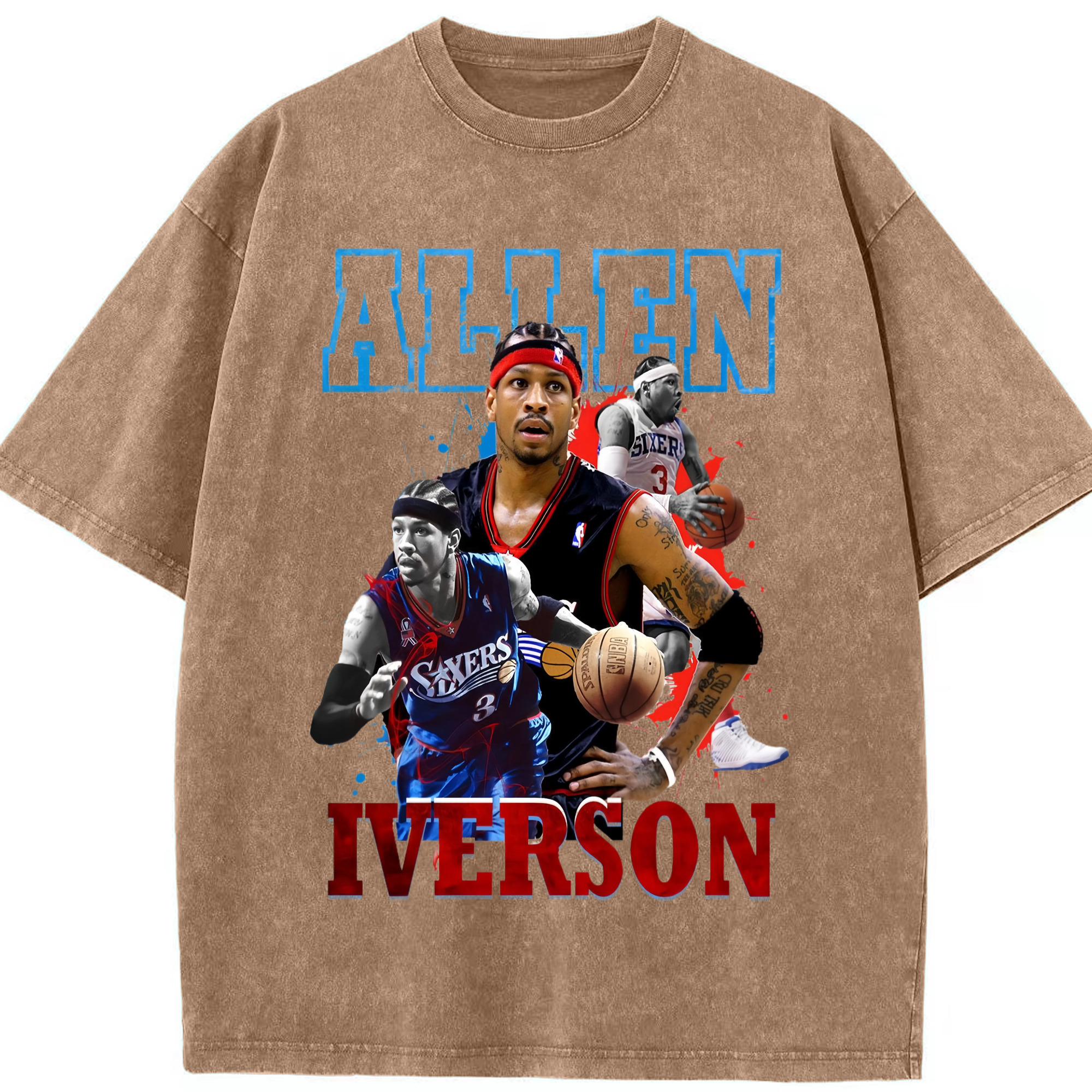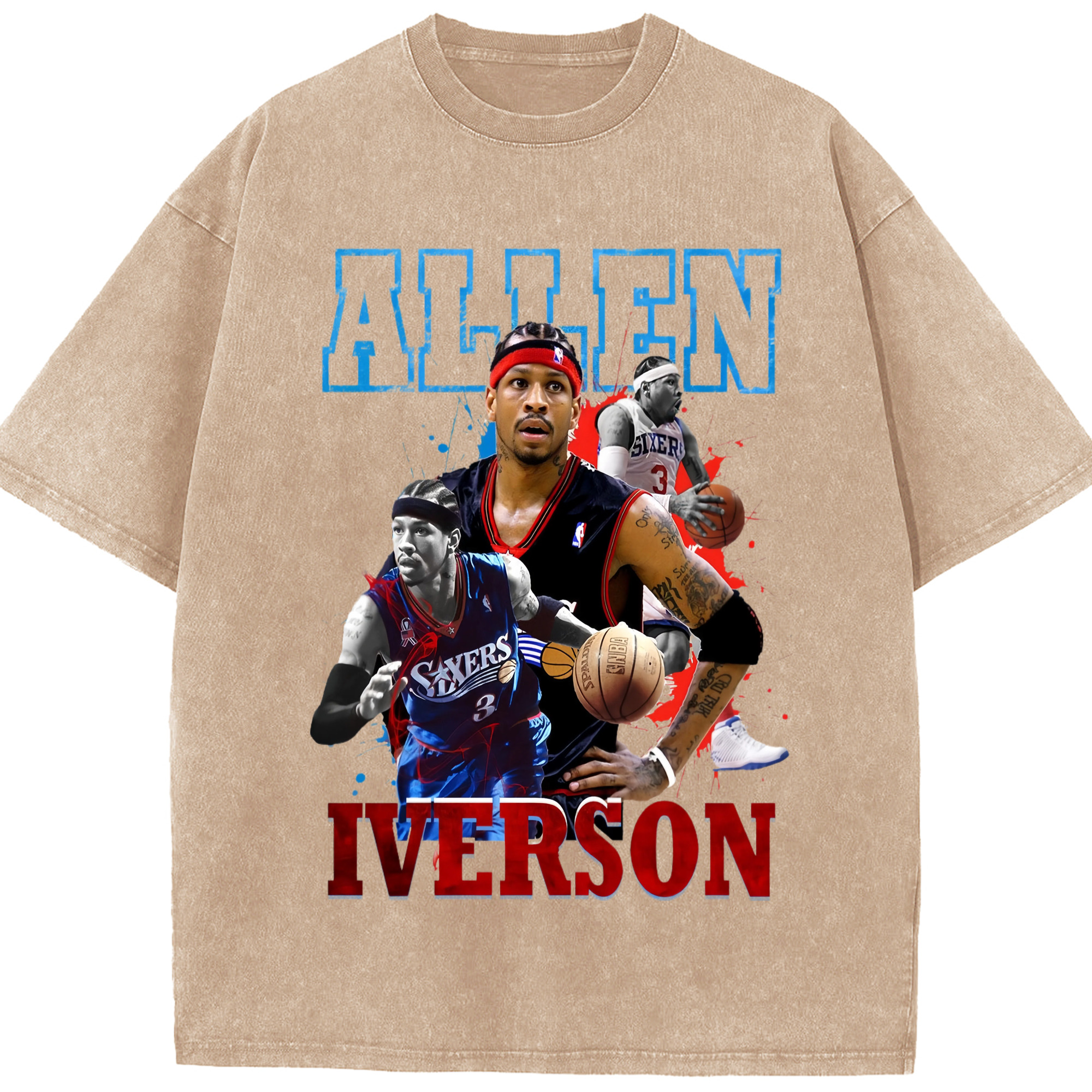 Allen Iverson 76ers collage graphic T-shirt - Washed Vintage Look 230g Cotton Oversized T-Shirt With Front Heat Transfer Print – Soft, Lightweight, Stylish Fit – Comfortable Casual Wear For Sports & Everyday Use