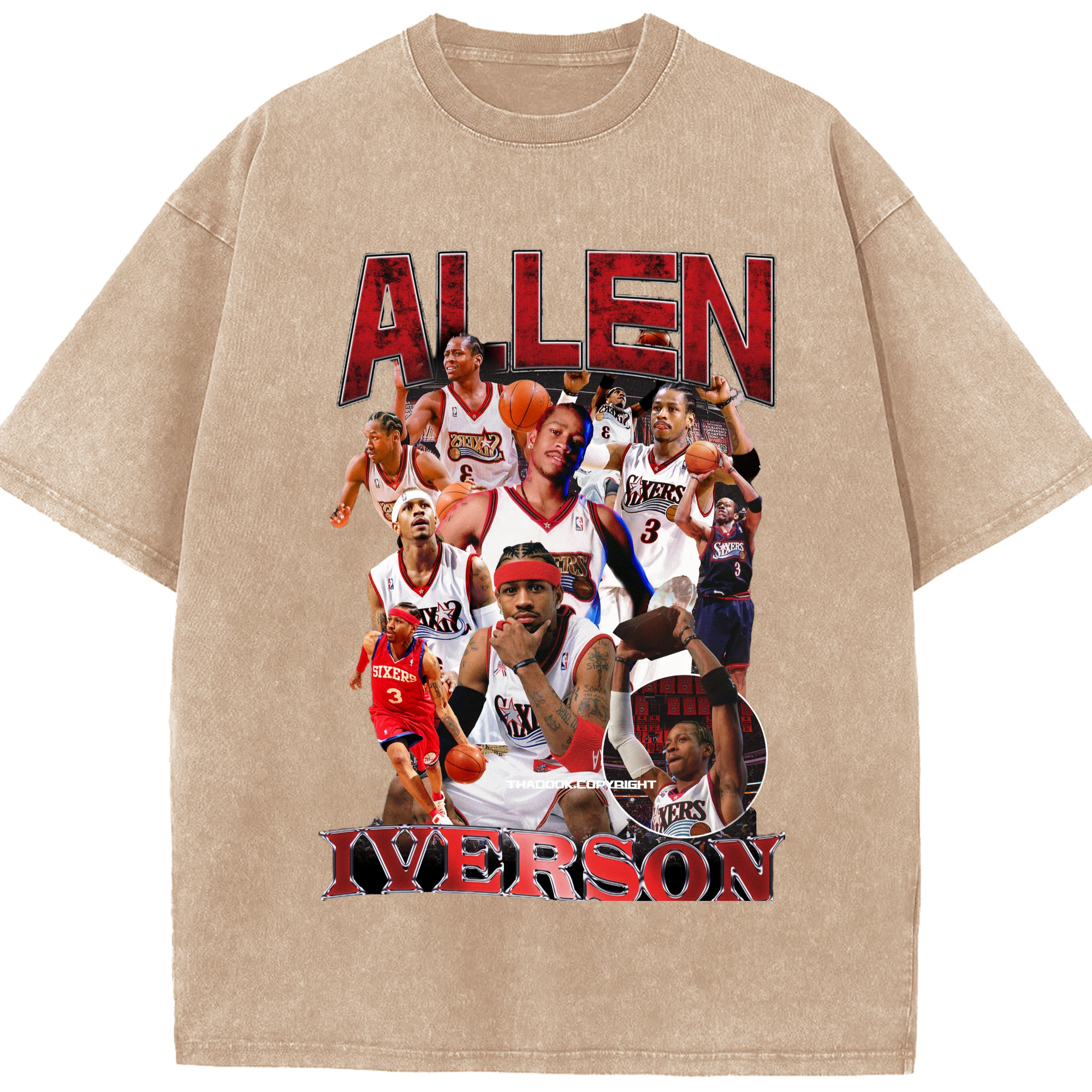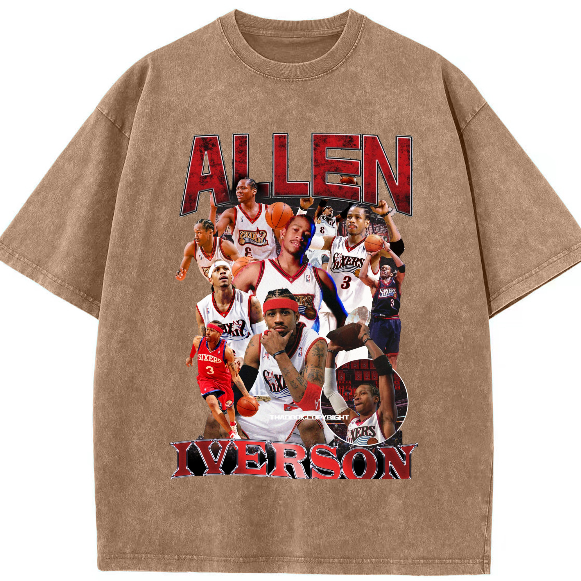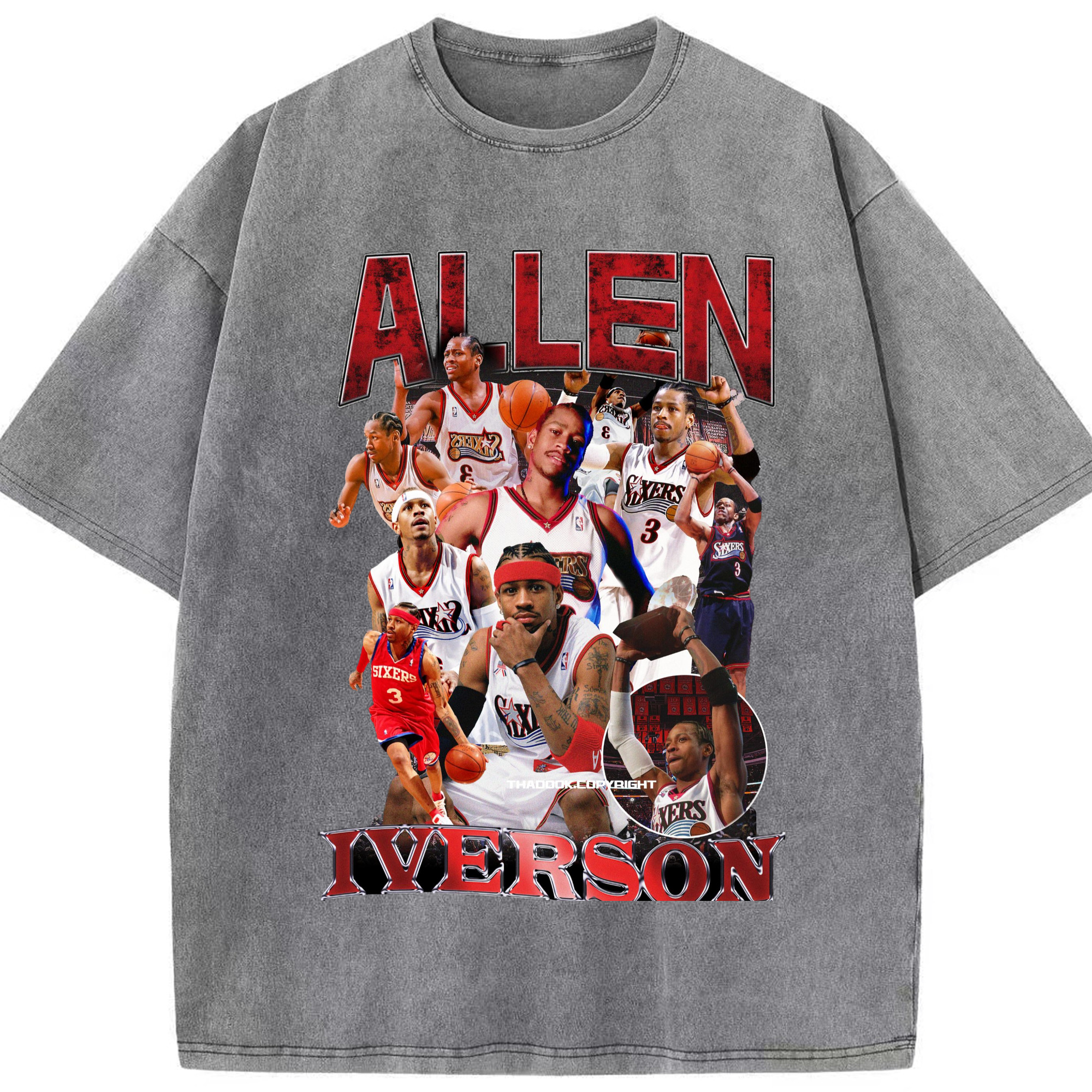 Allen Iverson Graphic vintage T-shirt​ - Washed Vintage Look 230g Cotton Oversized T-Shirt With Front Heat Transfer Print – Soft, Lightweight, Stylish Fit – Comfortable Casual Wear For Sports & Everyday Use