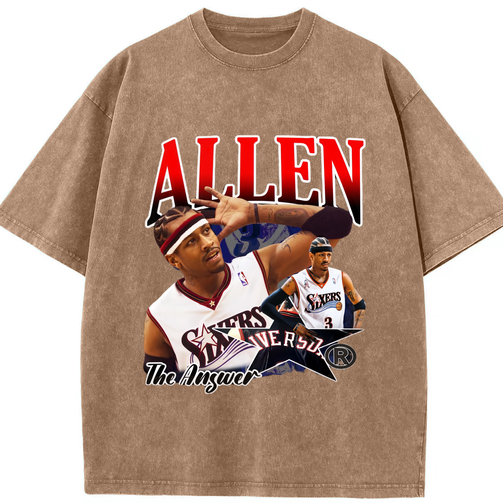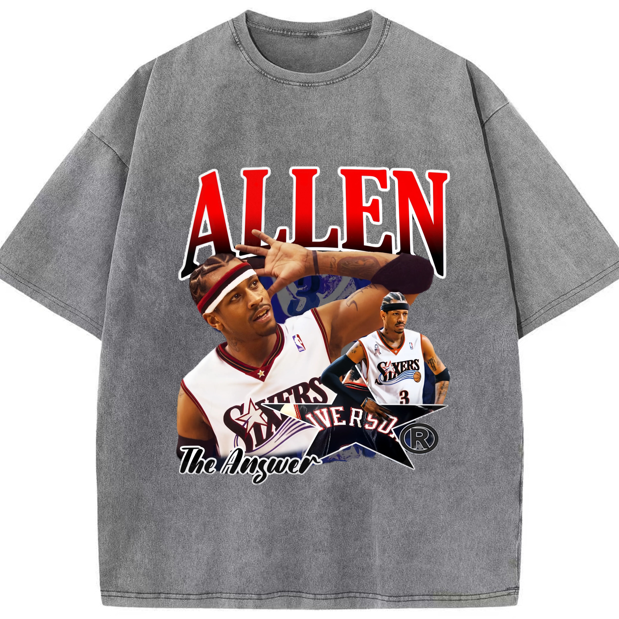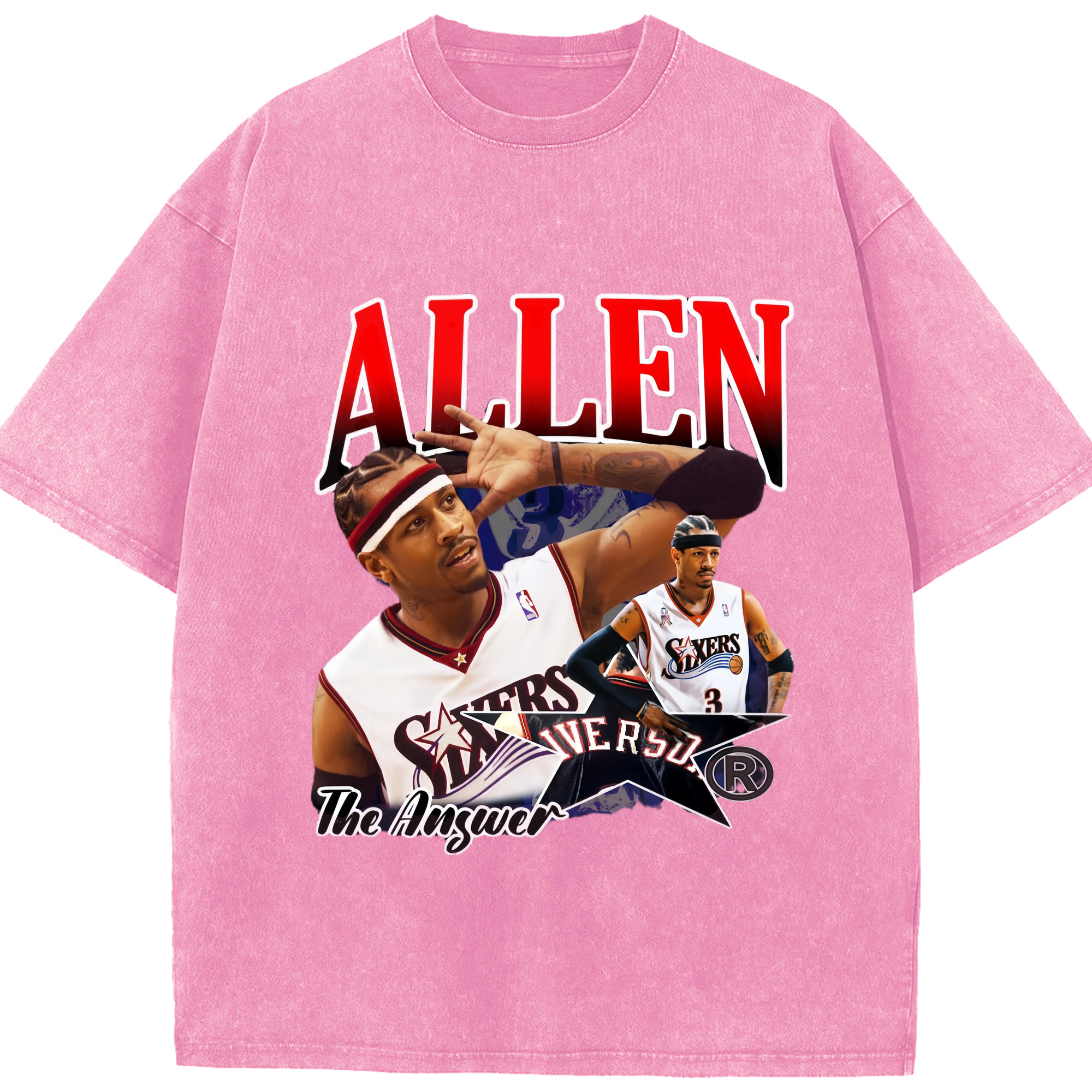 Allen lverson The Answer Graphic Tee - Washed Vintage Look 230g Cotton Oversized T-Shirt With Front Heat Transfer Print – Soft, Lightweight, Stylish Fit – Comfortable Casual Wear For Sports & Everyday Use