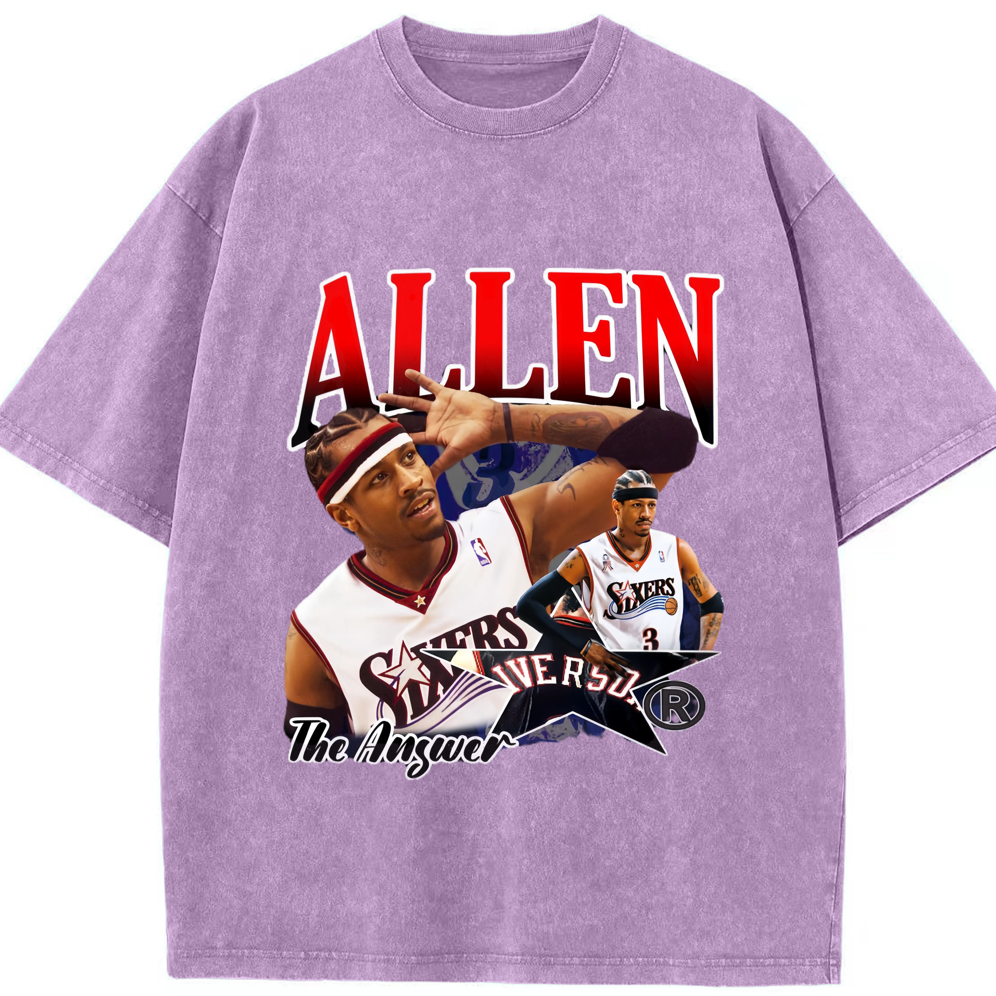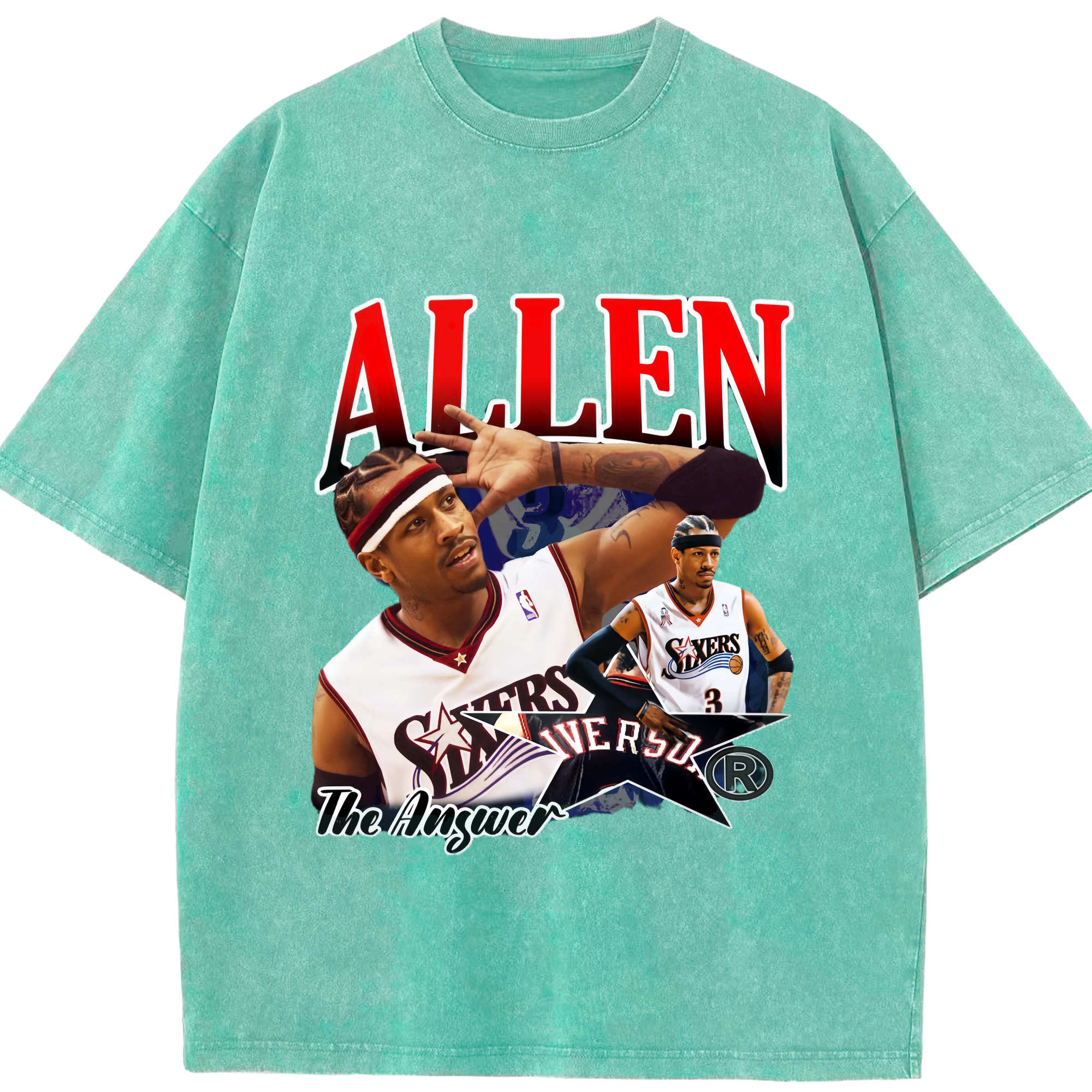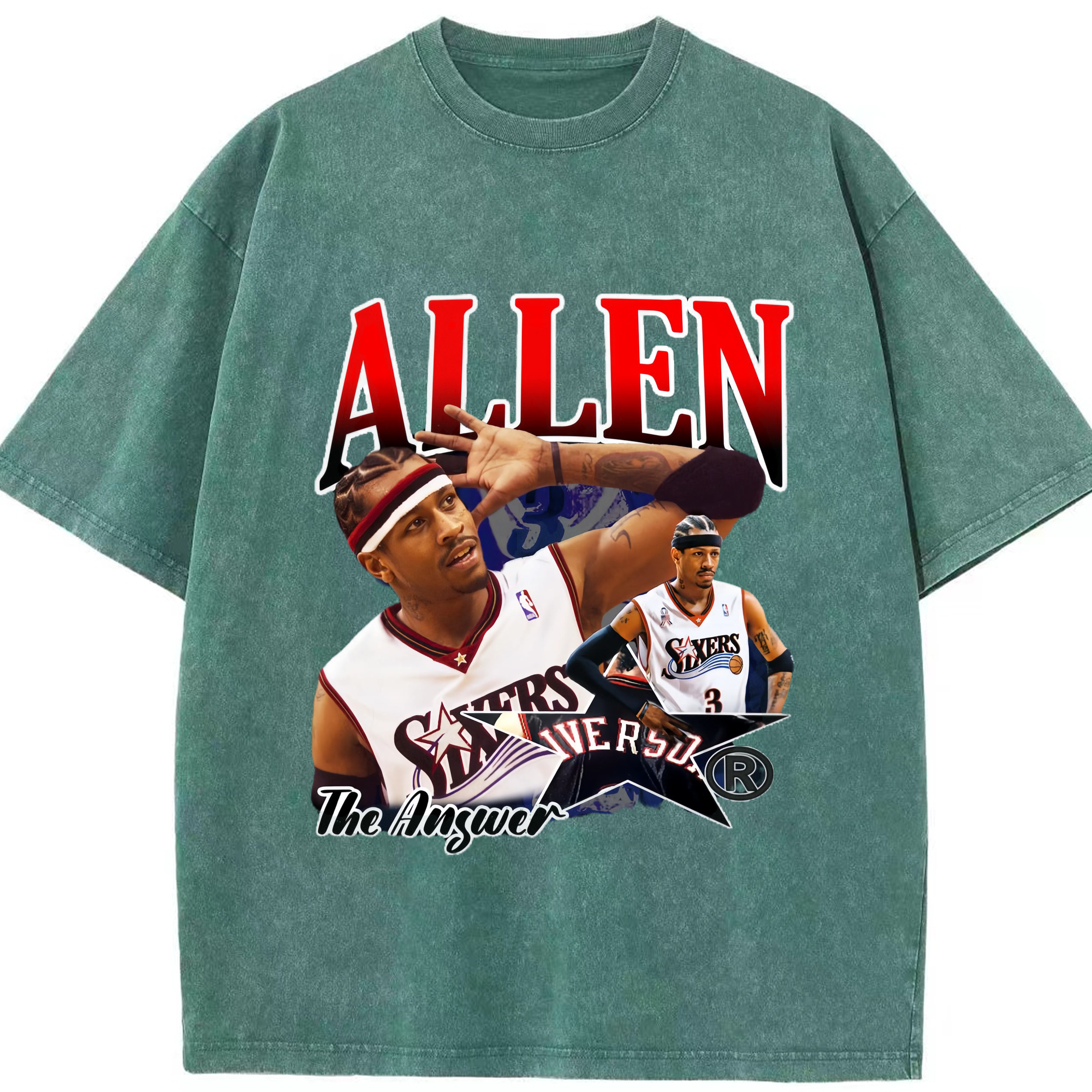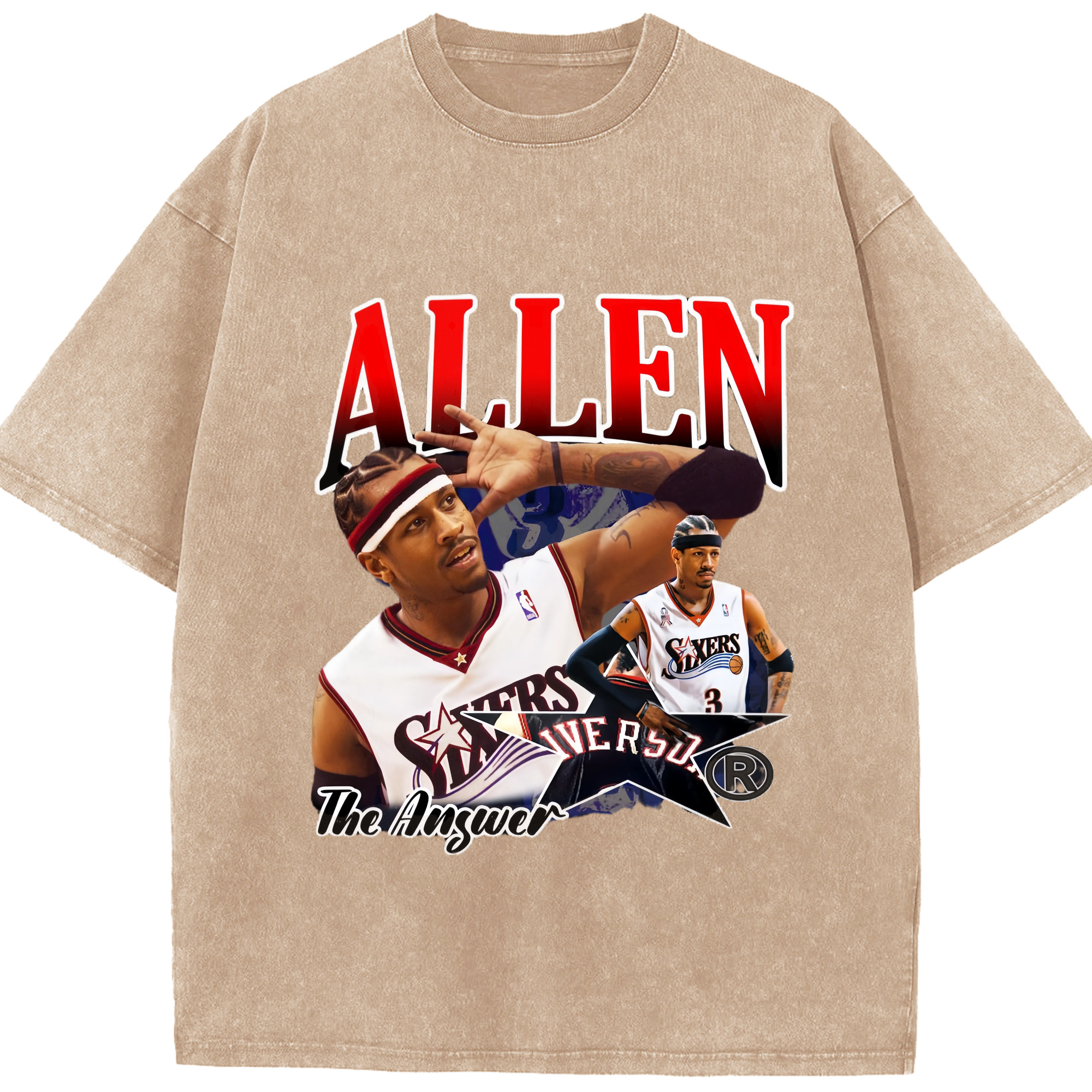 Allen lverson The Answer Graphic Tee - Washed Vintage Look 230g Cotton Oversized T-Shirt With Front Heat Transfer Print – Soft, Lightweight, Stylish Fit – Comfortable Casual Wear For Sports & Everyday Use