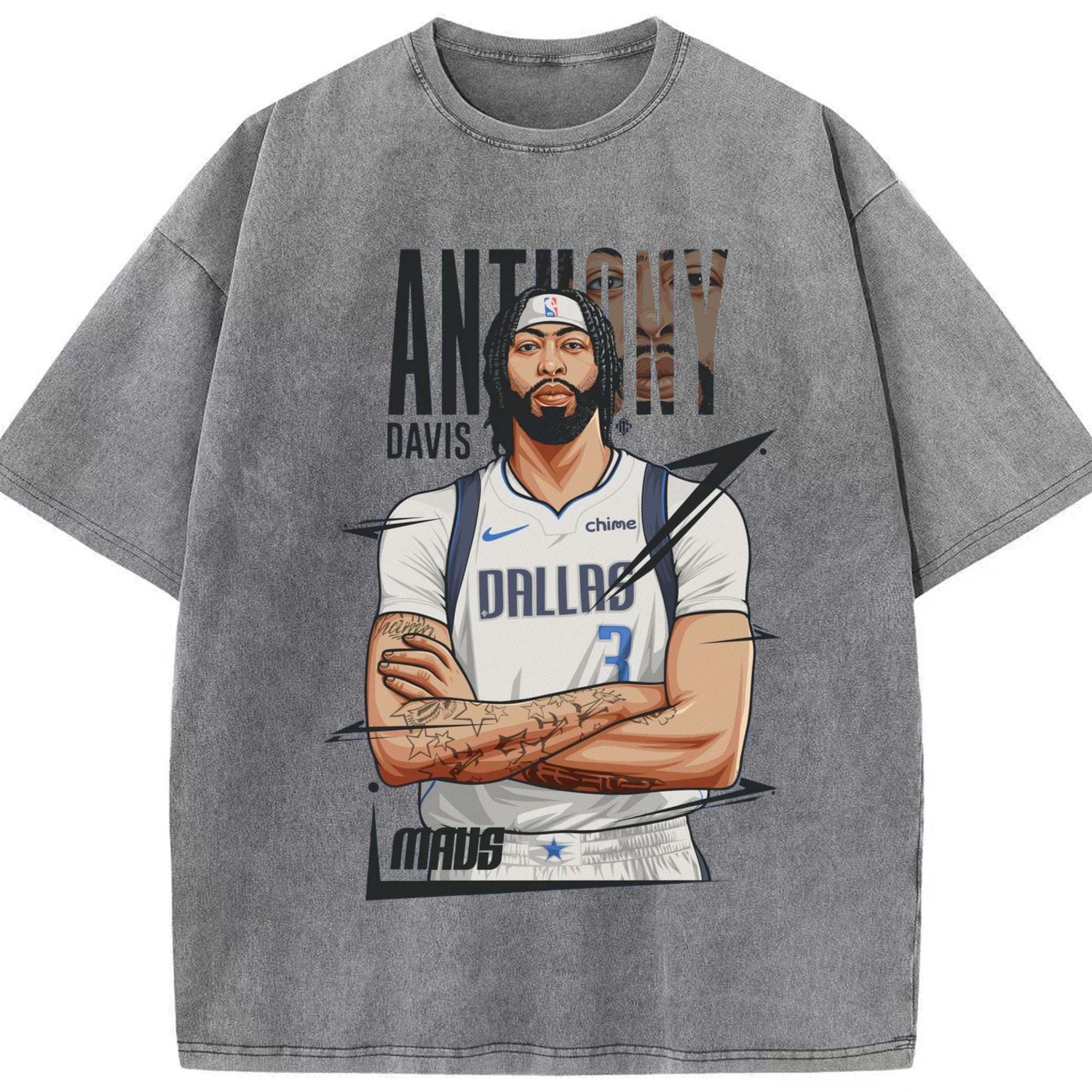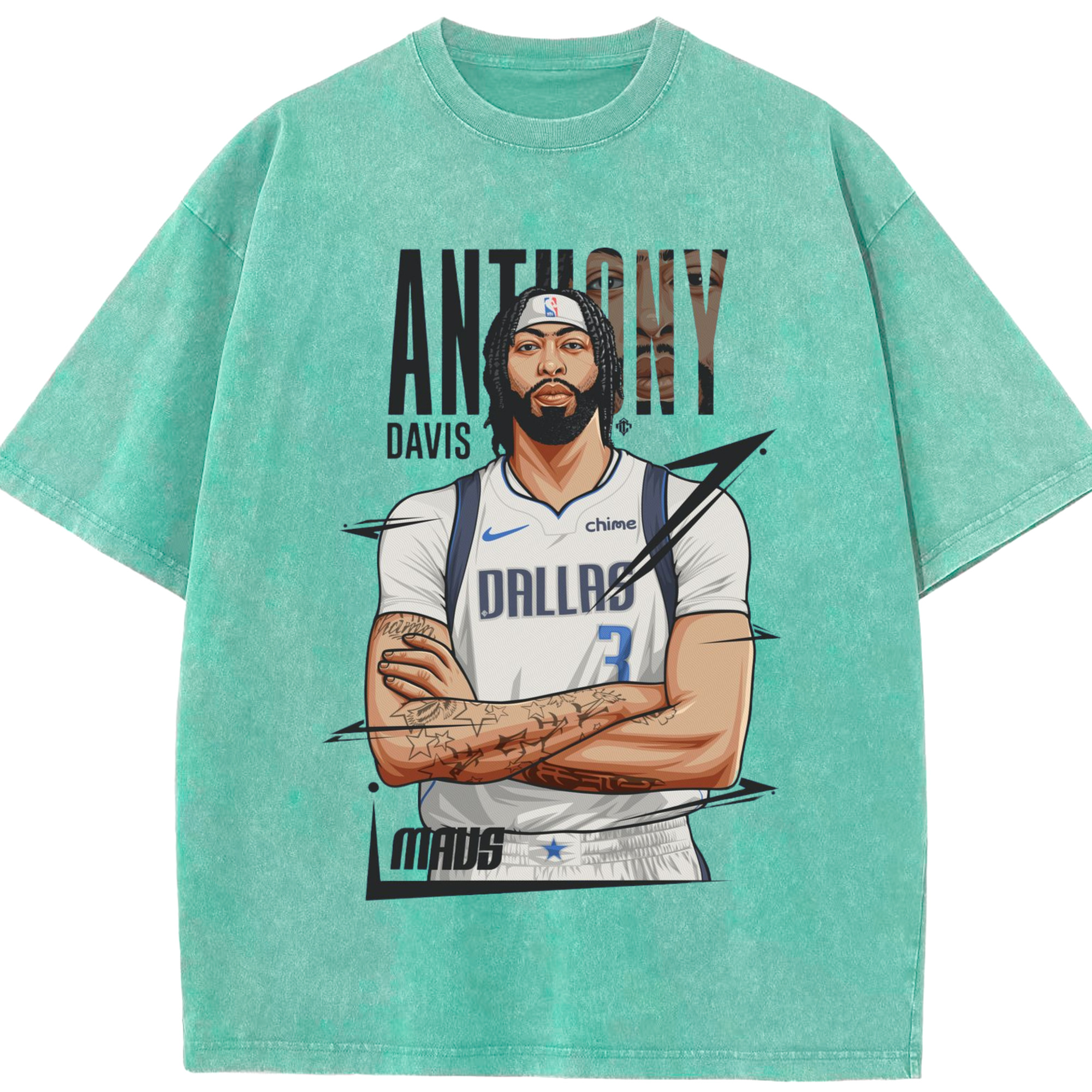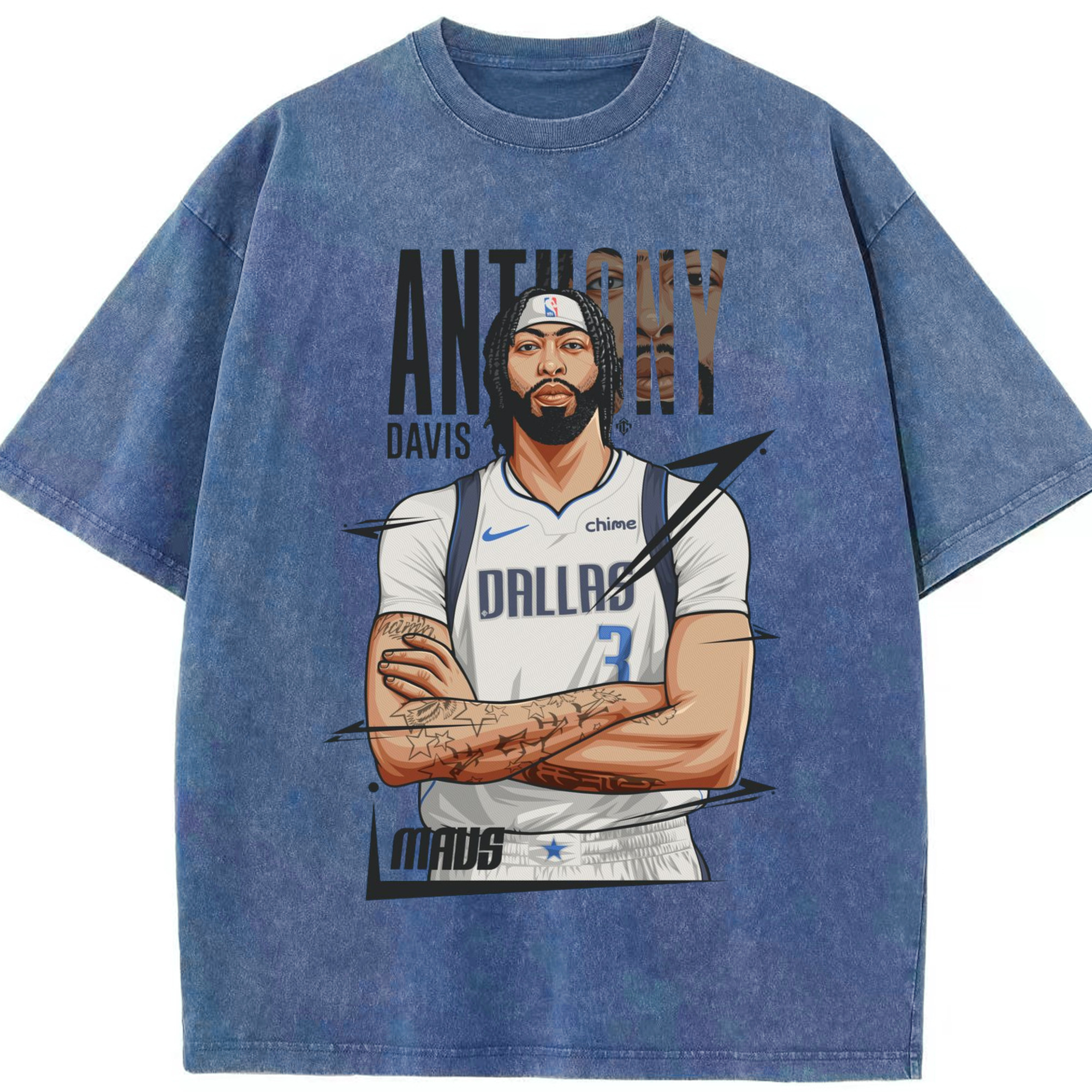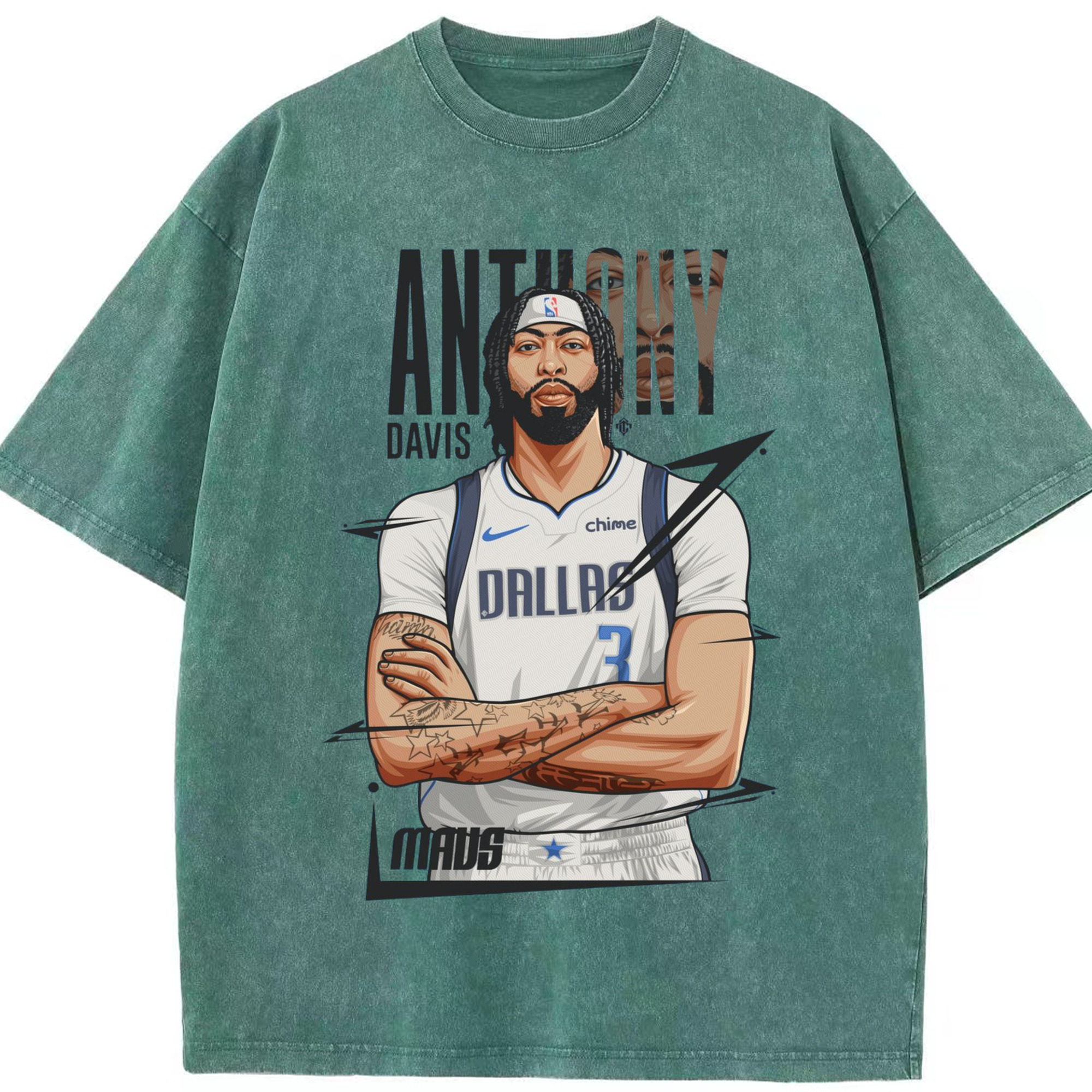 Anthony Davis Mavericks #3 Cartoon style graphic tee - Washed Vintage Look 230g Cotton Oversized T-Shirt With Front Heat Transfer Print – Soft, Lightweight, Stylish Fit – Comfortable Casual Wear For Sports & Everyday Use