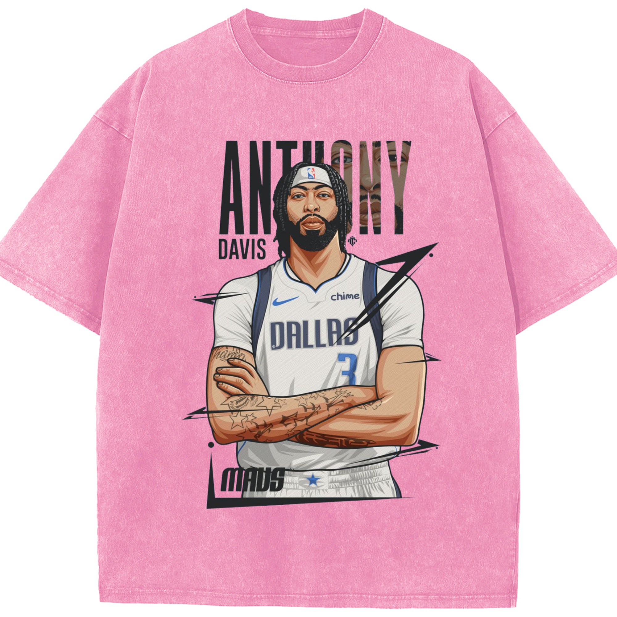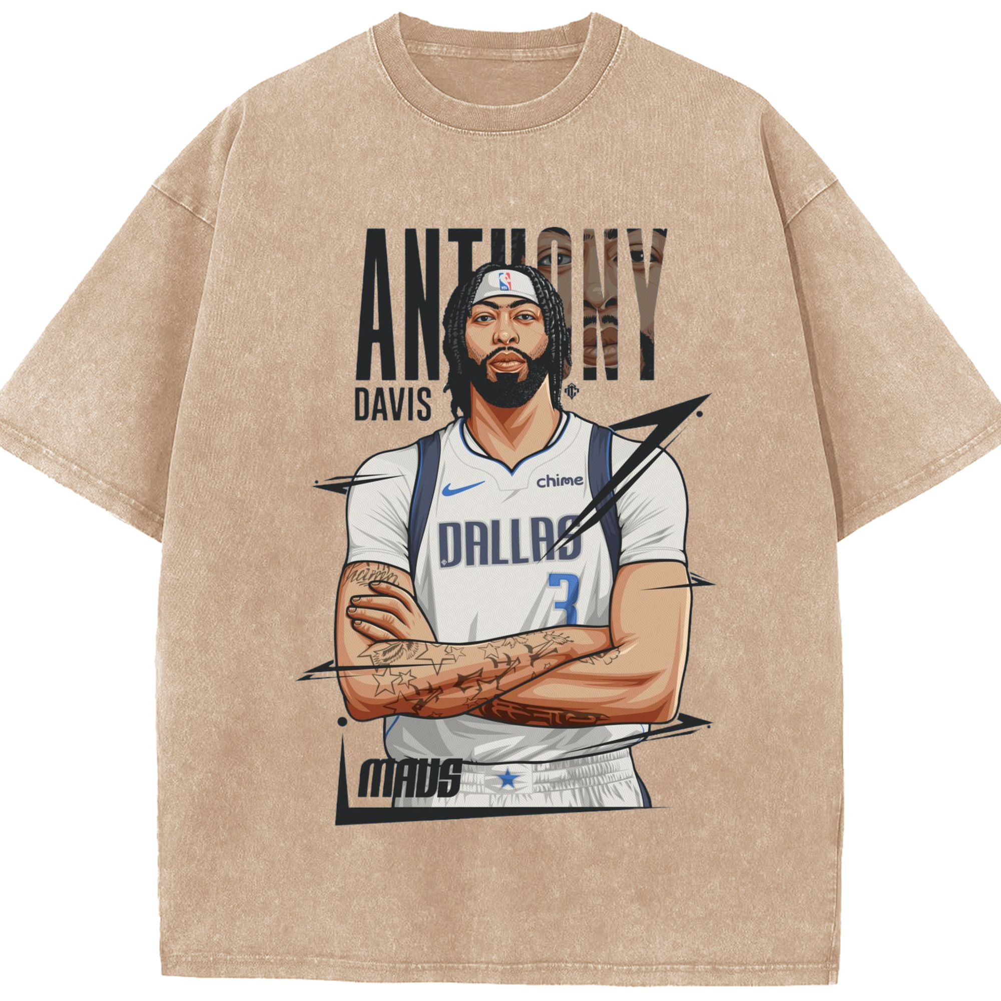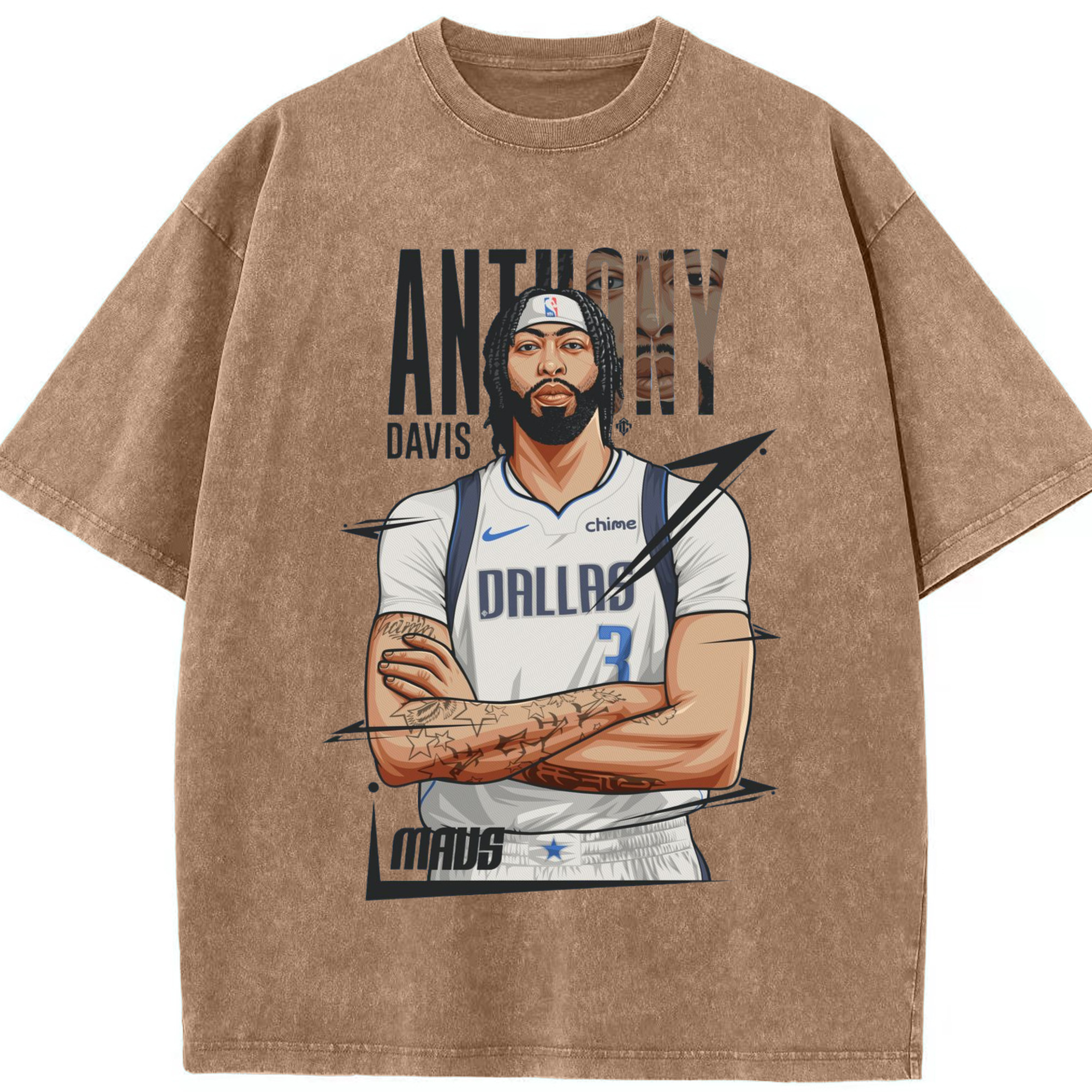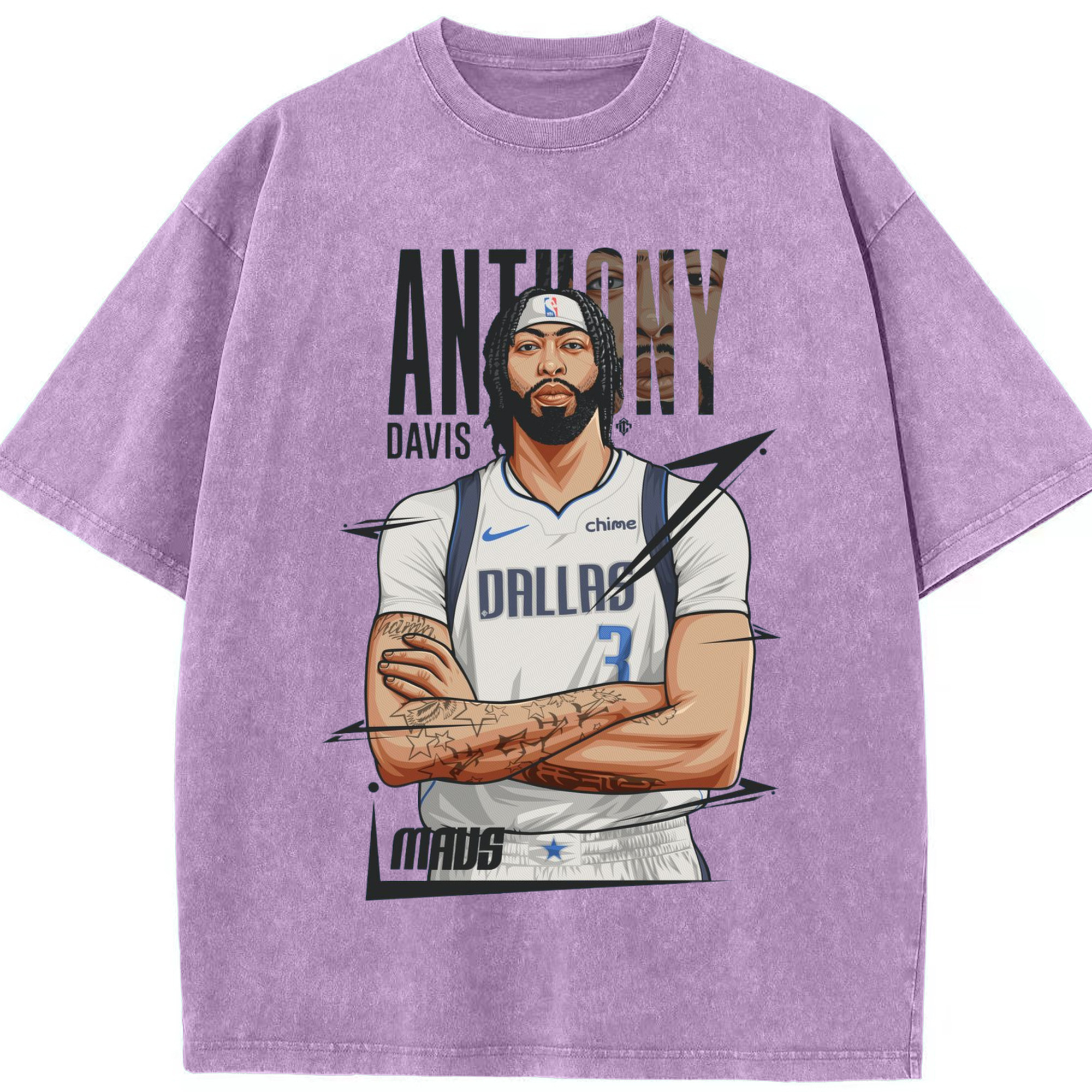 Anthony Davis Mavericks #3 Cartoon style graphic tee - Washed Vintage Look 230g Cotton Oversized T-Shirt With Front Heat Transfer Print – Soft, Lightweight, Stylish Fit – Comfortable Casual Wear For Sports & Everyday Use
