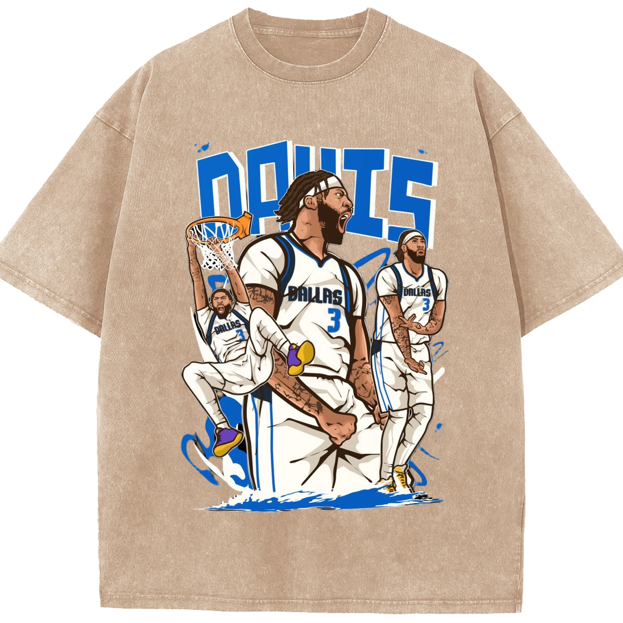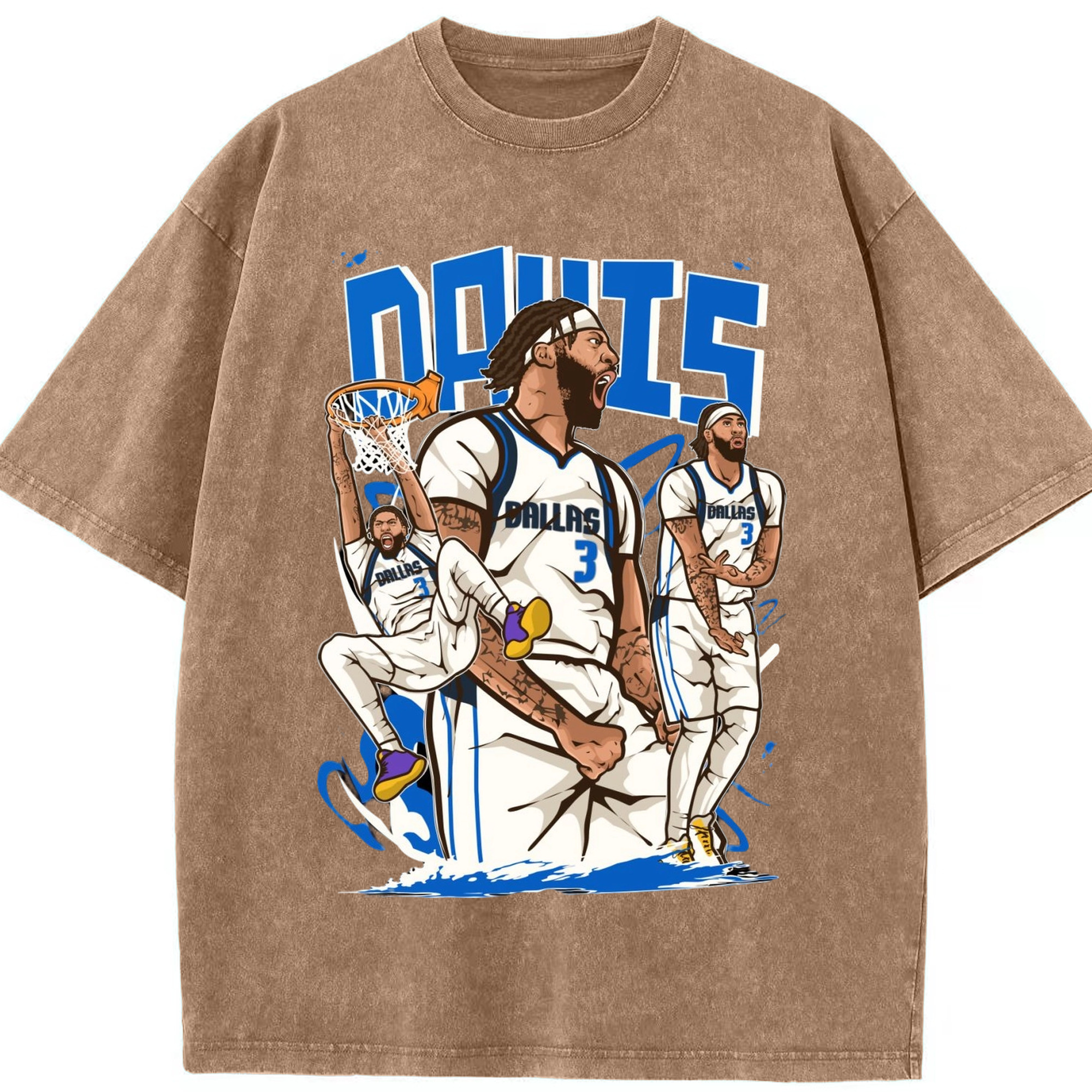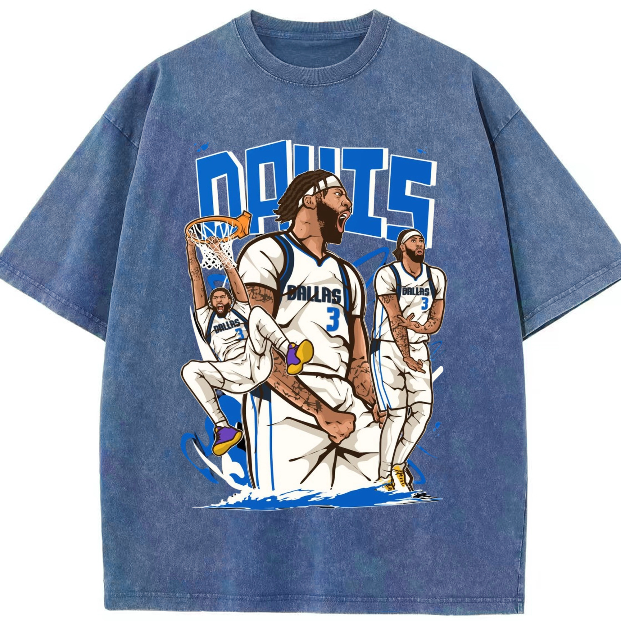 Anthony Davis Mavericks Cartoon style collage graphic tee - Washed Vintage Look 230g Cotton Oversized T-Shirt With Front Heat Transfer Print – Soft, Lightweight, Stylish Fit – Comfortable Casual Wear For Sports & Everyday Use