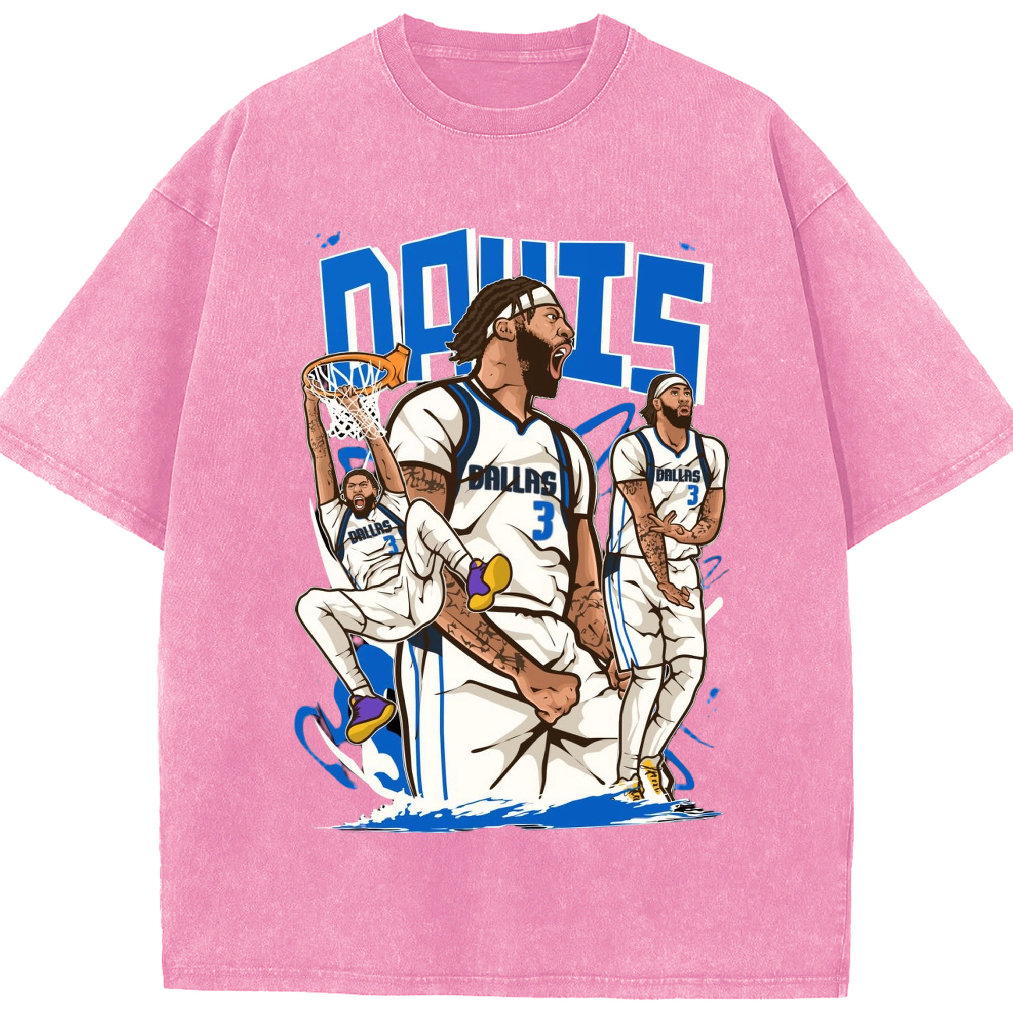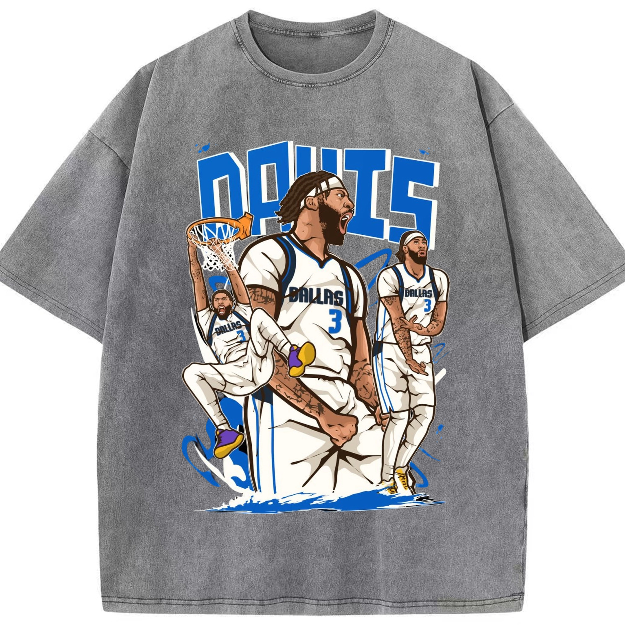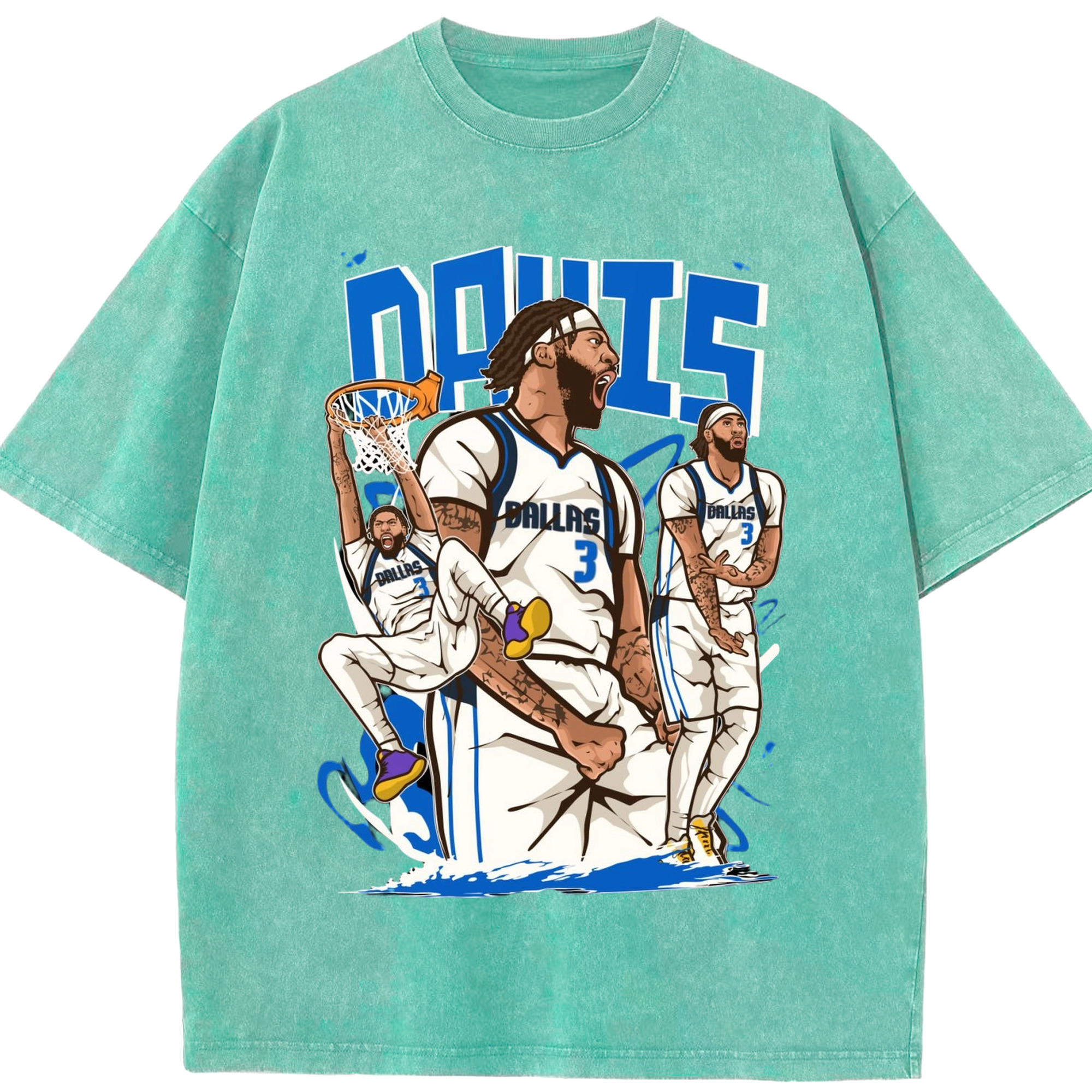 Anthony Davis Mavericks Cartoon style collage graphic tee - Washed Vintage Look 230g Cotton Oversized T-Shirt With Front Heat Transfer Print – Soft, Lightweight, Stylish Fit – Comfortable Casual Wear For Sports & Everyday Use