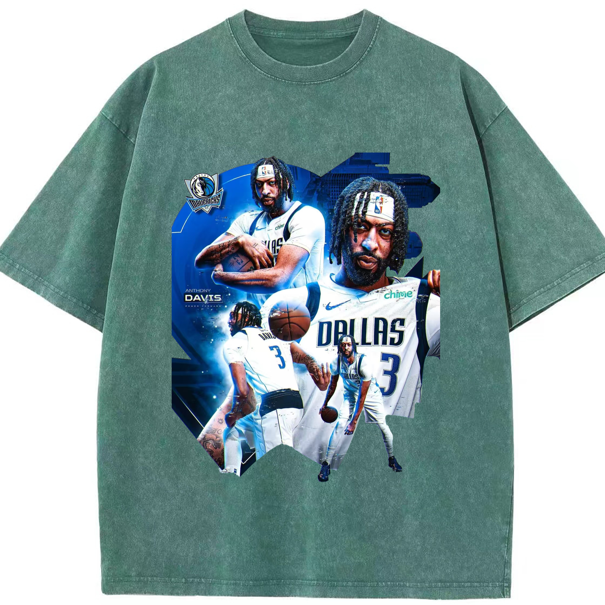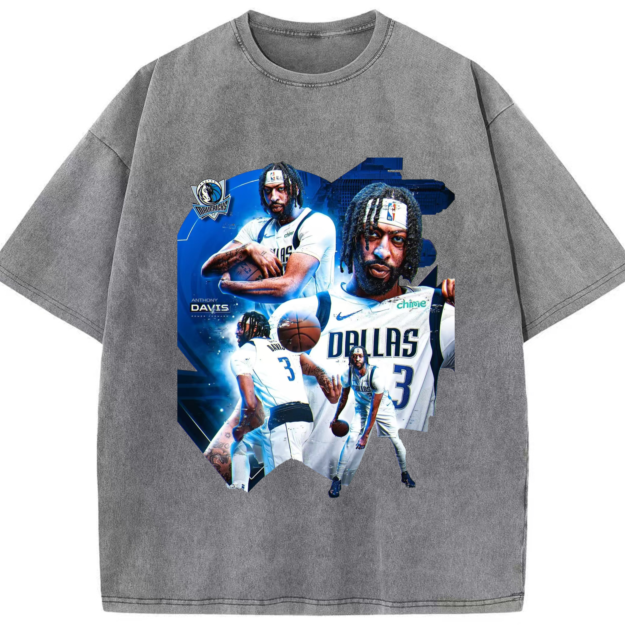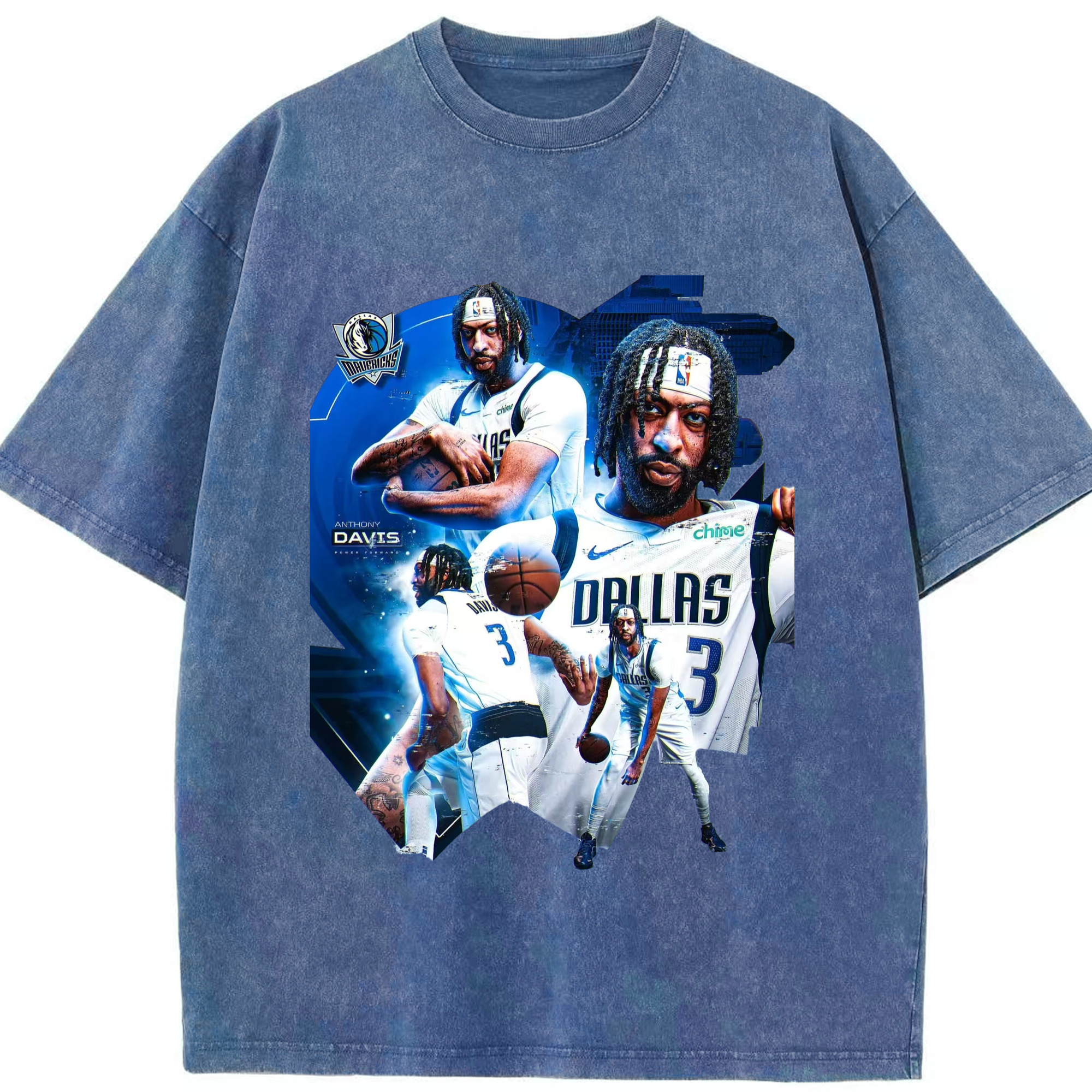 Anthony Davis Mavericks Makeup photo T-shirt - Washed Vintage Look 230g Cotton Oversized T-Shirt With Front Heat Transfer Print – Soft, Lightweight, Stylish Fit – Comfortable Casual Wear For Sports & Everyday Use