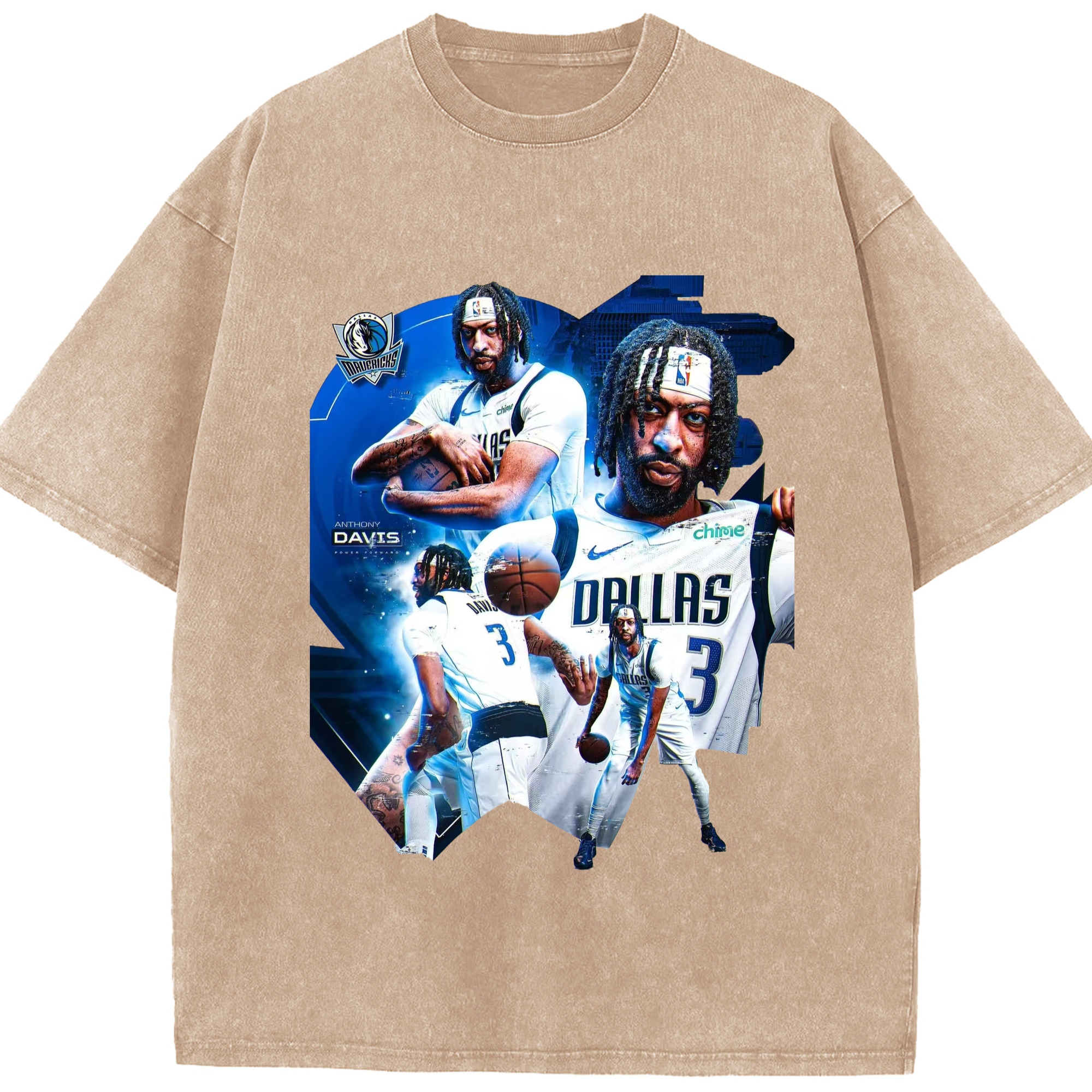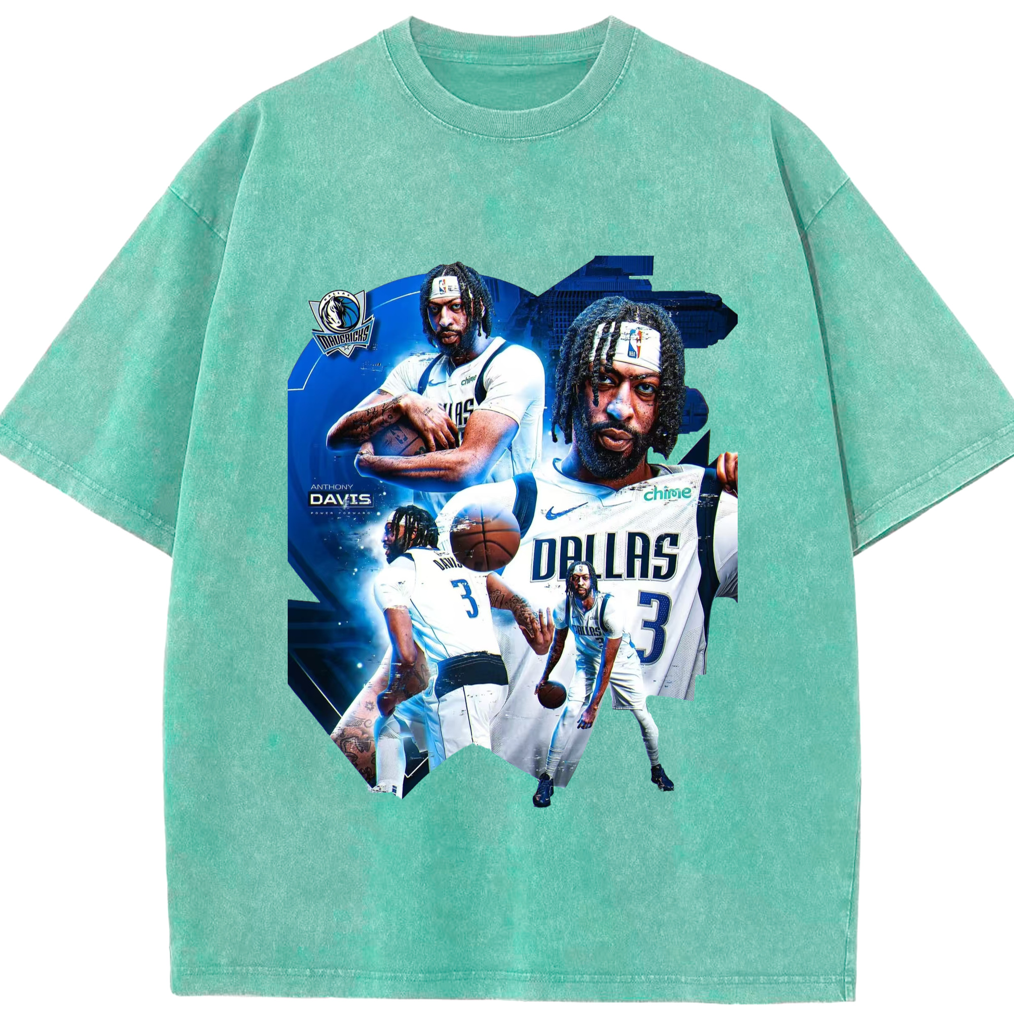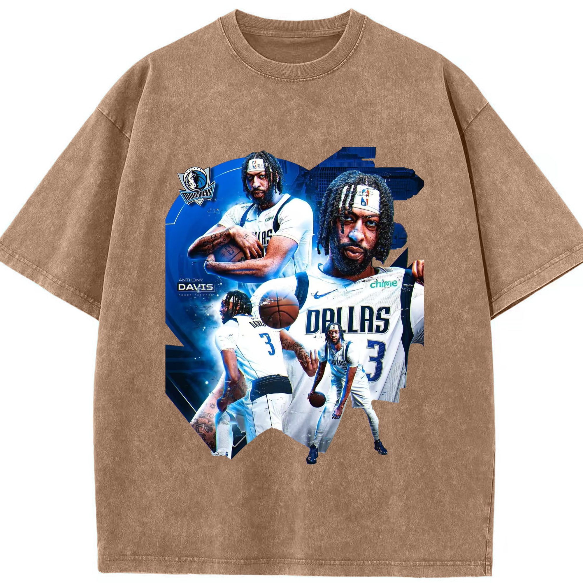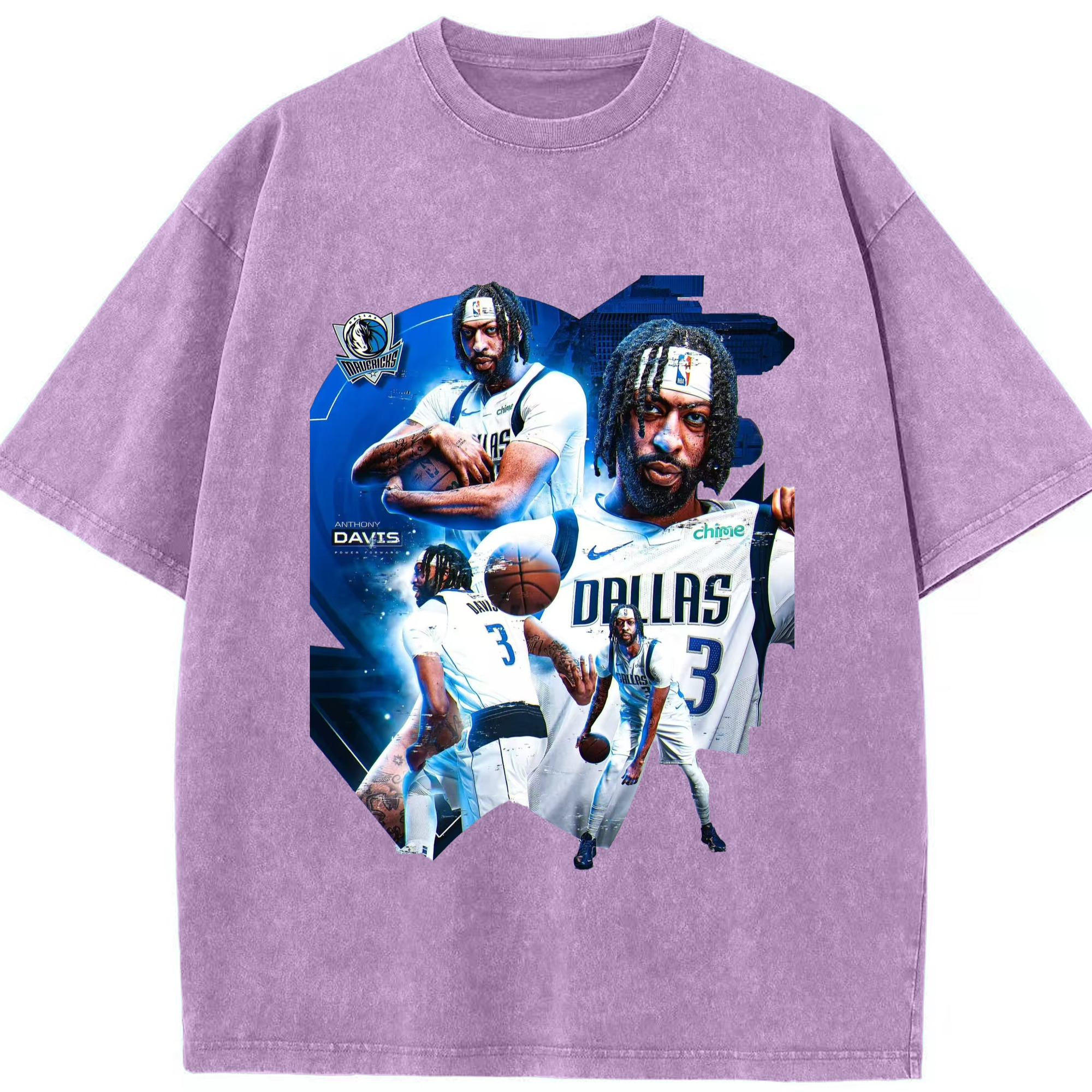 Anthony Davis Mavericks Makeup photo T-shirt - Washed Vintage Look 230g Cotton Oversized T-Shirt With Front Heat Transfer Print – Soft, Lightweight, Stylish Fit – Comfortable Casual Wear For Sports & Everyday Use