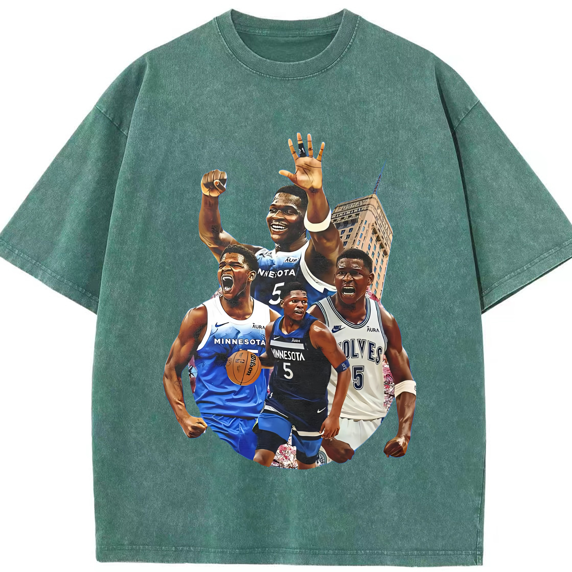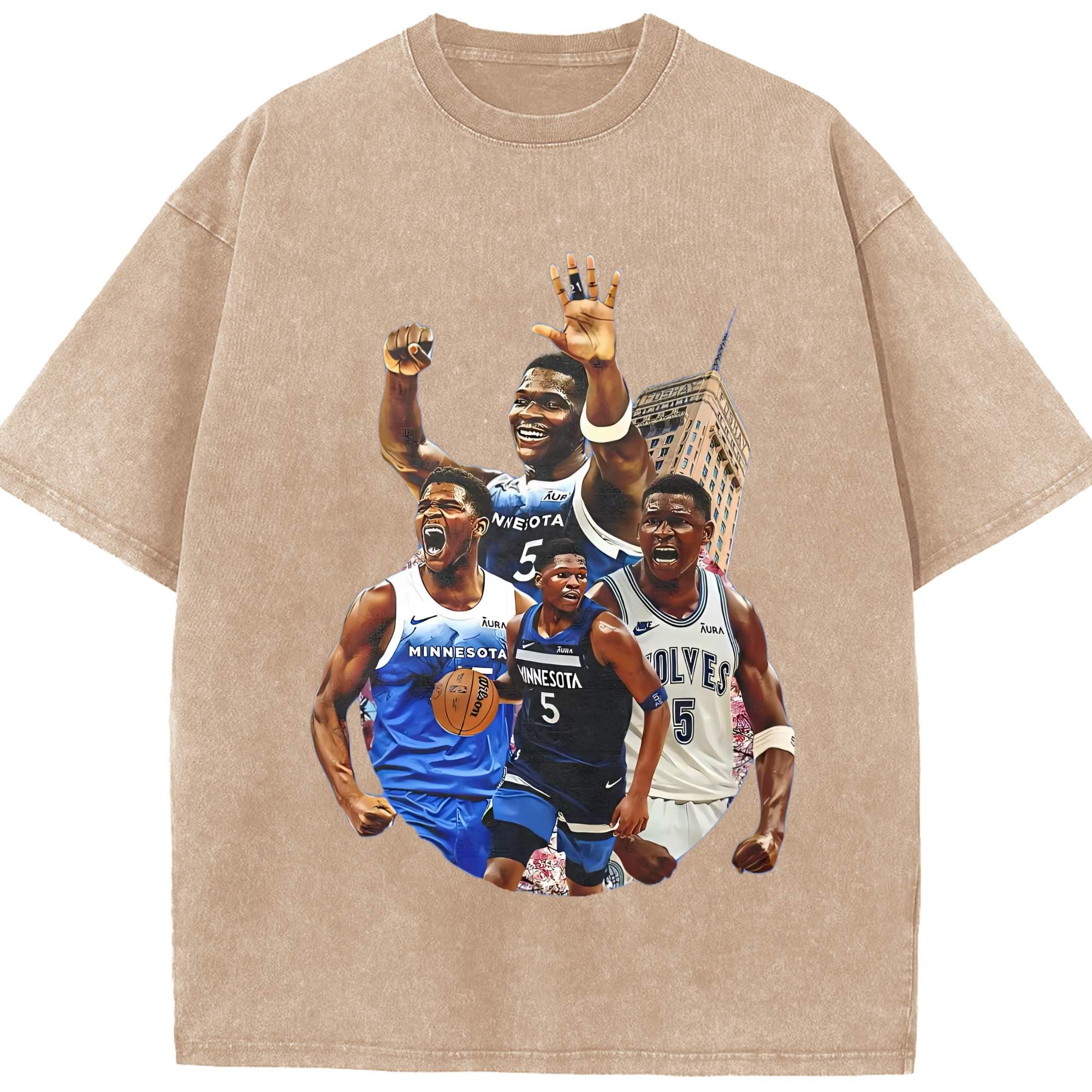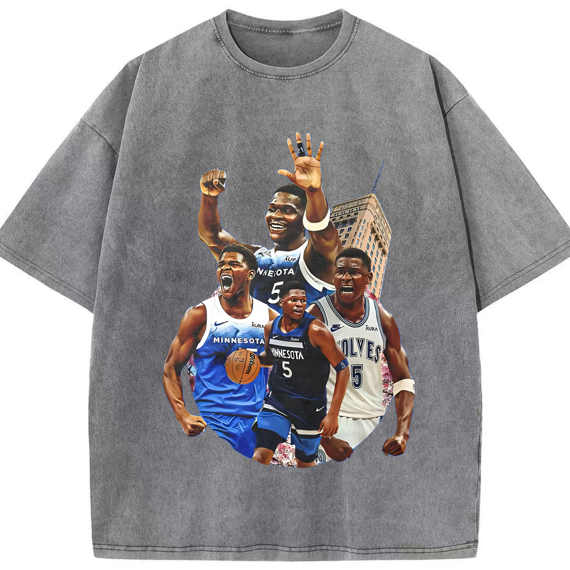 Anthony Edwards #5 t-shirt - Washed Vintage Look 230g Cotton Oversized T-Shirt With Front Heat Transfer Print – Soft, Lightweight, Stylish Fit – Comfortable Casual Wear For Sports & Everyday Use