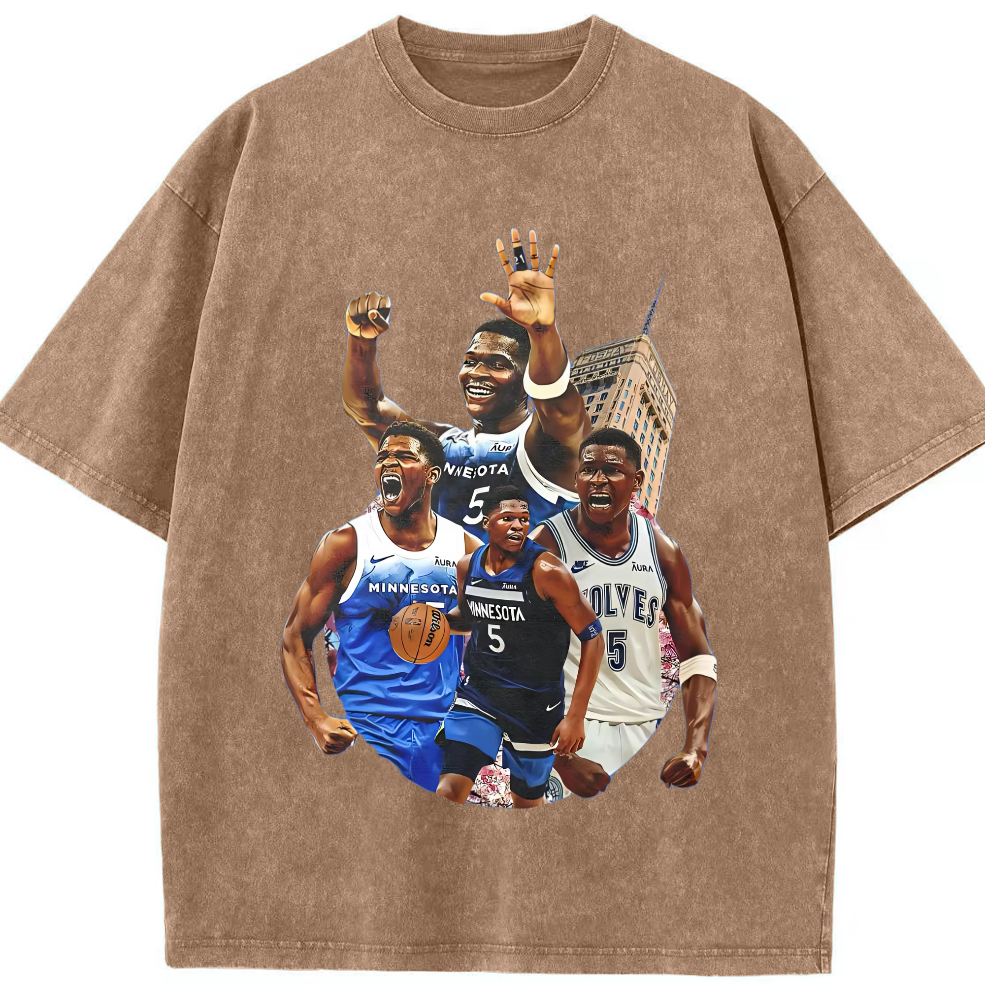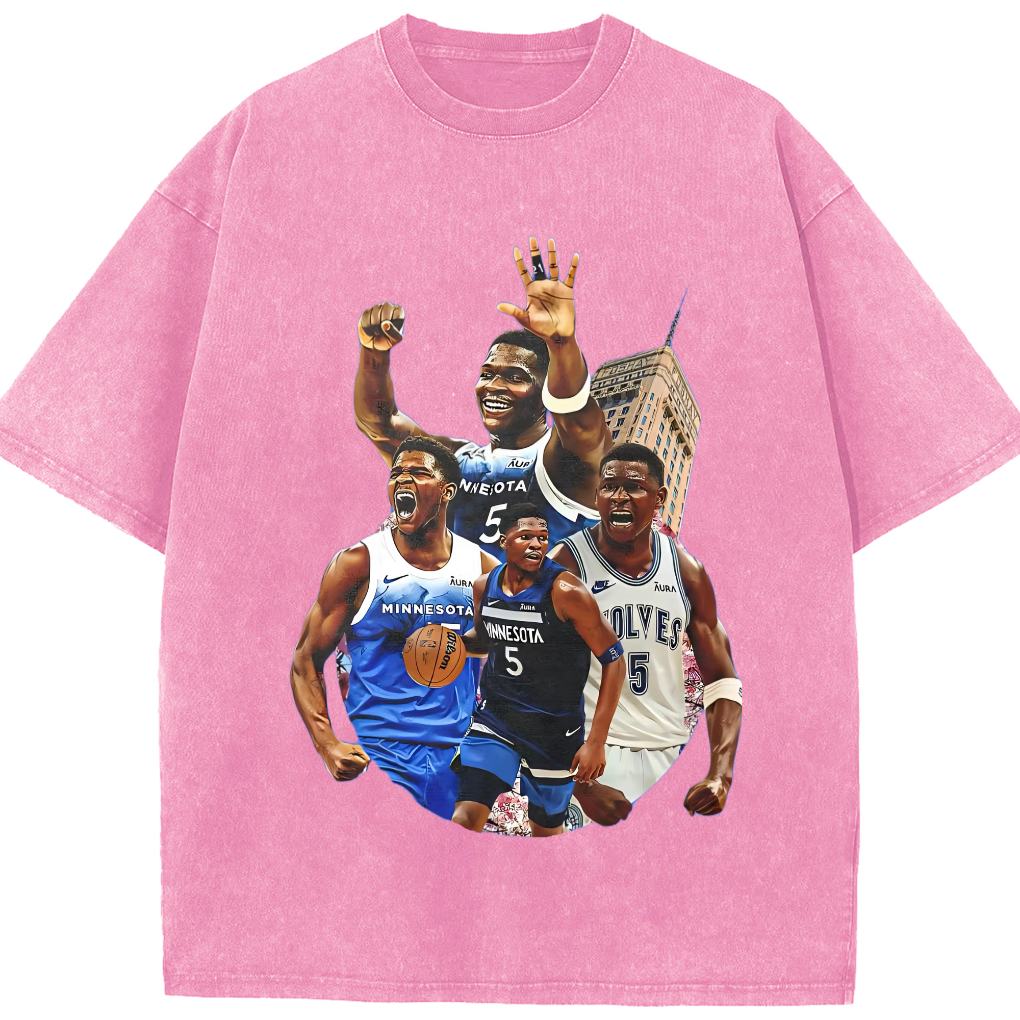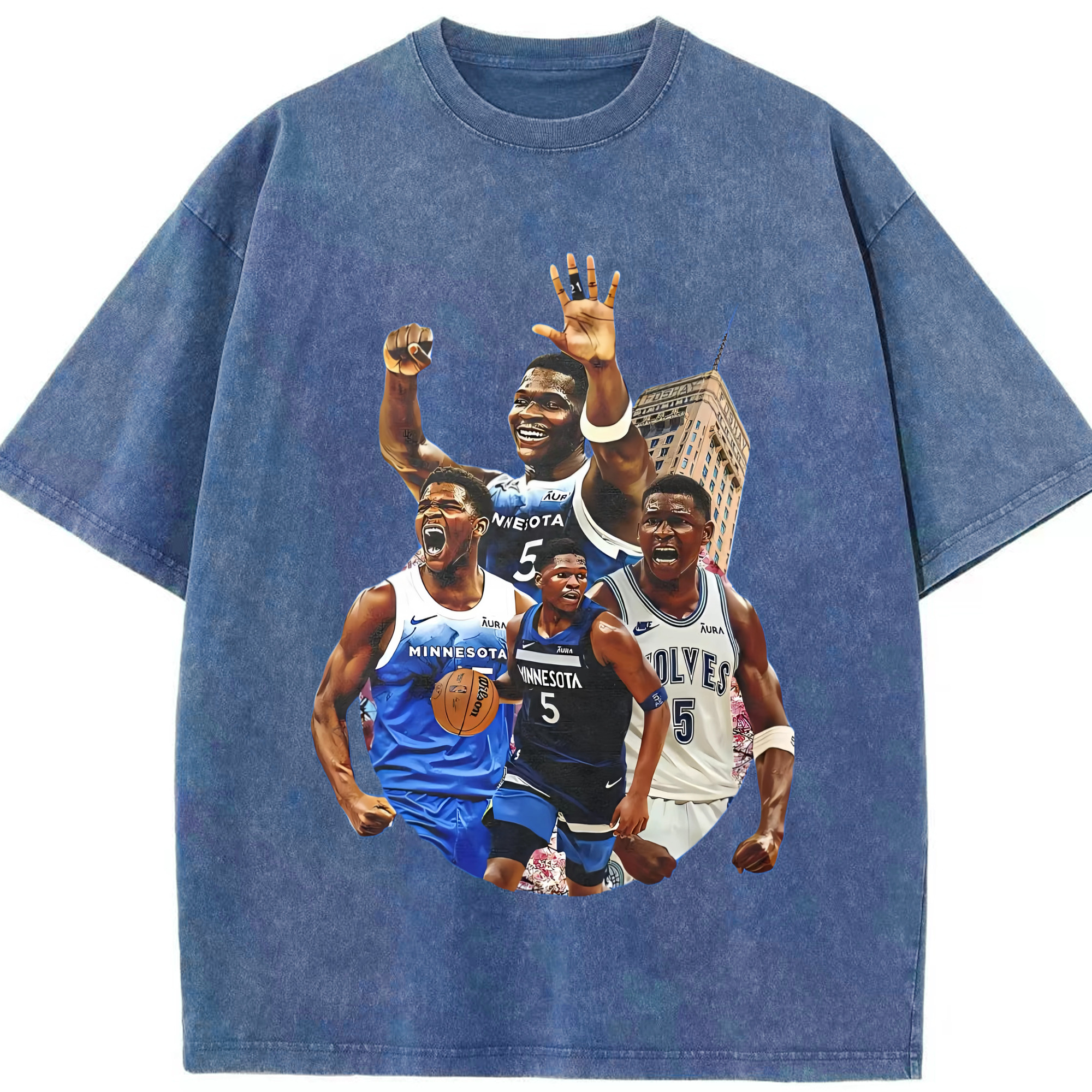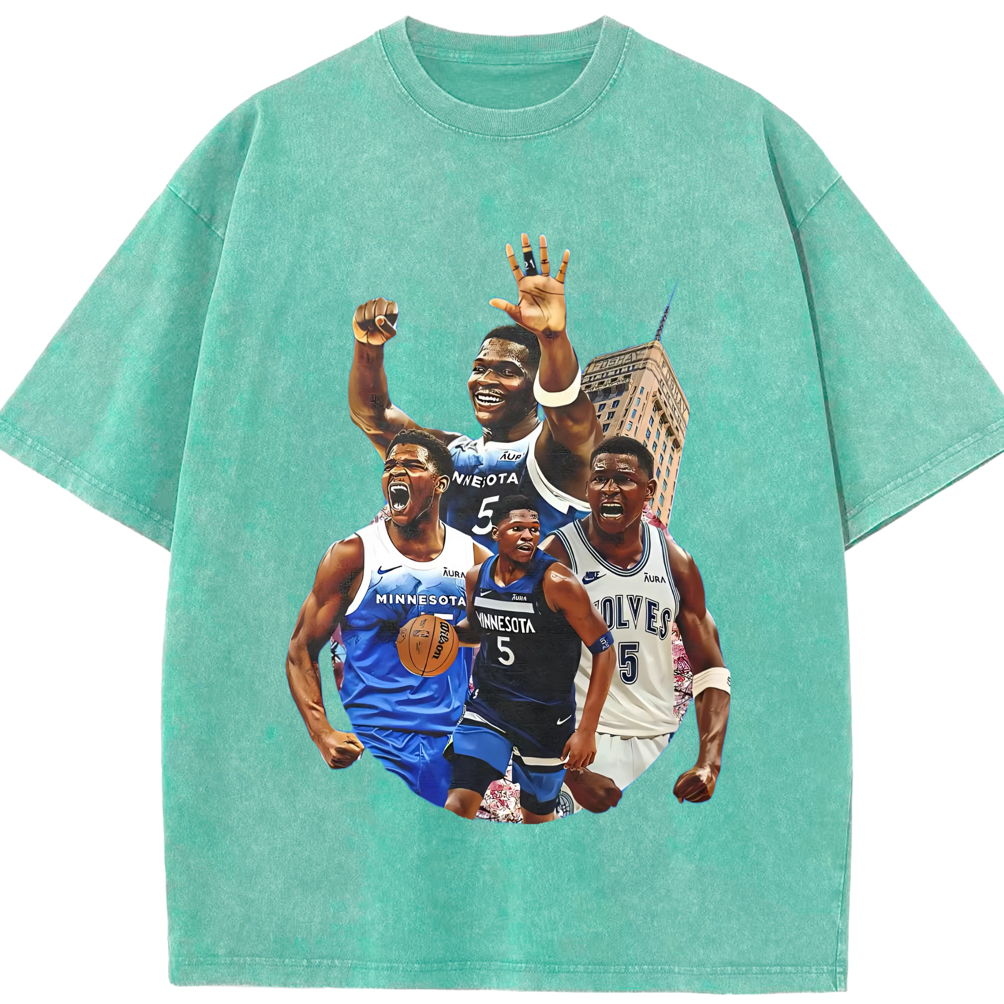 Anthony Edwards #5 t-shirt - Washed Vintage Look 230g Cotton Oversized T-Shirt With Front Heat Transfer Print – Soft, Lightweight, Stylish Fit – Comfortable Casual Wear For Sports & Everyday Use