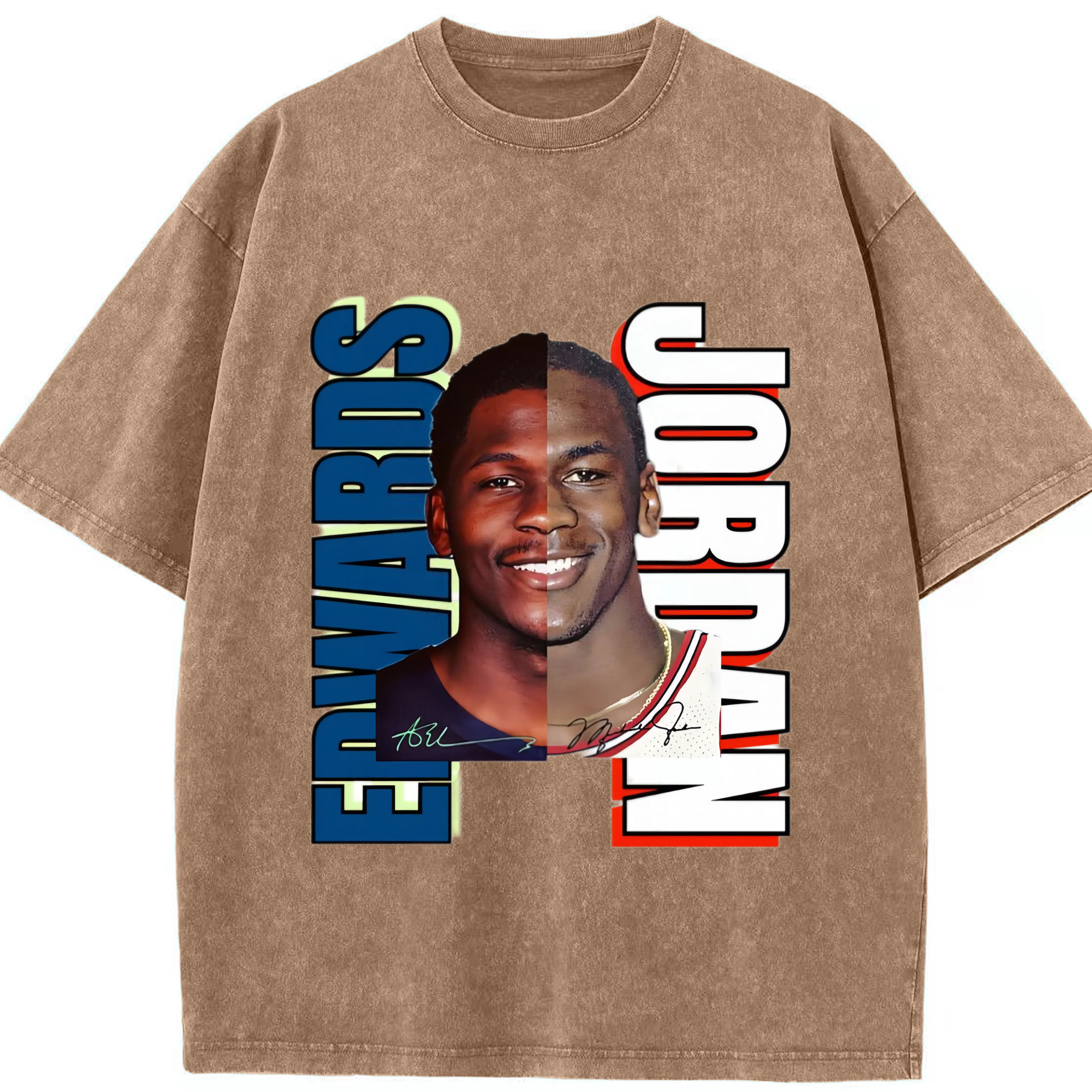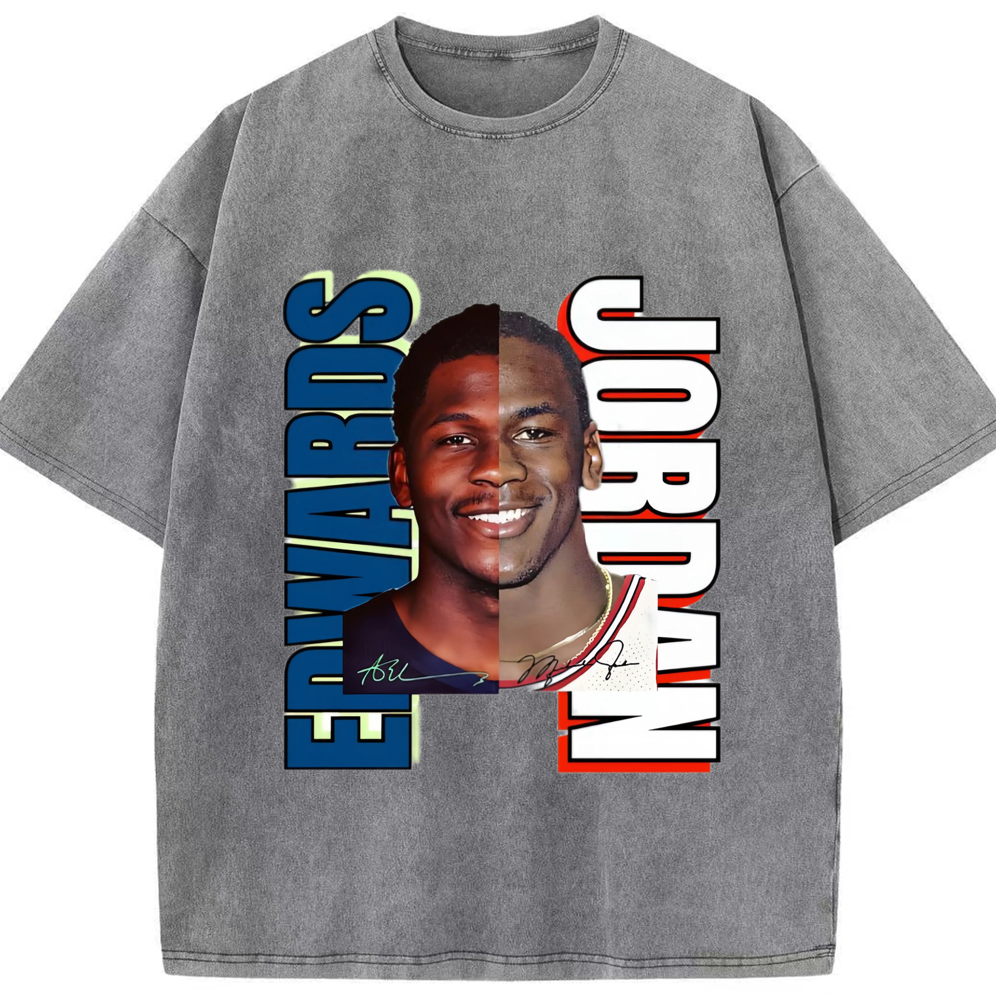 Anthony Edwards next Jordan T‑Shirt - Washed Vintage Look 230g Cotton Oversized T-Shirt With Front Heat Transfer Print – Soft, Lightweight, Stylish Fit – Comfortable Casual Wear For Sports & Everyday Use