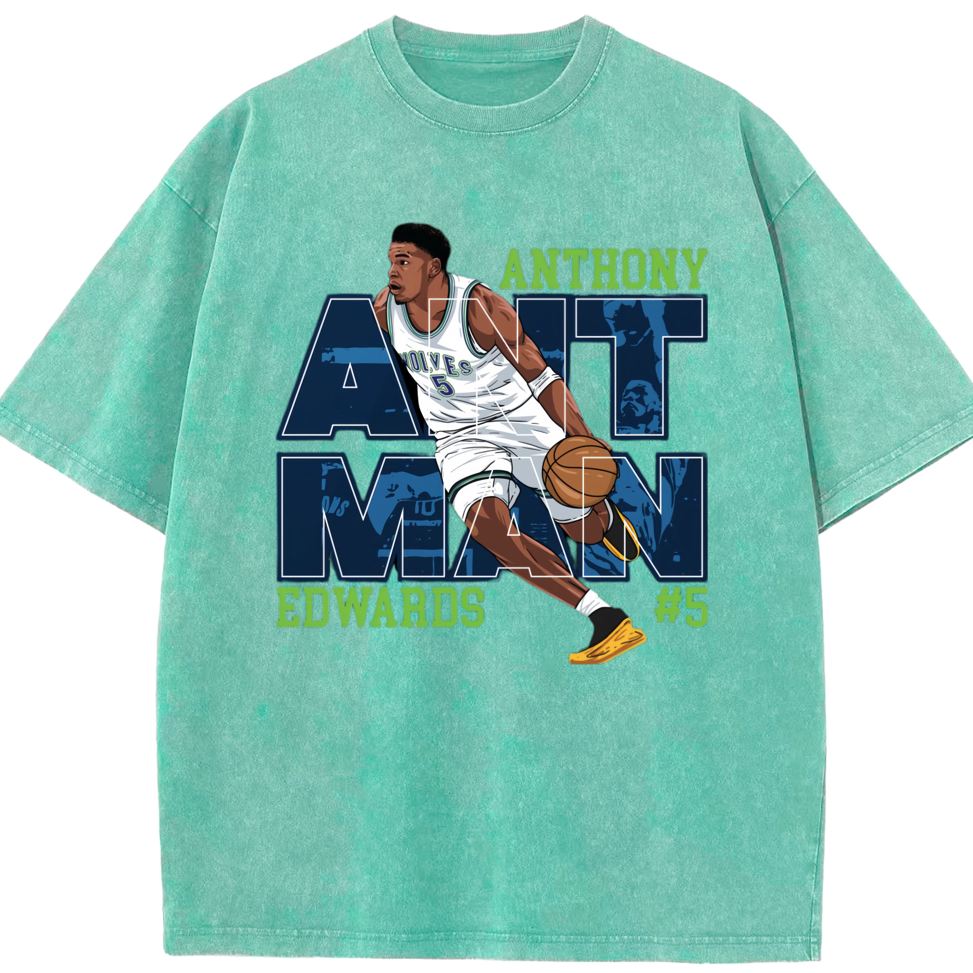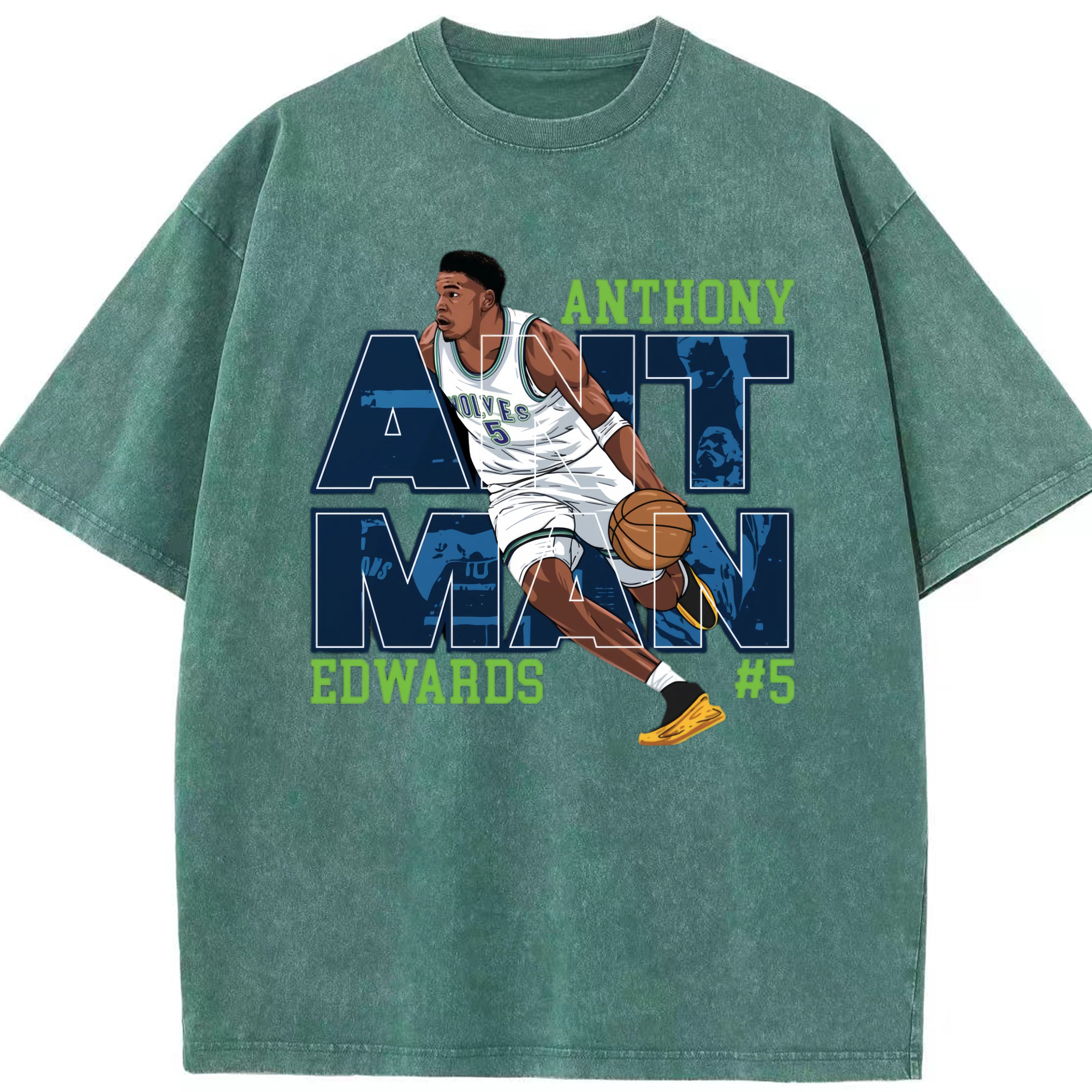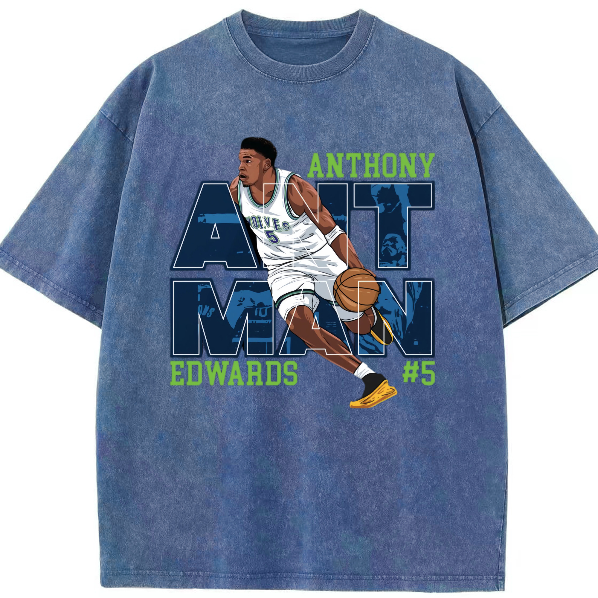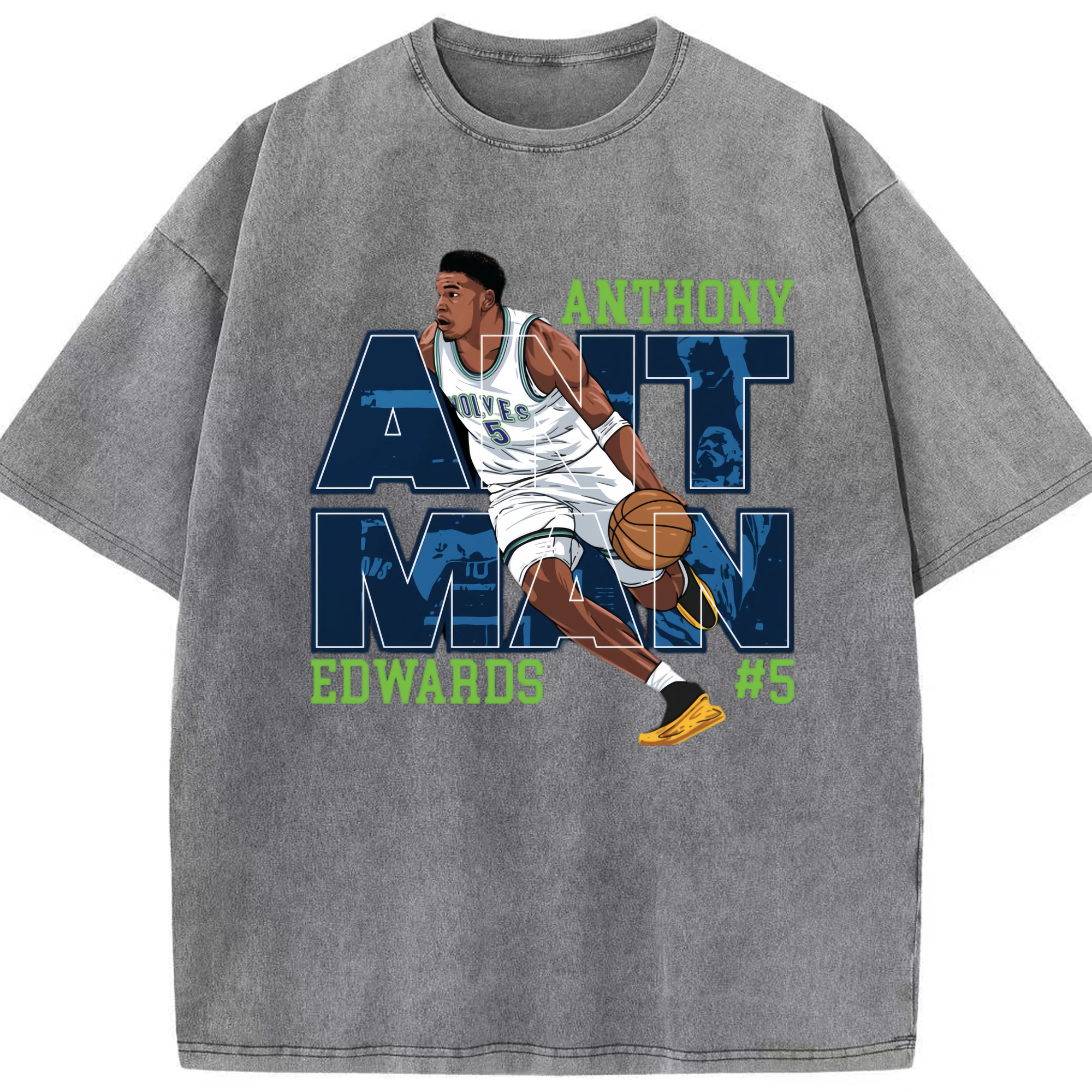 Anthony Edwards Timberwolves #5 cartoon T‑Shirt - Washed Vintage Look 230g Cotton Oversized T-Shirt With Front Heat Transfer Print – Soft, Lightweight, Stylish Fit – Comfortable Casual Wear For Sports & Everyday Use