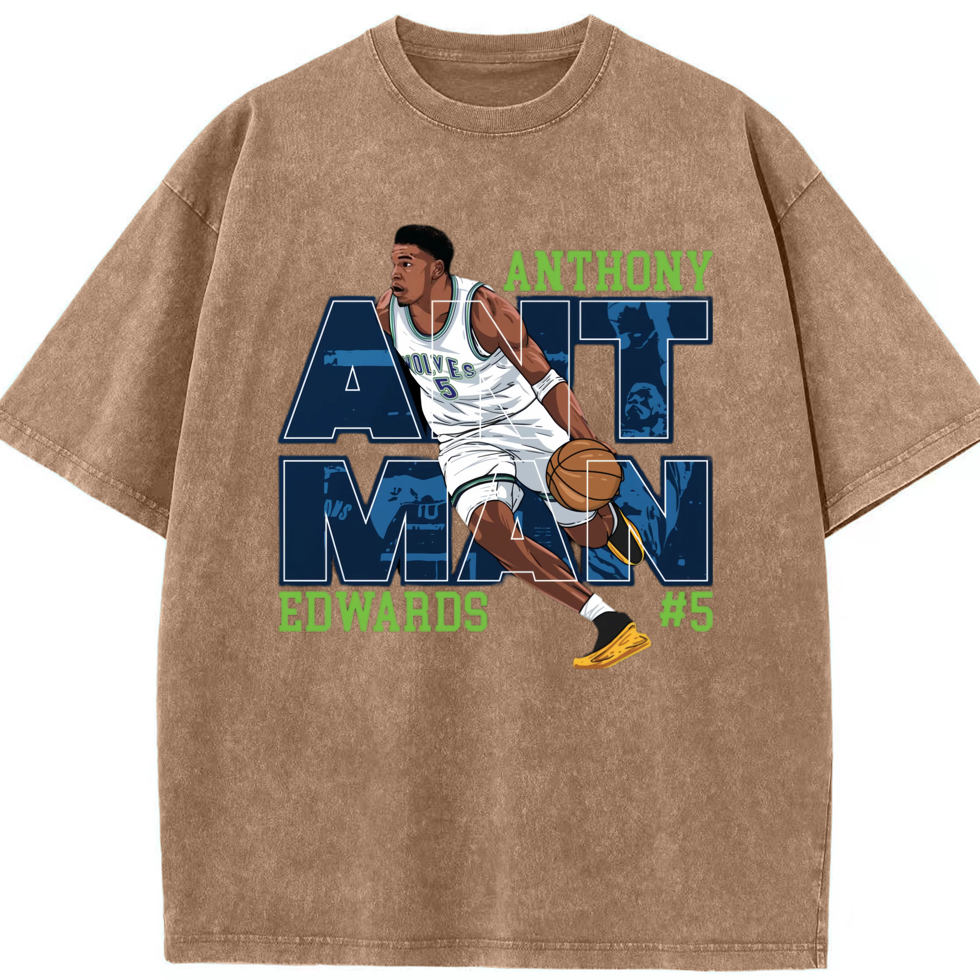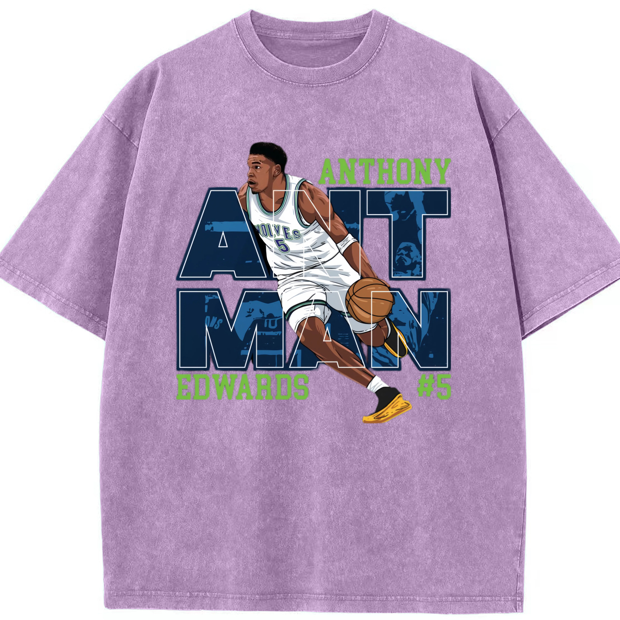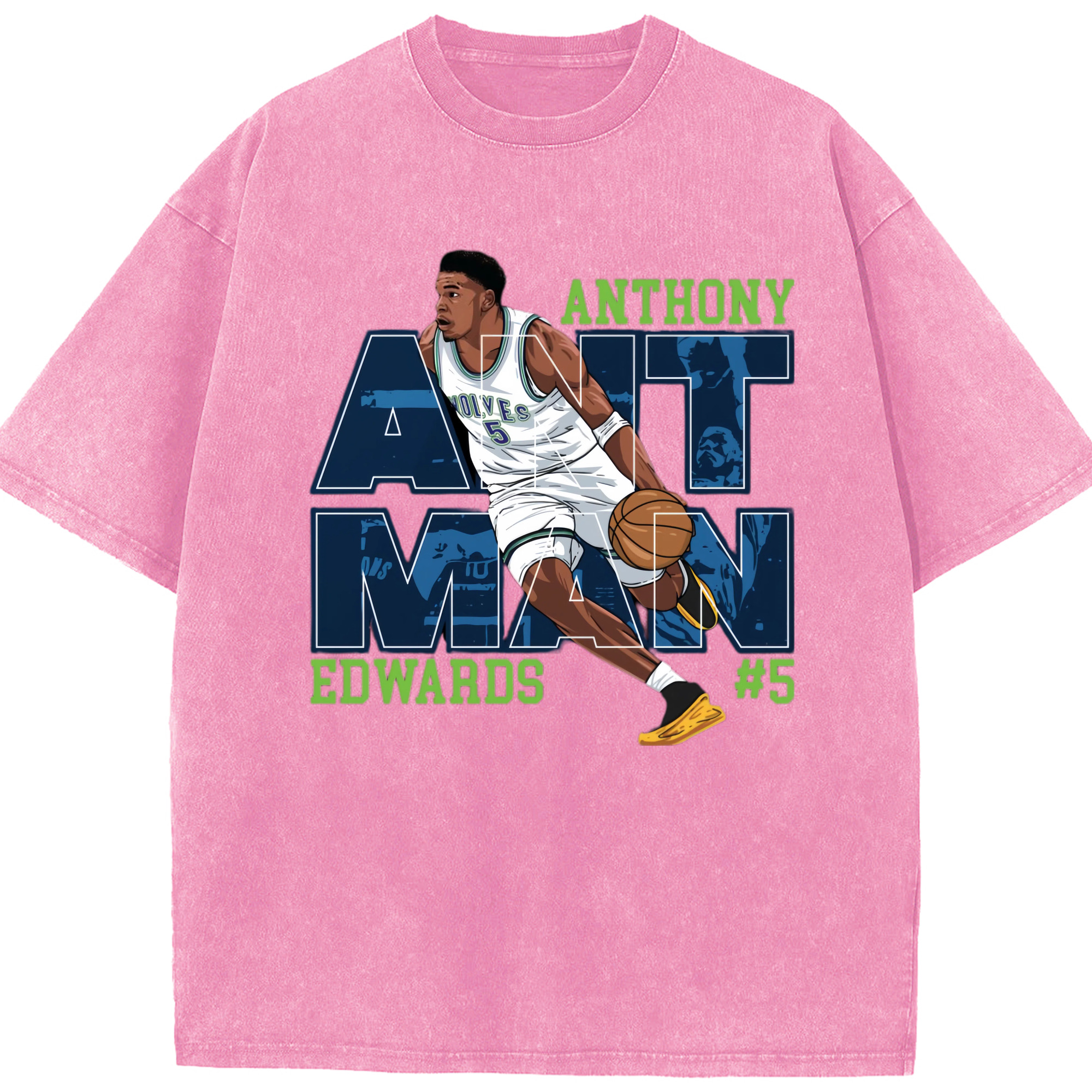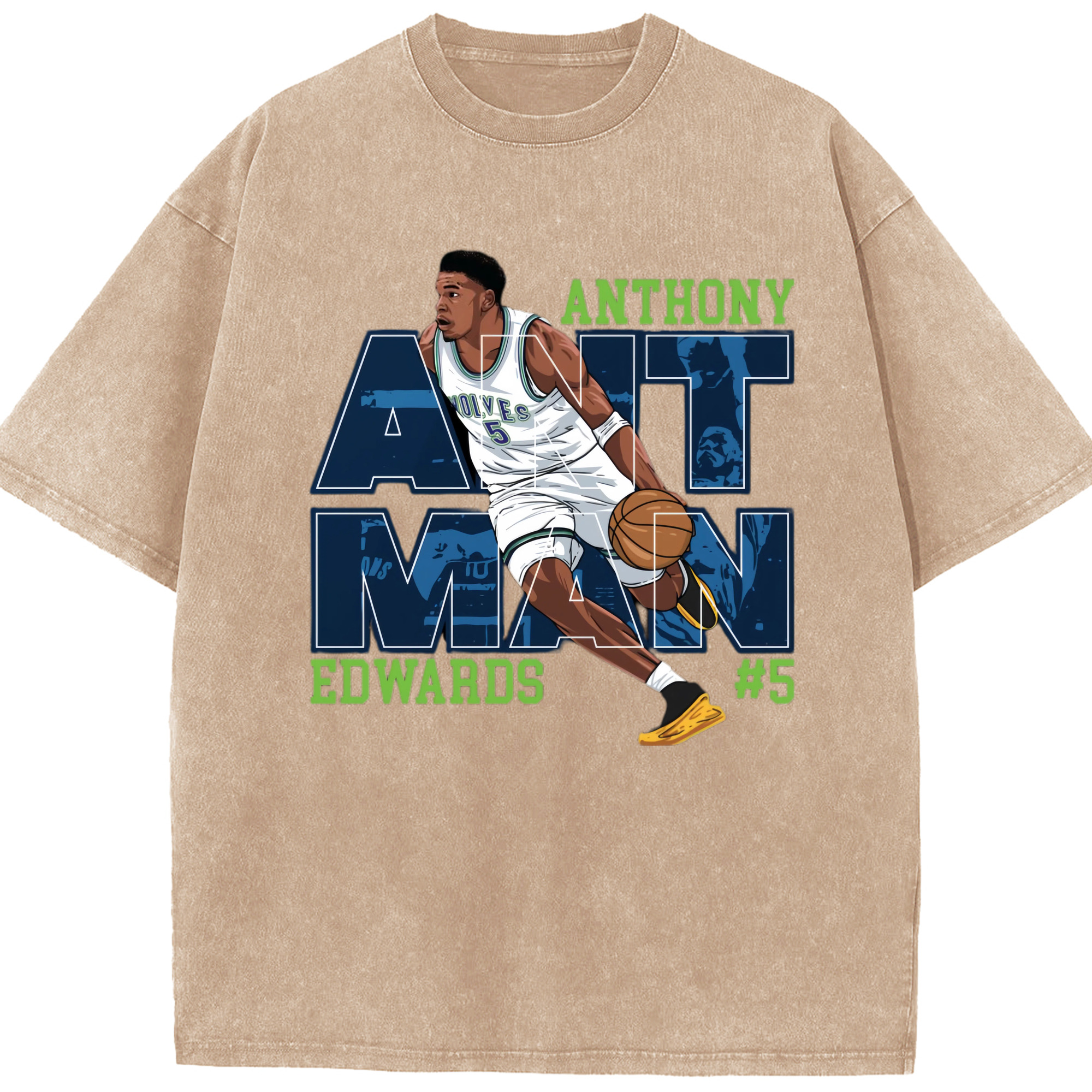 Anthony Edwards Timberwolves #5 cartoon T‑Shirt - Washed Vintage Look 230g Cotton Oversized T-Shirt With Front Heat Transfer Print – Soft, Lightweight, Stylish Fit – Comfortable Casual Wear For Sports & Everyday Use