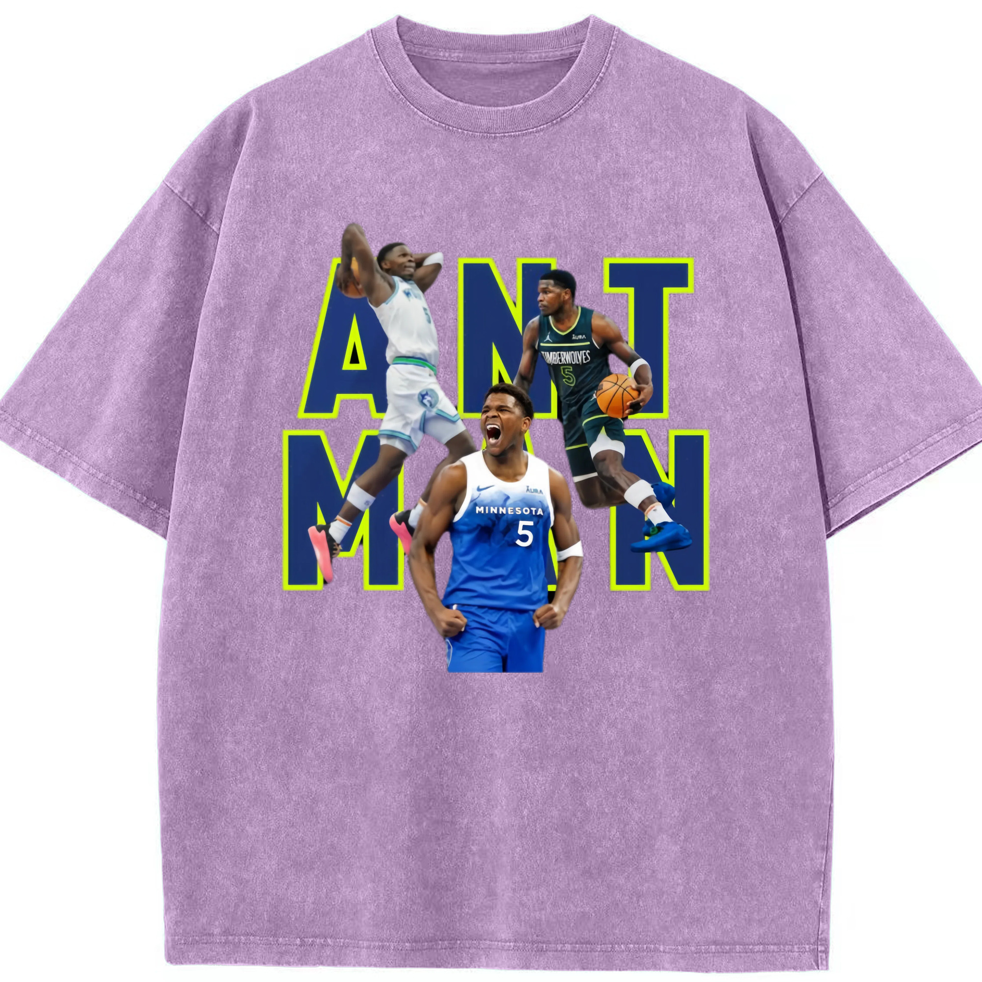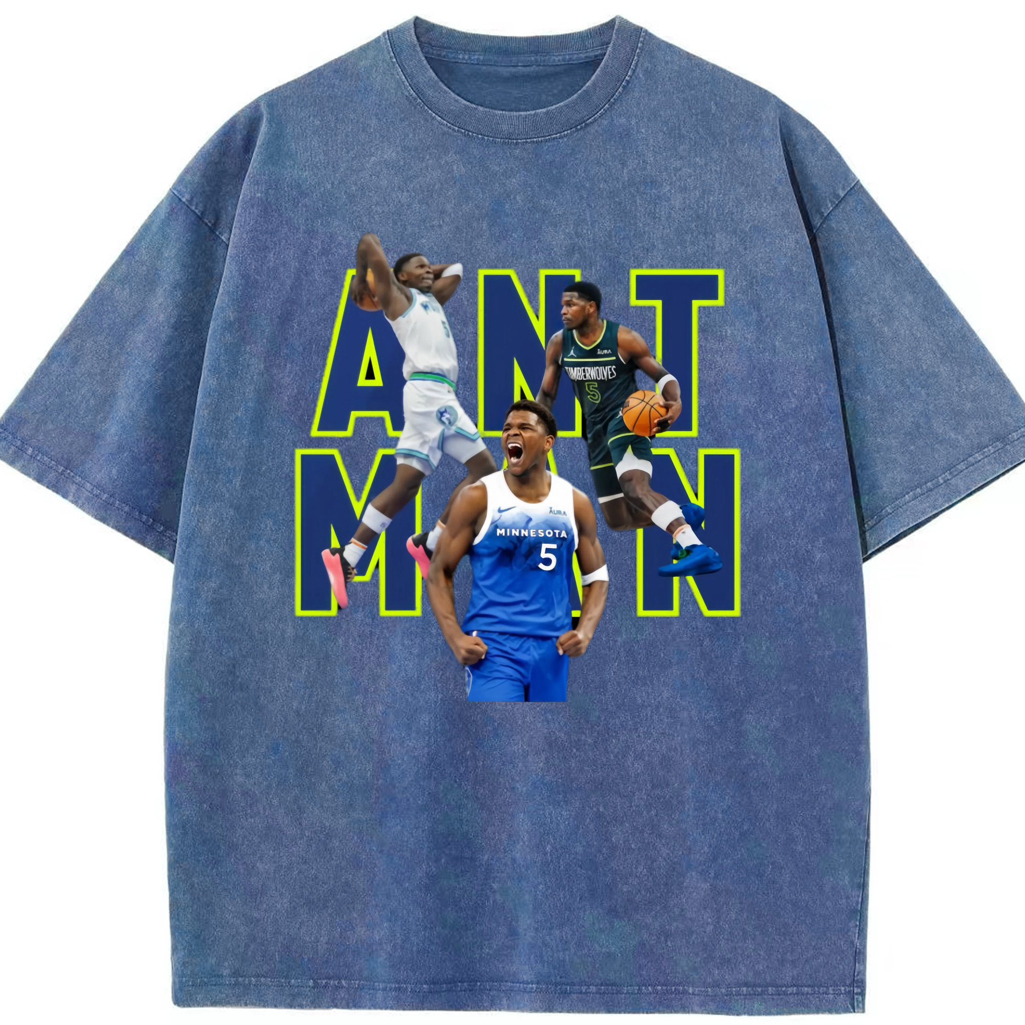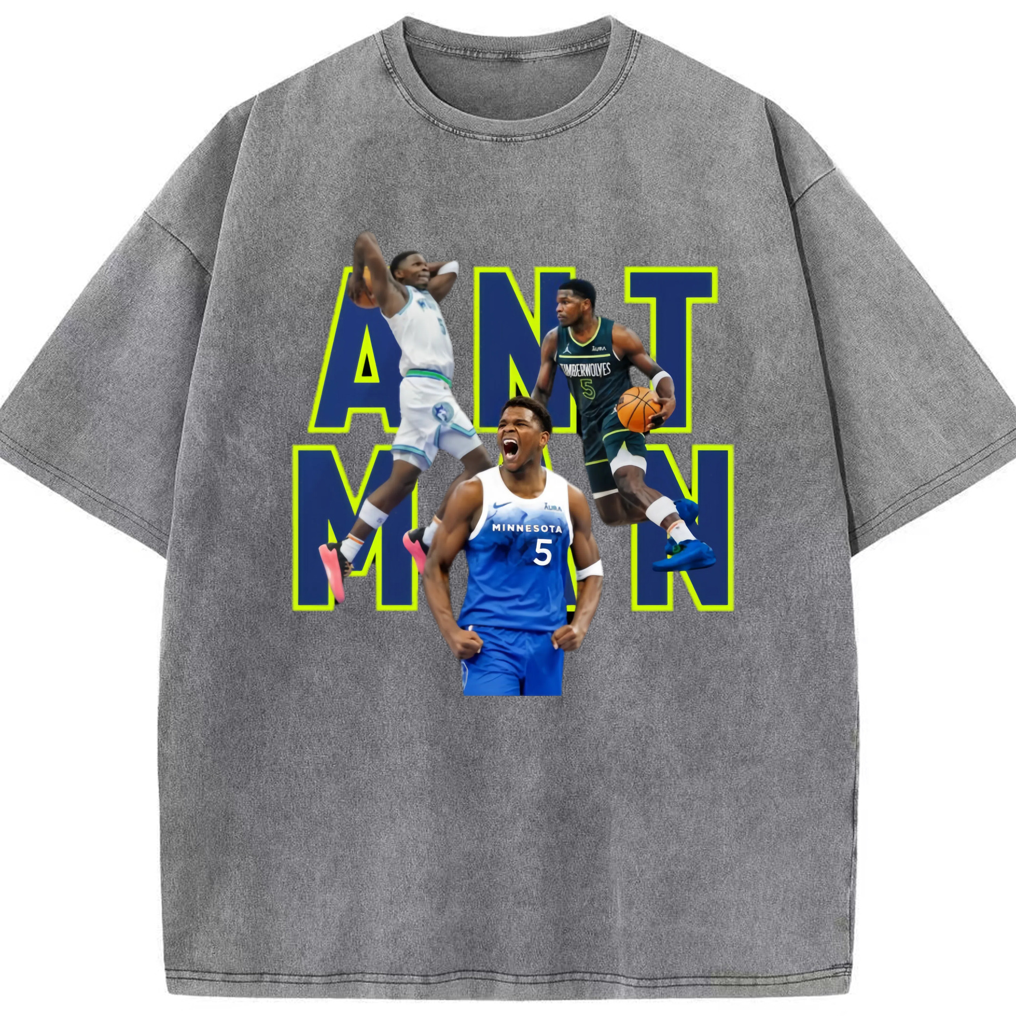 Anthony Edwards Timberwolves #5 T‑Shirt - Washed Vintage Look 230g Cotton Oversized T-Shirt With Front Heat Transfer Print – Soft, Lightweight, Stylish Fit – Comfortable Casual Wear For Sports & Everyday Use