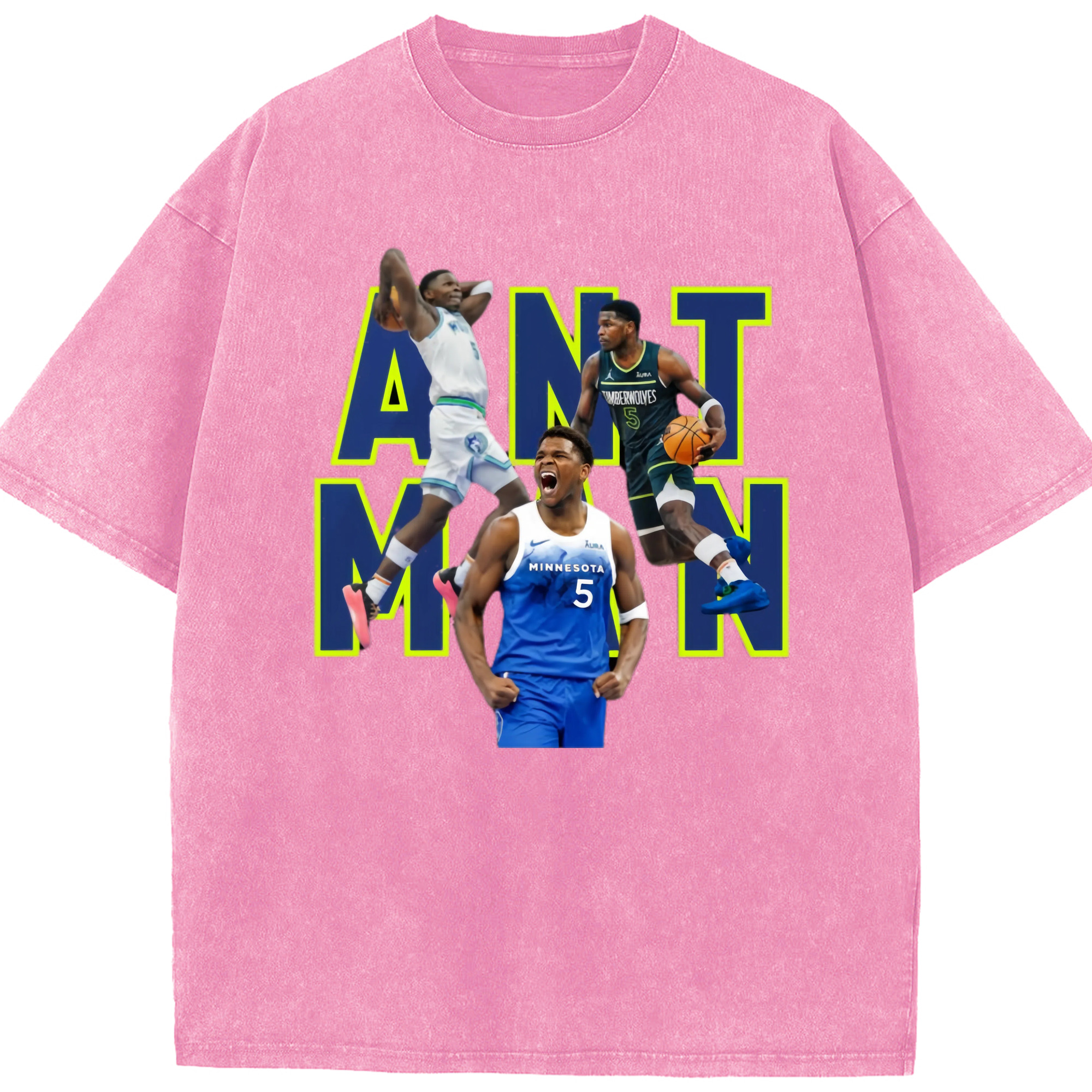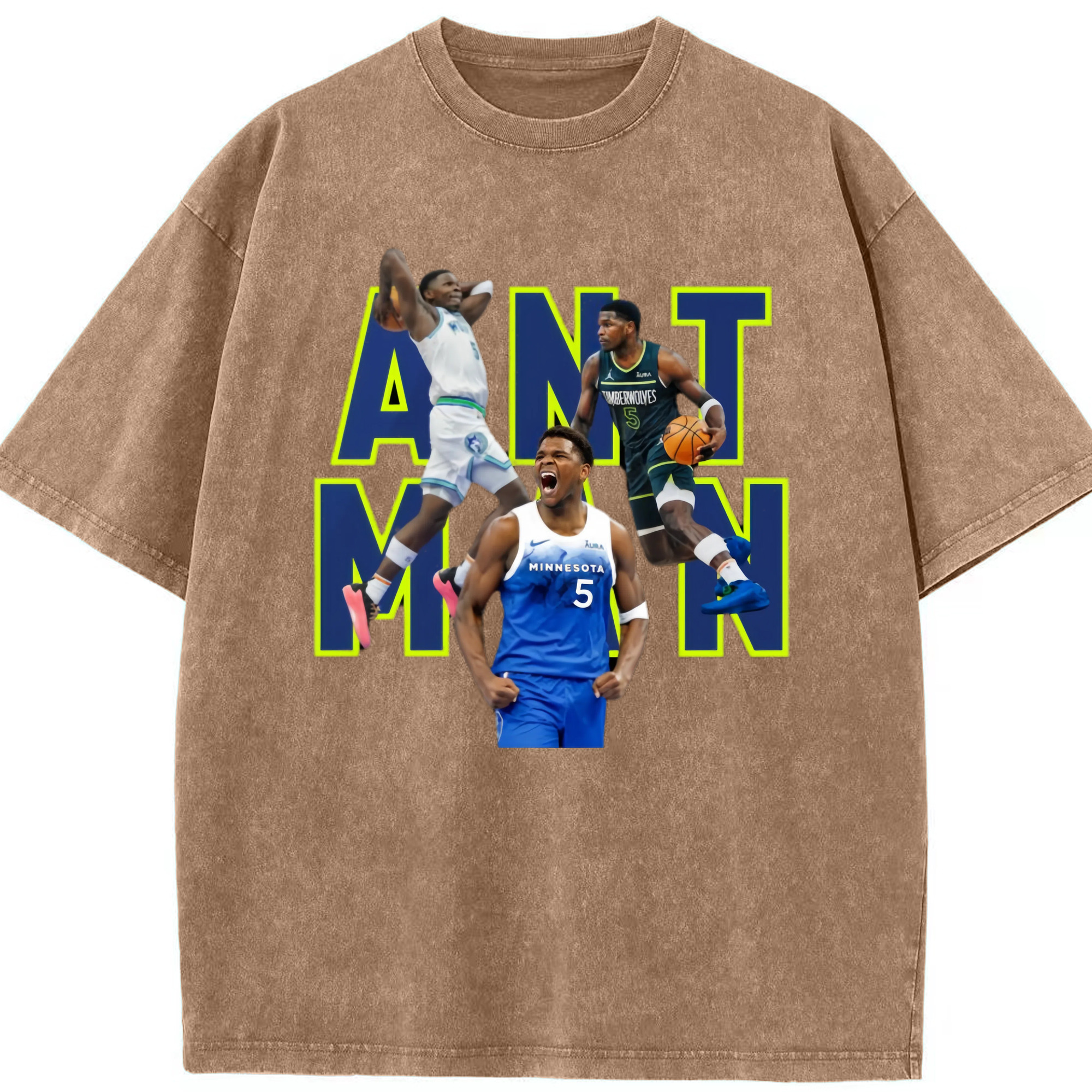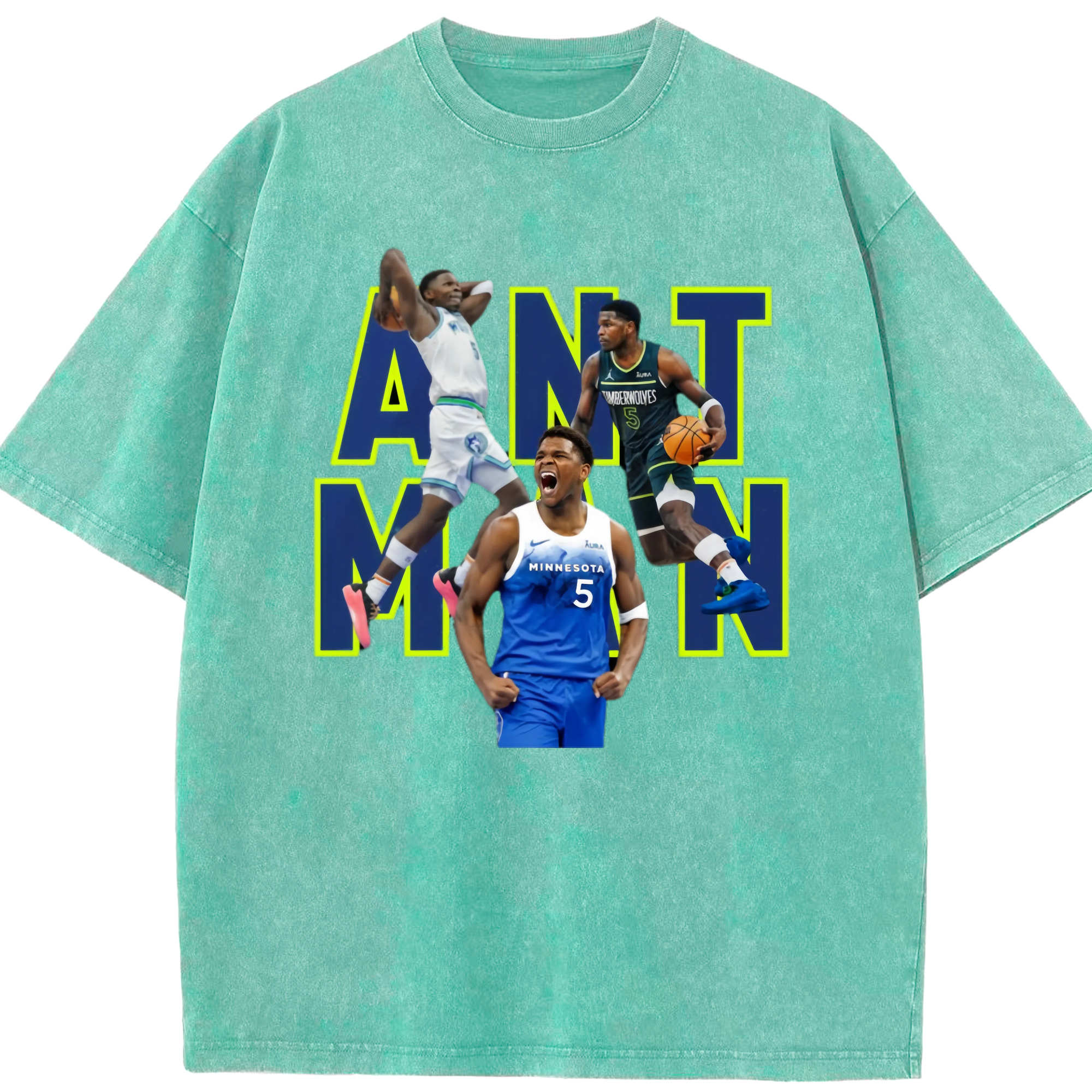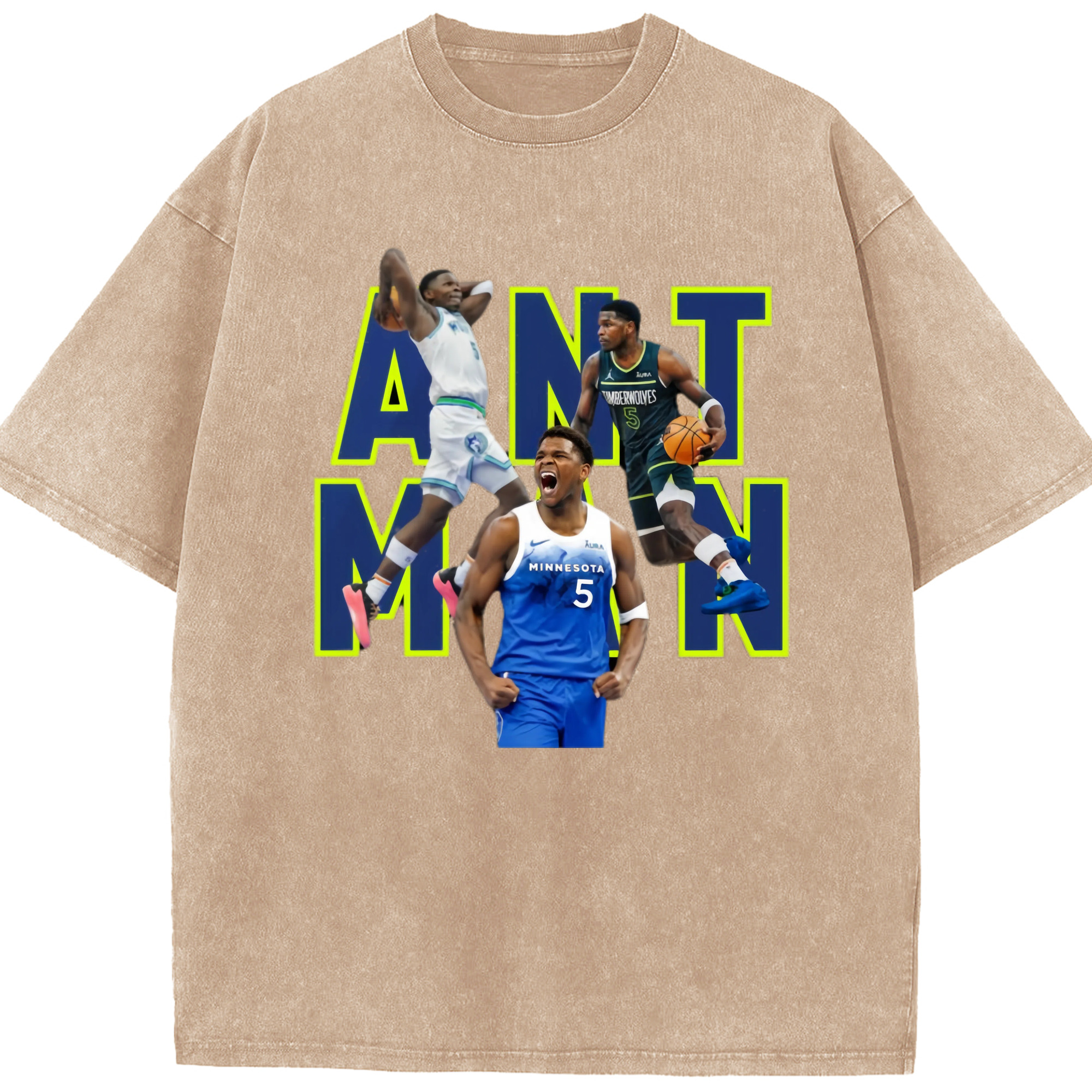 Anthony Edwards Timberwolves #5 T‑Shirt - Washed Vintage Look 230g Cotton Oversized T-Shirt With Front Heat Transfer Print – Soft, Lightweight, Stylish Fit – Comfortable Casual Wear For Sports & Everyday Use