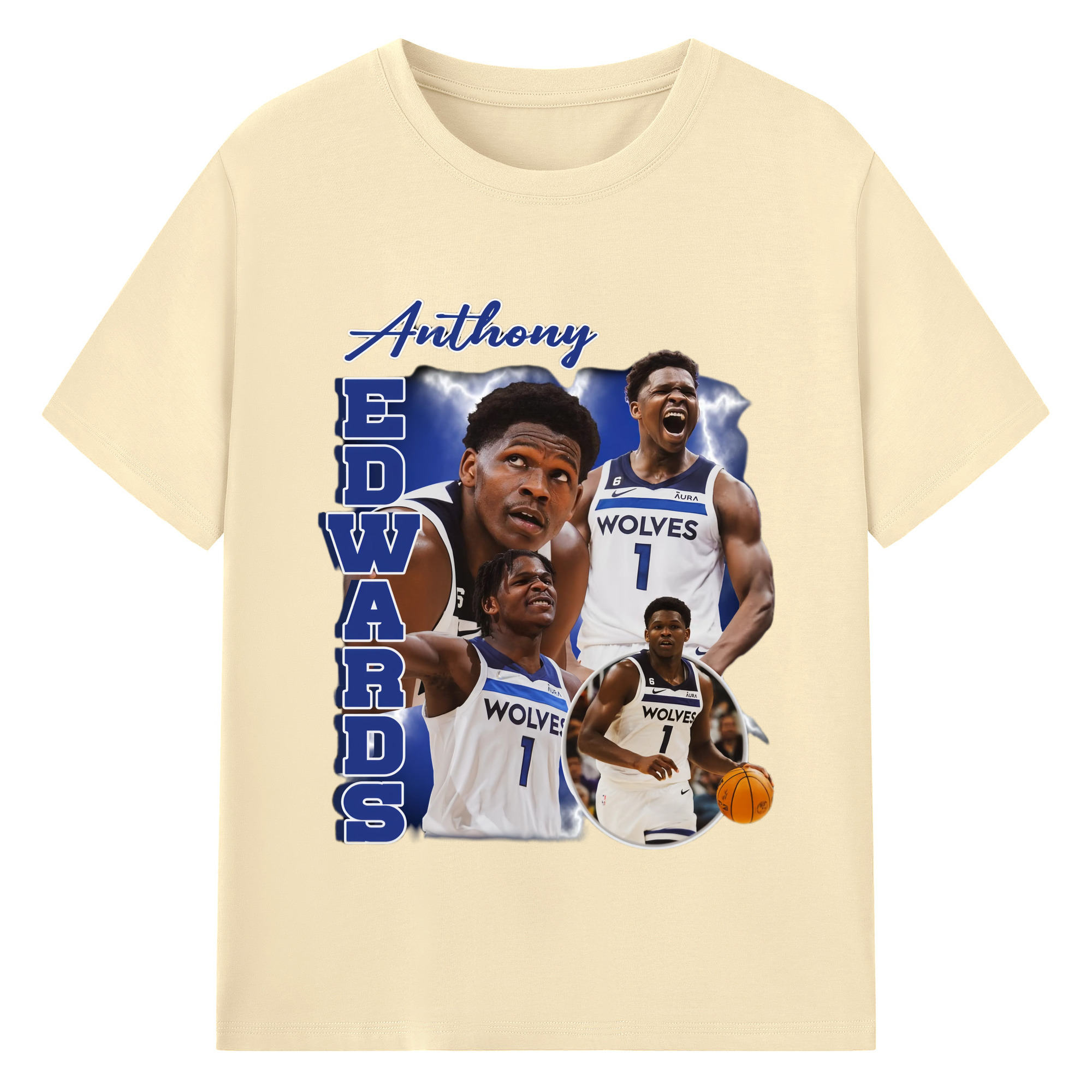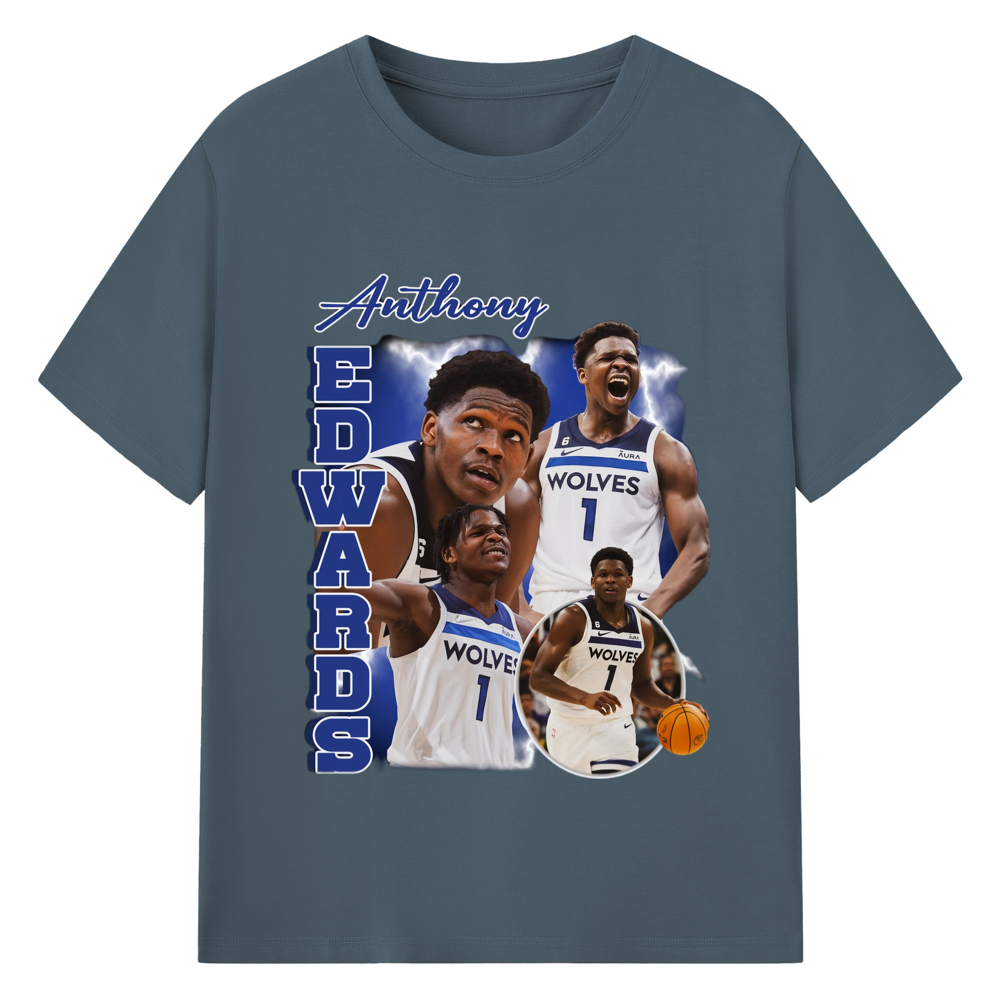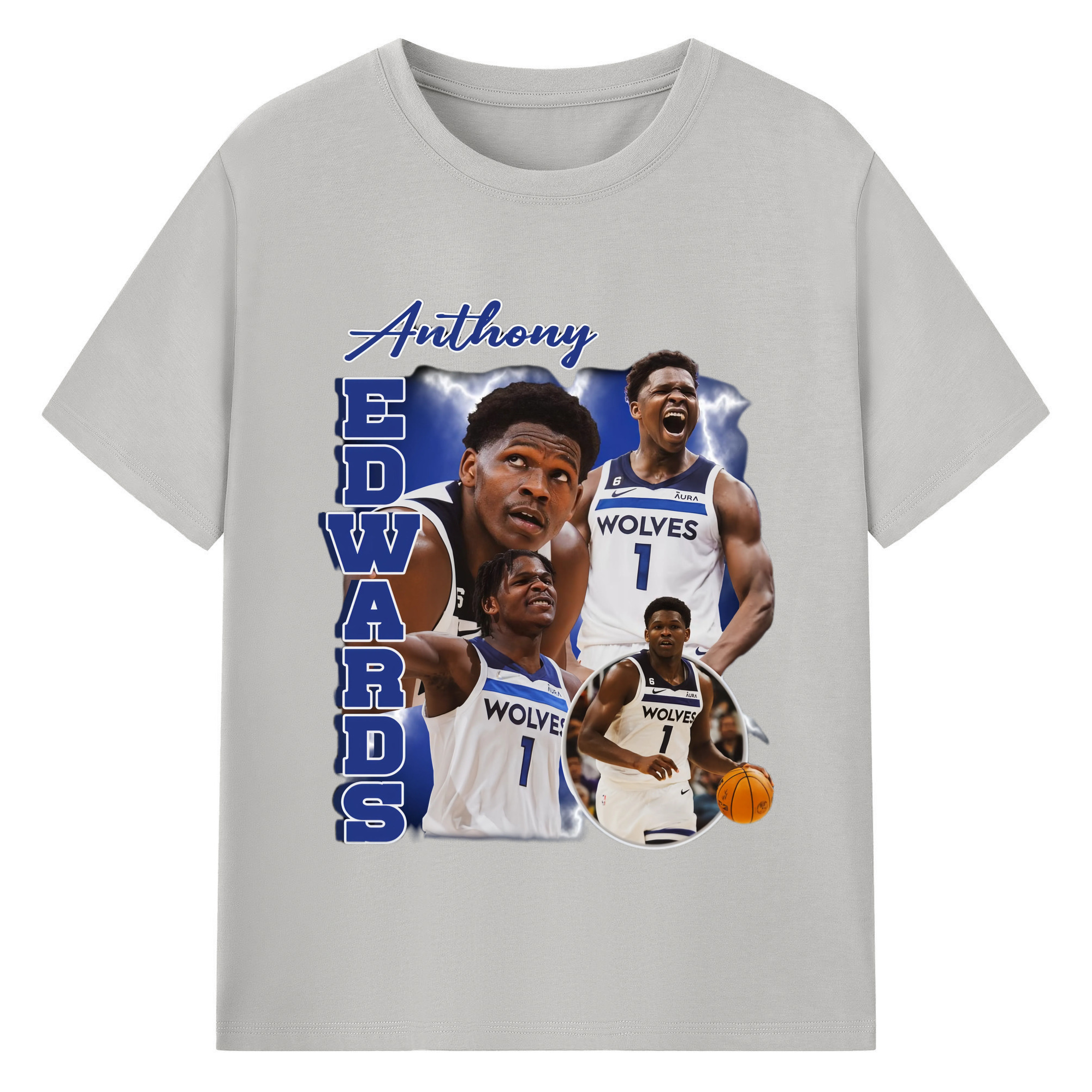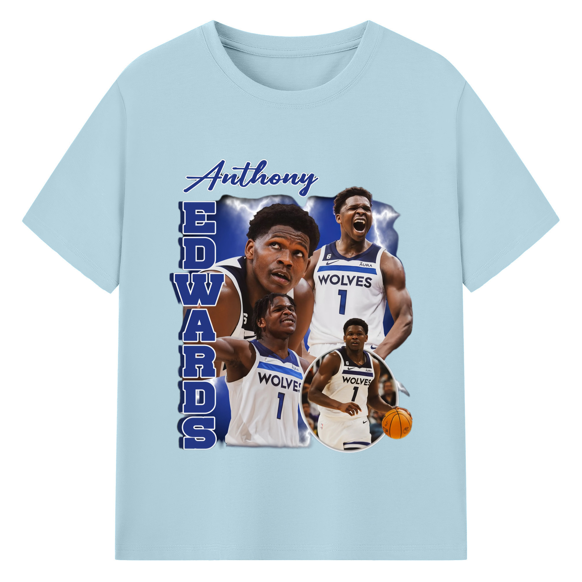 Anthony Edwards Timberwolves collage graphic T-shirt - 180g Cotton T-Shirt With Front Heat Transfer Print – Soft, Lightweight, Fitted Design – Comfortable Casual Wear For Sports & Everyday Use