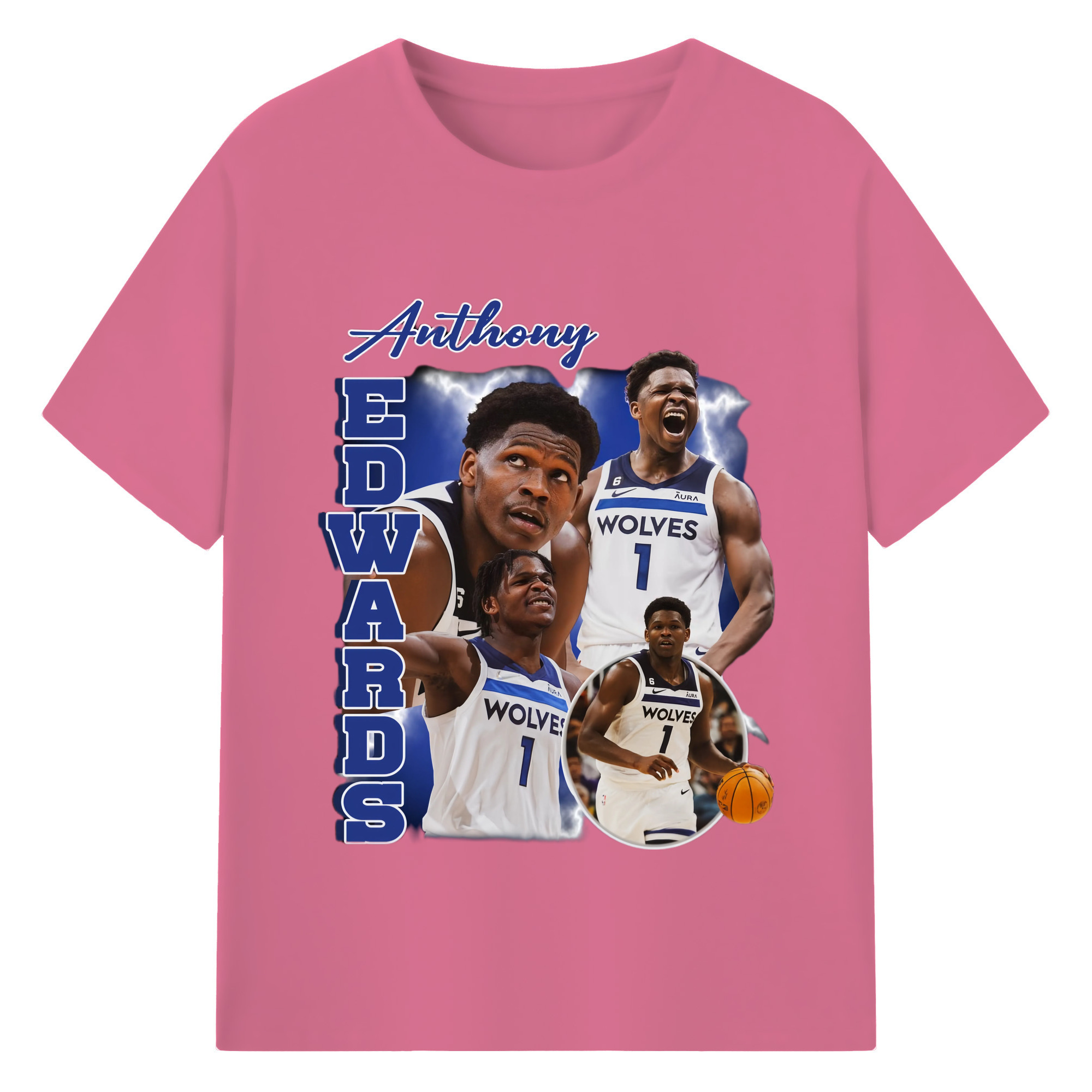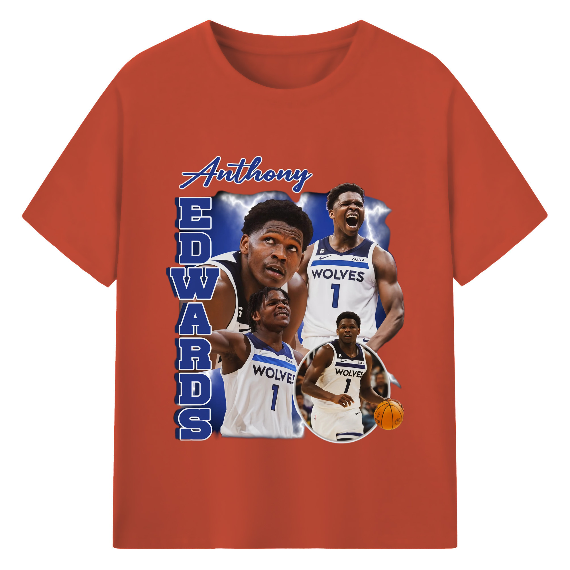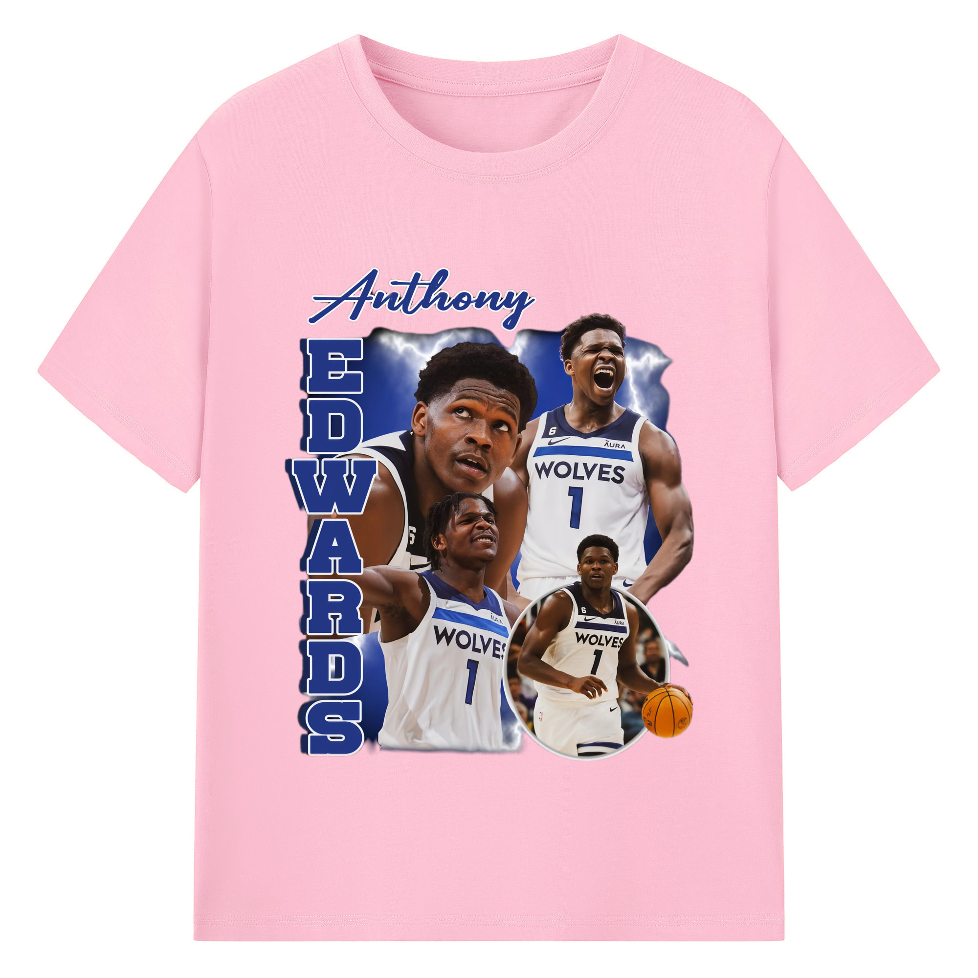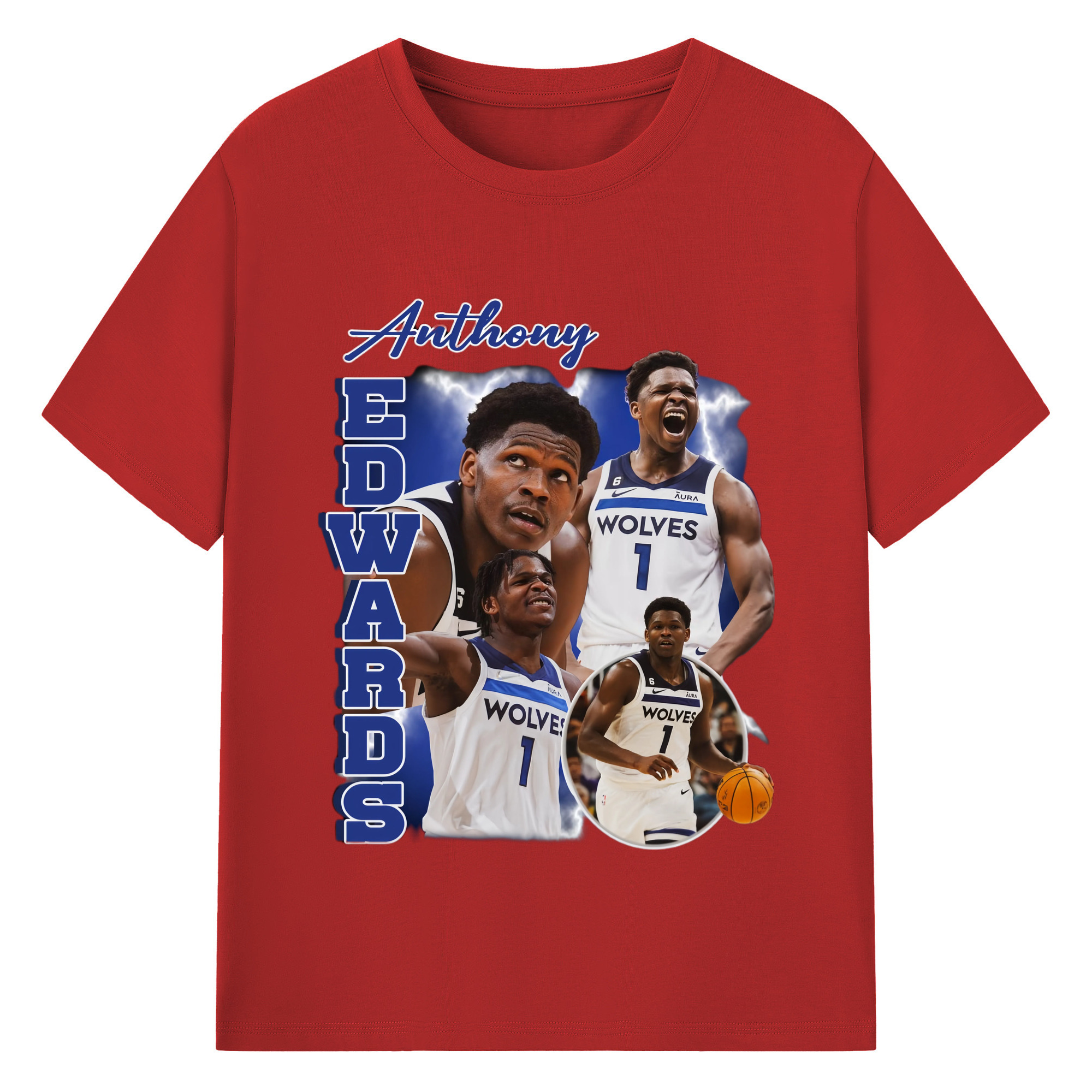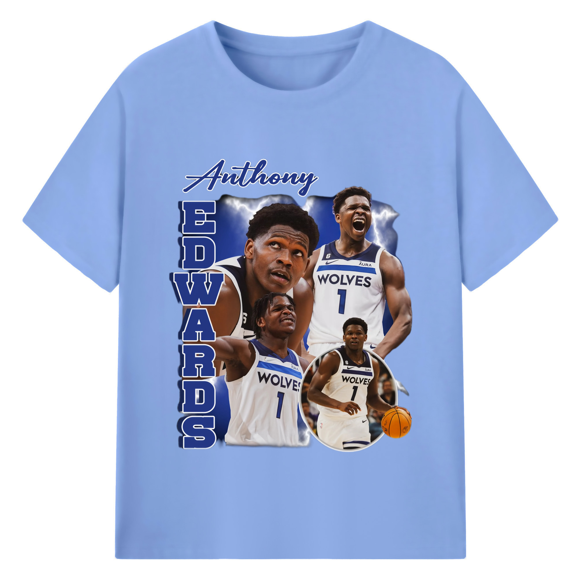 Anthony Edwards Timberwolves collage graphic T-shirt - 180g Cotton T-Shirt With Front Heat Transfer Print – Soft, Lightweight, Fitted Design – Comfortable Casual Wear For Sports & Everyday Use
