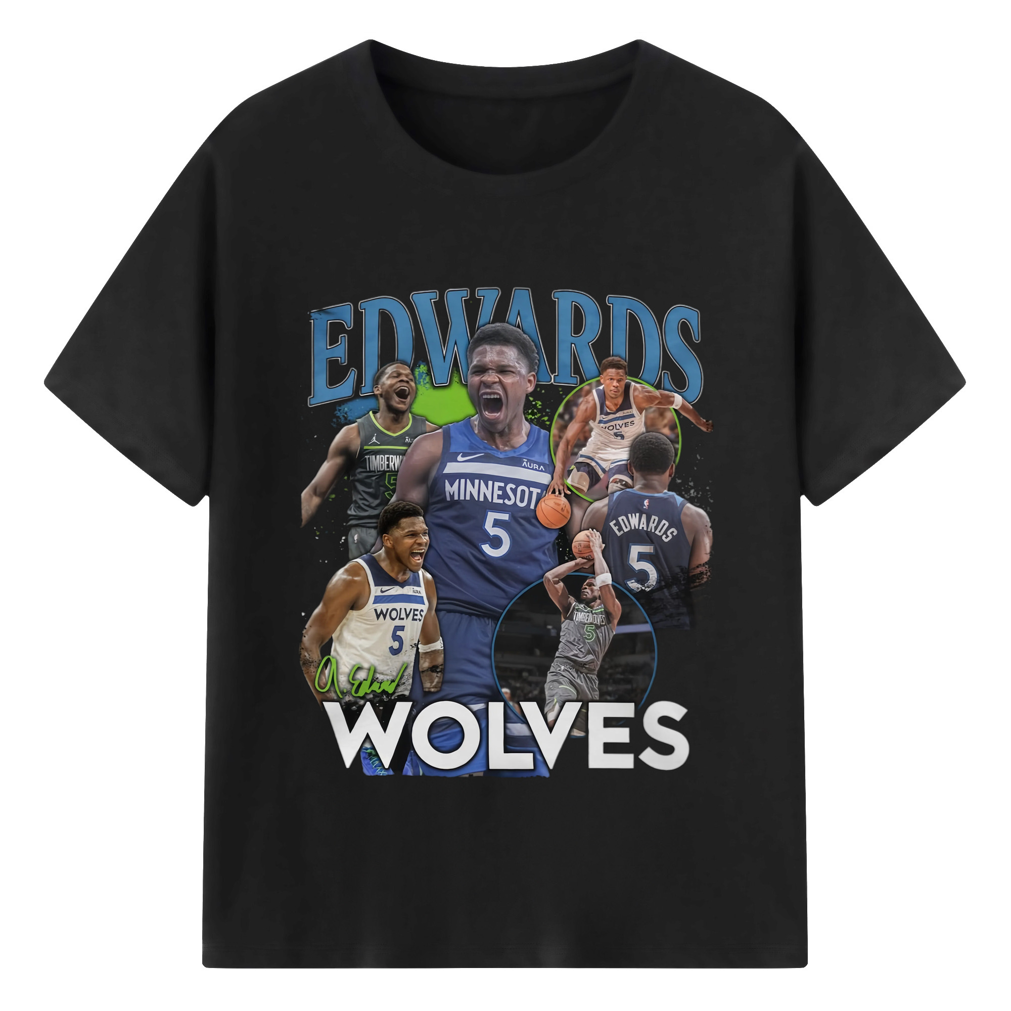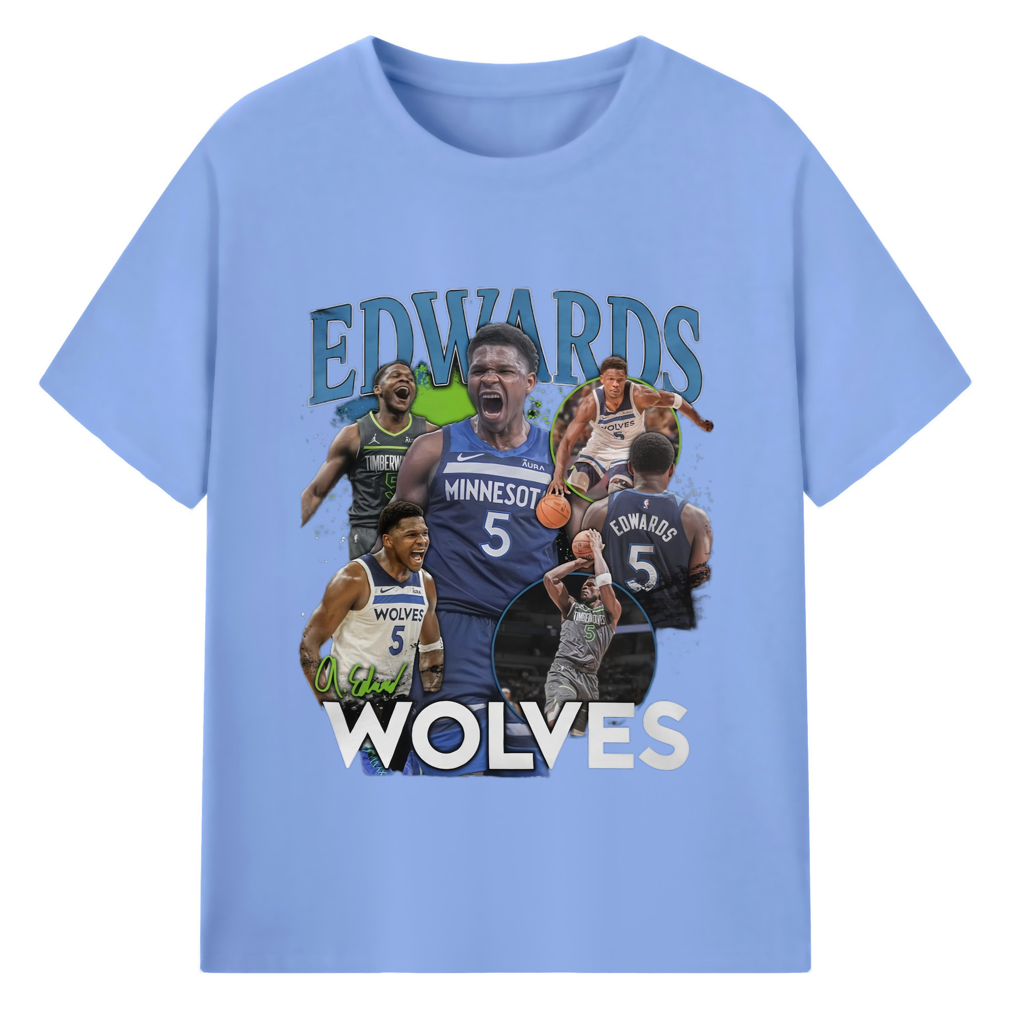 Anthony Edwards Timberwolves T‑Shirt - 180g Cotton T-Shirt With Front Heat Transfer Print – Soft, Lightweight, Fitted Design – Comfortable Casual Wear For Sports & Everyday Use