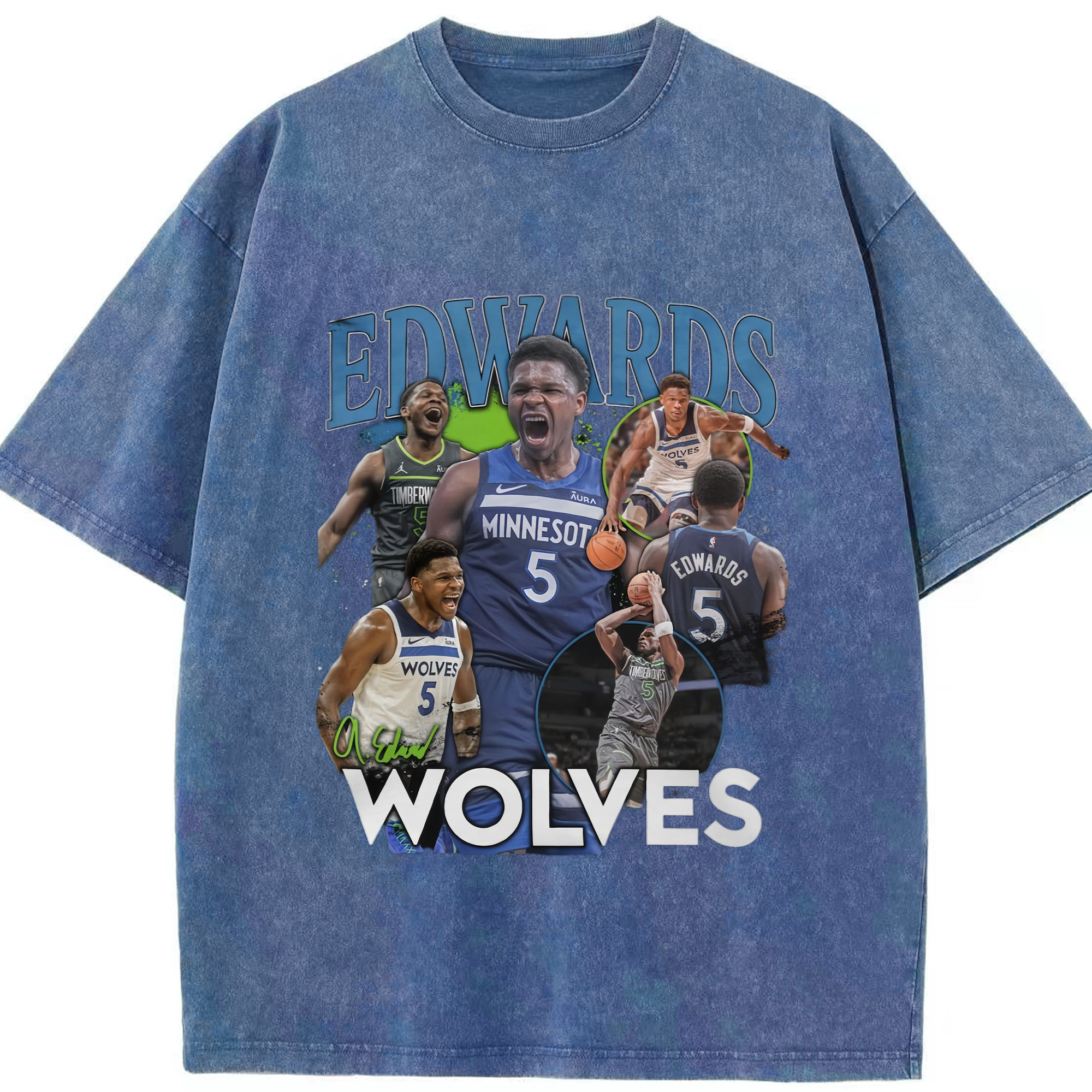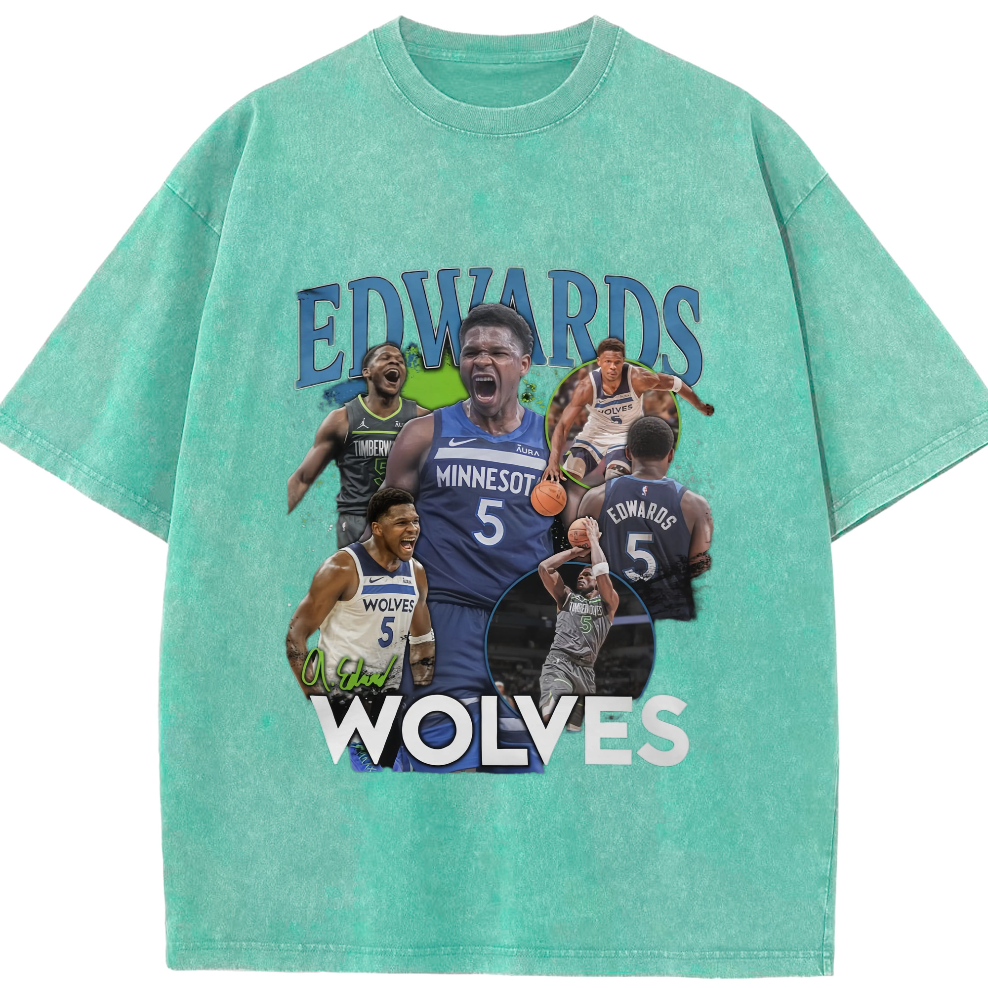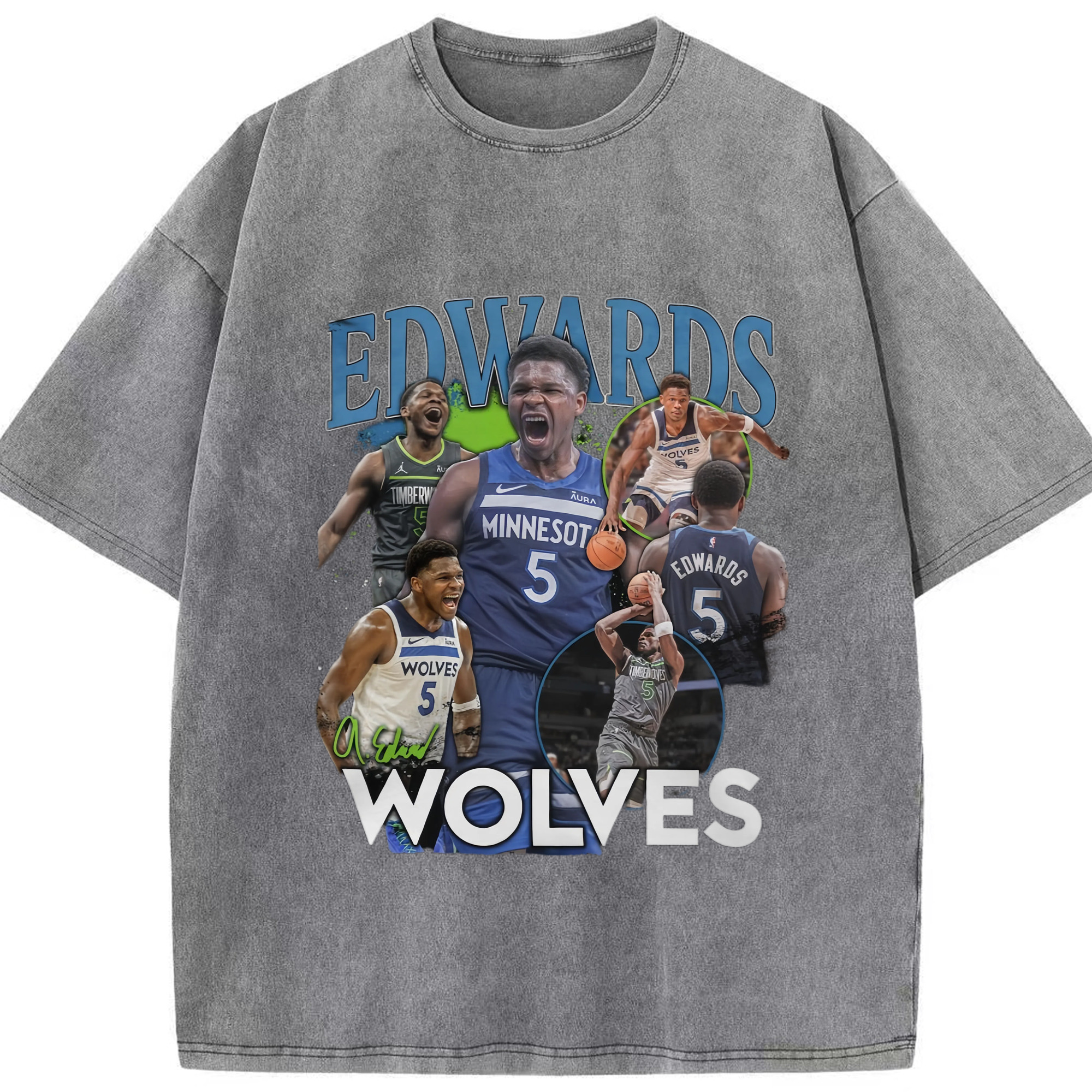 Anthony Edwards Timberwolves T‑Shirt - Washed Vintage Look 230g Cotton Oversized T-Shirt With Front Heat Transfer Print – Soft, Lightweight, Stylish Fit – Comfortable Casual Wear For Sports & Everyday Use