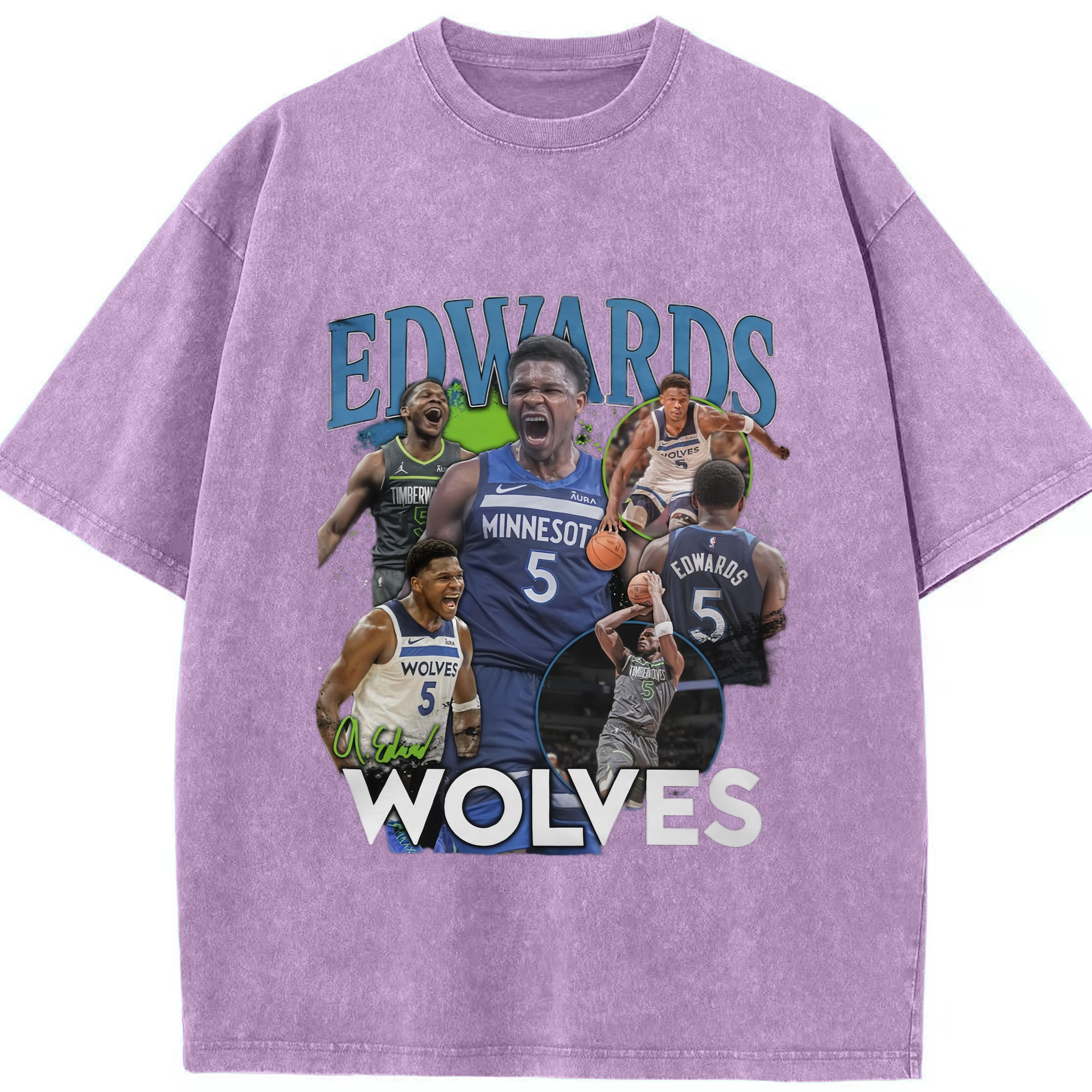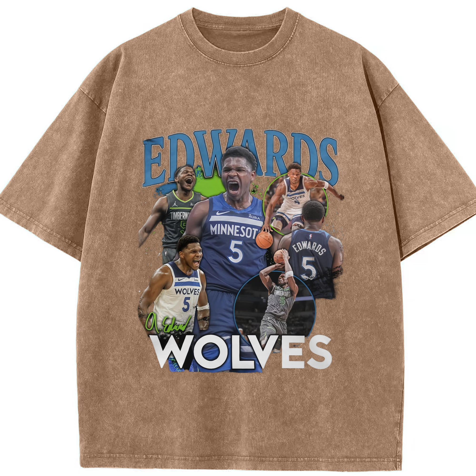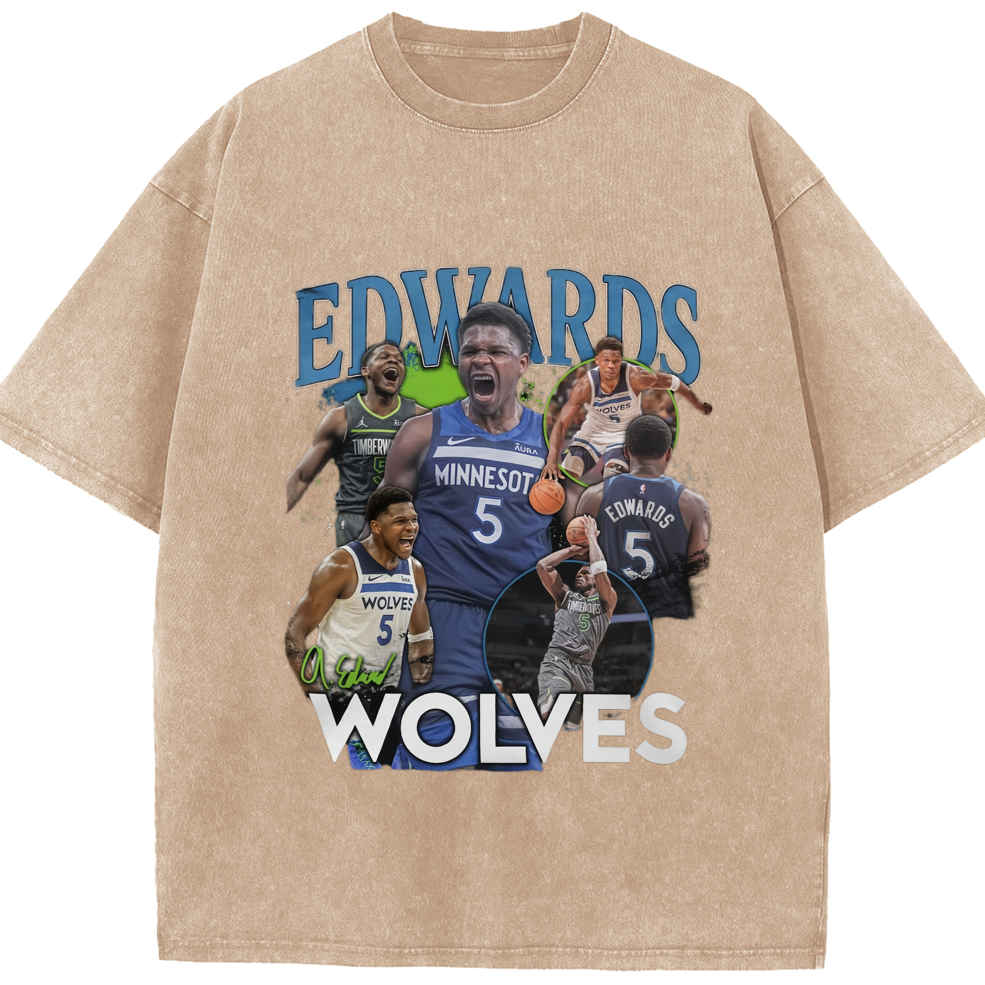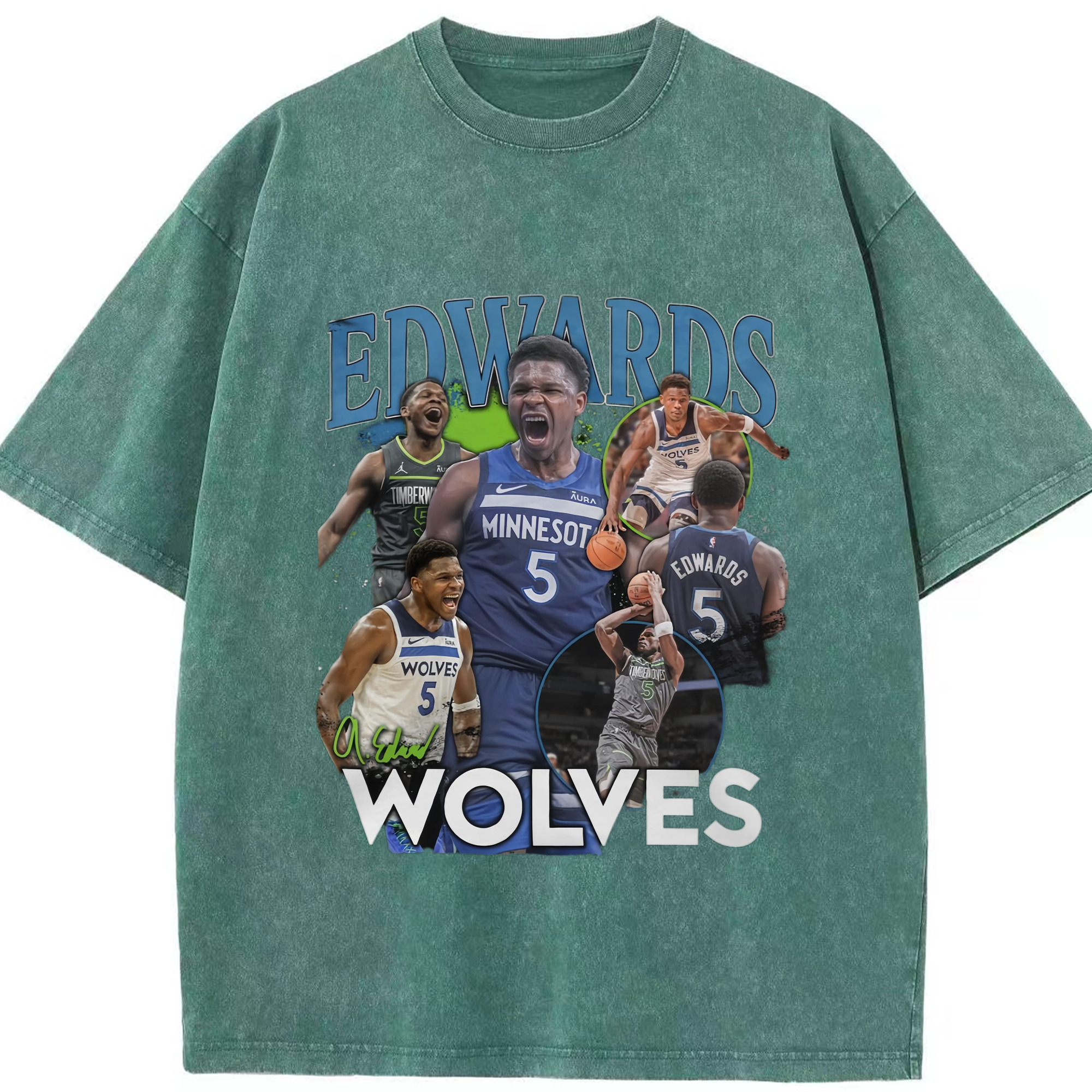 Anthony Edwards Timberwolves T‑Shirt - Washed Vintage Look 230g Cotton Oversized T-Shirt With Front Heat Transfer Print – Soft, Lightweight, Stylish Fit – Comfortable Casual Wear For Sports & Everyday Use