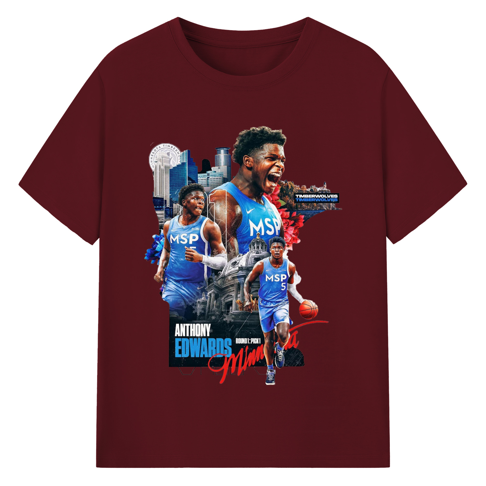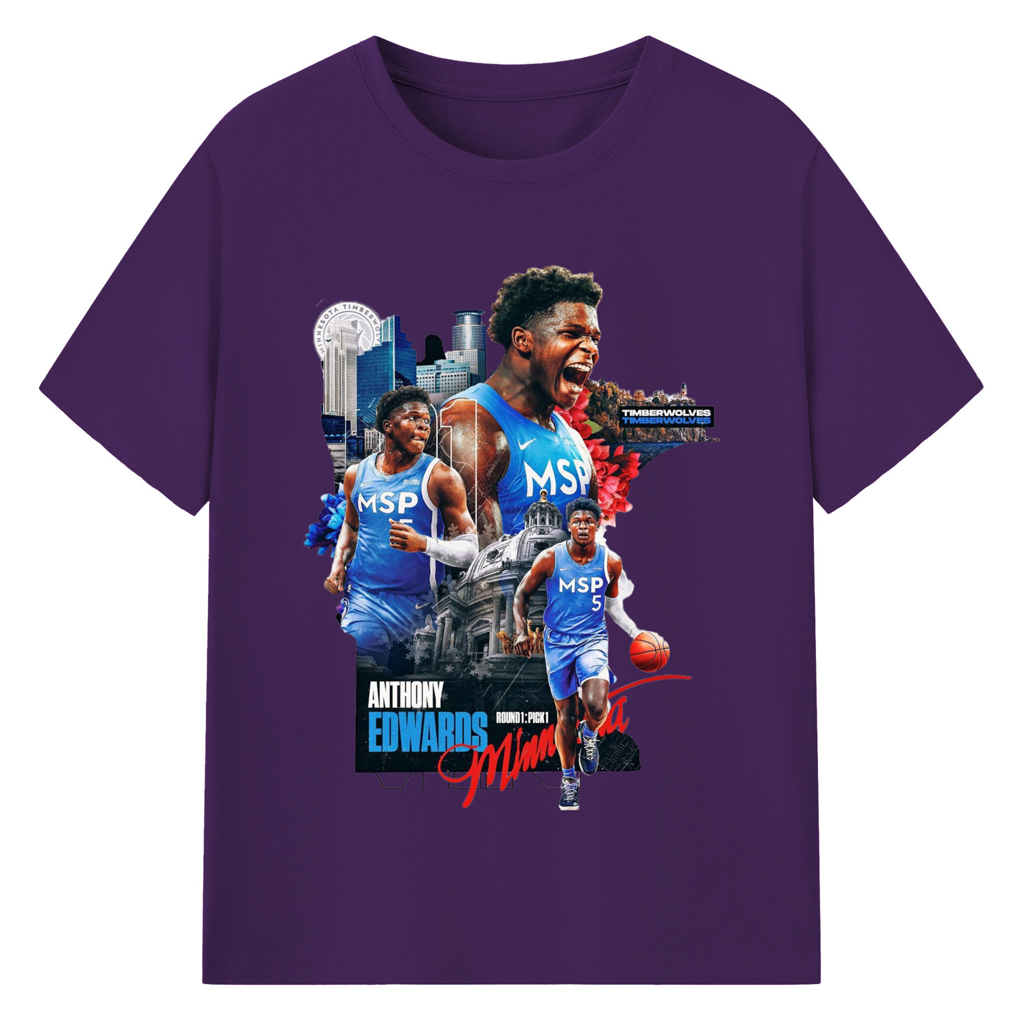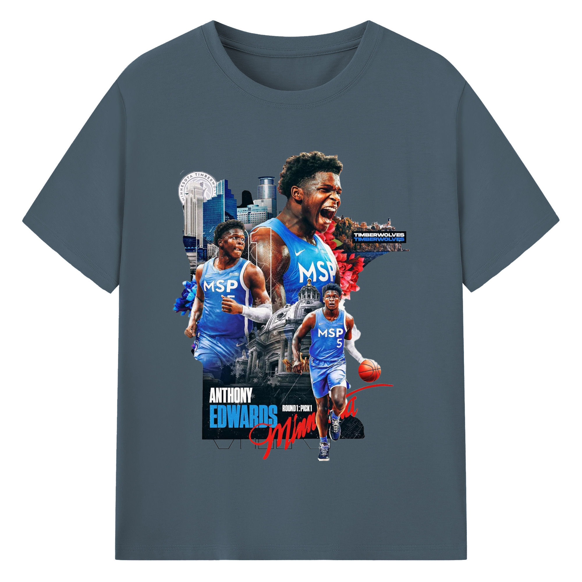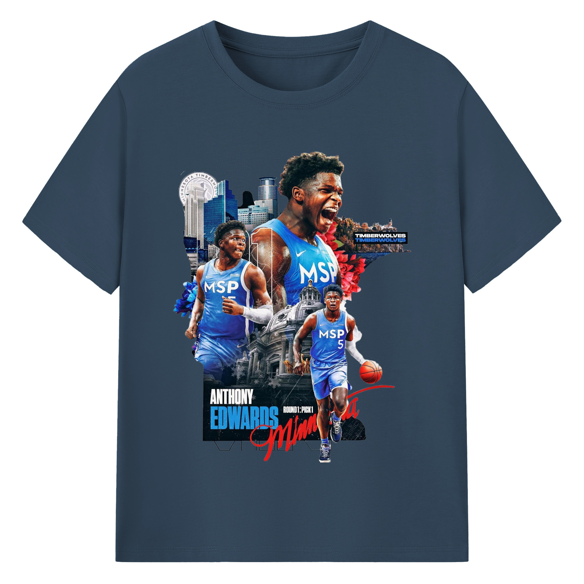 Anthony Edwards Timberwolves Urban Background graphic T-shirt - 180g Cotton T-Shirt With Front Heat Transfer Print – Soft, Lightweight, Fitted Design – Comfortable Casual Wear For Sports & Everyday Use