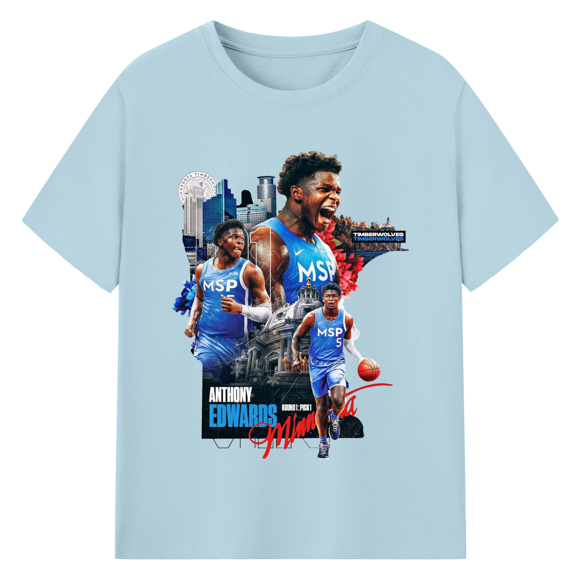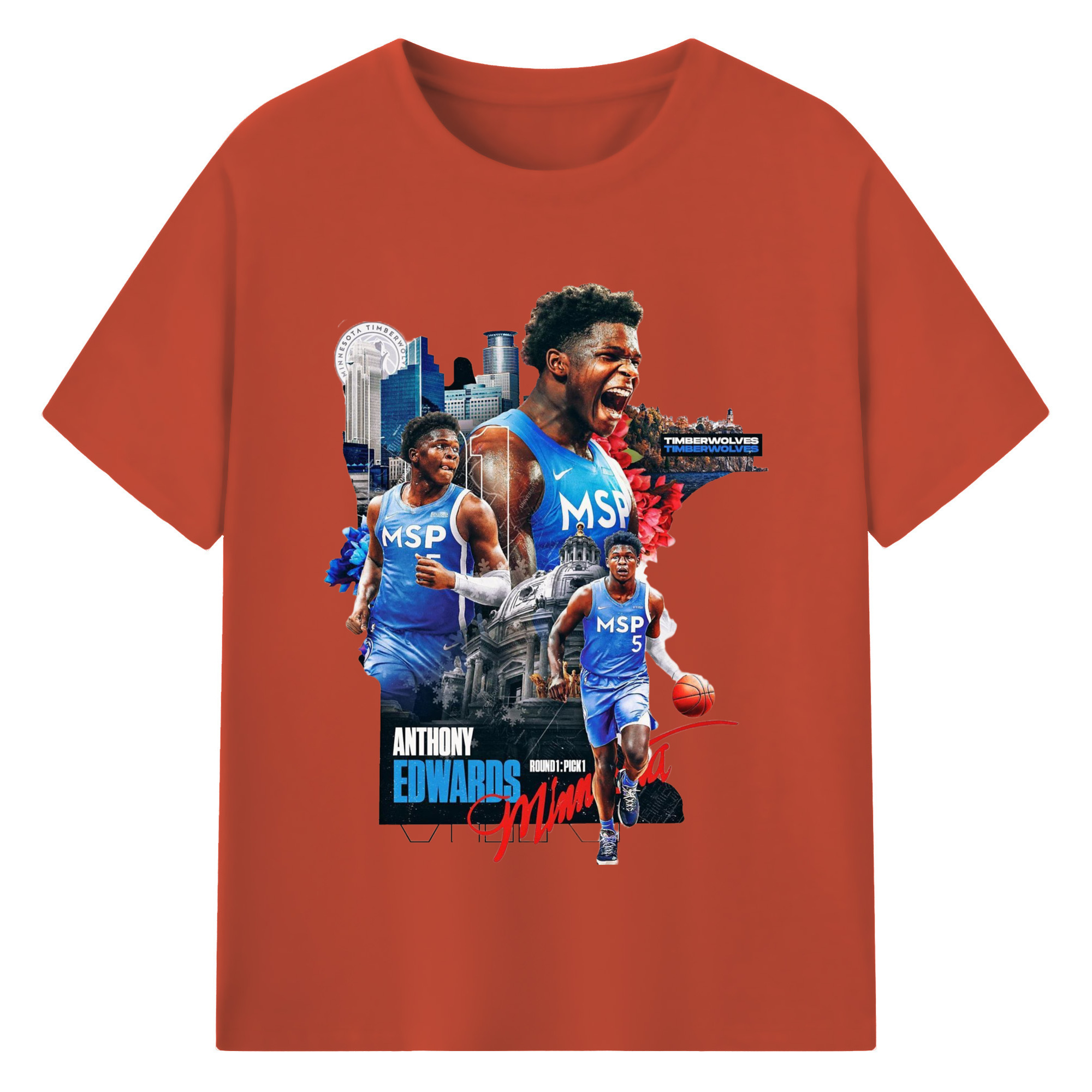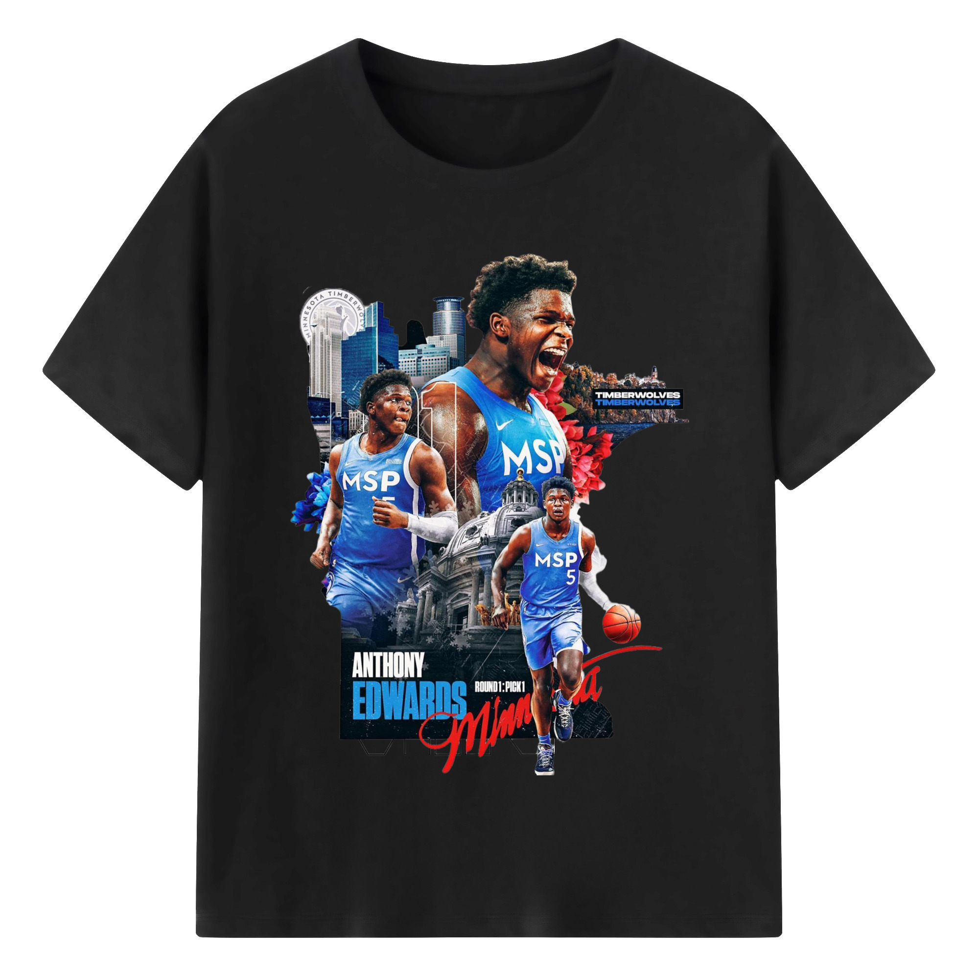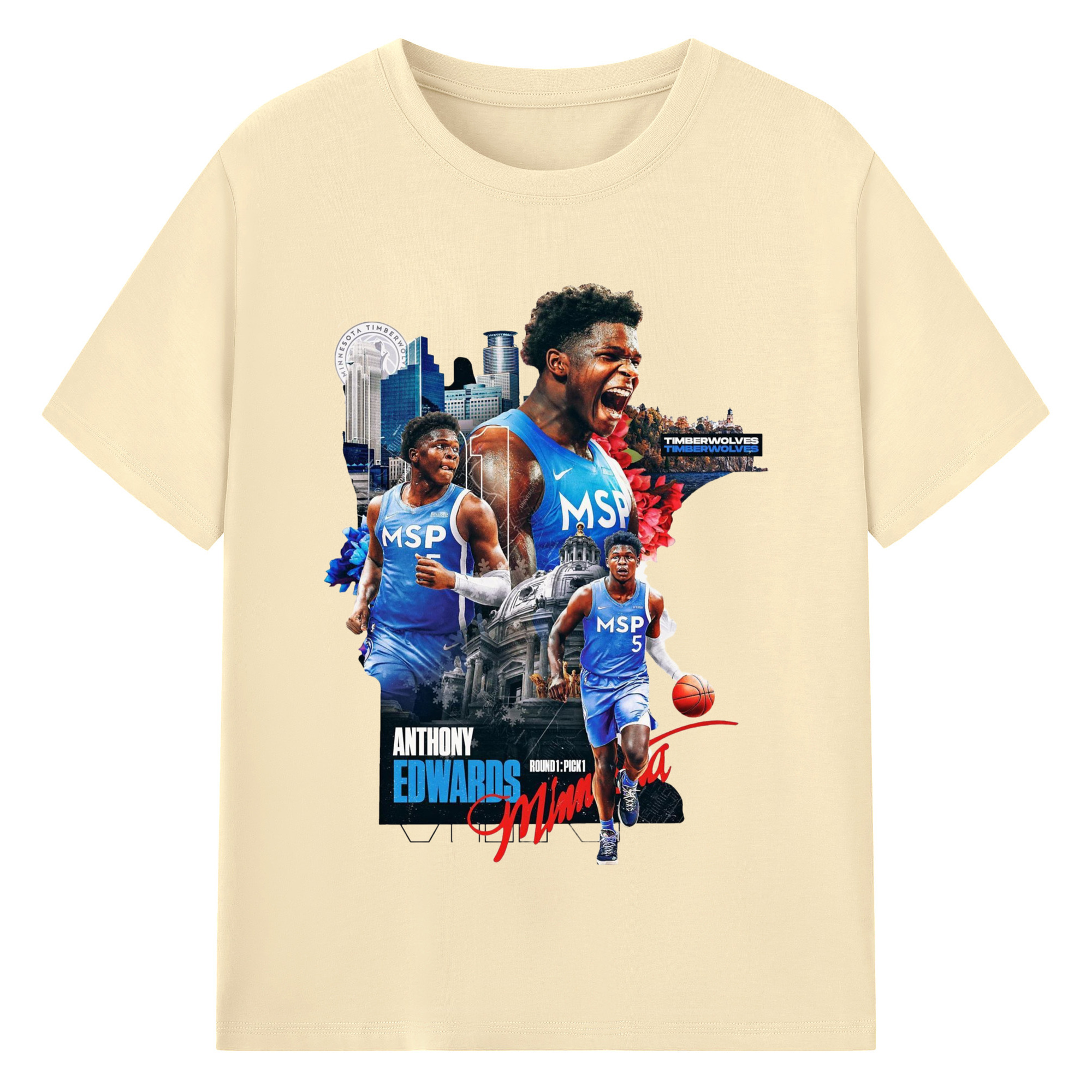 Anthony Edwards Timberwolves Urban Background graphic T-shirt - 180g Cotton T-Shirt With Front Heat Transfer Print – Soft, Lightweight, Fitted Design – Comfortable Casual Wear For Sports & Everyday Use