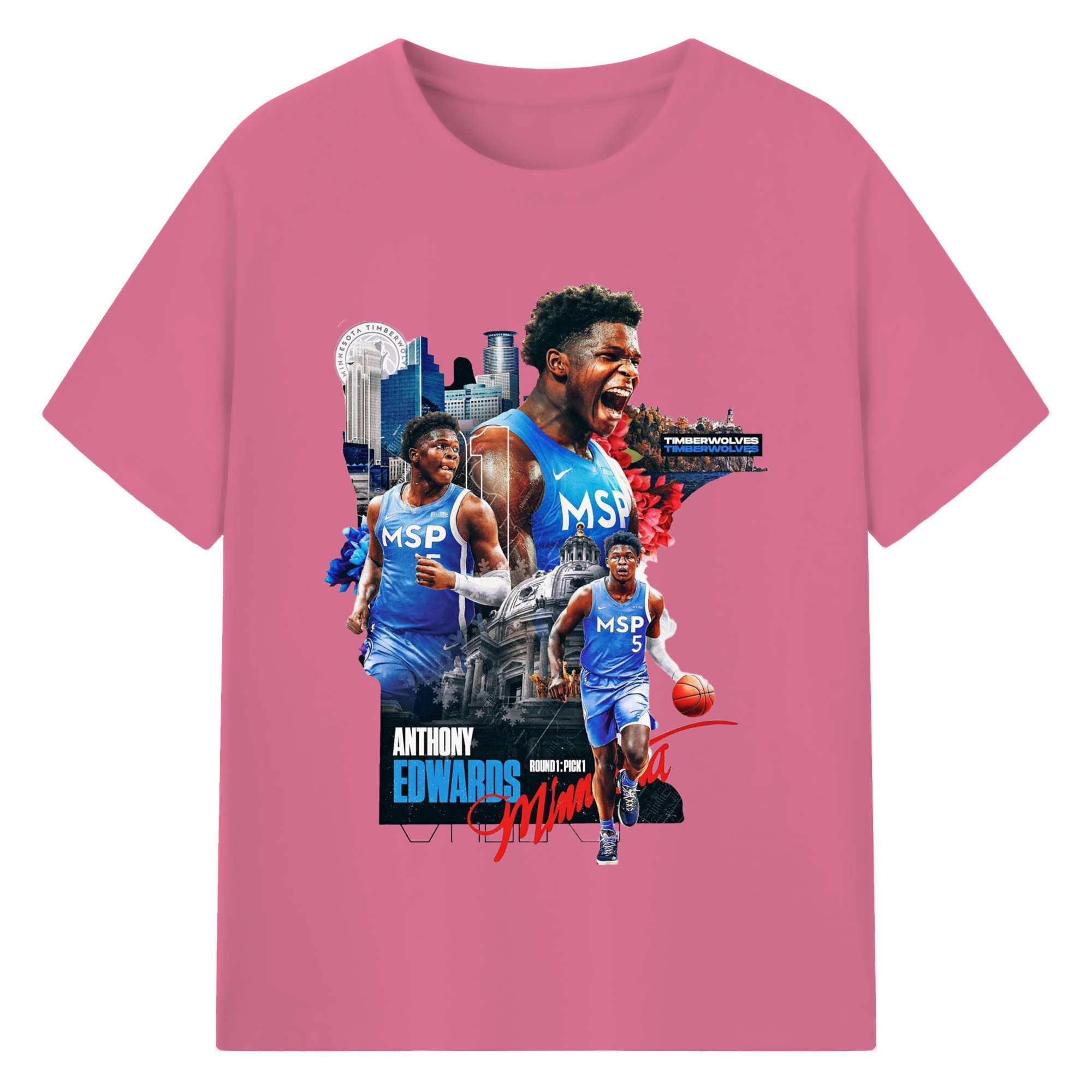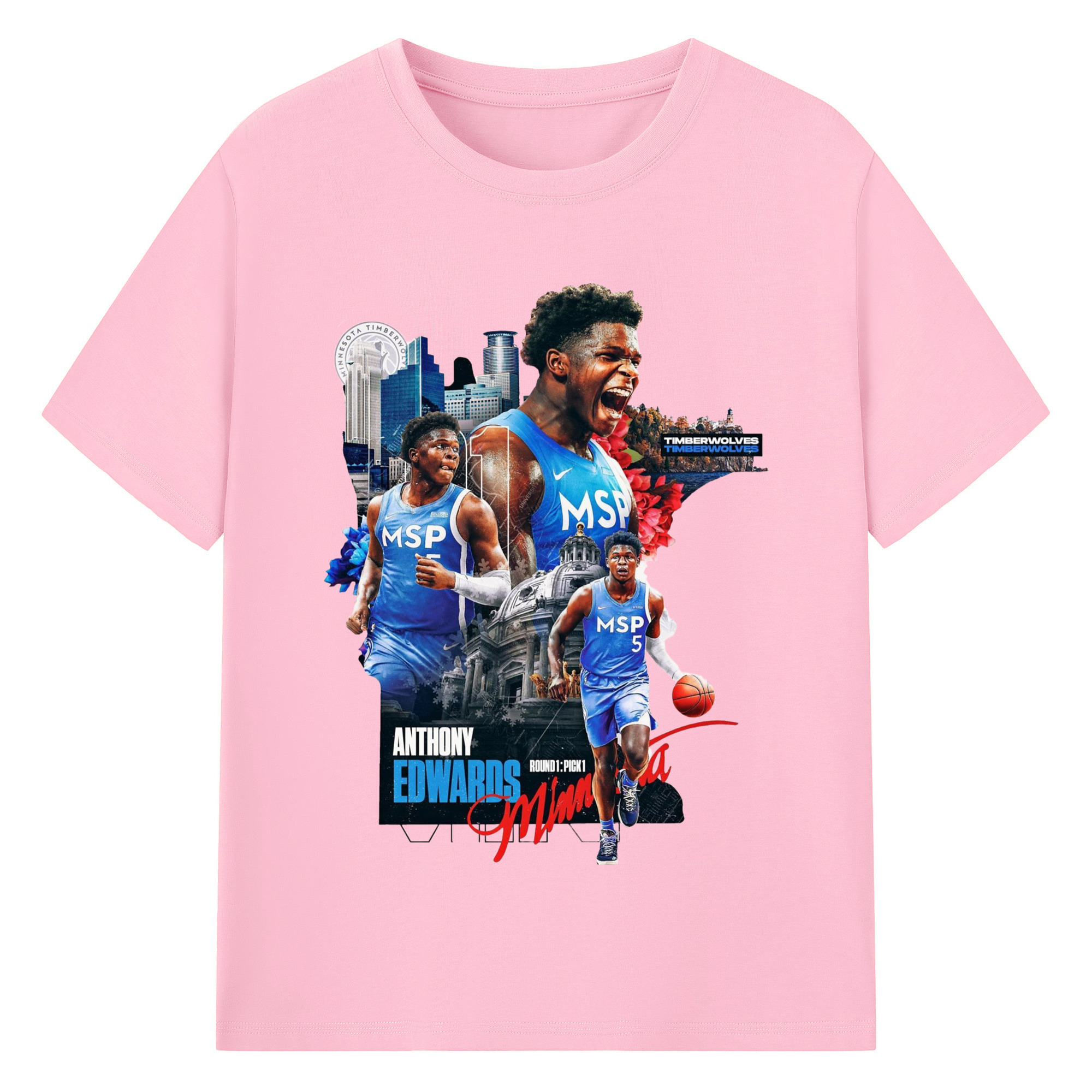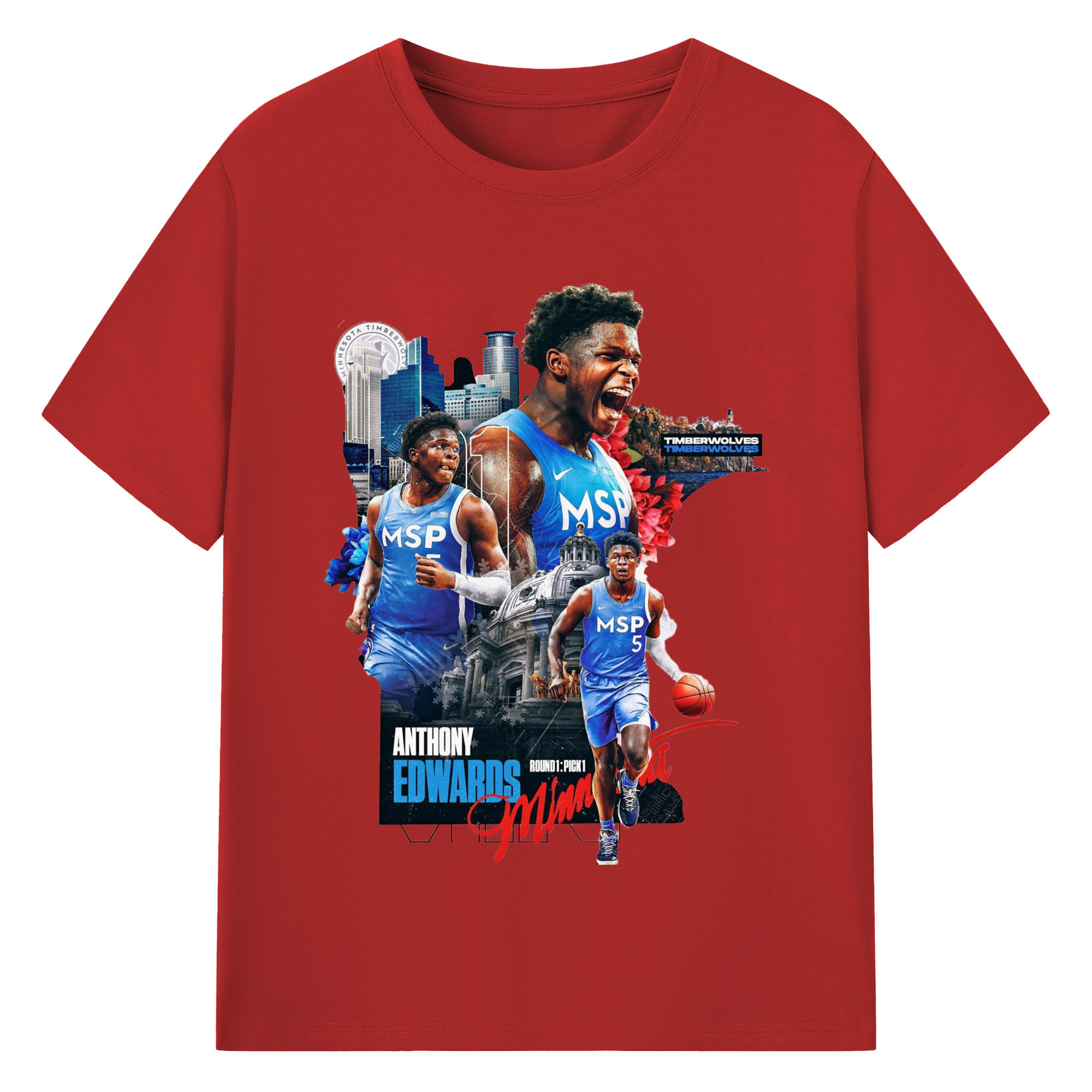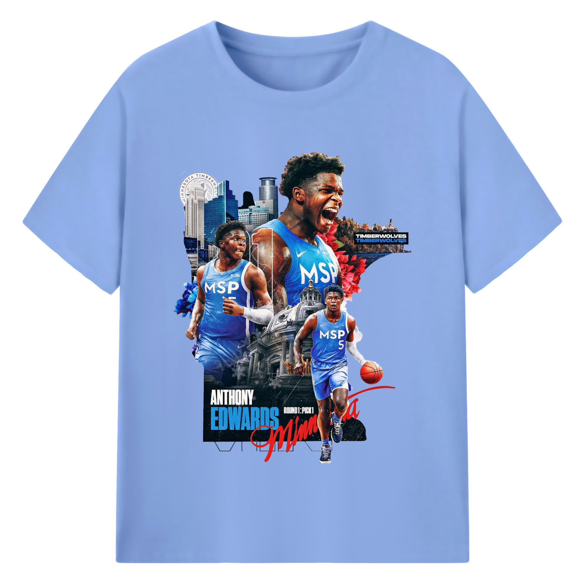 Anthony Edwards Timberwolves Urban Background graphic T-shirt - 180g Cotton T-Shirt With Front Heat Transfer Print – Soft, Lightweight, Fitted Design – Comfortable Casual Wear For Sports & Everyday Use