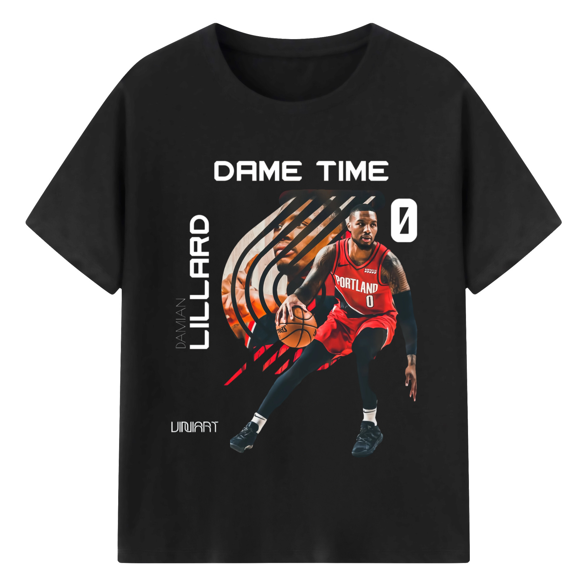 Blazers Damian Lillard #0 tee - 180g Cotton T-Shirt With Front Heat Transfer Print – Soft, Lightweight, Fitted Design – Comfortable Casual Wear For Sports & Everyday Use