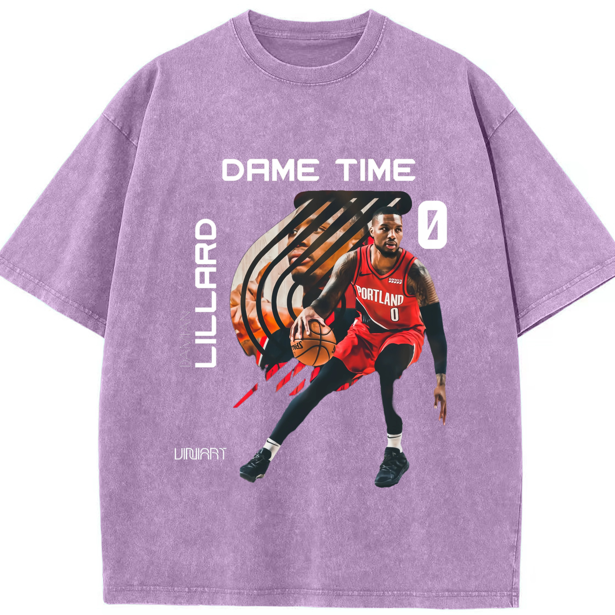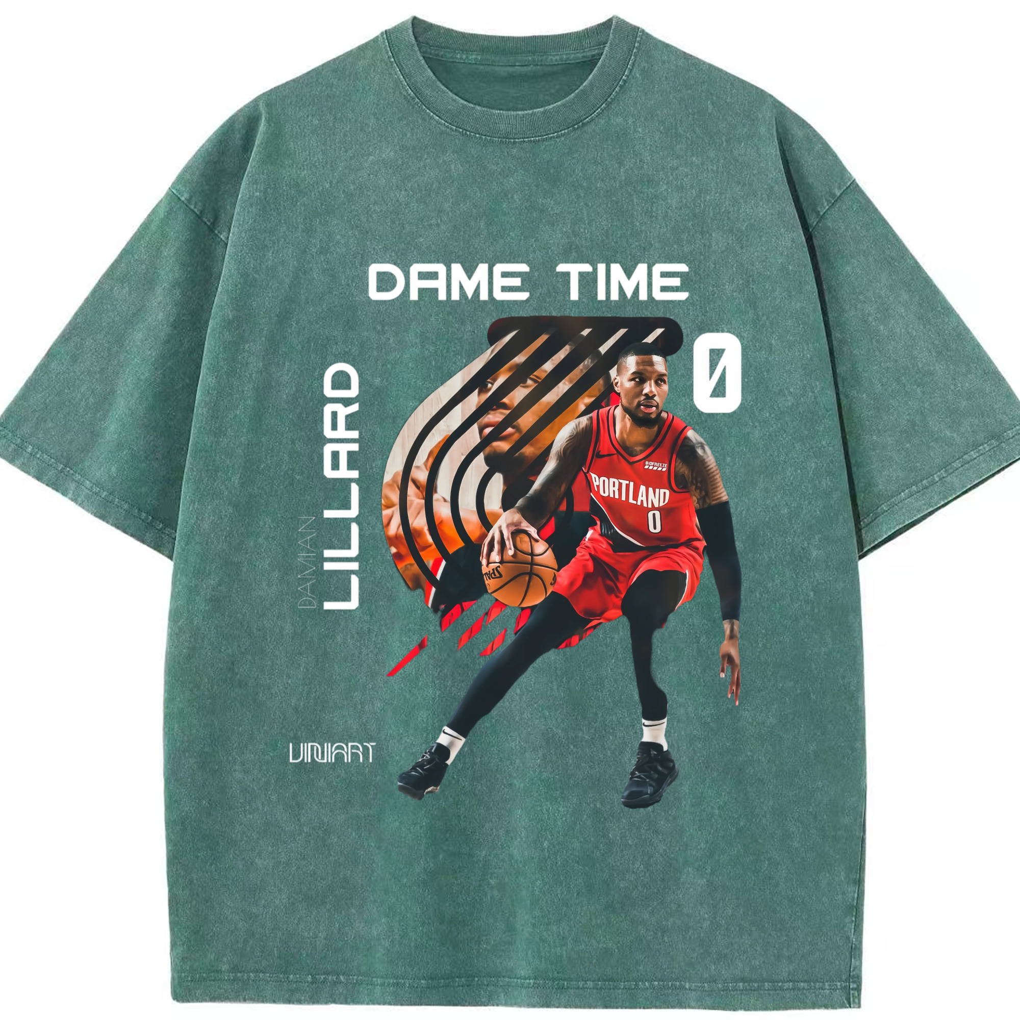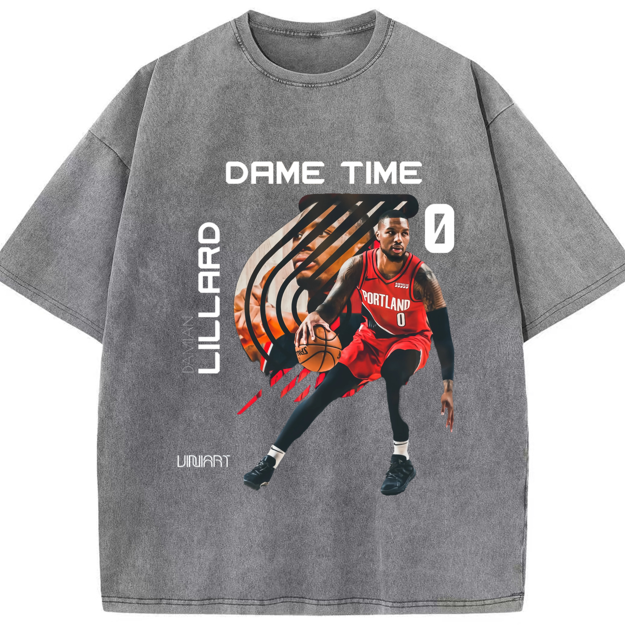 Blazers Damian Lillard #0 tee - Washed Vintage Look 230g Cotton Oversized T-Shirt With Front Heat Transfer Print – Soft, Lightweight, Stylish Fit – Comfortable Casual Wear For Sports & Everyday Use