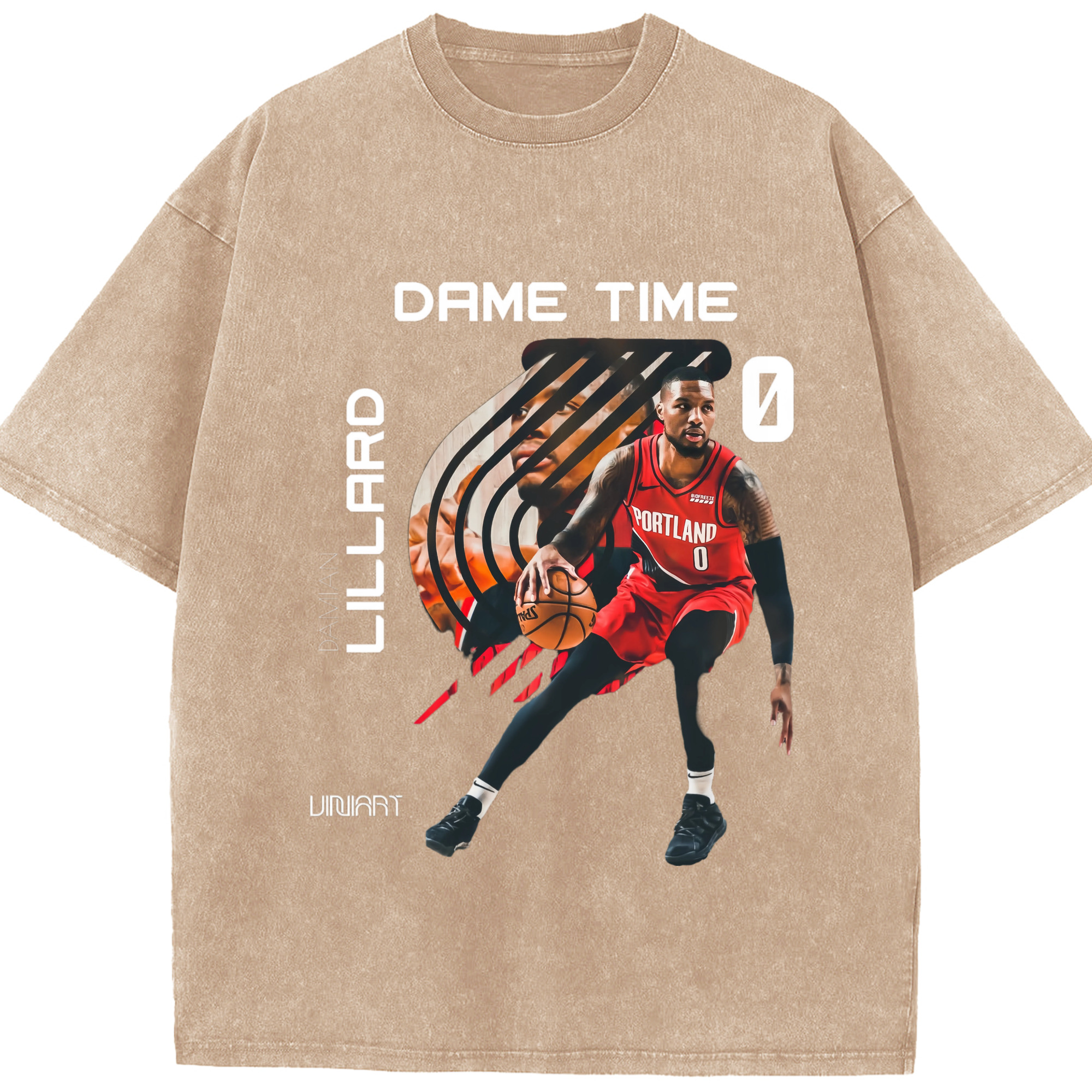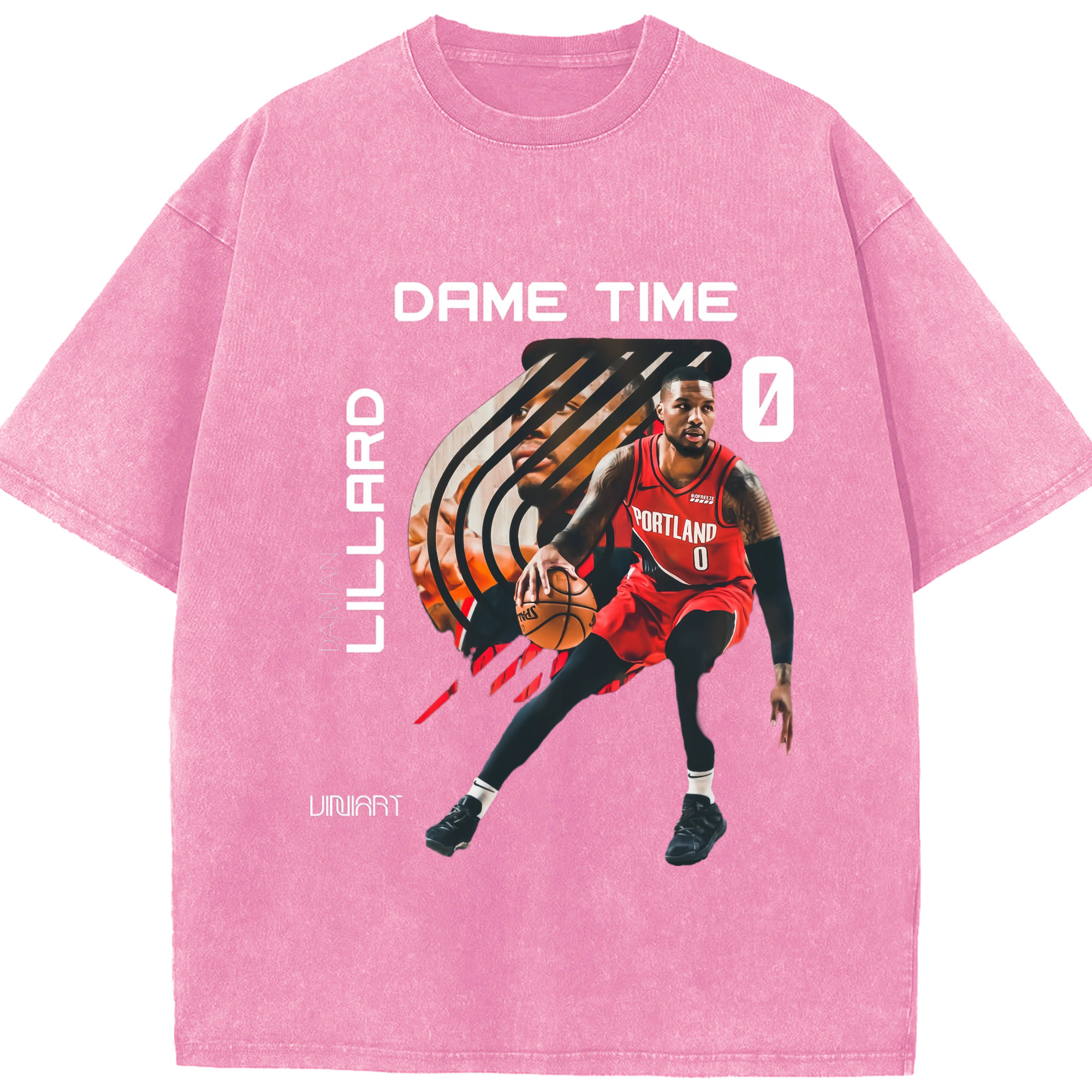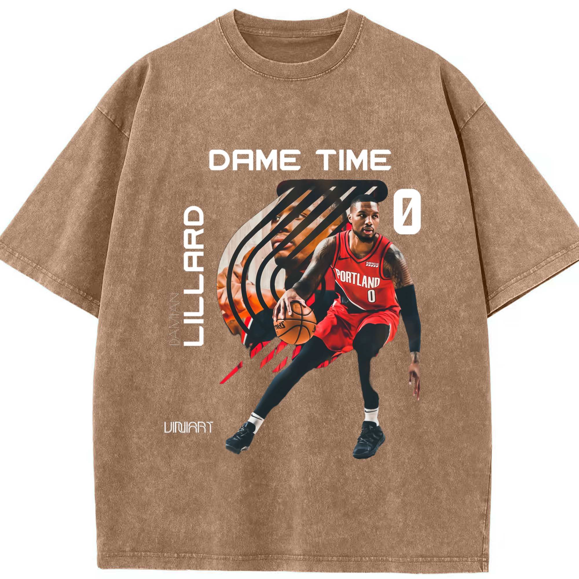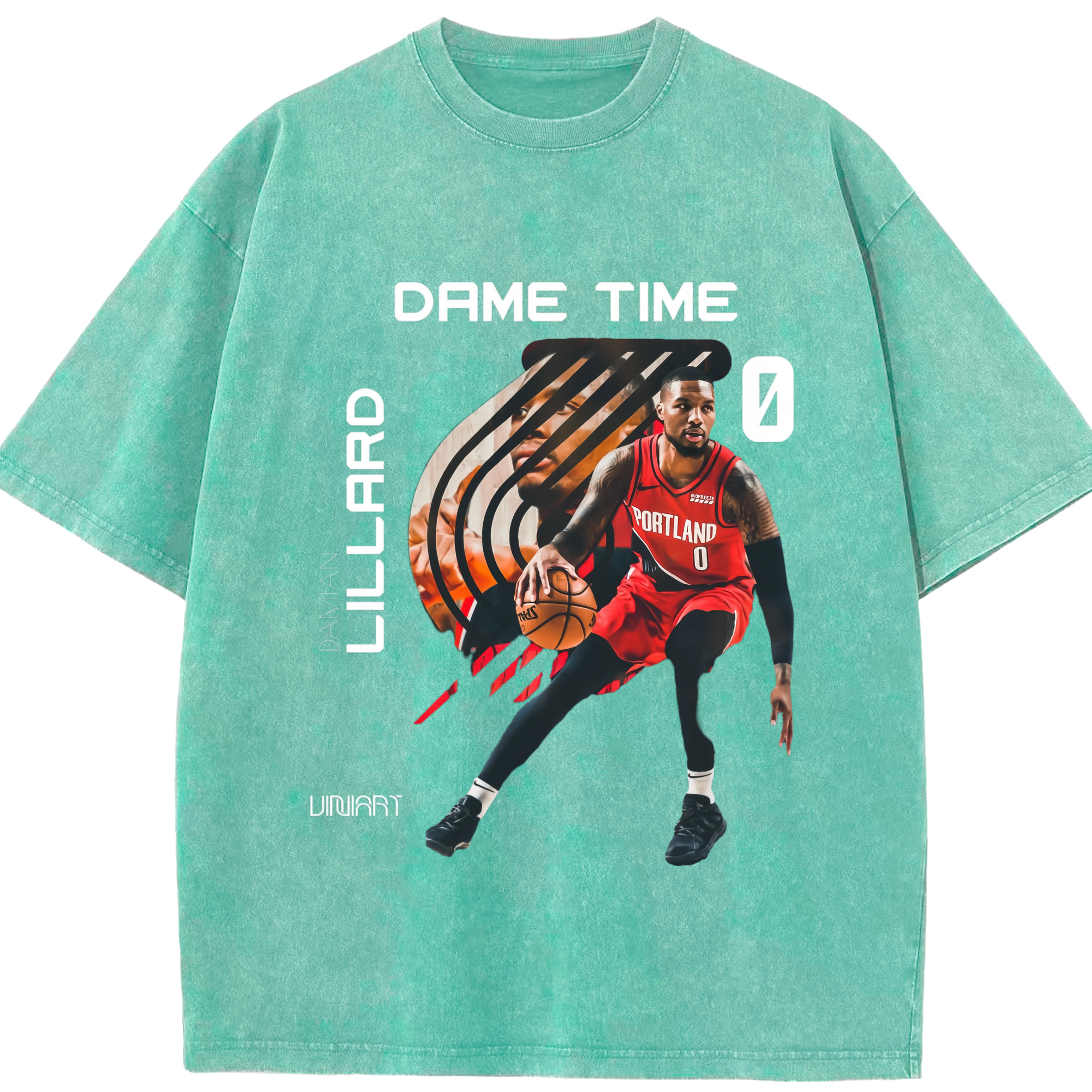 Blazers Damian Lillard #0 tee - Washed Vintage Look 230g Cotton Oversized T-Shirt With Front Heat Transfer Print – Soft, Lightweight, Stylish Fit – Comfortable Casual Wear For Sports & Everyday Use