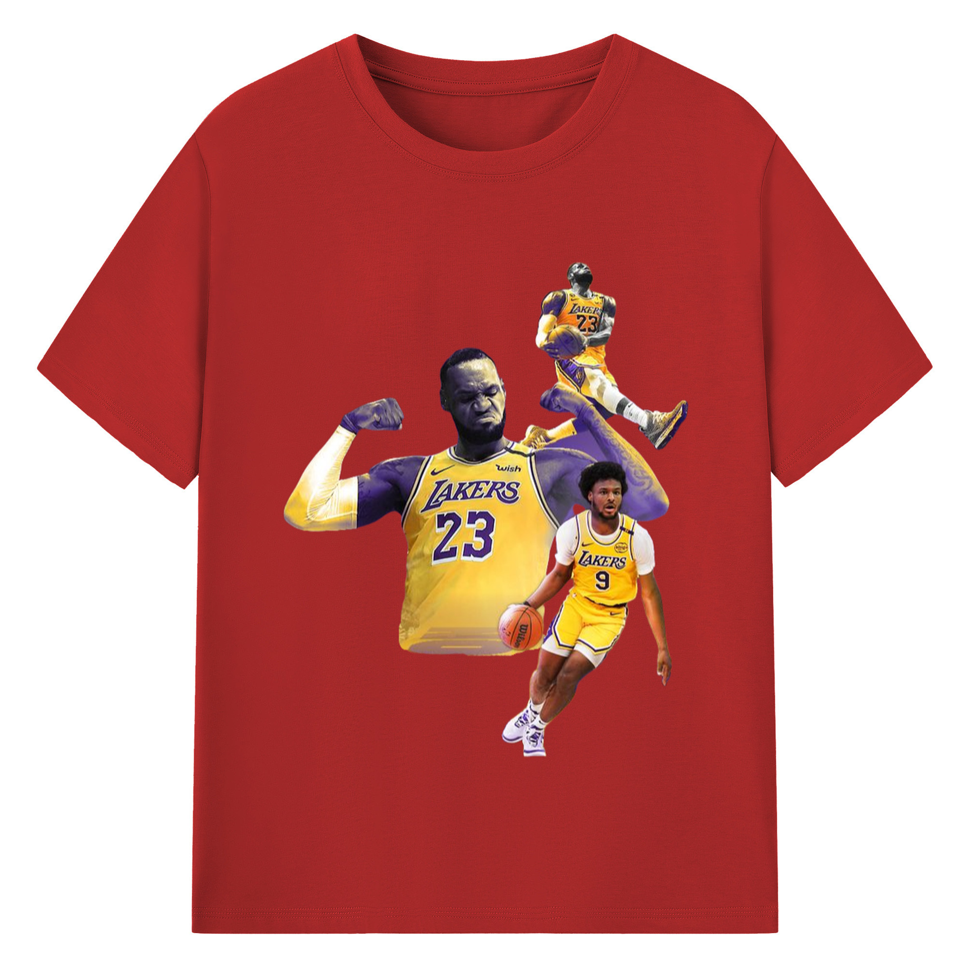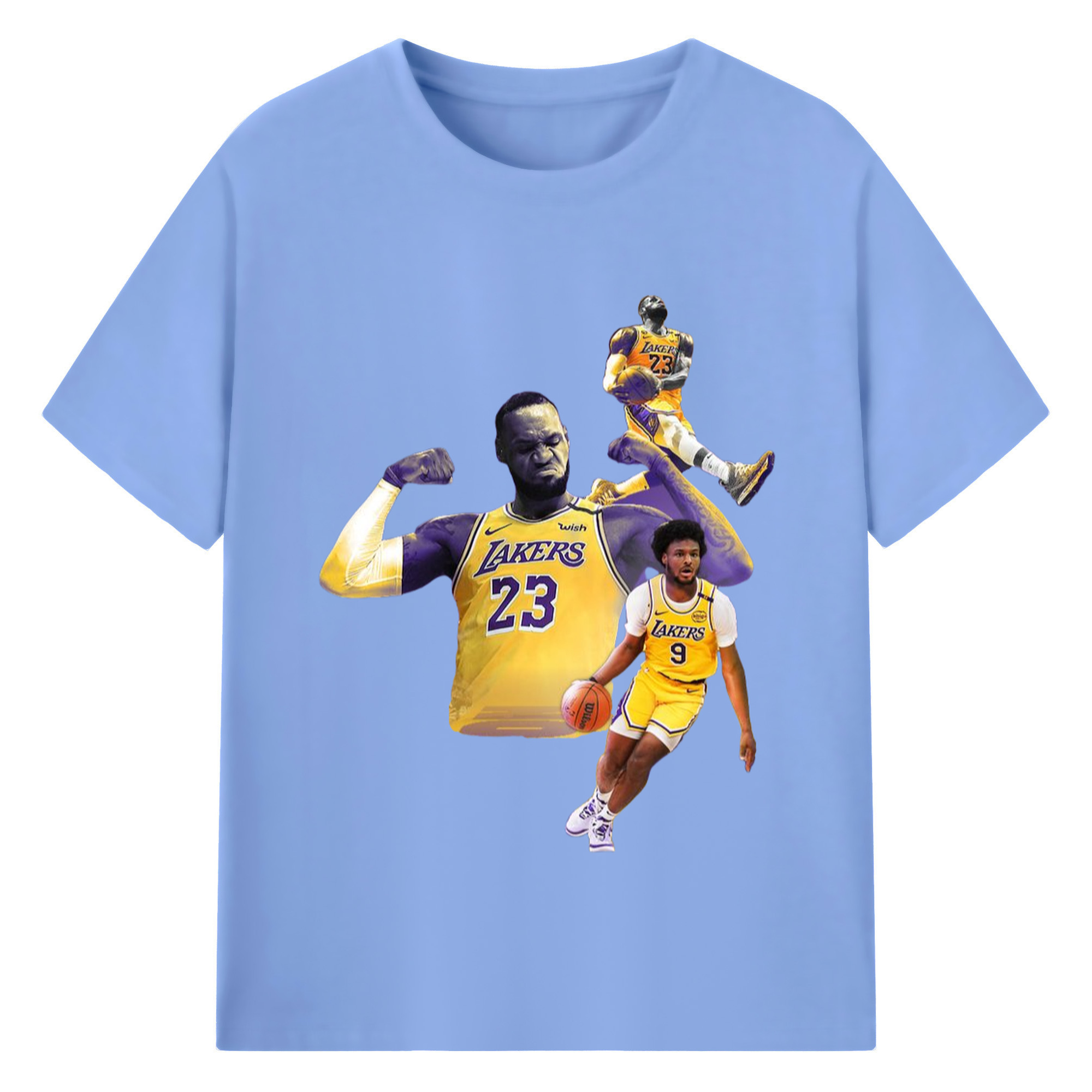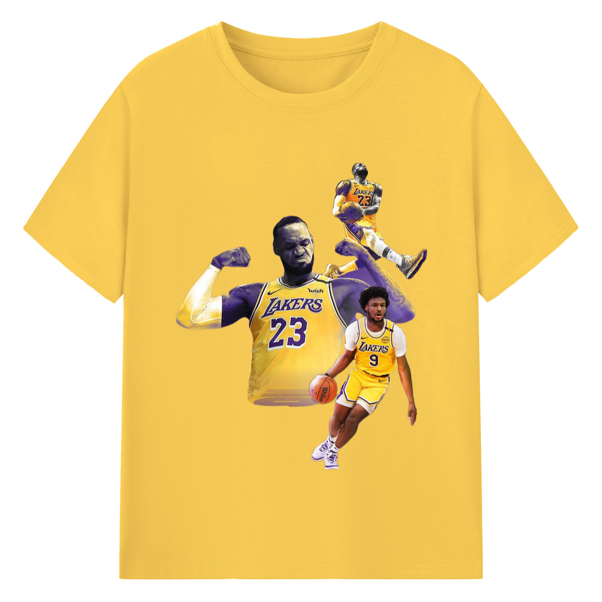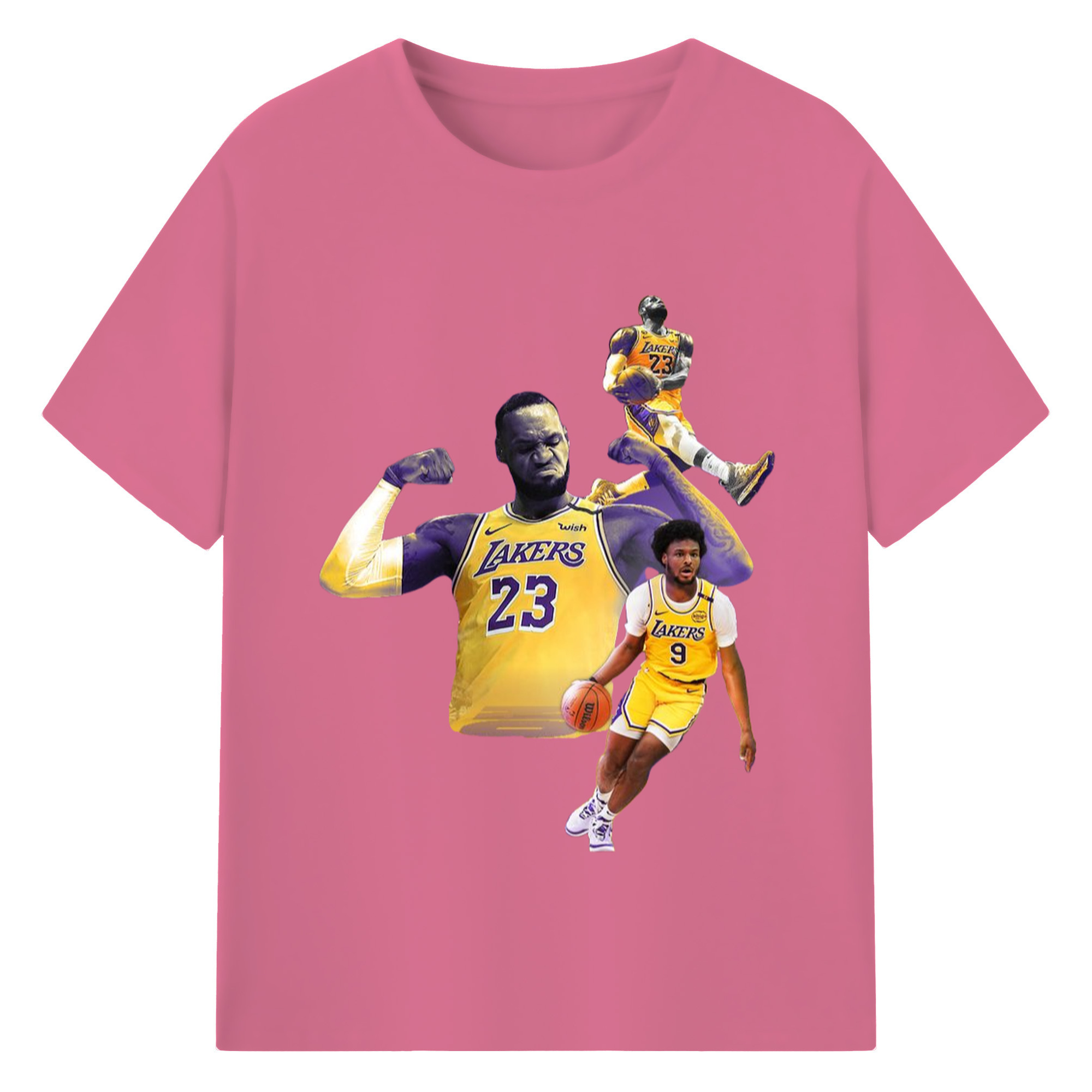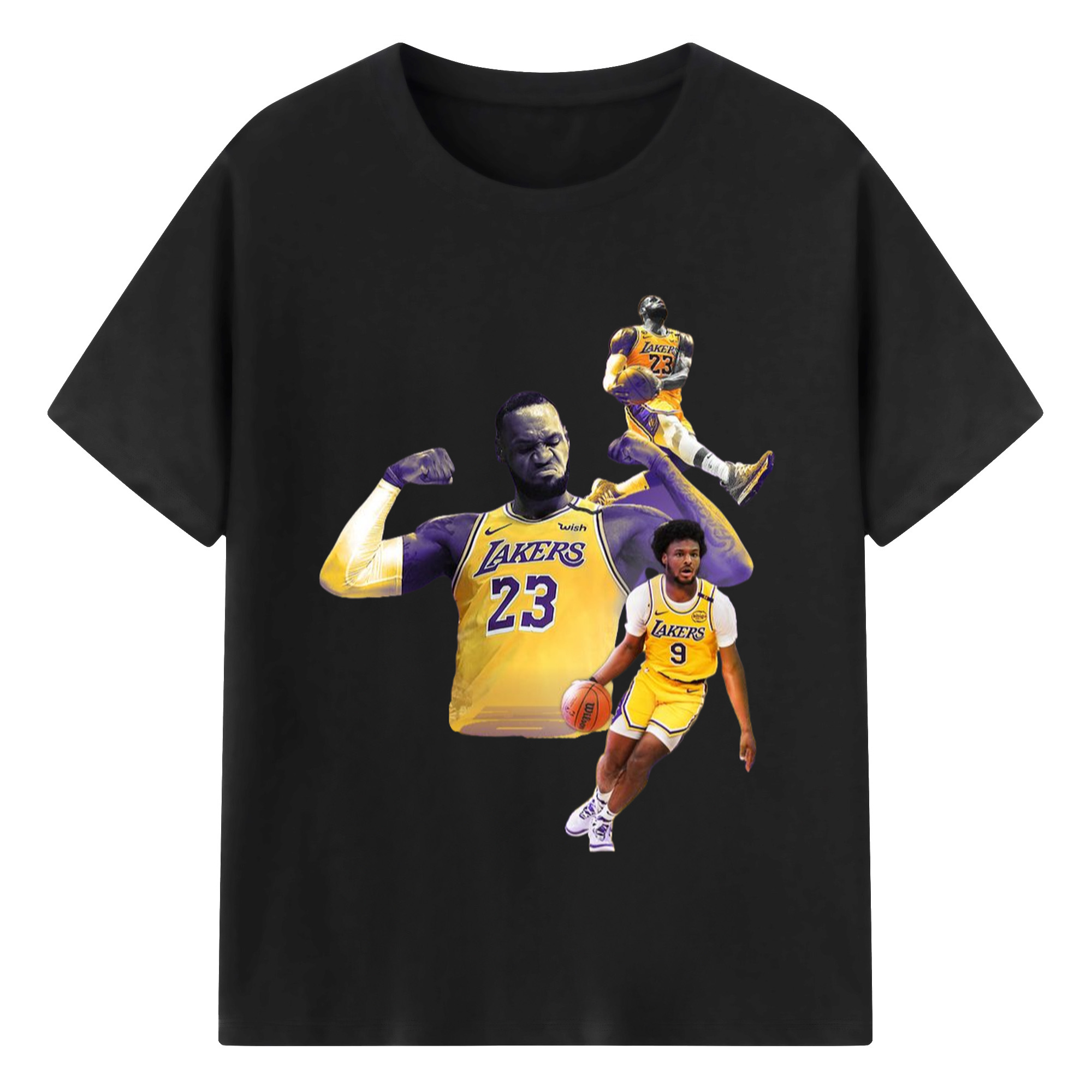 Bronny James #9 and Lebron James #23 Lakers T-Shirt - 180g Cotton T-Shirt With Front Heat Transfer Print – Soft, Lightweight, Fitted Design – Comfortable Casual Wear For Sports & Everyday Use