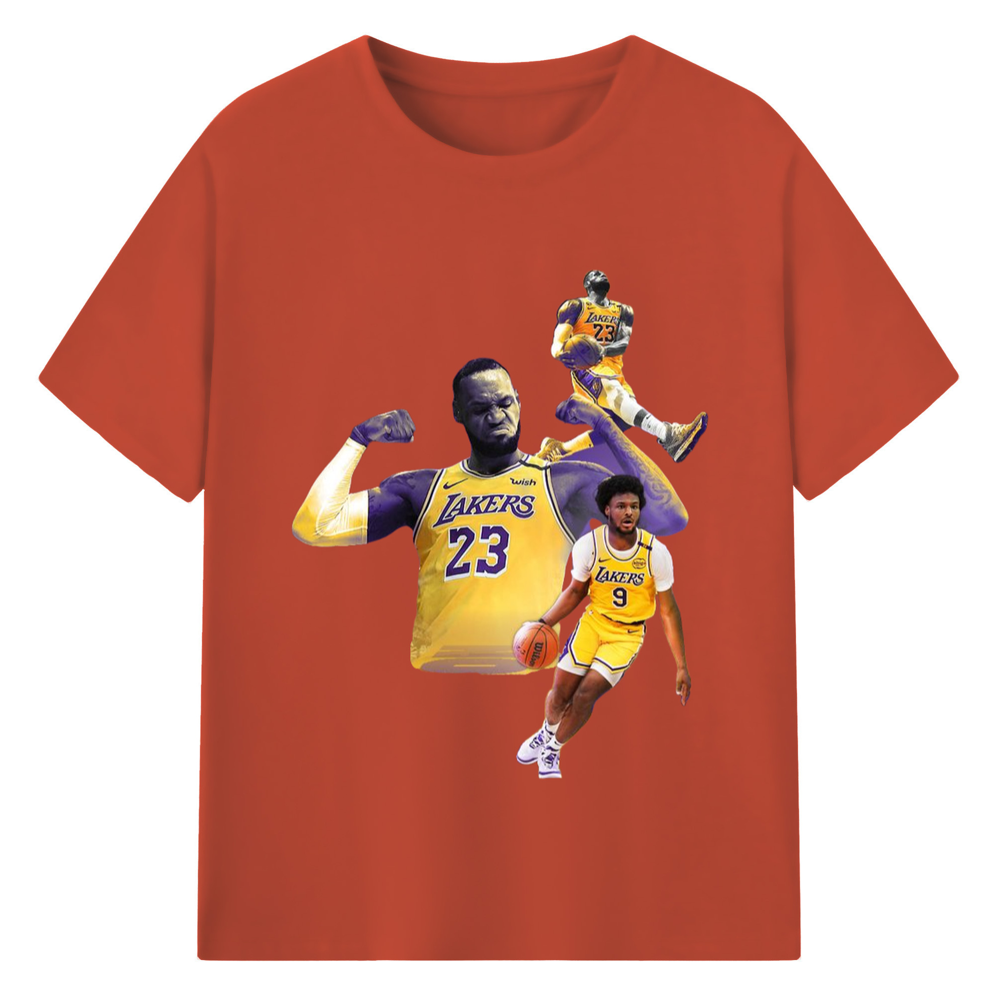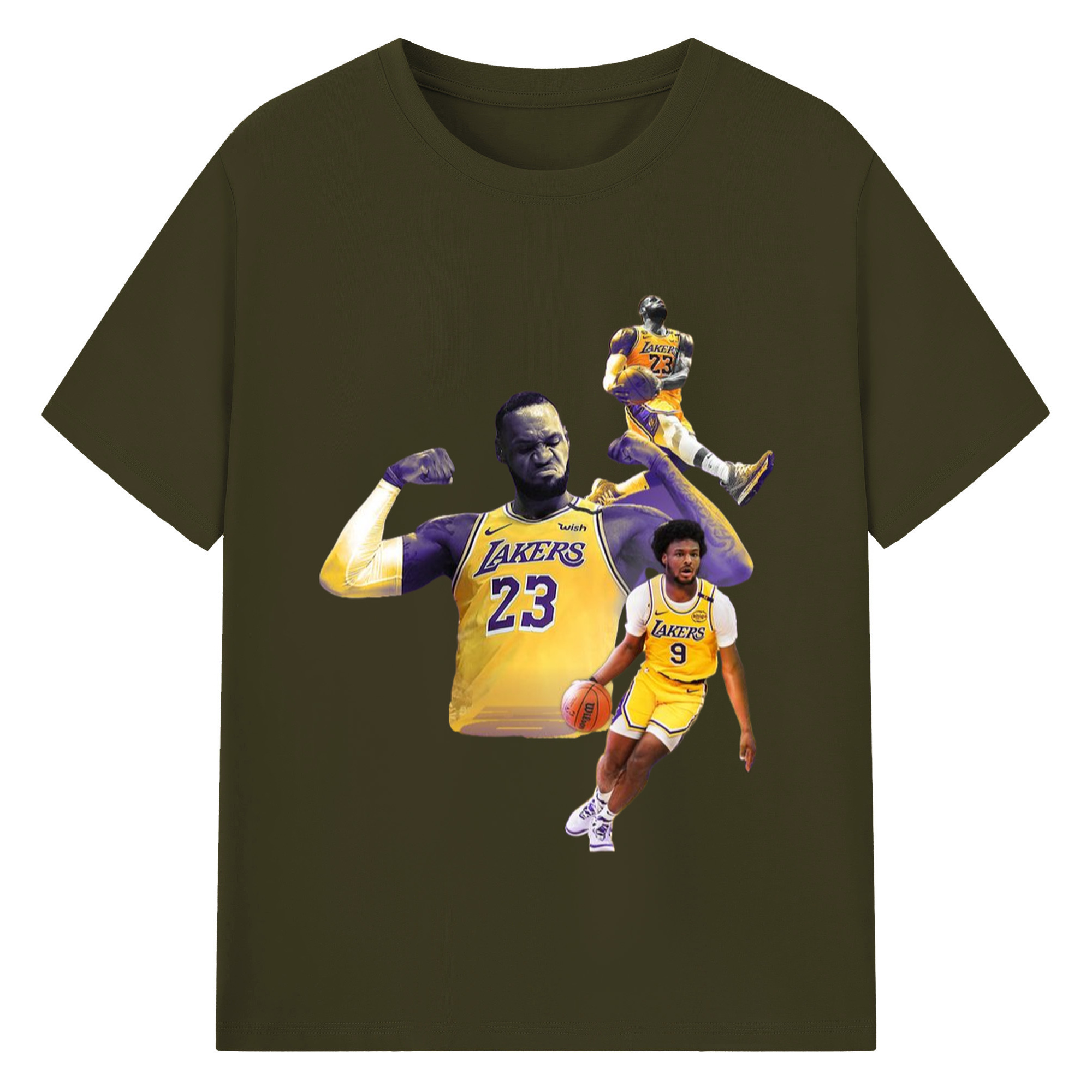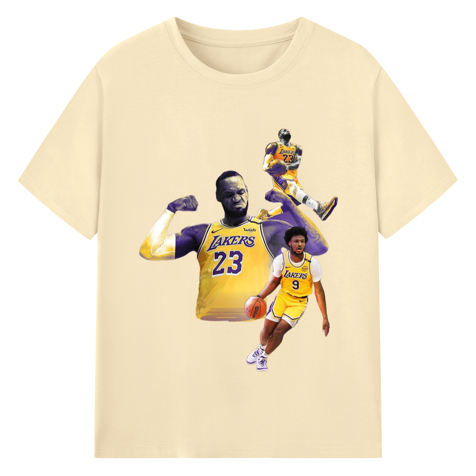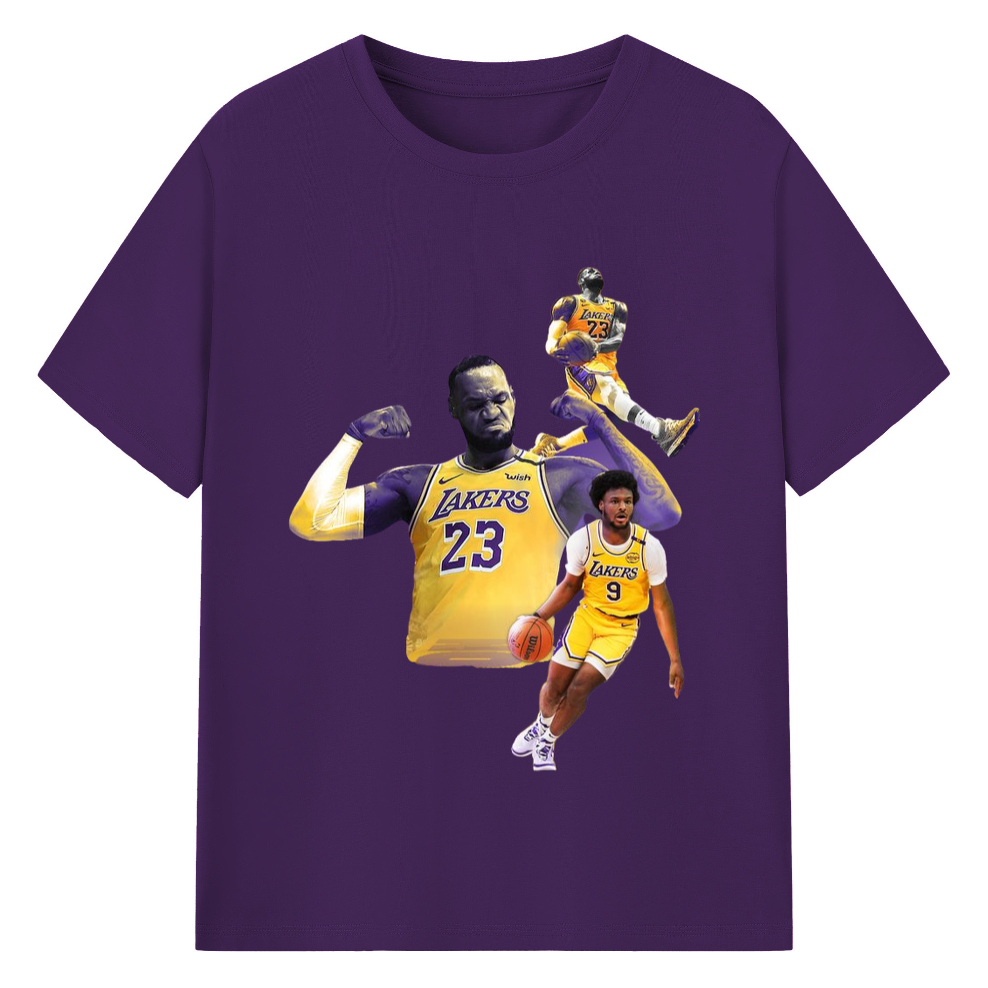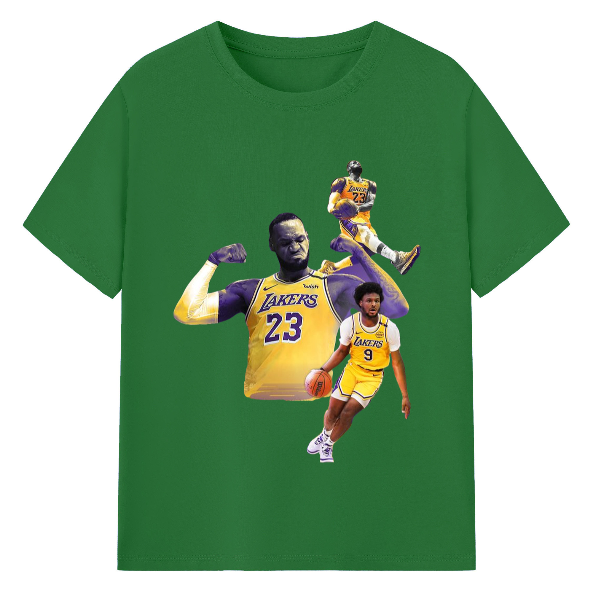 Bronny James #9 and Lebron James #23 Lakers T-Shirt - 180g Cotton T-Shirt With Front Heat Transfer Print – Soft, Lightweight, Fitted Design – Comfortable Casual Wear For Sports & Everyday Use