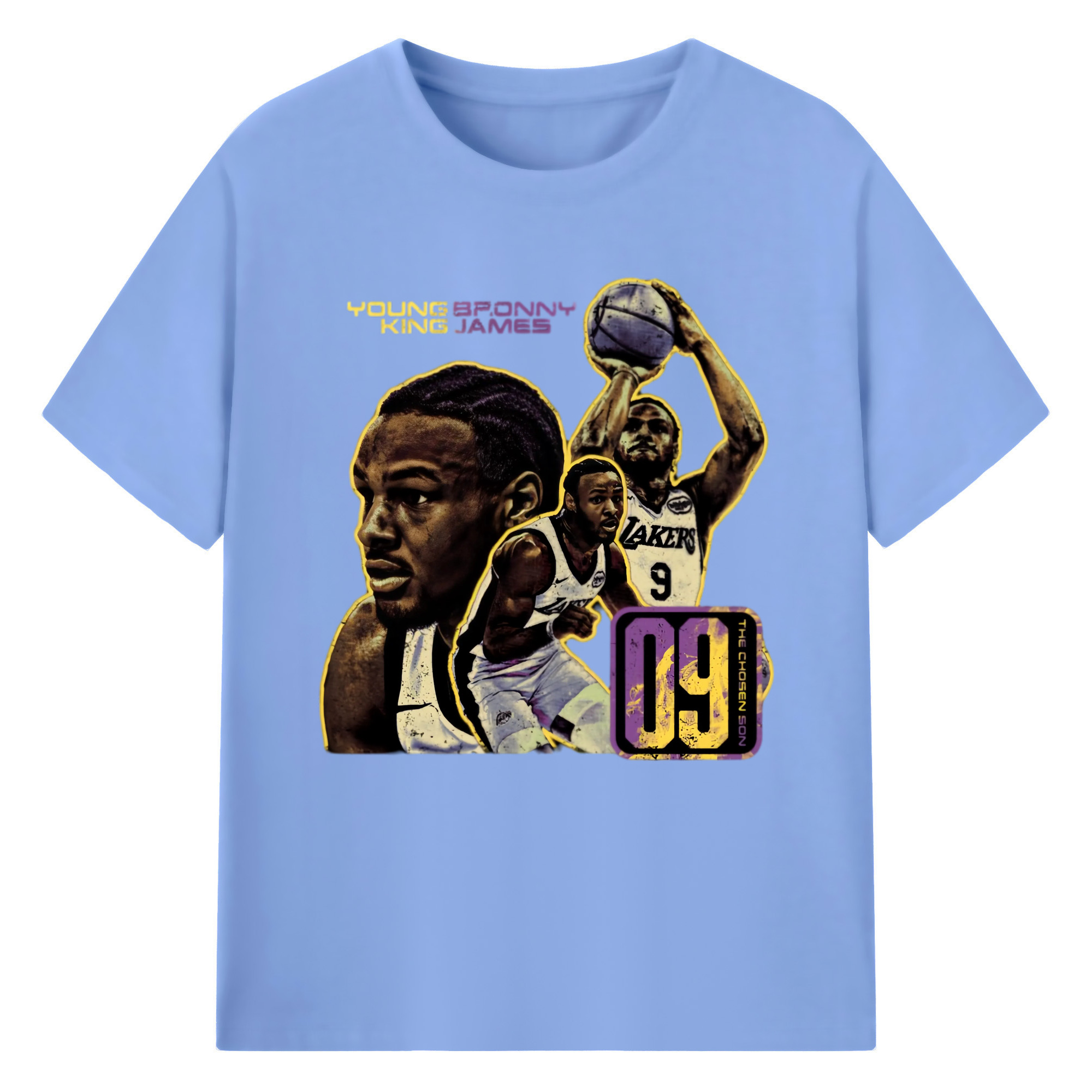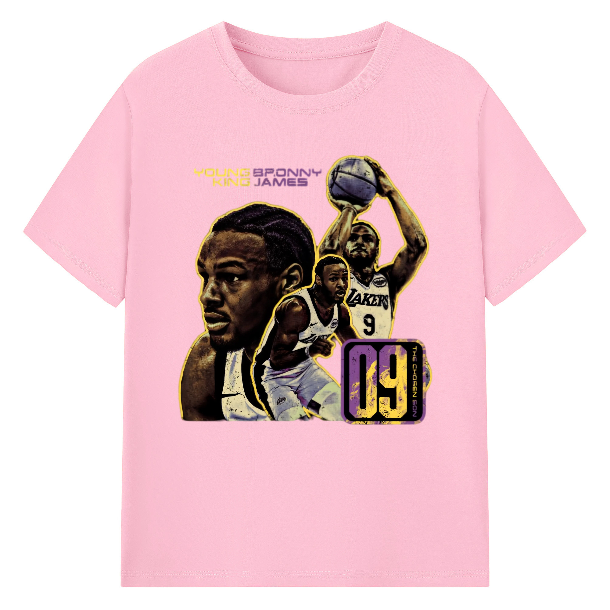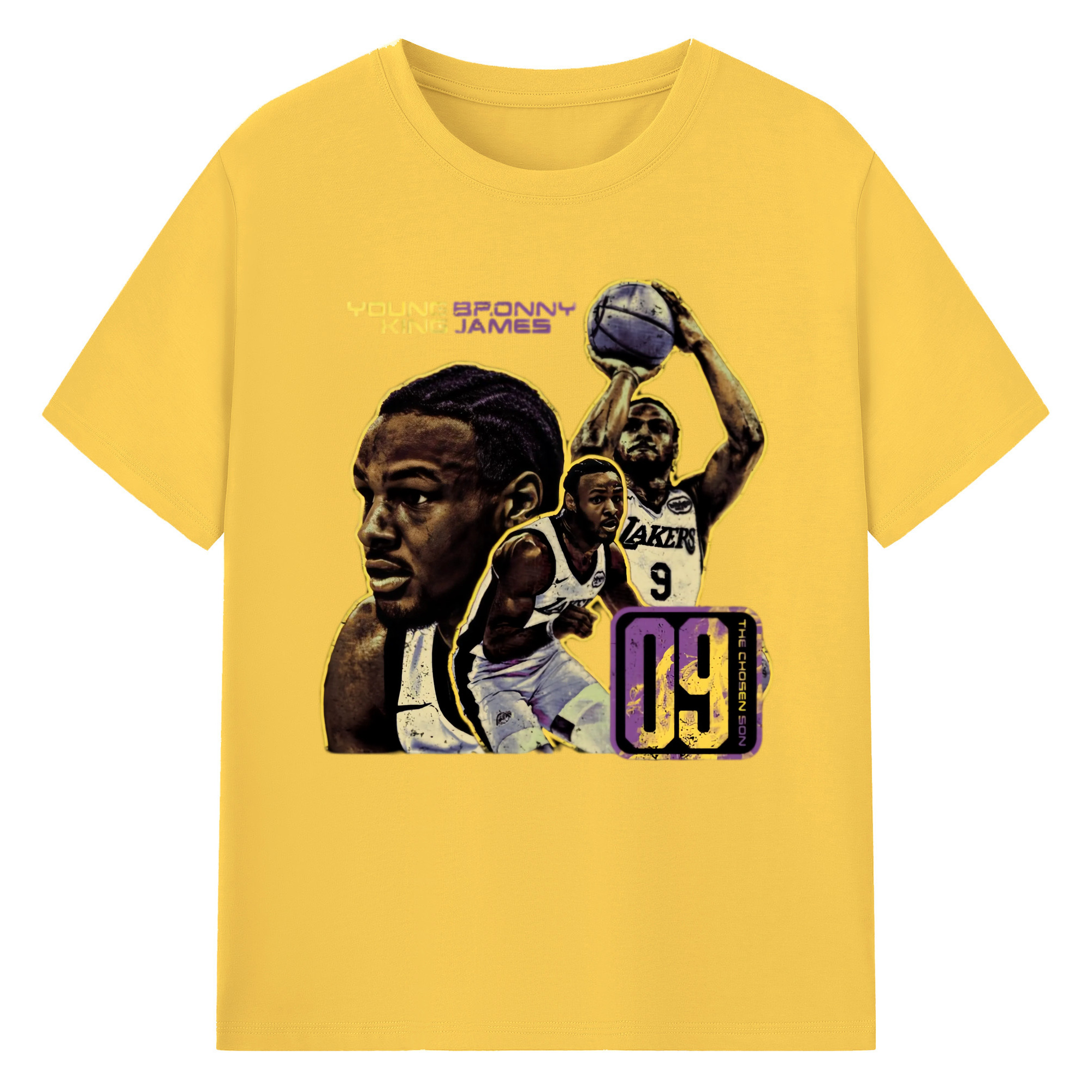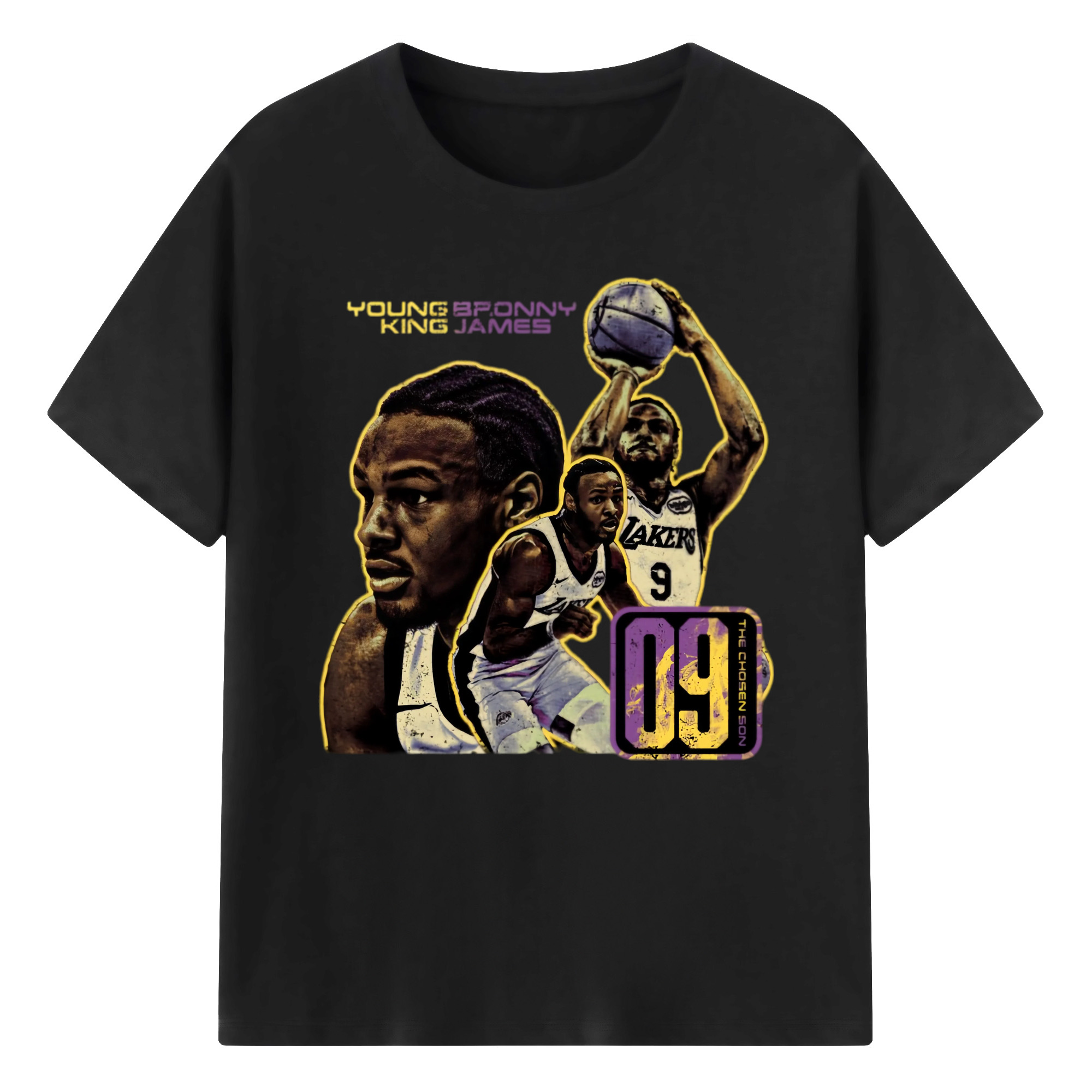 Bronny James #9 Lakers 'graphic T-shirt - 180g Cotton T-Shirt With Front Heat Transfer Print – Soft, Lightweight, Fitted Design – Comfortable Casual Wear For Sports & Everyday Use
