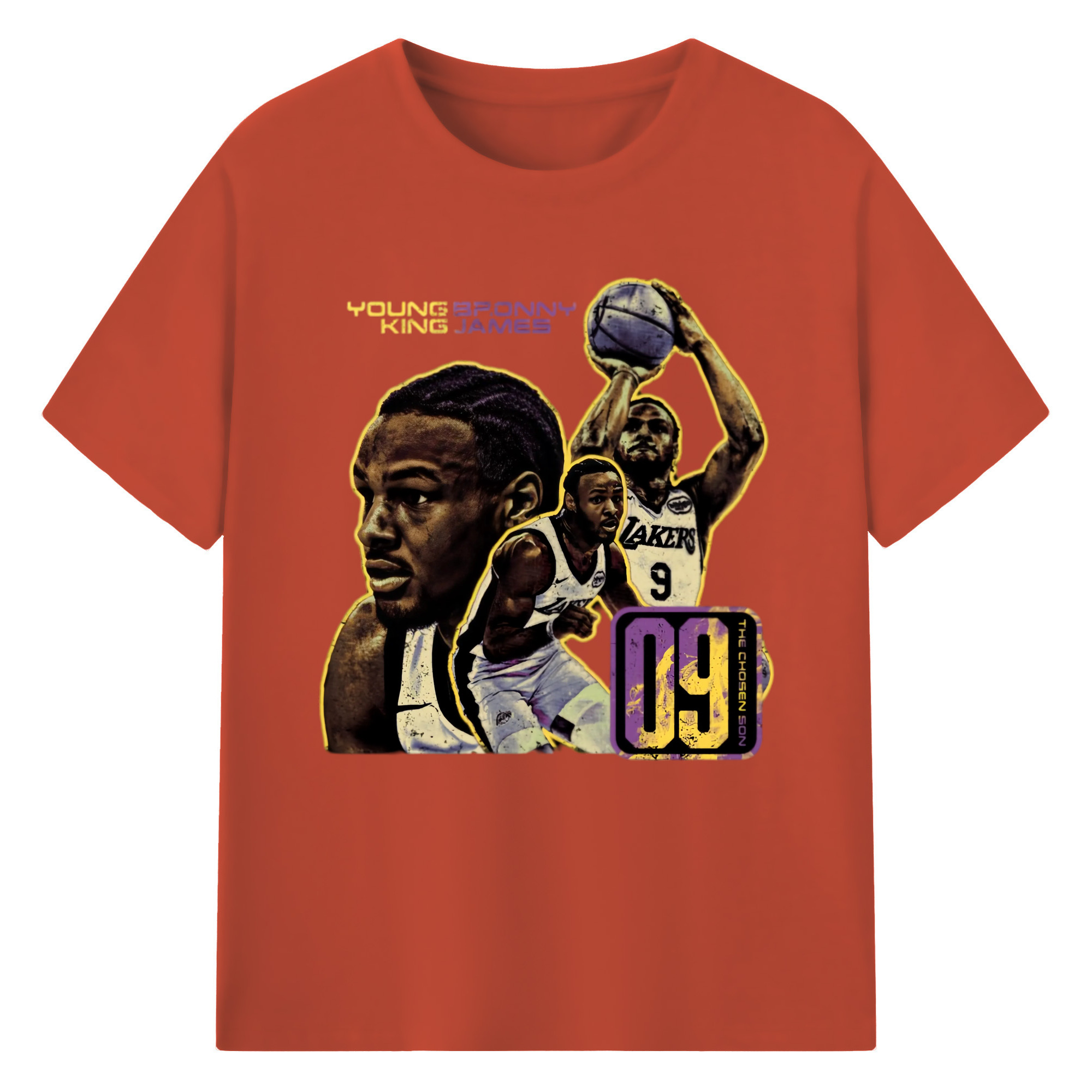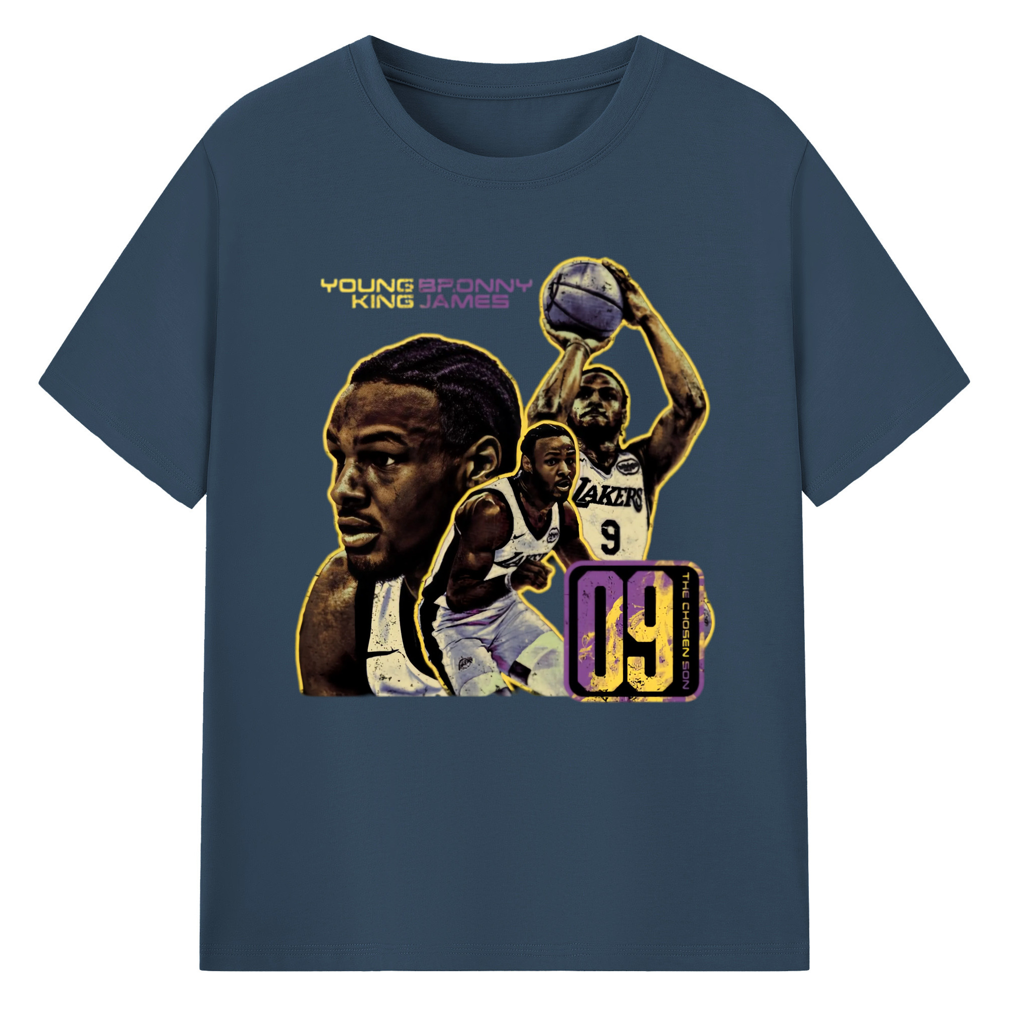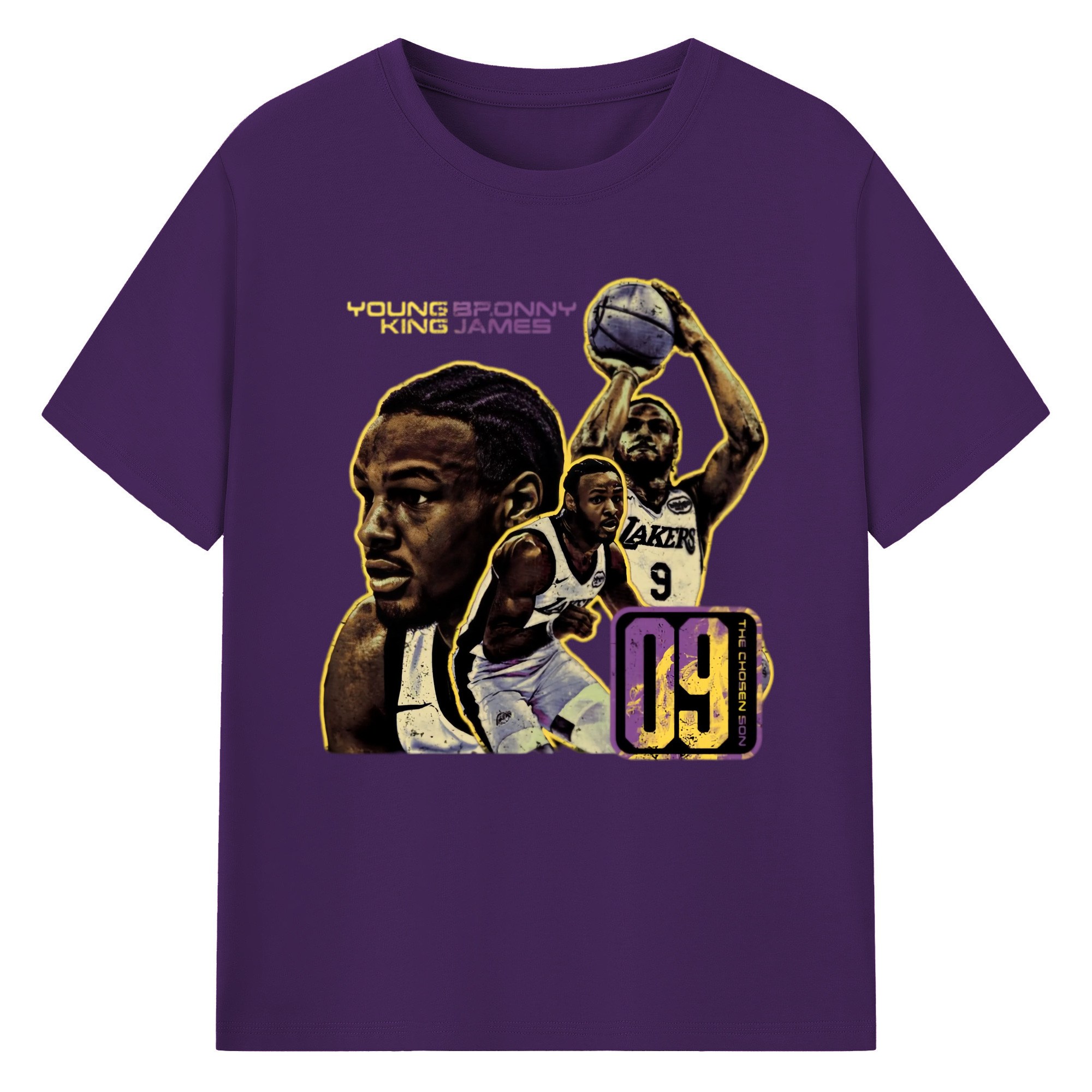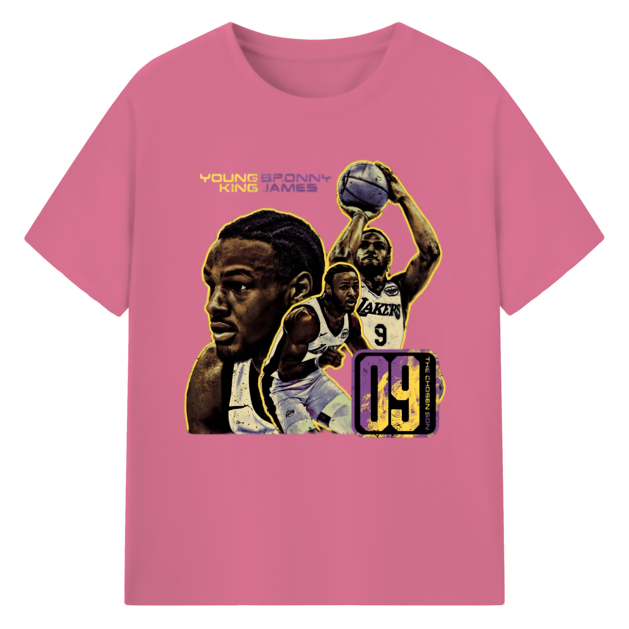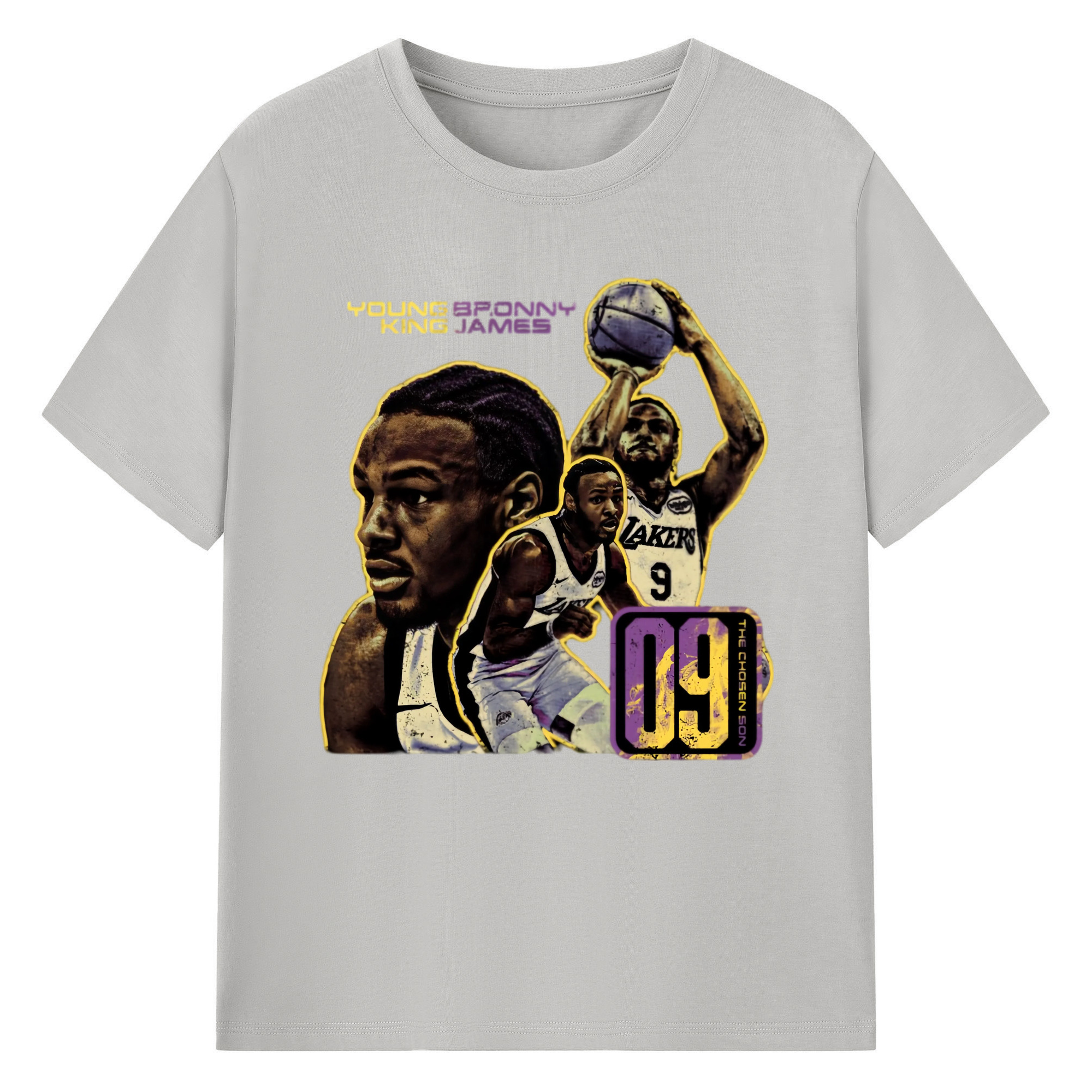 Bronny James #9 Lakers 'graphic T-shirt - 180g Cotton T-Shirt With Front Heat Transfer Print – Soft, Lightweight, Fitted Design – Comfortable Casual Wear For Sports & Everyday Use