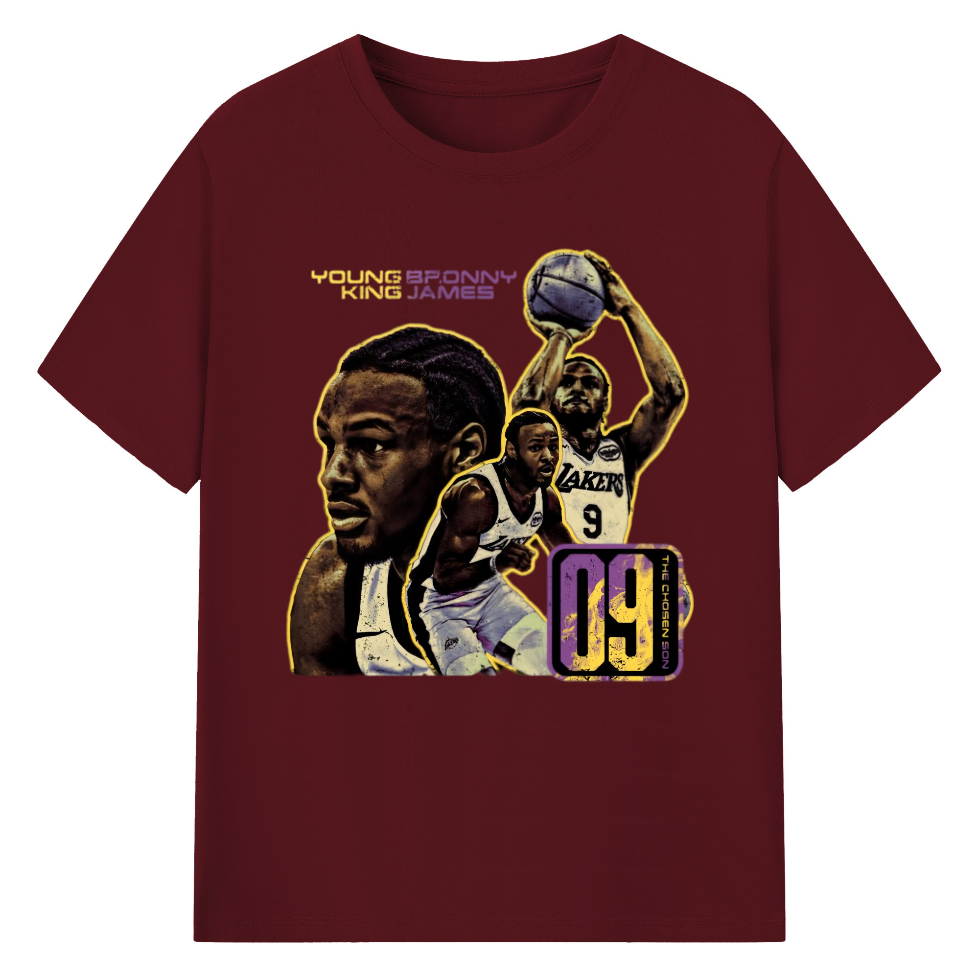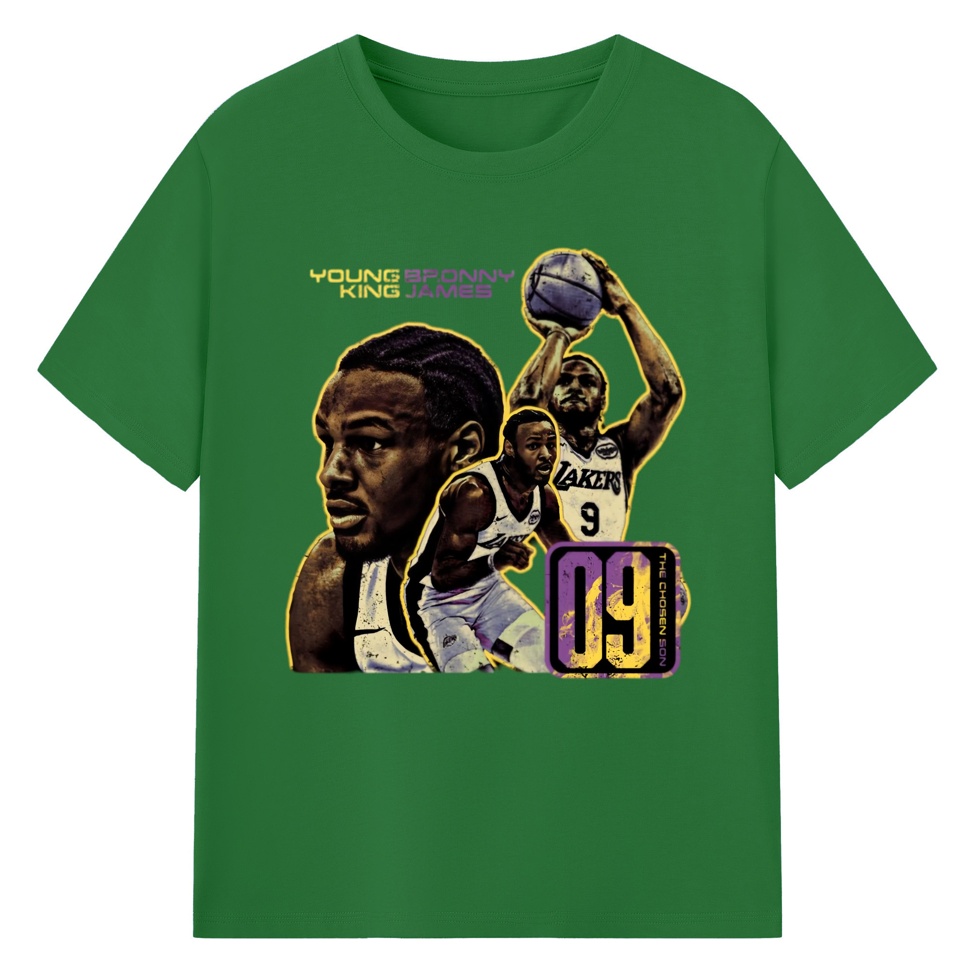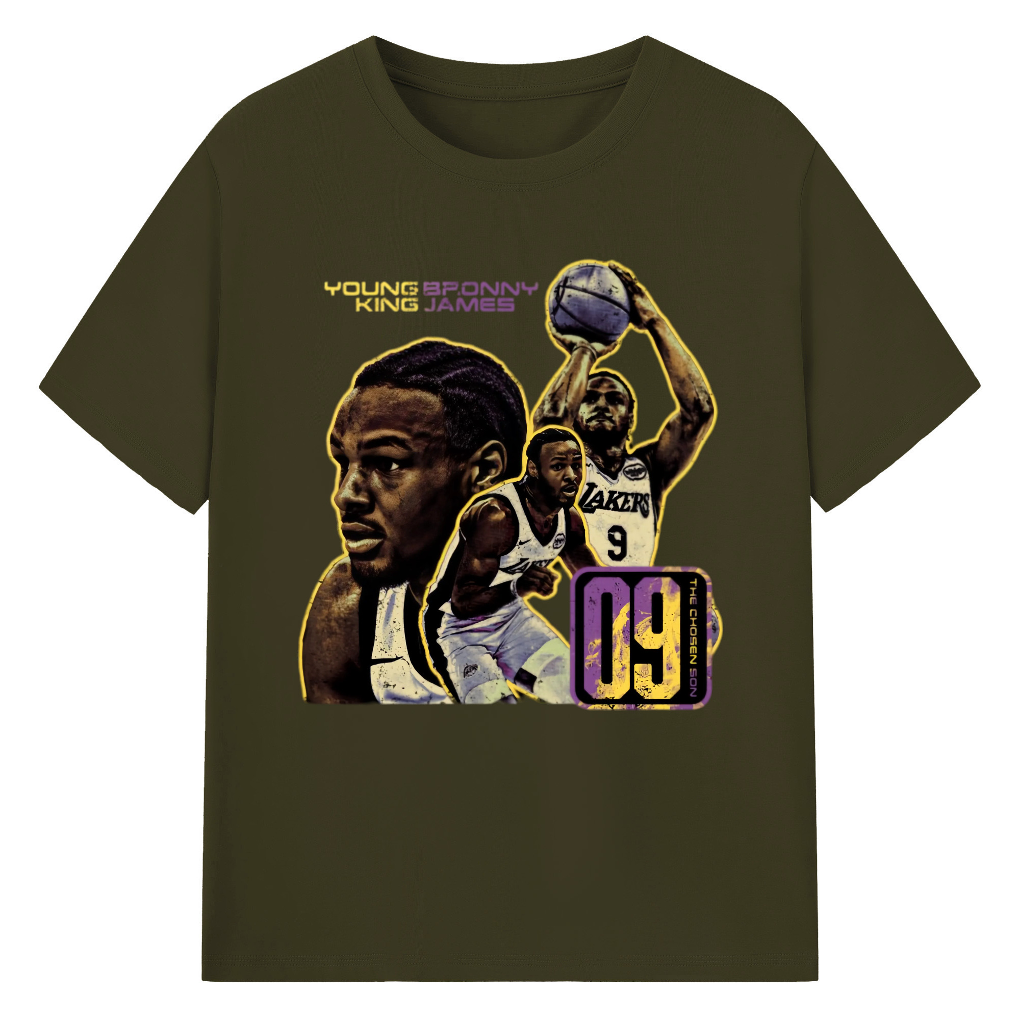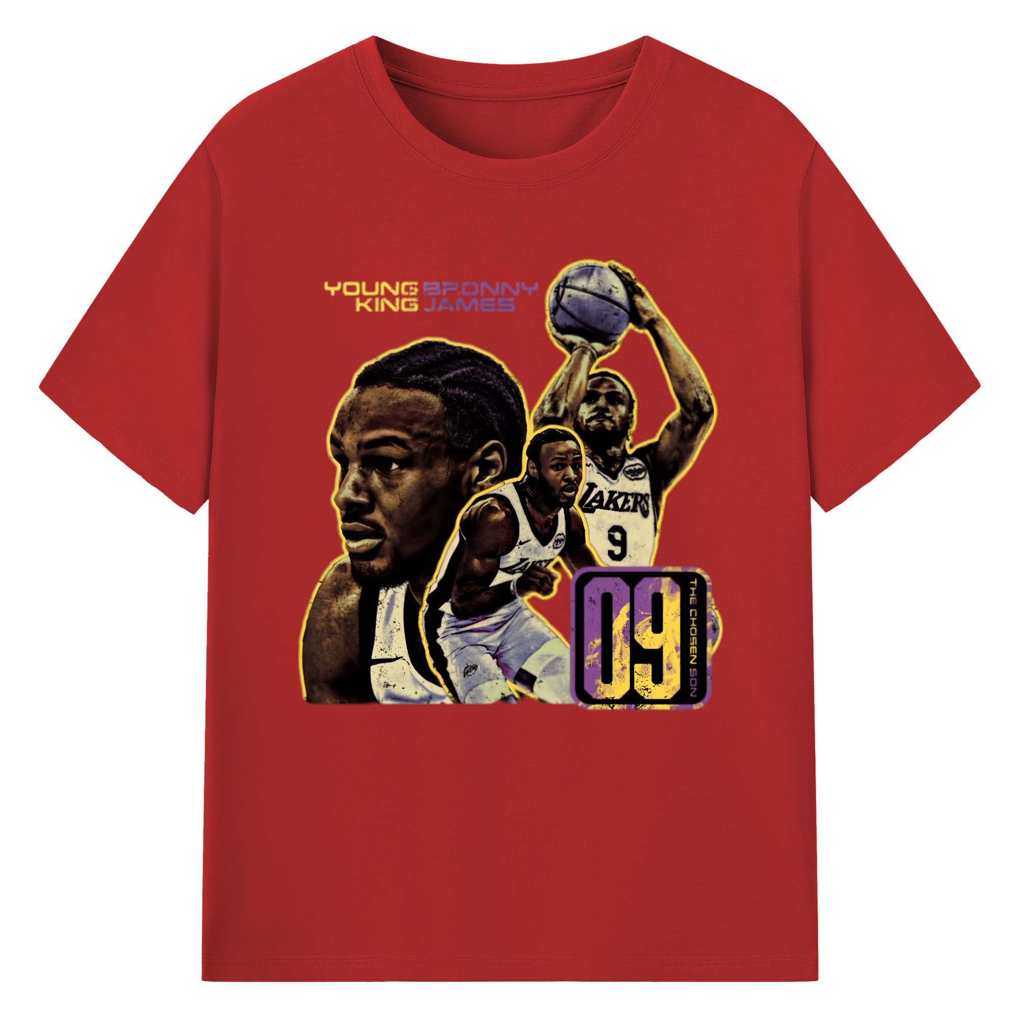 Bronny James #9 Lakers 'graphic T-shirt - 180g Cotton T-Shirt With Front Heat Transfer Print – Soft, Lightweight, Fitted Design – Comfortable Casual Wear For Sports & Everyday Use