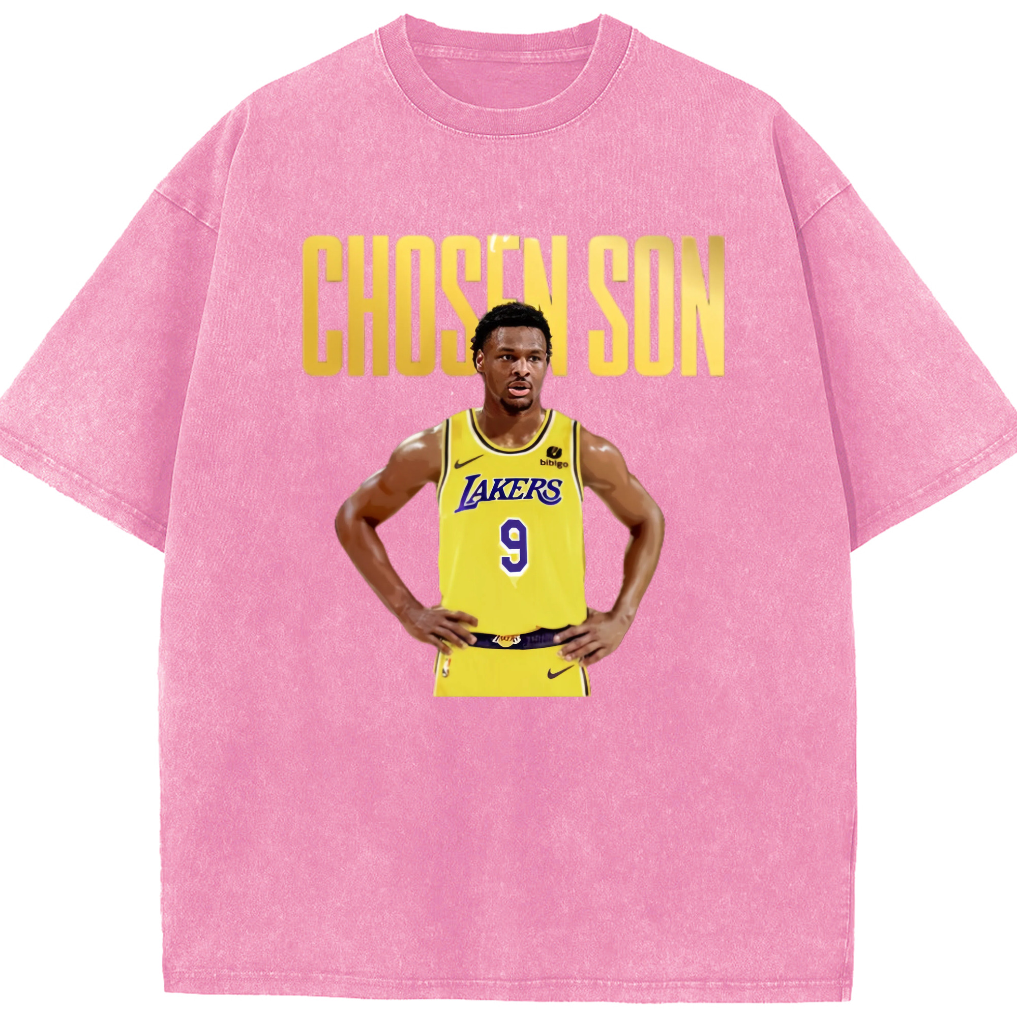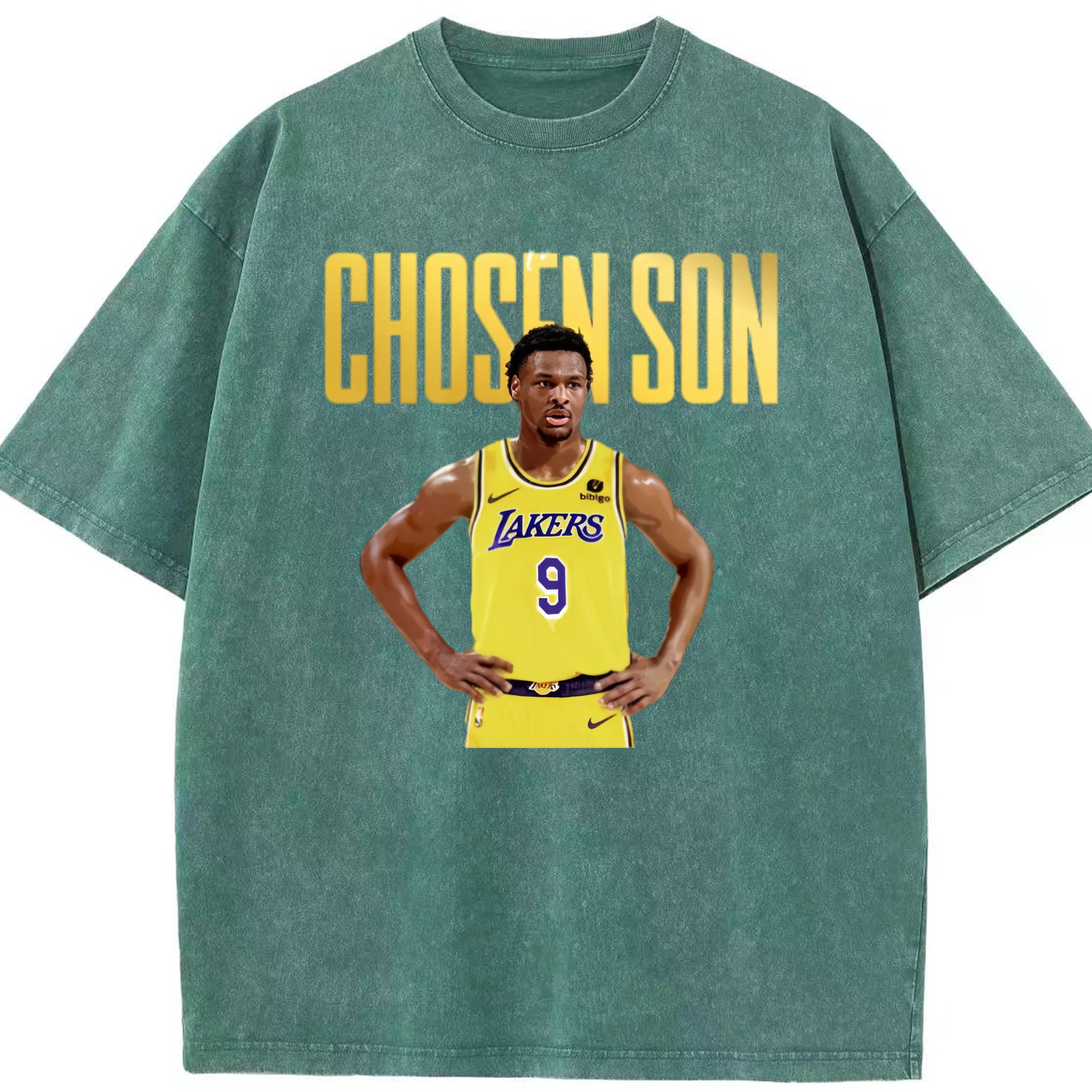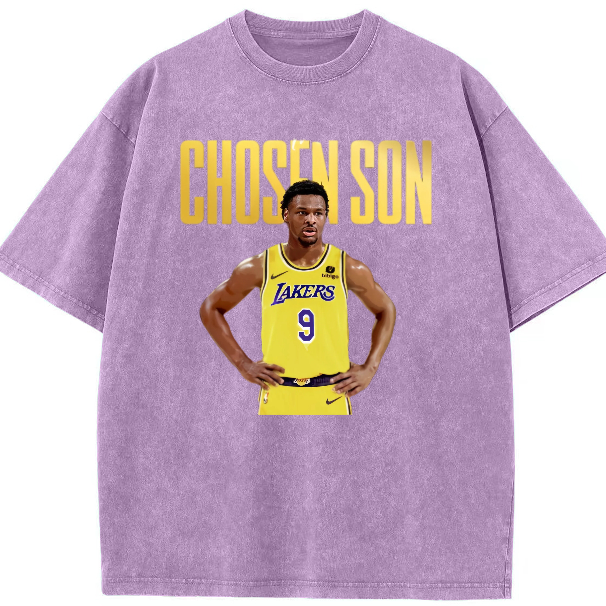 Bronny James #9 Lakers ' Chosen Son‘ graphic T-shirt - Washed Vintage Look 230g Cotton Oversized T-Shirt With Front Heat Transfer Print – Soft, Lightweight, Stylish Fit – Comfortable Casual Wear For Sports & Everyday Use