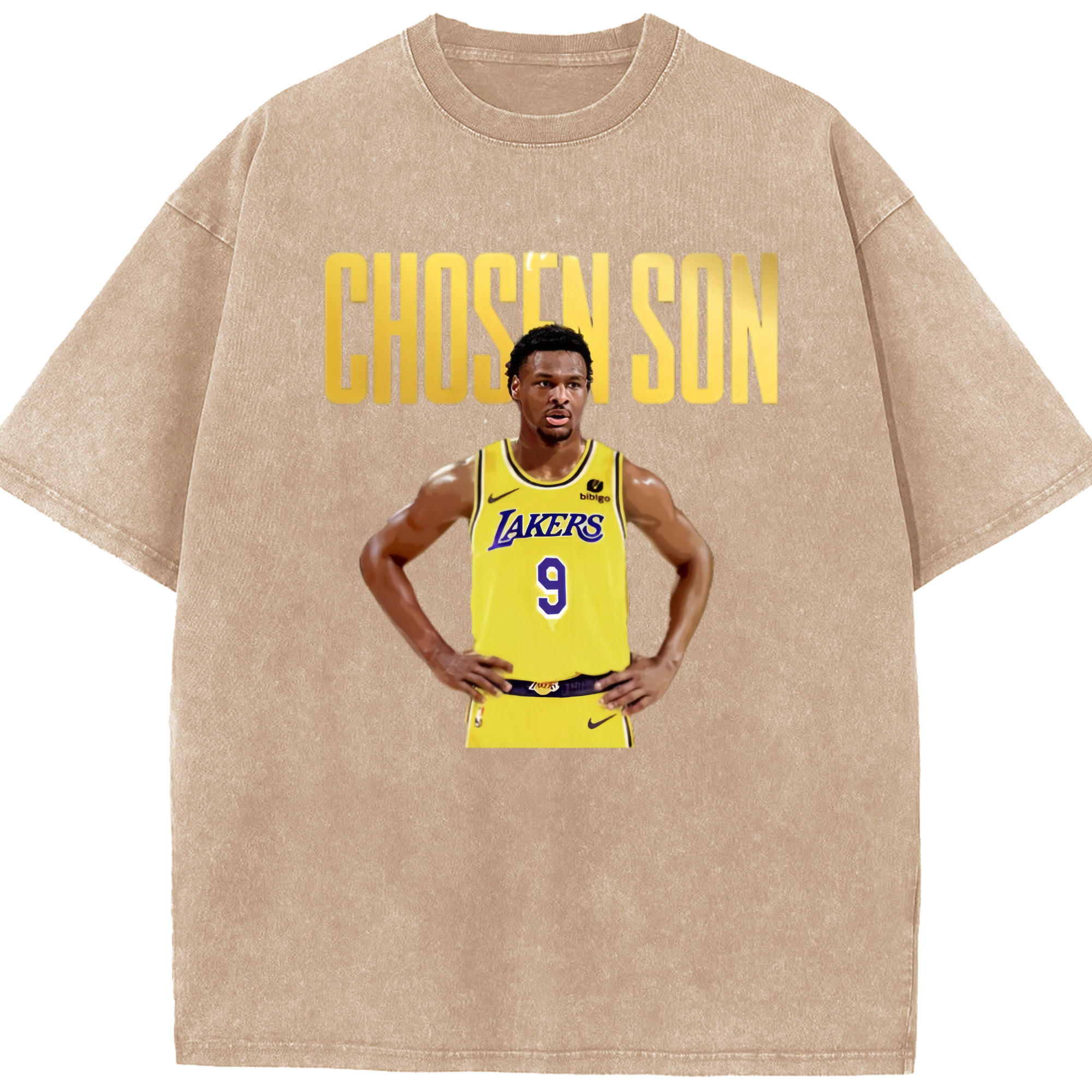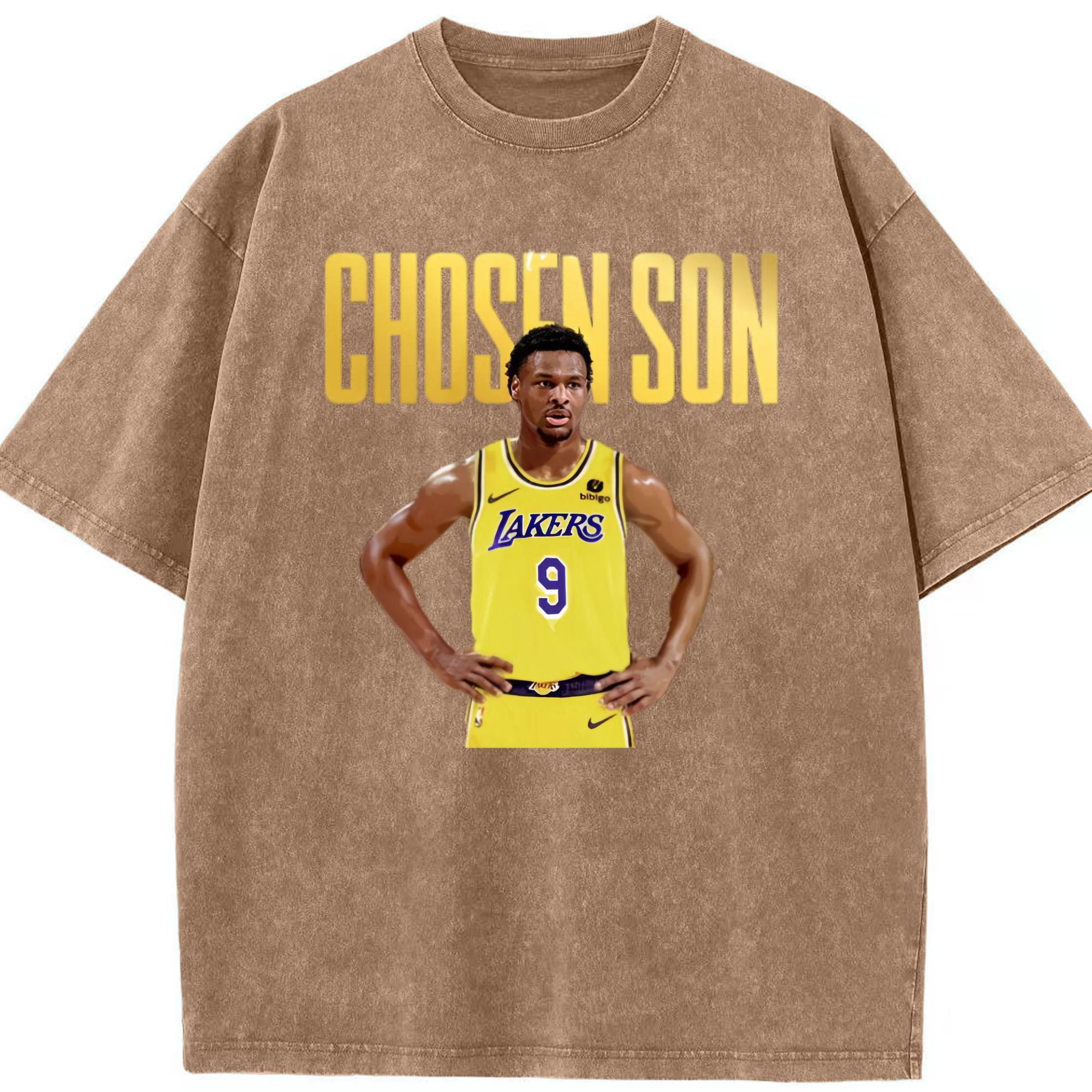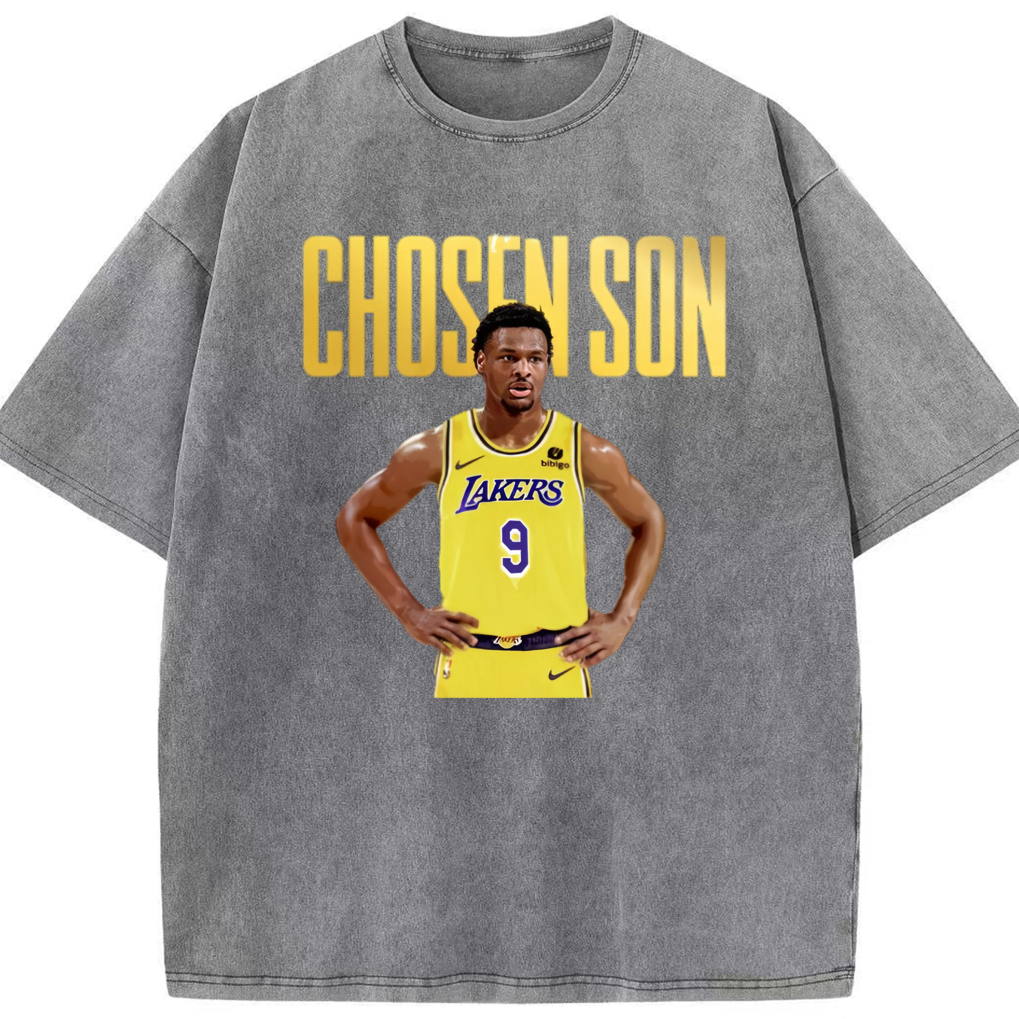 Bronny James #9 Lakers ' Chosen Son‘ graphic T-shirt - Washed Vintage Look 230g Cotton Oversized T-Shirt With Front Heat Transfer Print – Soft, Lightweight, Stylish Fit – Comfortable Casual Wear For Sports & Everyday Use
