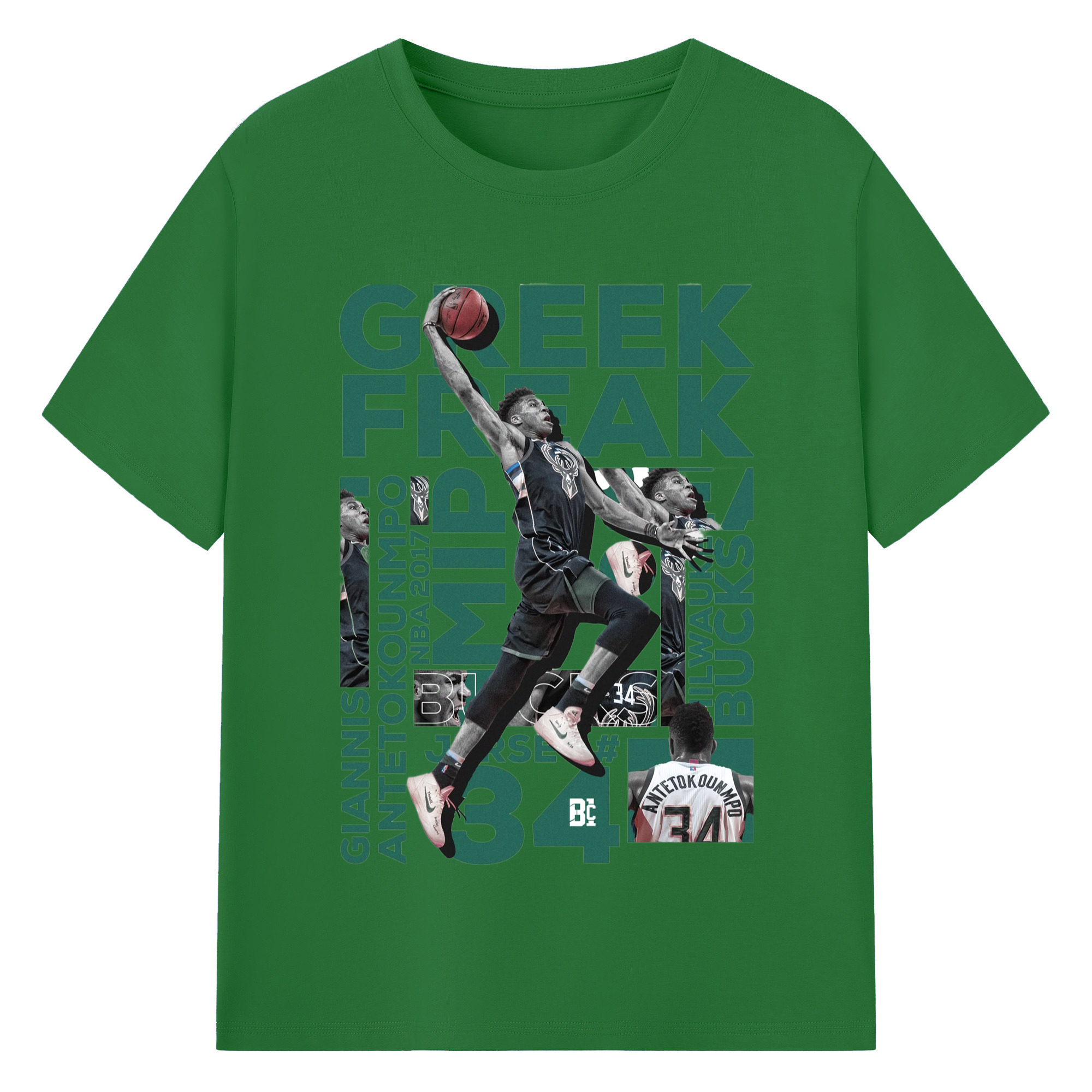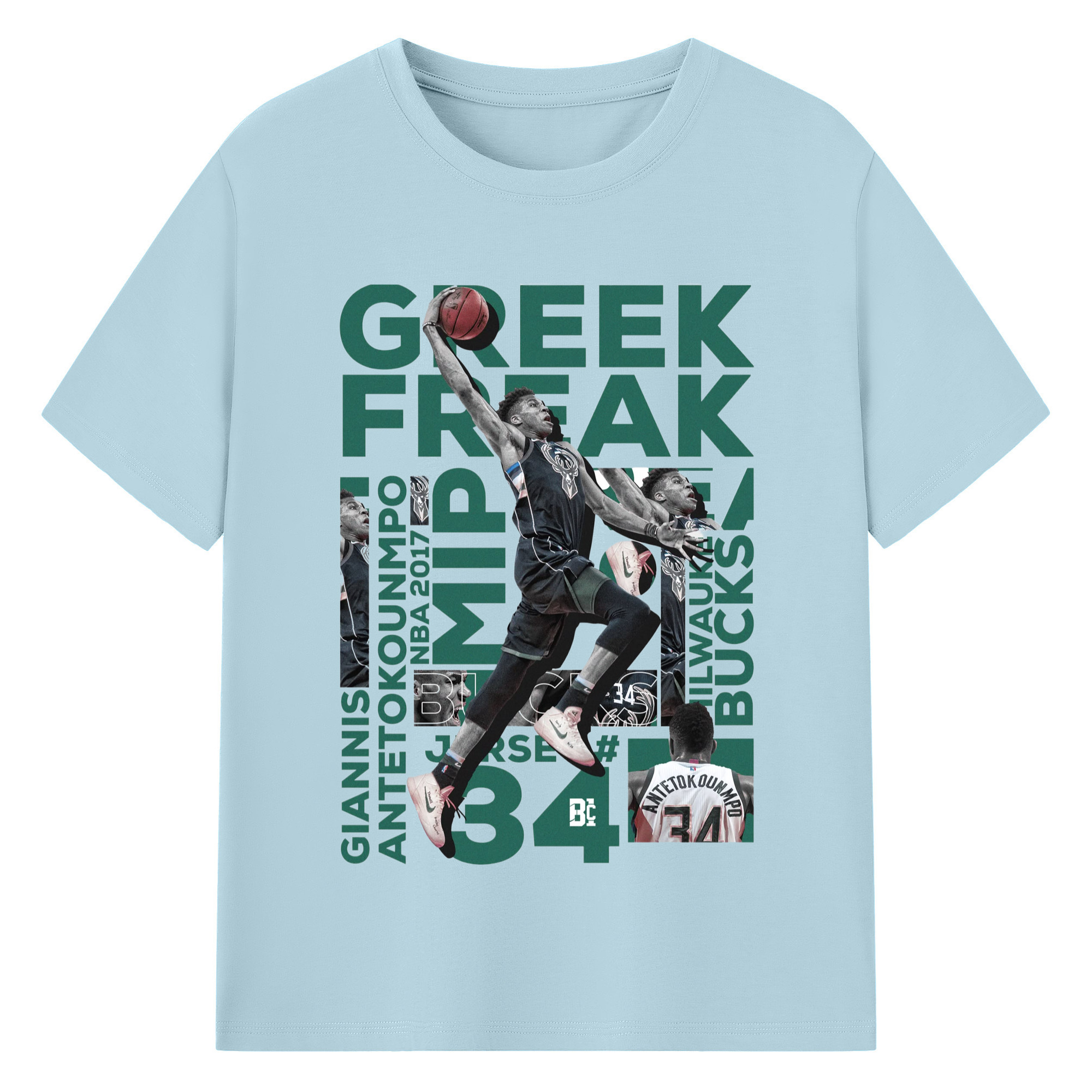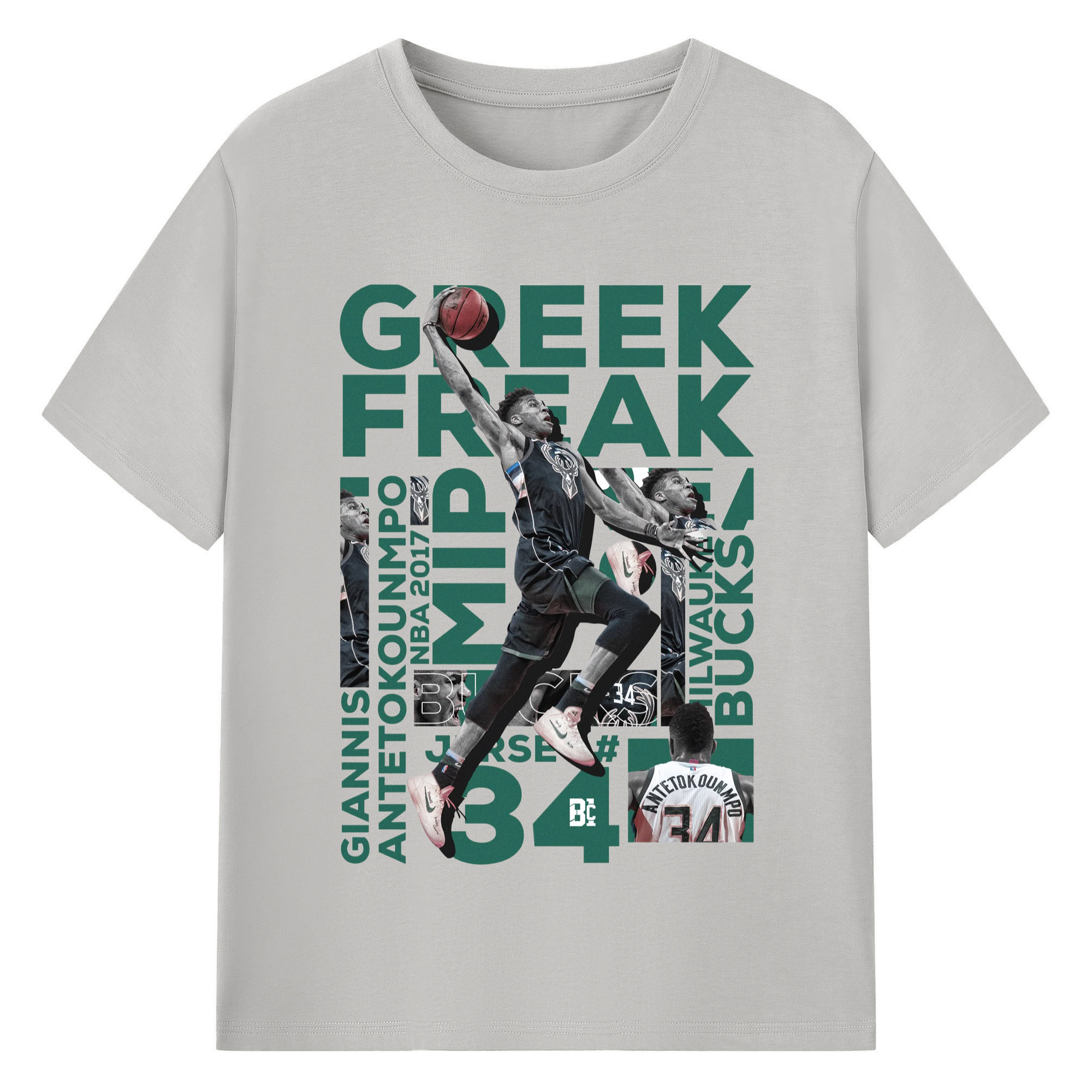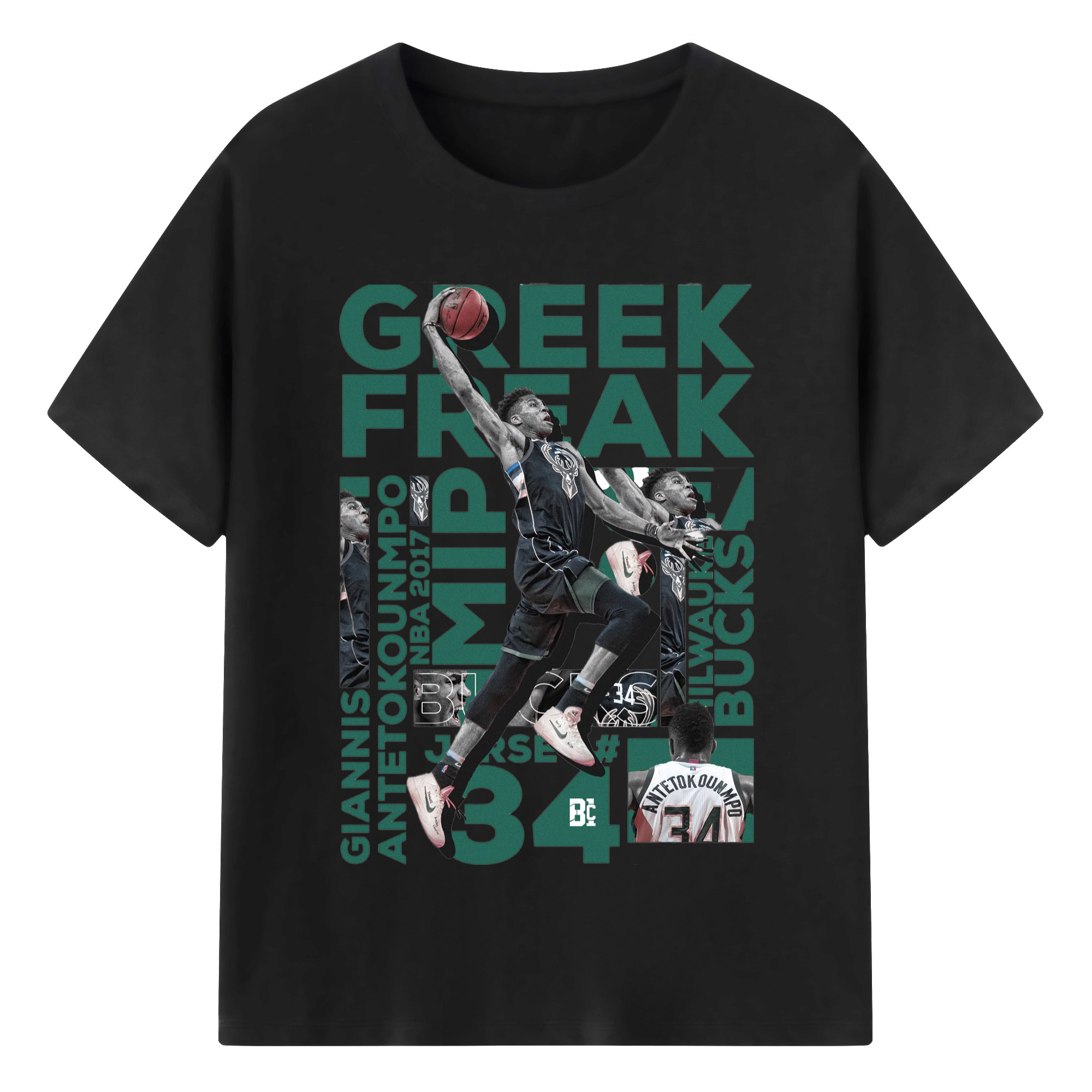 Bucks Giannis Antetokounmpo #34 collage T-shirt - 180g Cotton T-Shirt With Front Heat Transfer Print – Soft, Lightweight, Fitted Design – Comfortable Casual Wear For Sports & Everyday Use