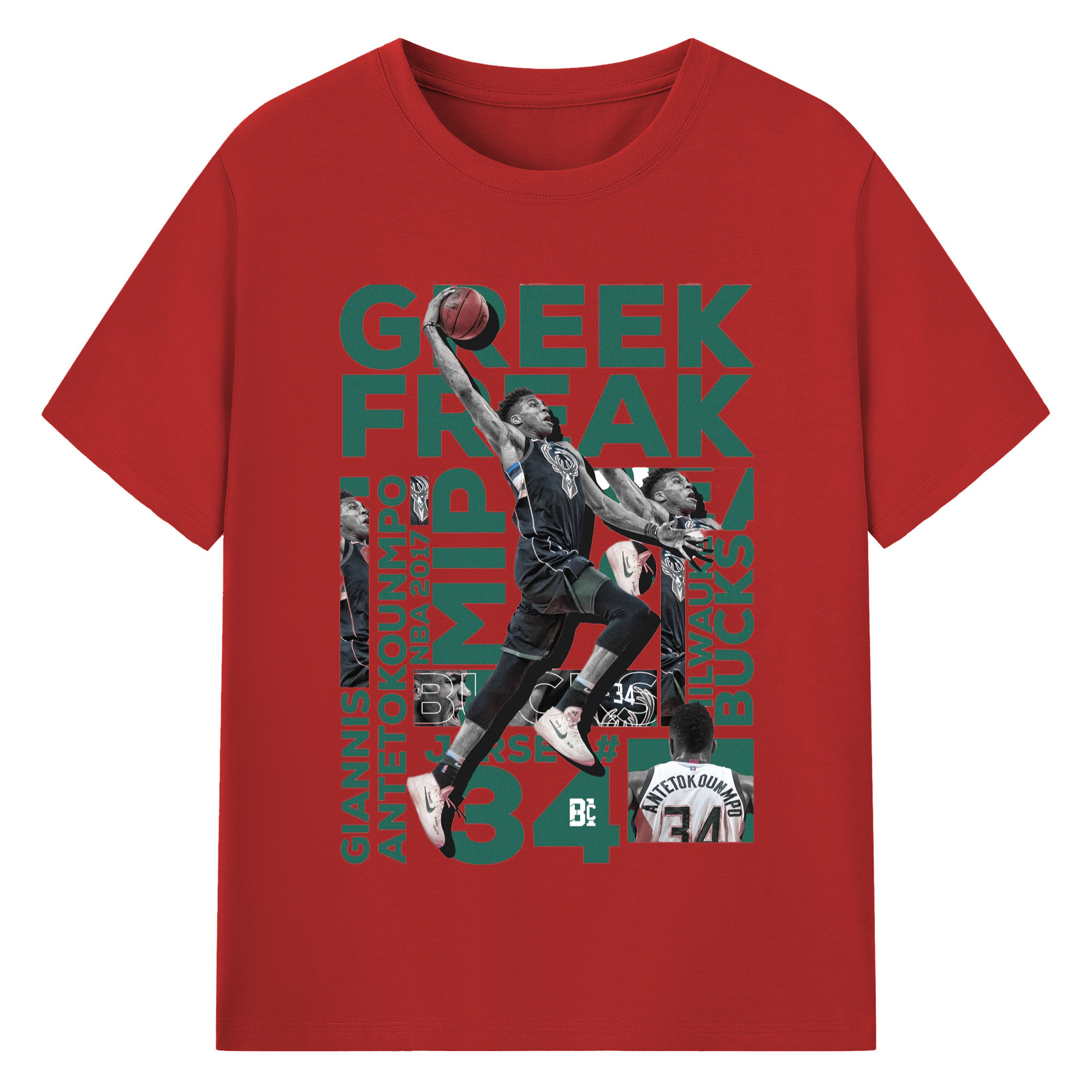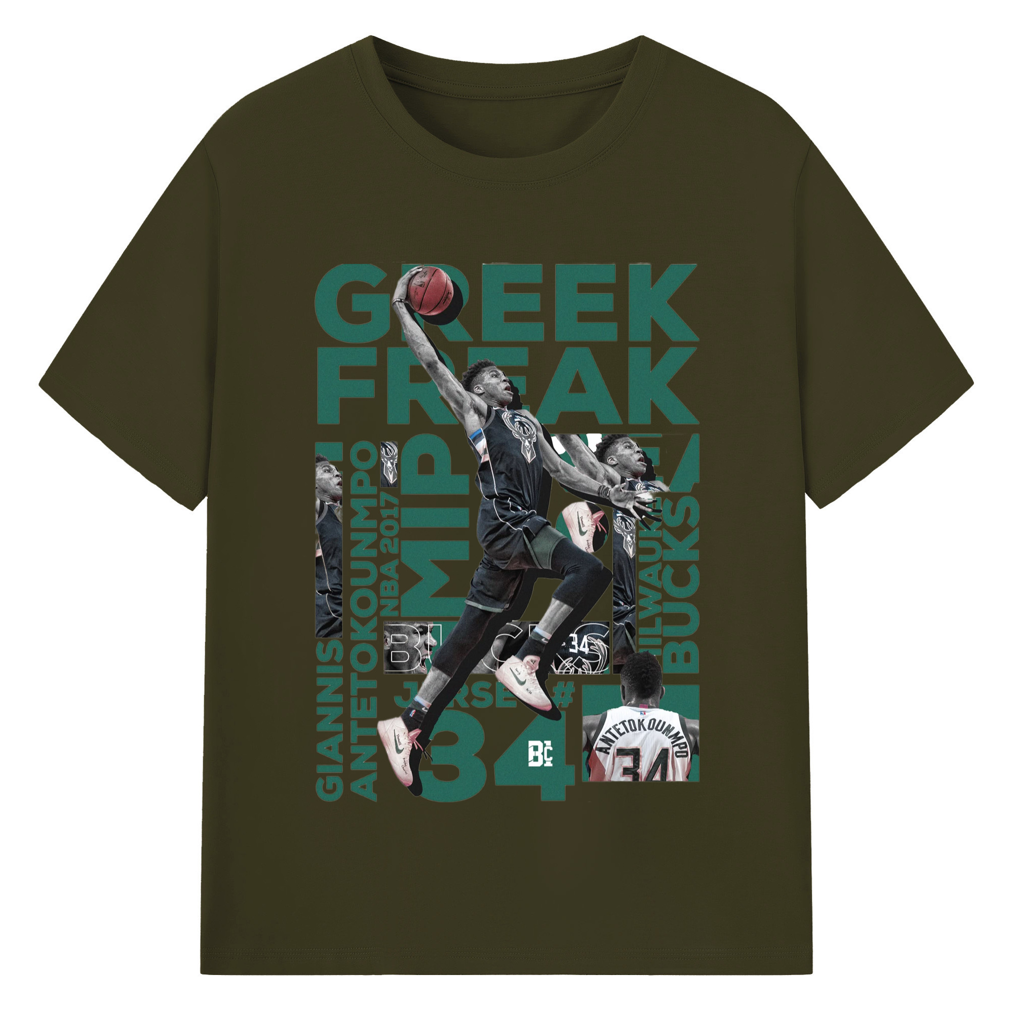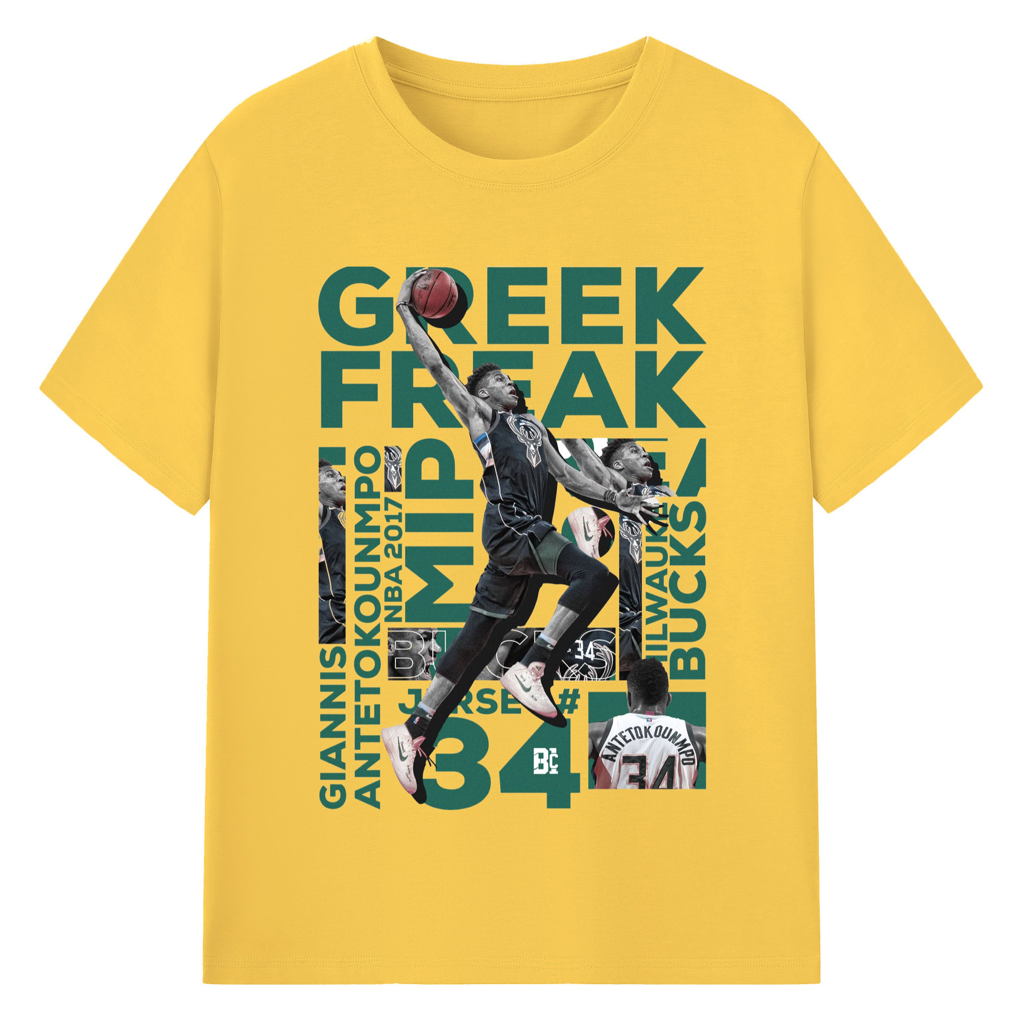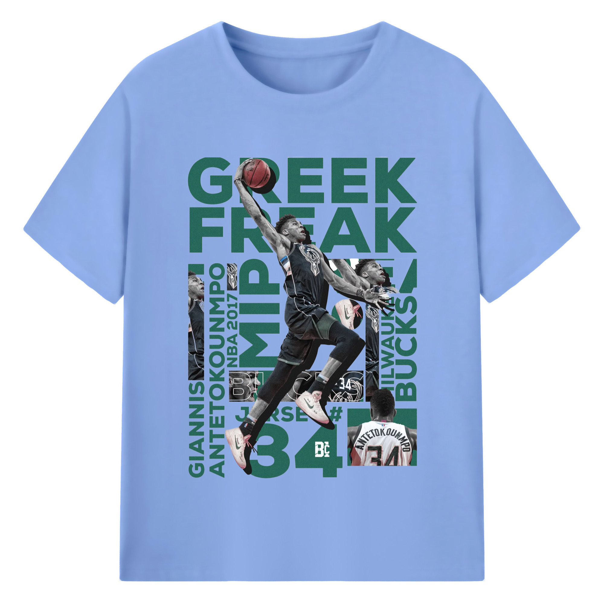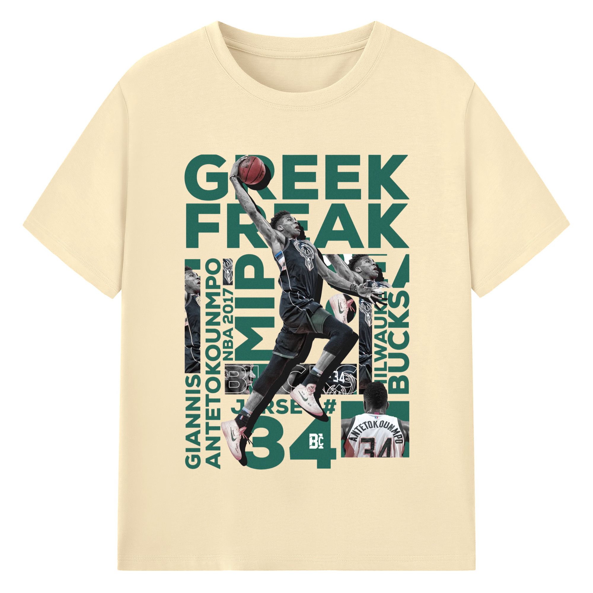 Bucks Giannis Antetokounmpo #34 collage T-shirt - 180g Cotton T-Shirt With Front Heat Transfer Print – Soft, Lightweight, Fitted Design – Comfortable Casual Wear For Sports & Everyday Use
