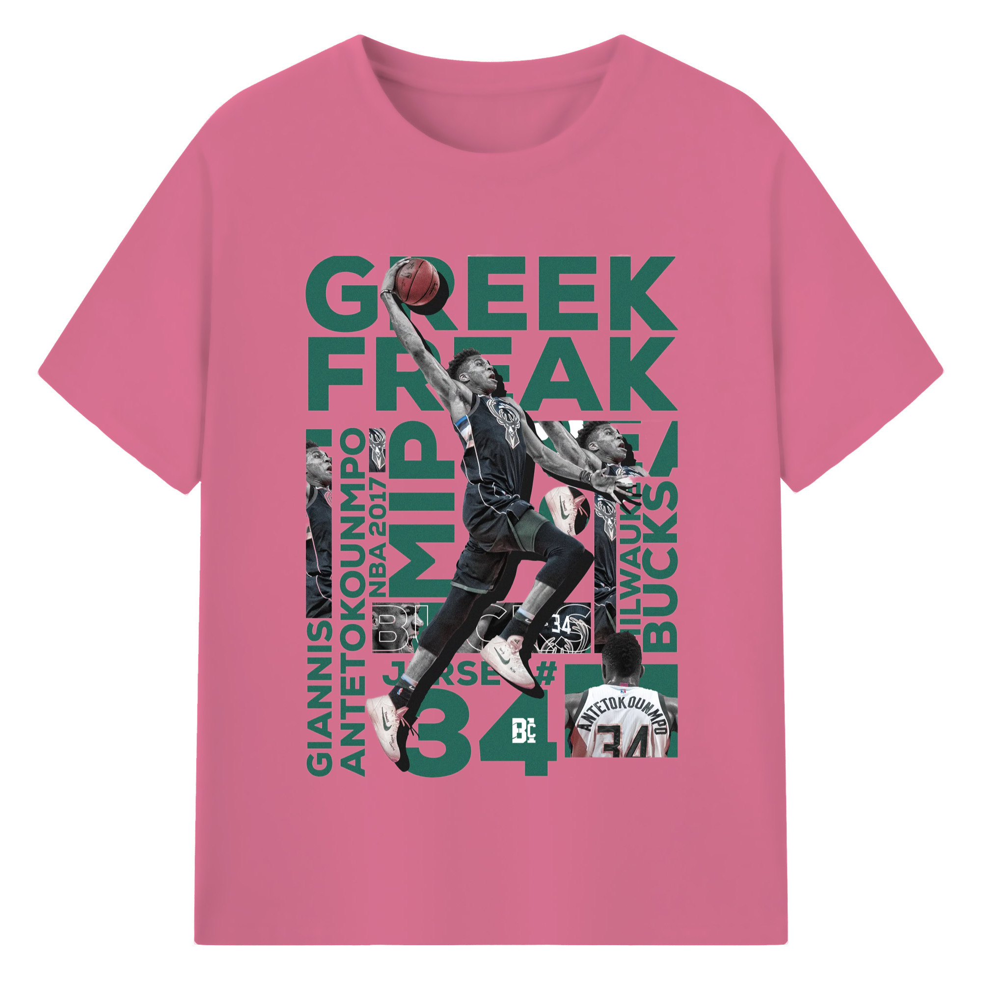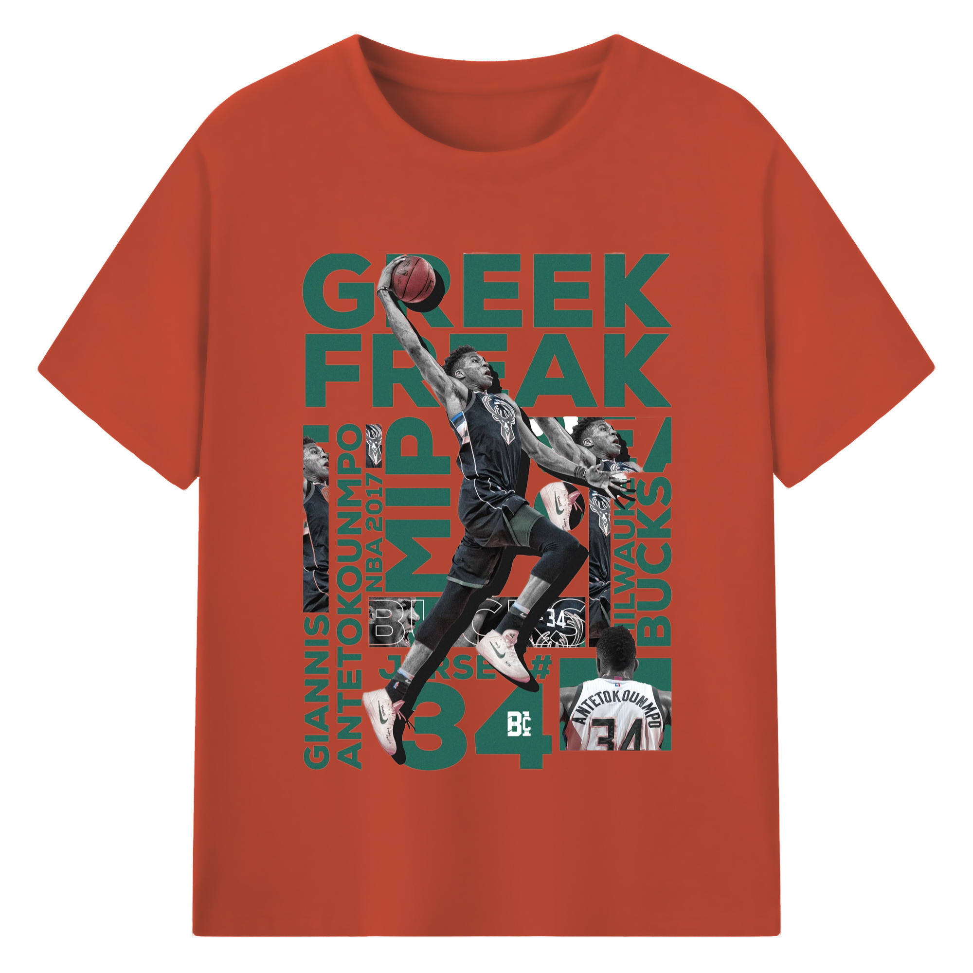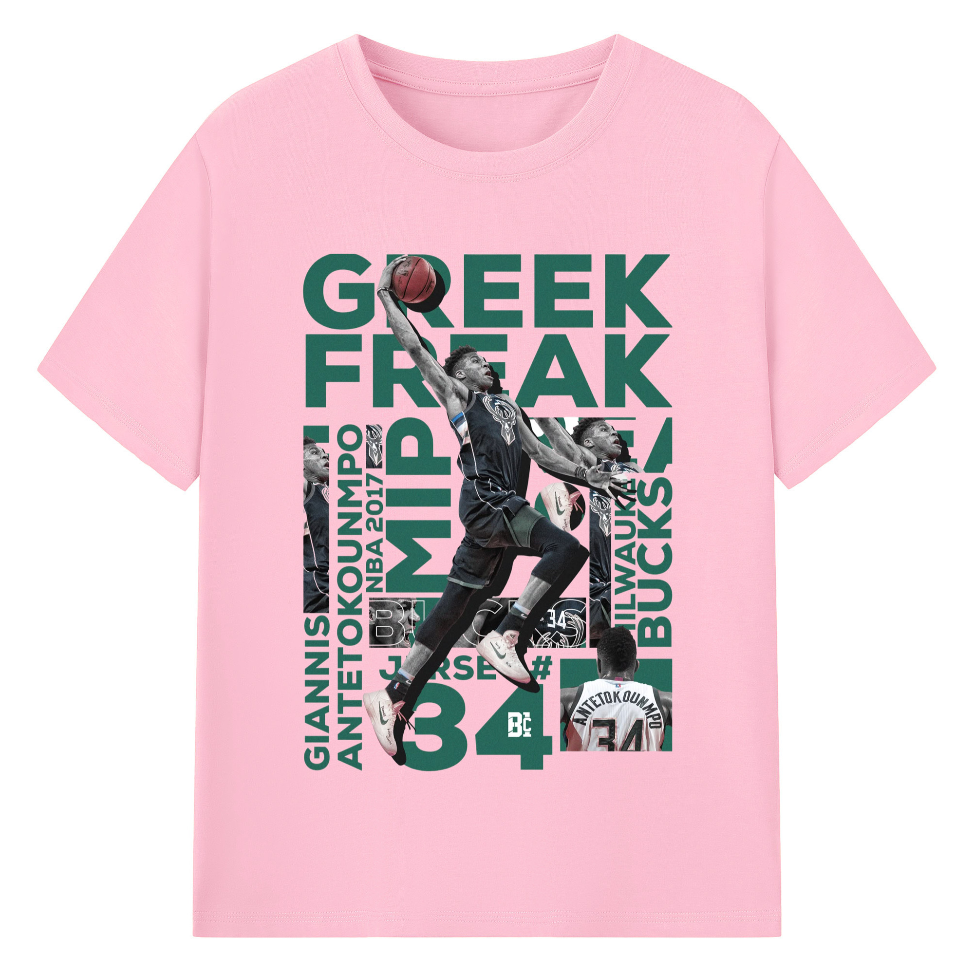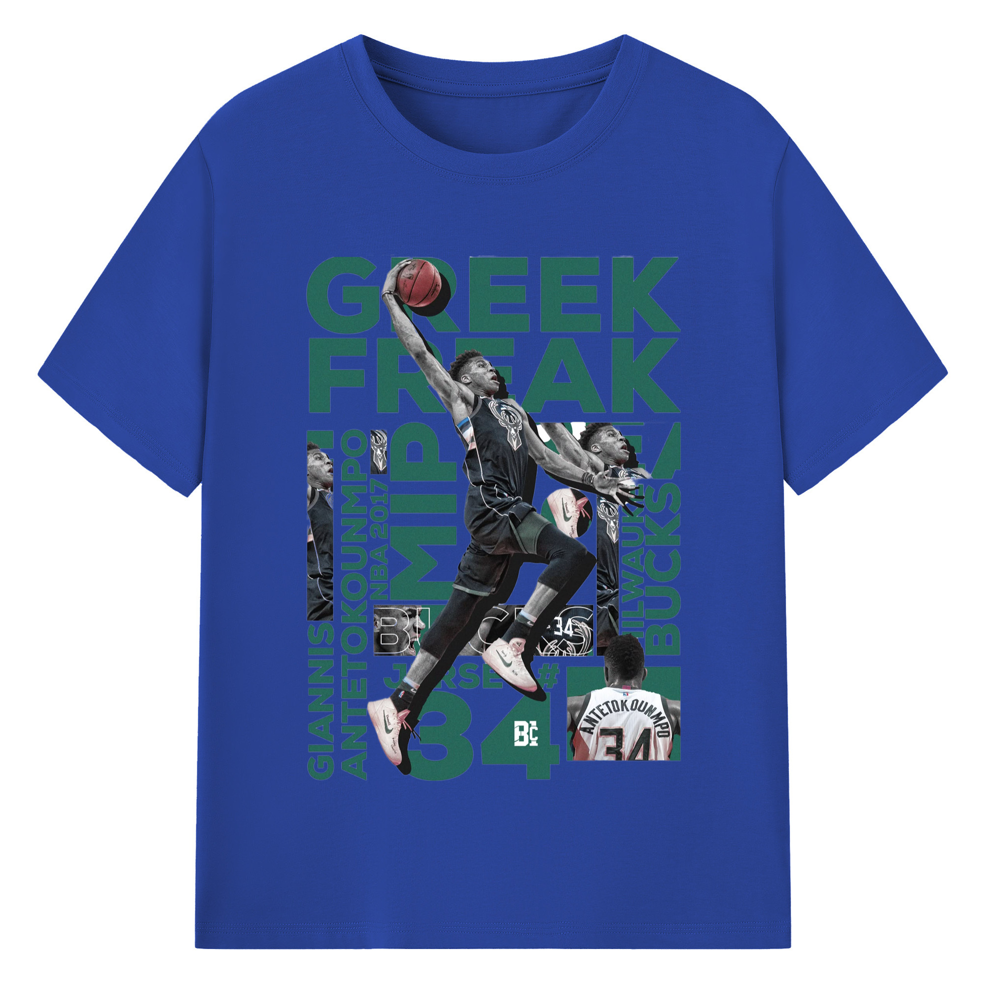 Bucks Giannis Antetokounmpo #34 collage T-shirt - 180g Cotton T-Shirt With Front Heat Transfer Print – Soft, Lightweight, Fitted Design – Comfortable Casual Wear For Sports & Everyday Use