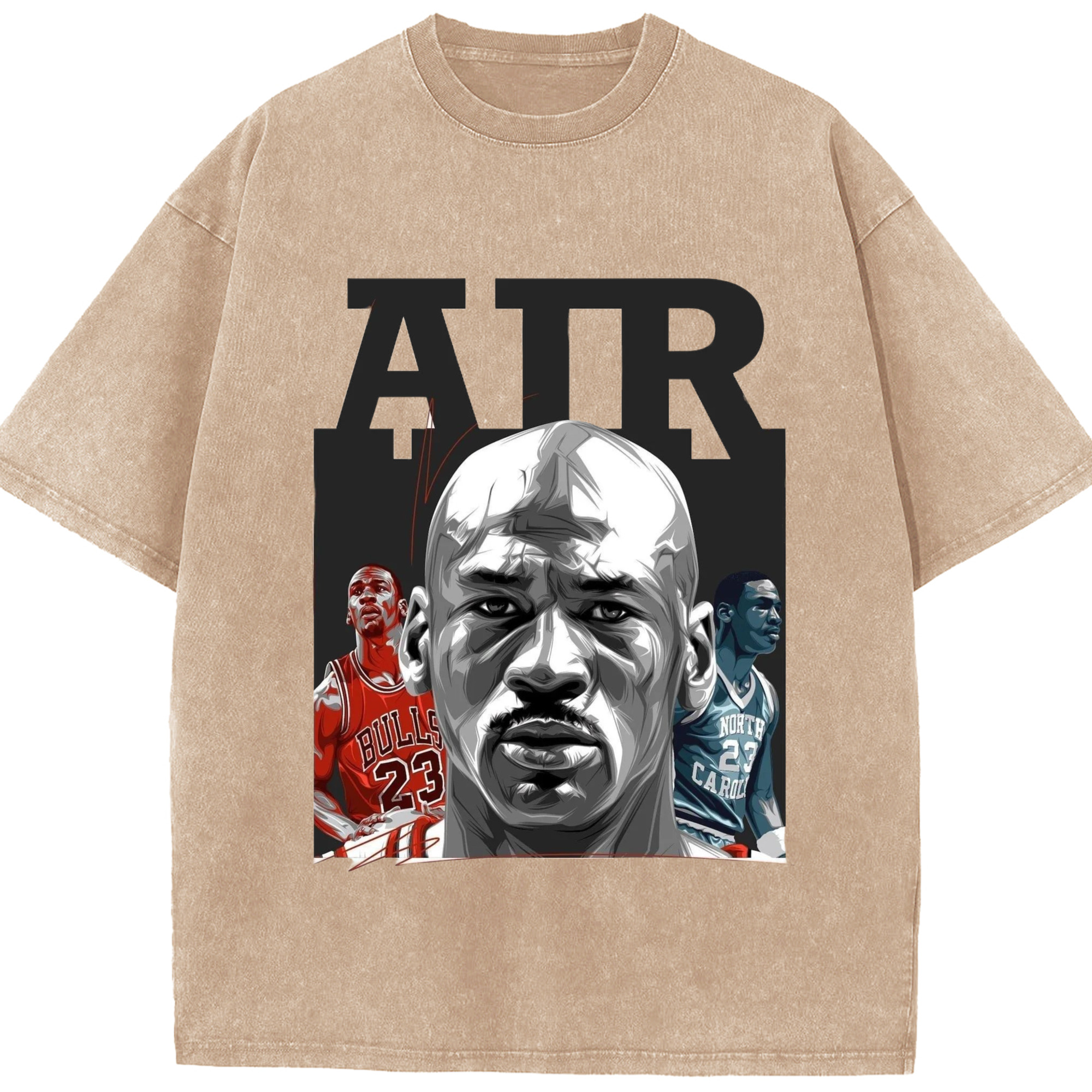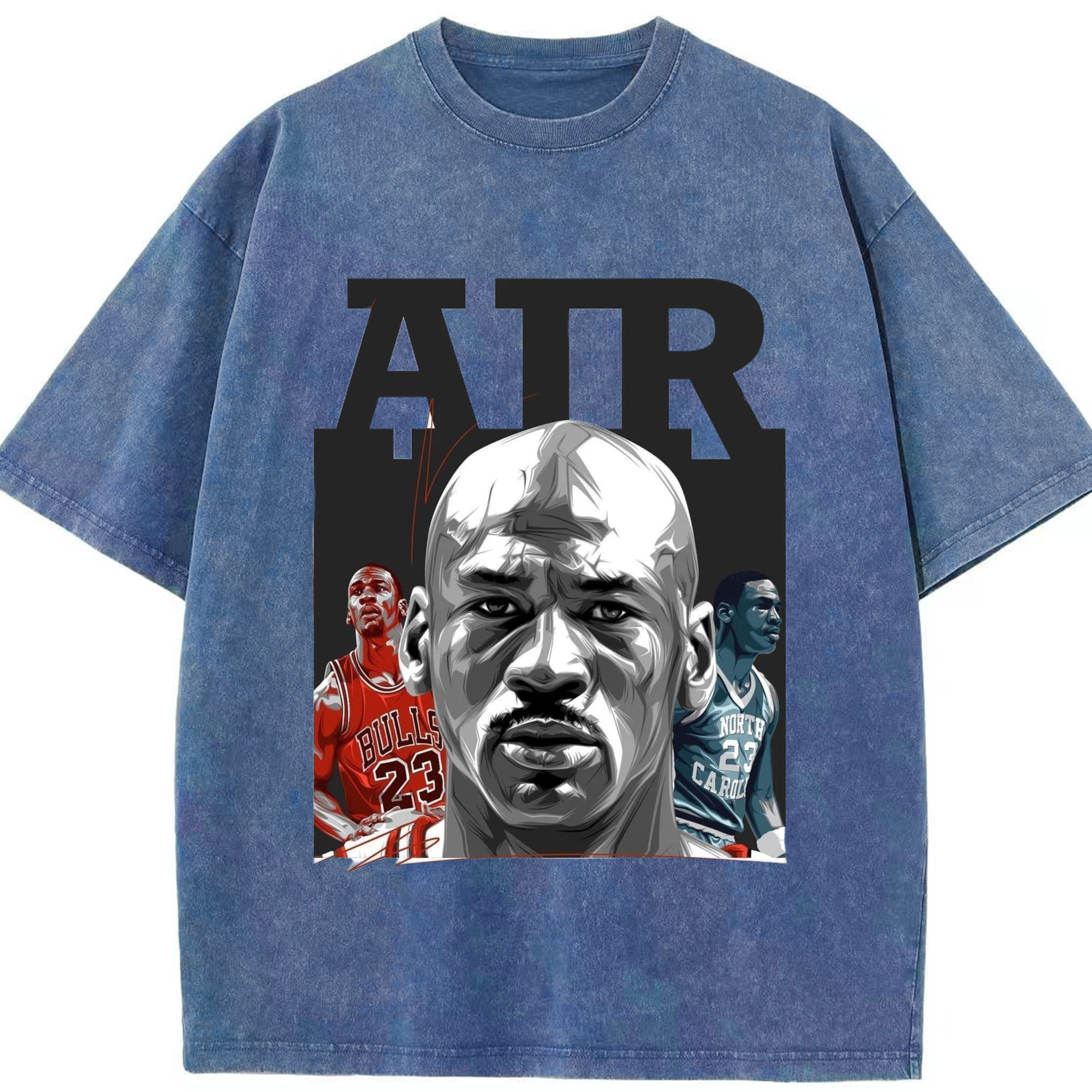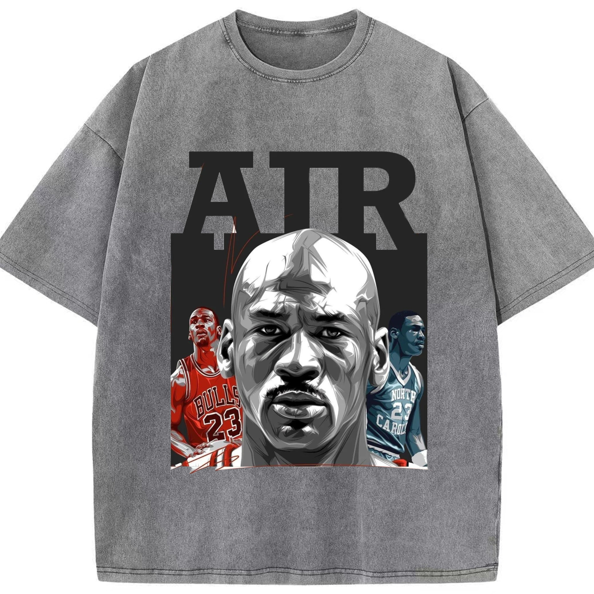 Bulls Air Jordan #23 T-Shirt - Washed Vintage Look 230g Cotton Oversized T-Shirt With Front Heat Transfer Print – Soft, Lightweight, Stylish Fit – Comfortable Casual Wear For Sports & Everyday Use
