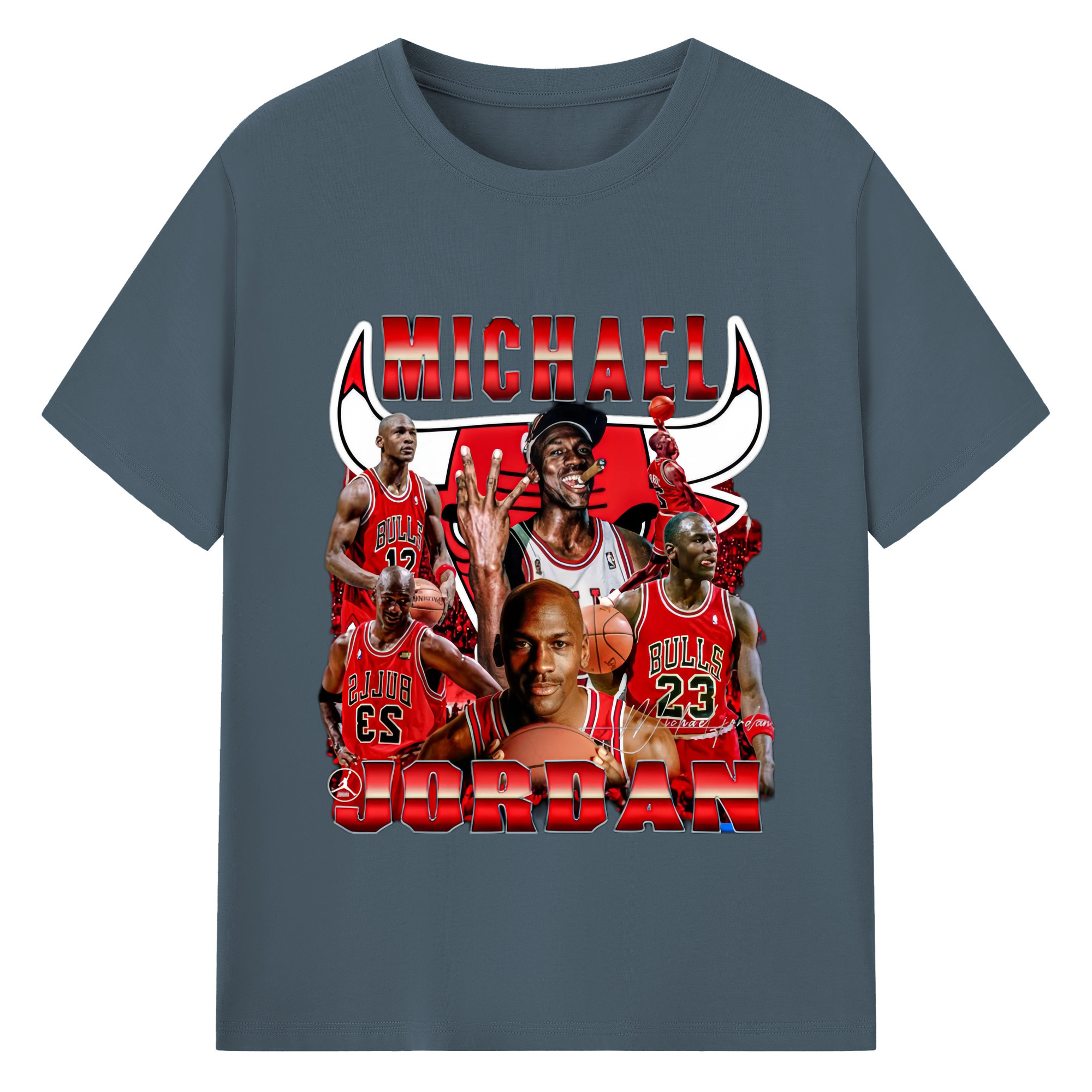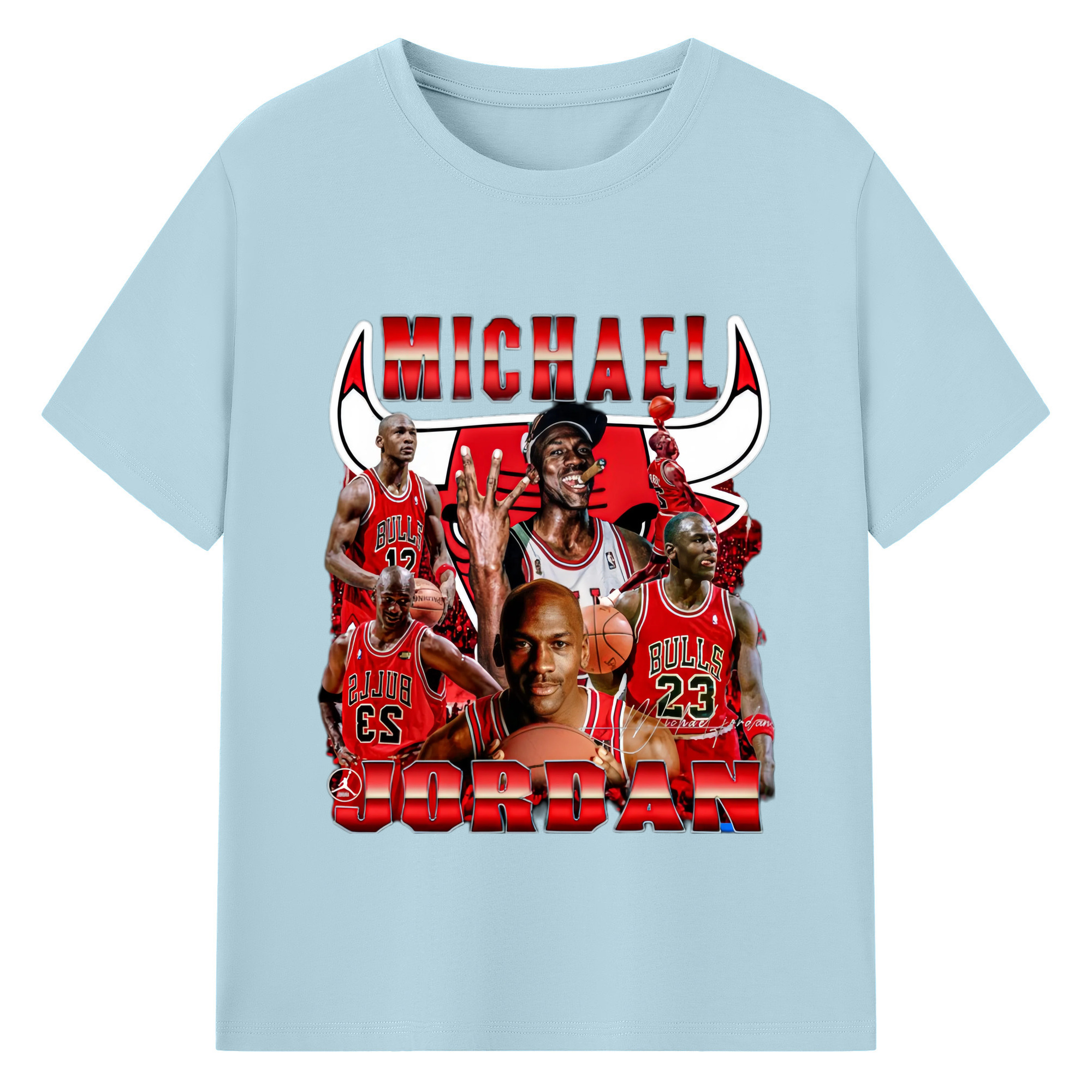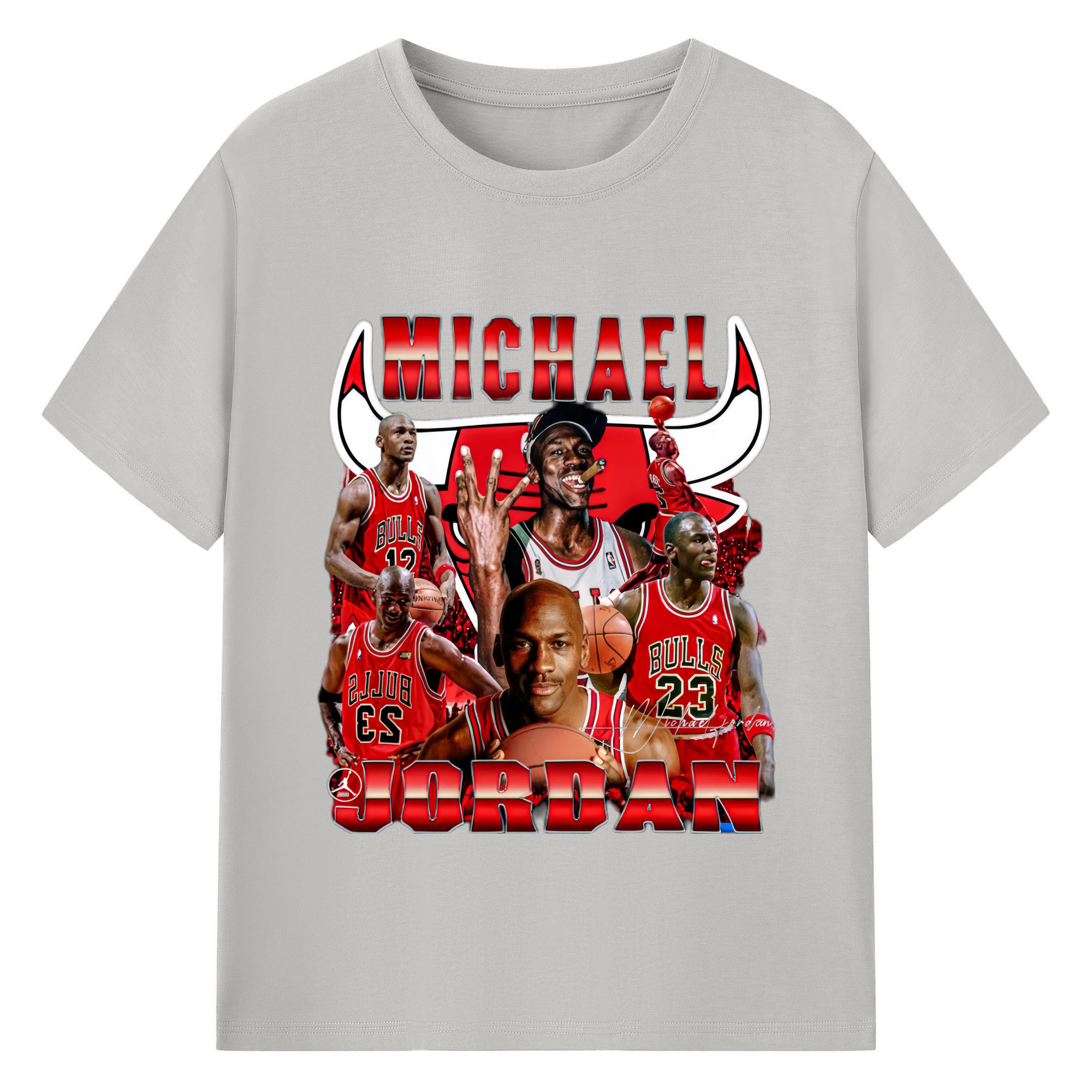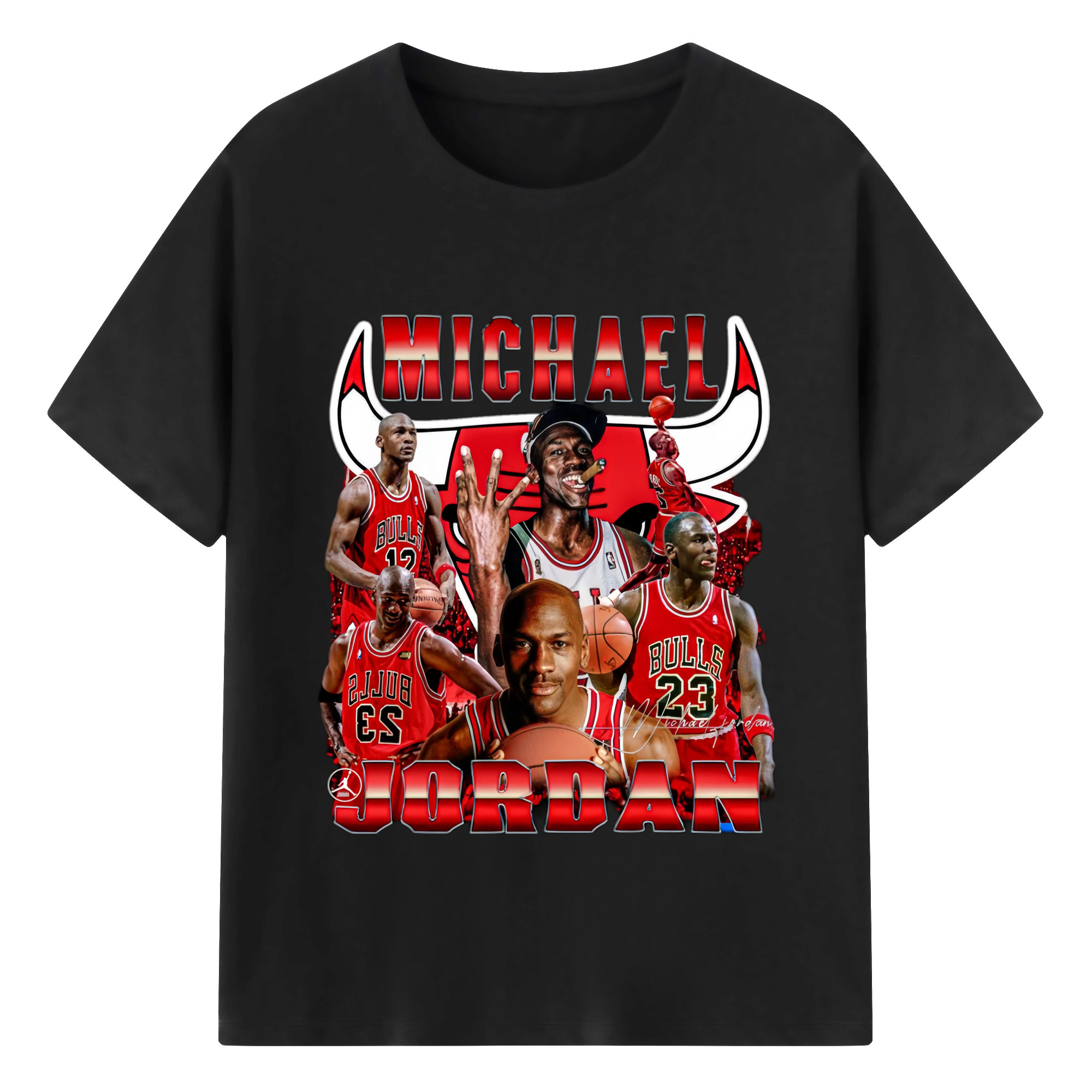 Bulls Michael Jordan #23 Collage graphic T‑Shirt - 180g Cotton T-Shirt With Front Heat Transfer Print – Soft, Lightweight, Fitted Design – Comfortable Casual Wear For Sports & Everyday Use