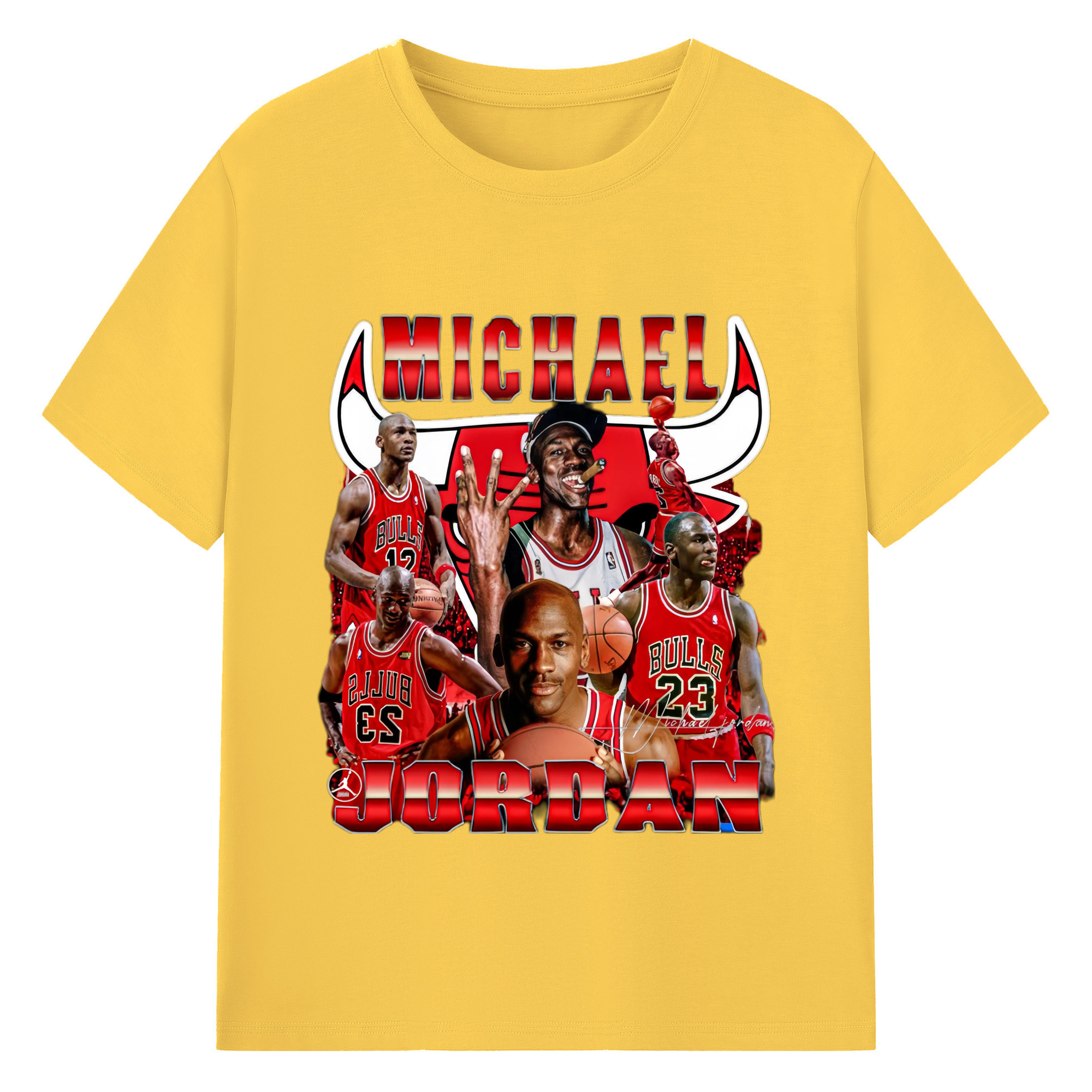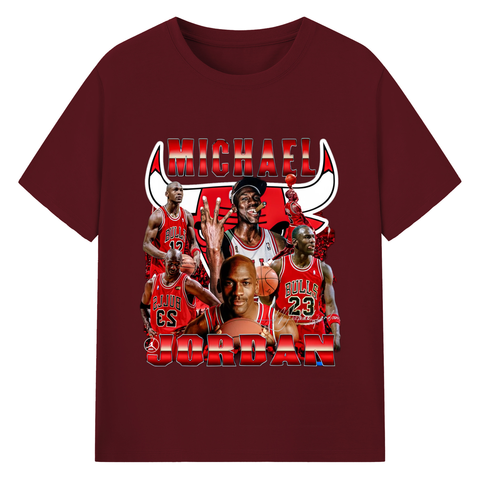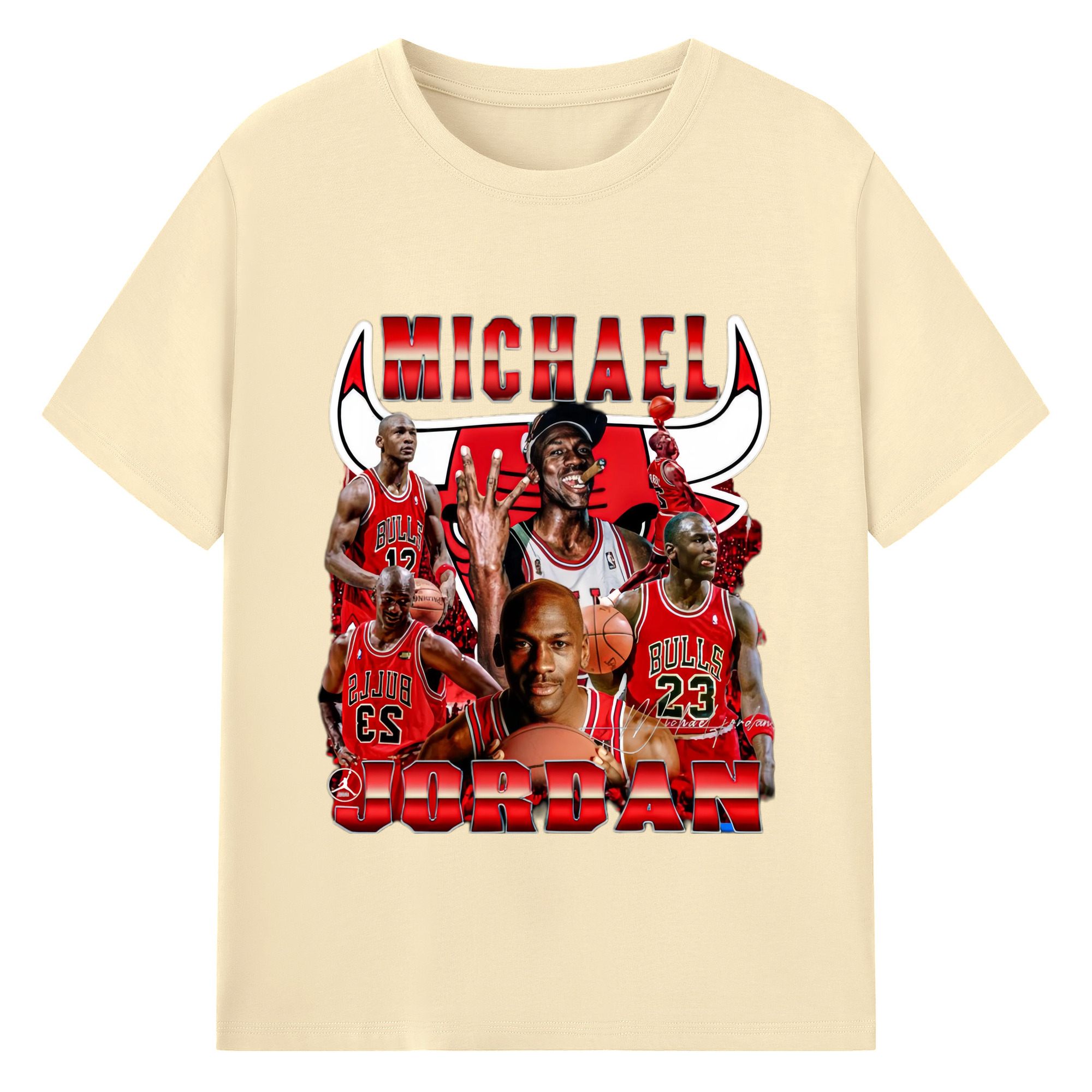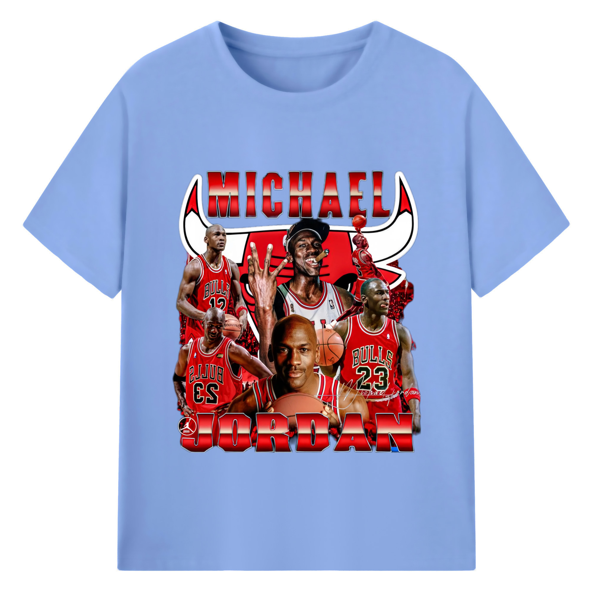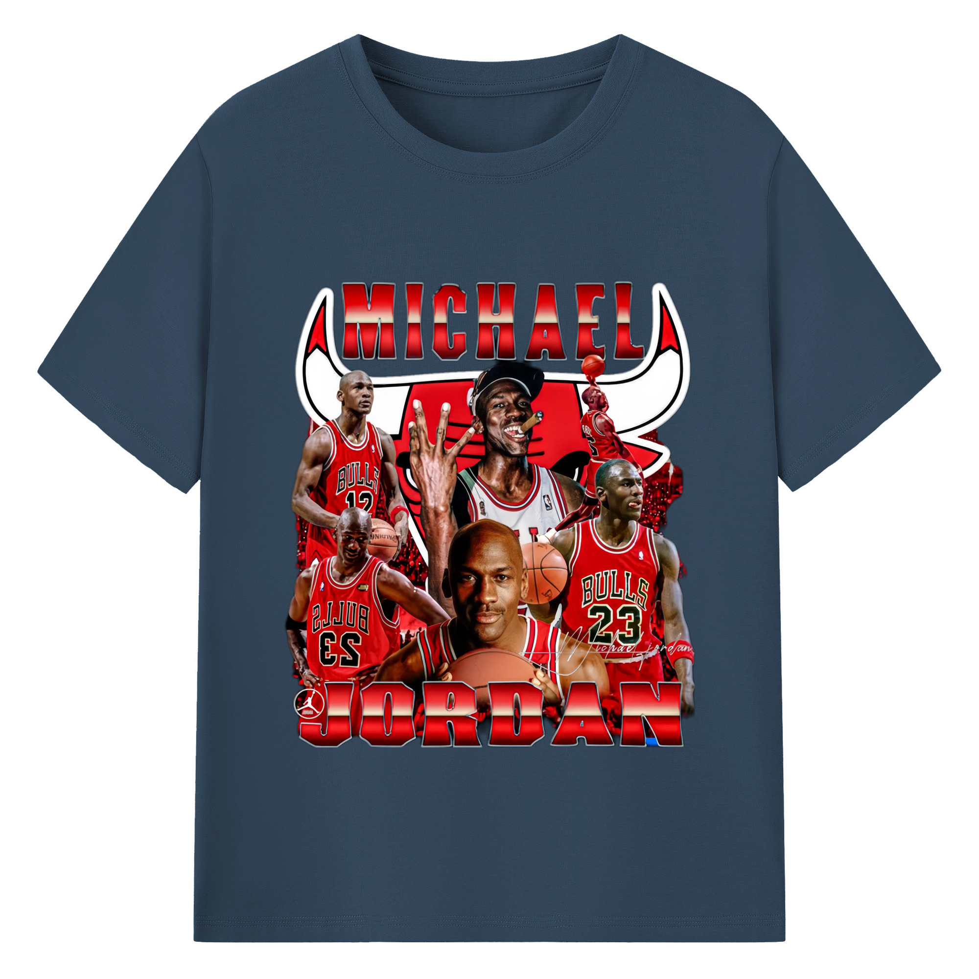 Bulls Michael Jordan #23 Collage graphic T‑Shirt - 180g Cotton T-Shirt With Front Heat Transfer Print – Soft, Lightweight, Fitted Design – Comfortable Casual Wear For Sports & Everyday Use