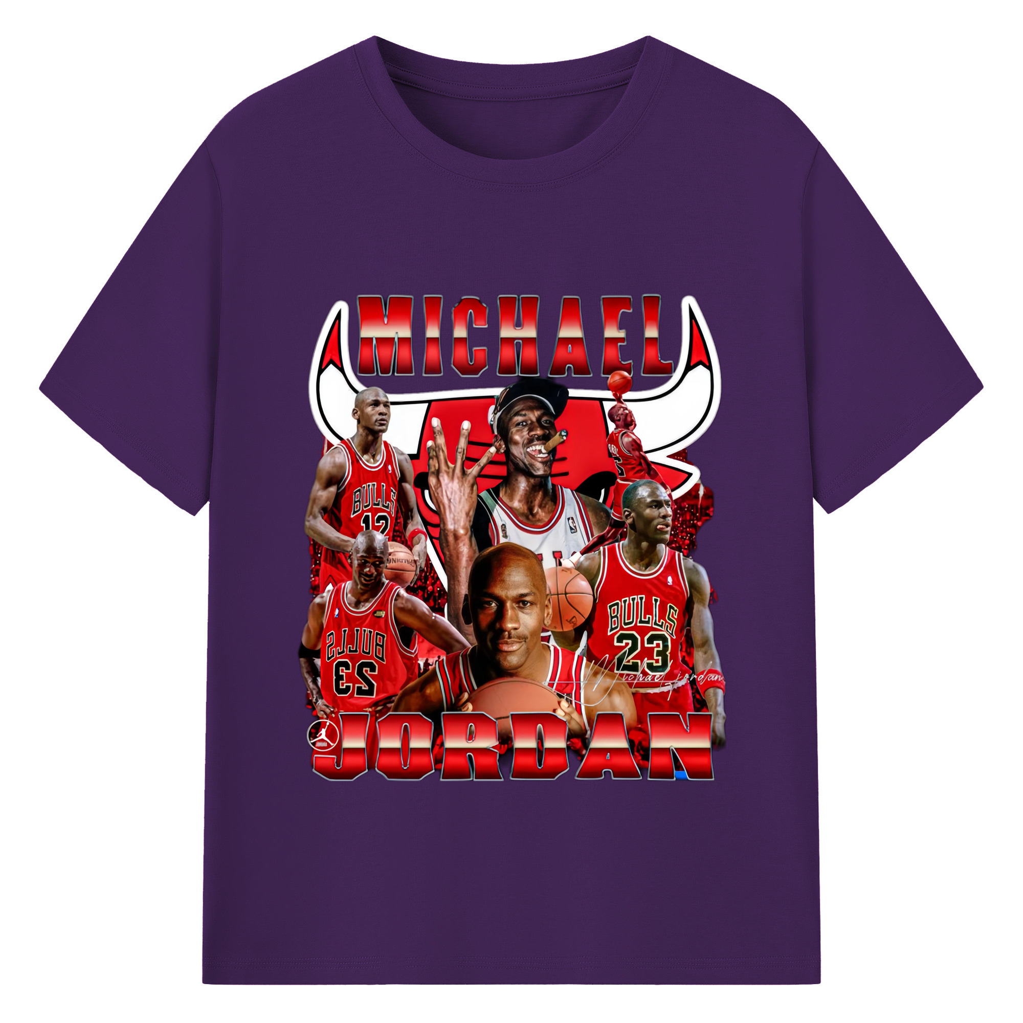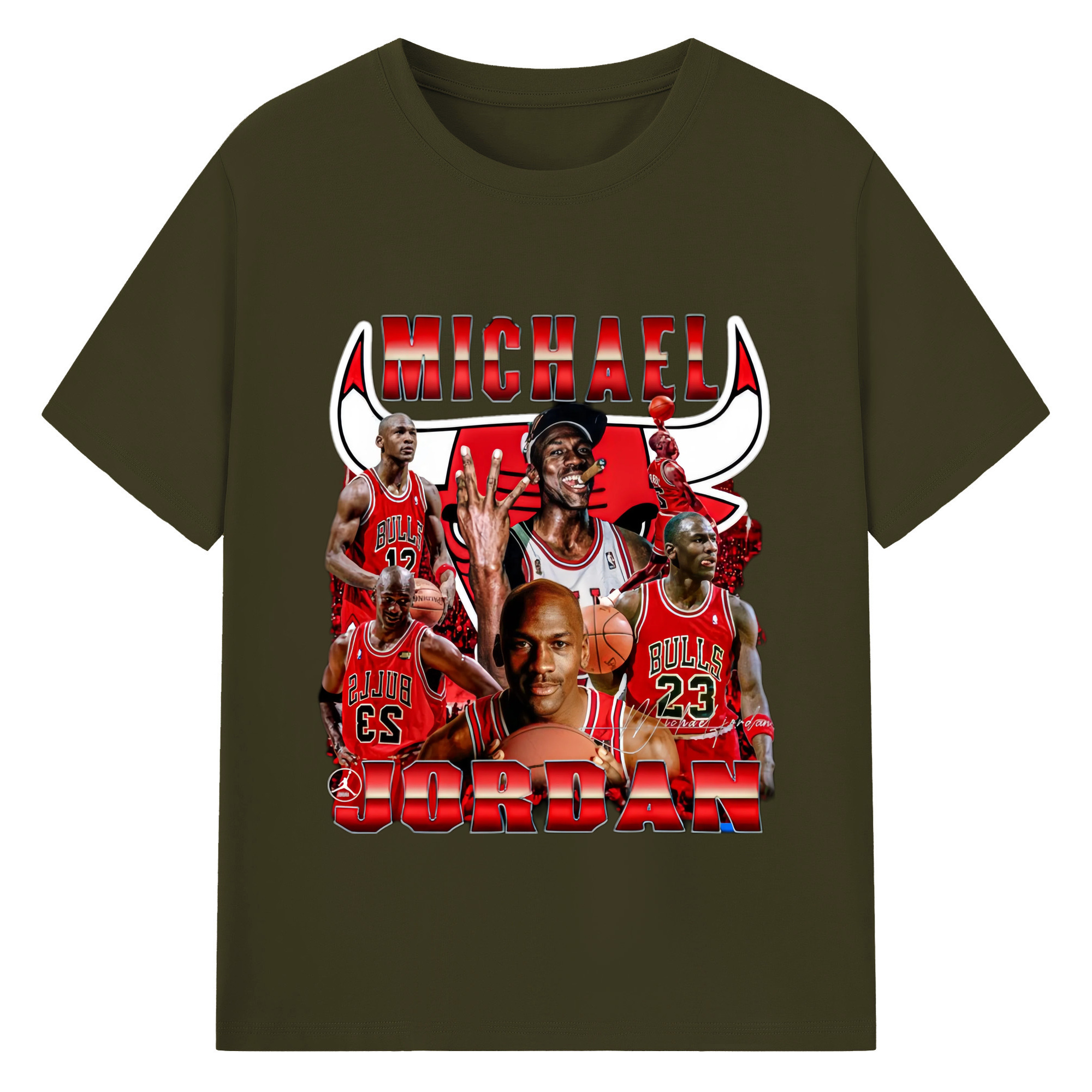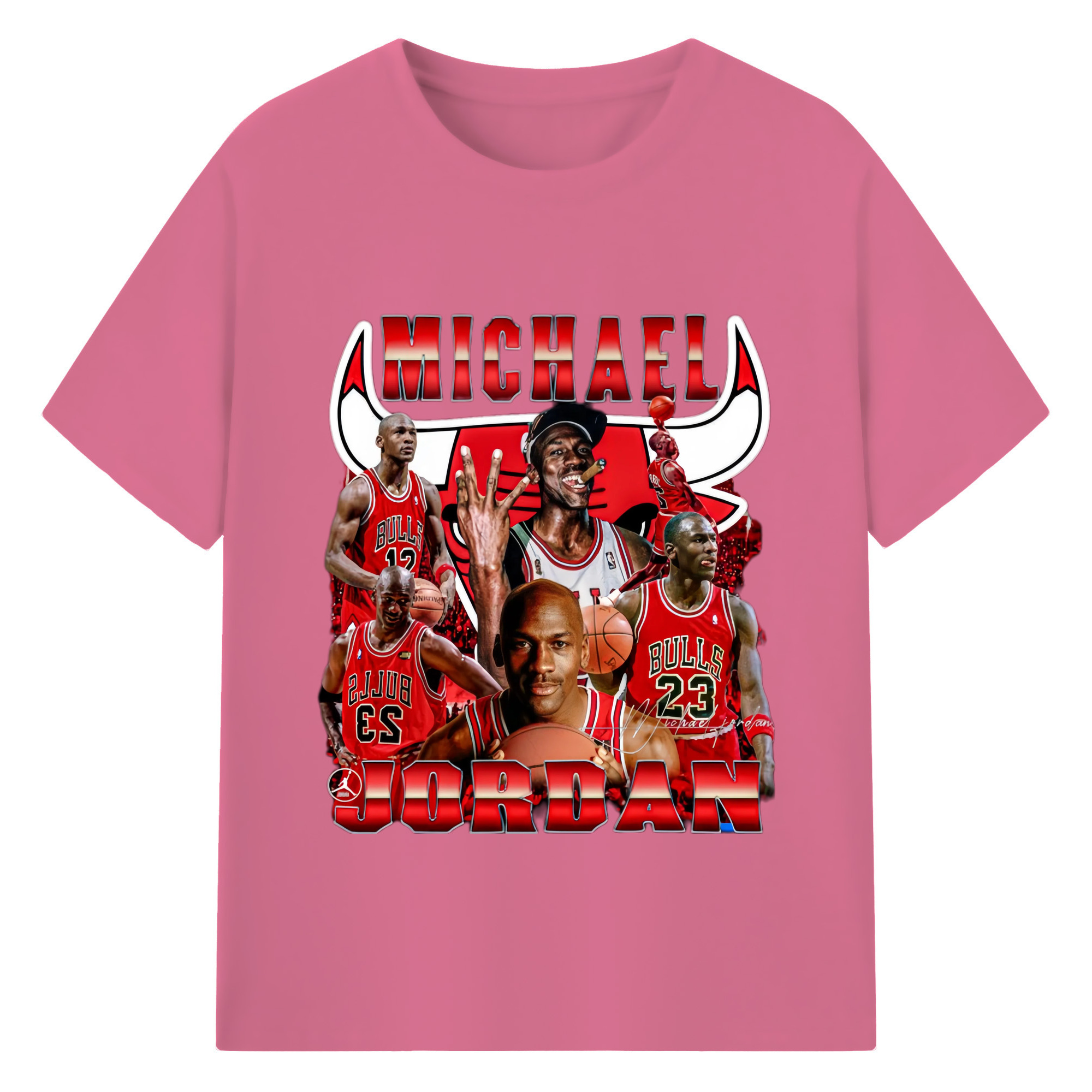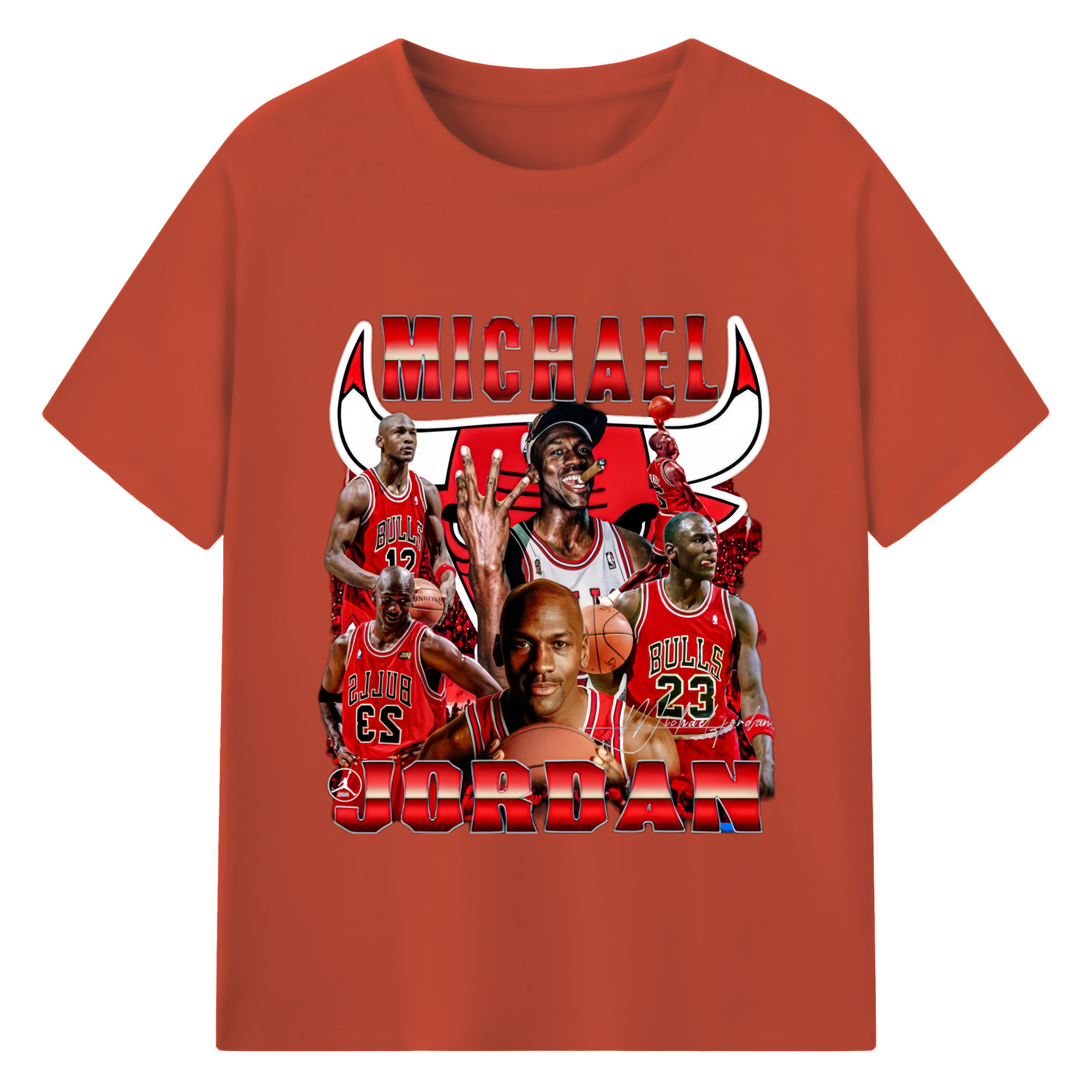 Bulls Michael Jordan #23 Collage graphic T‑Shirt - 180g Cotton T-Shirt With Front Heat Transfer Print – Soft, Lightweight, Fitted Design – Comfortable Casual Wear For Sports & Everyday Use