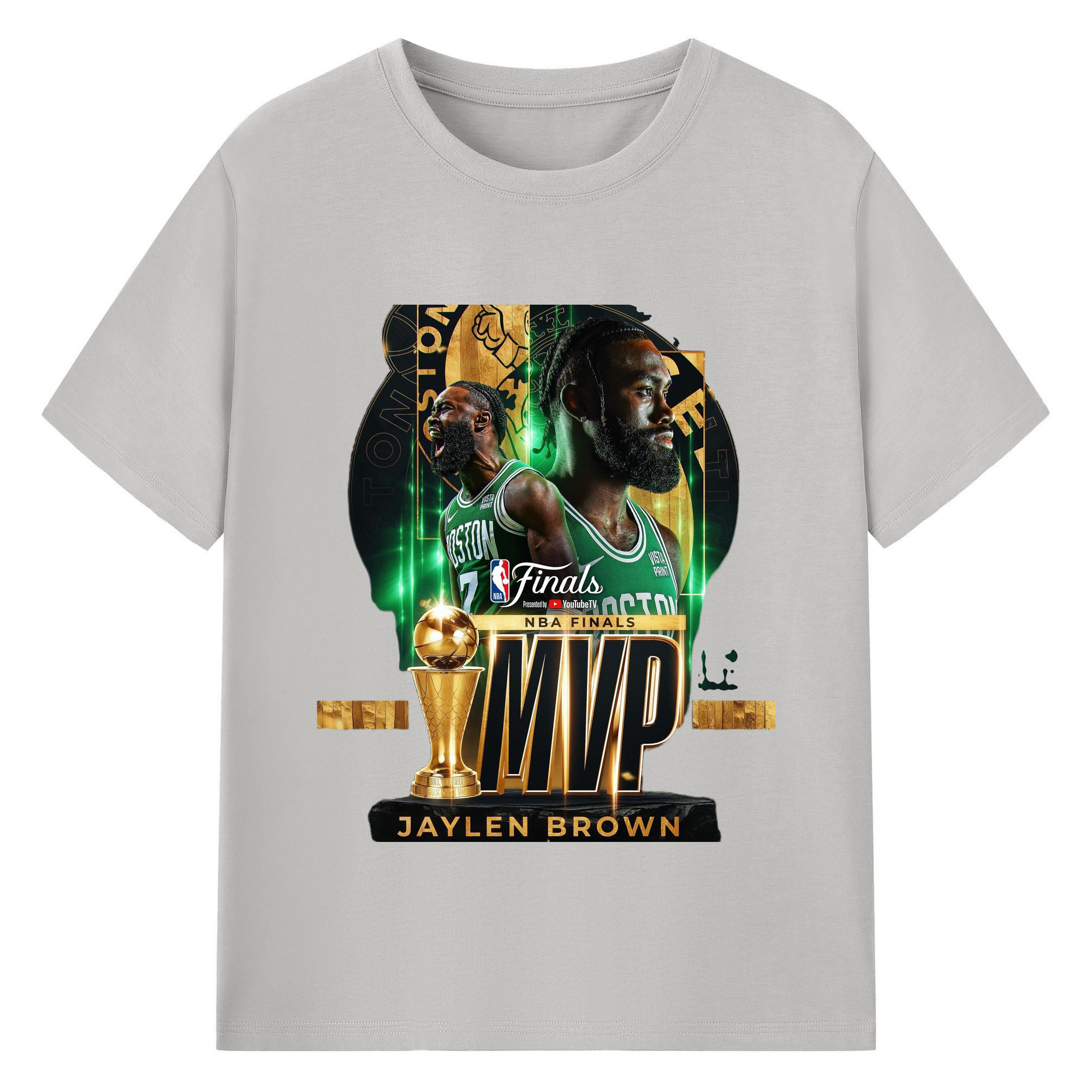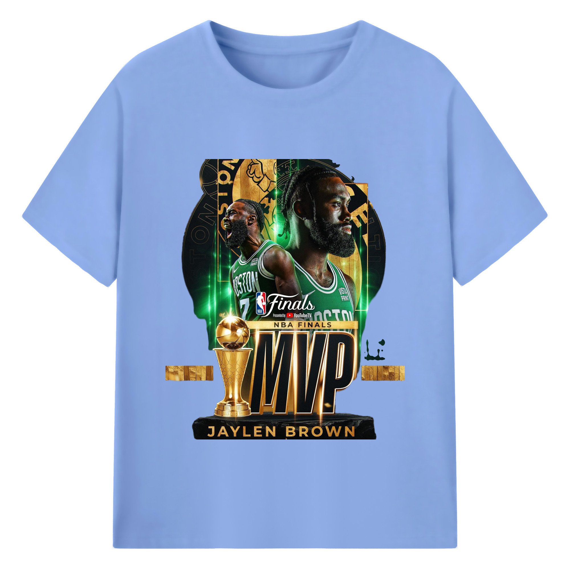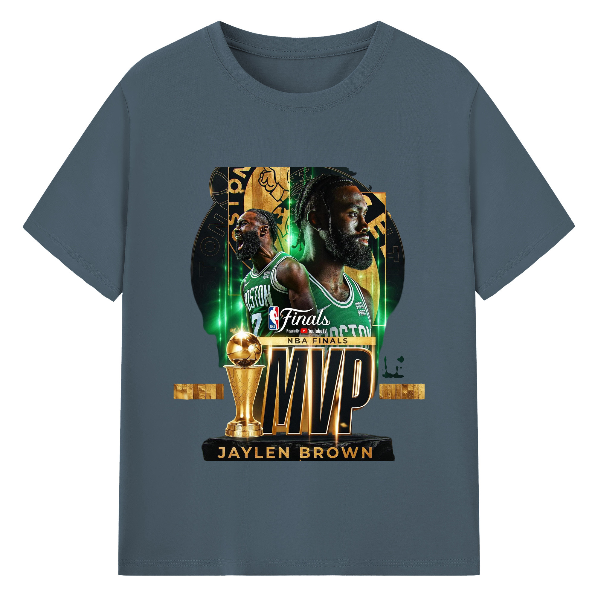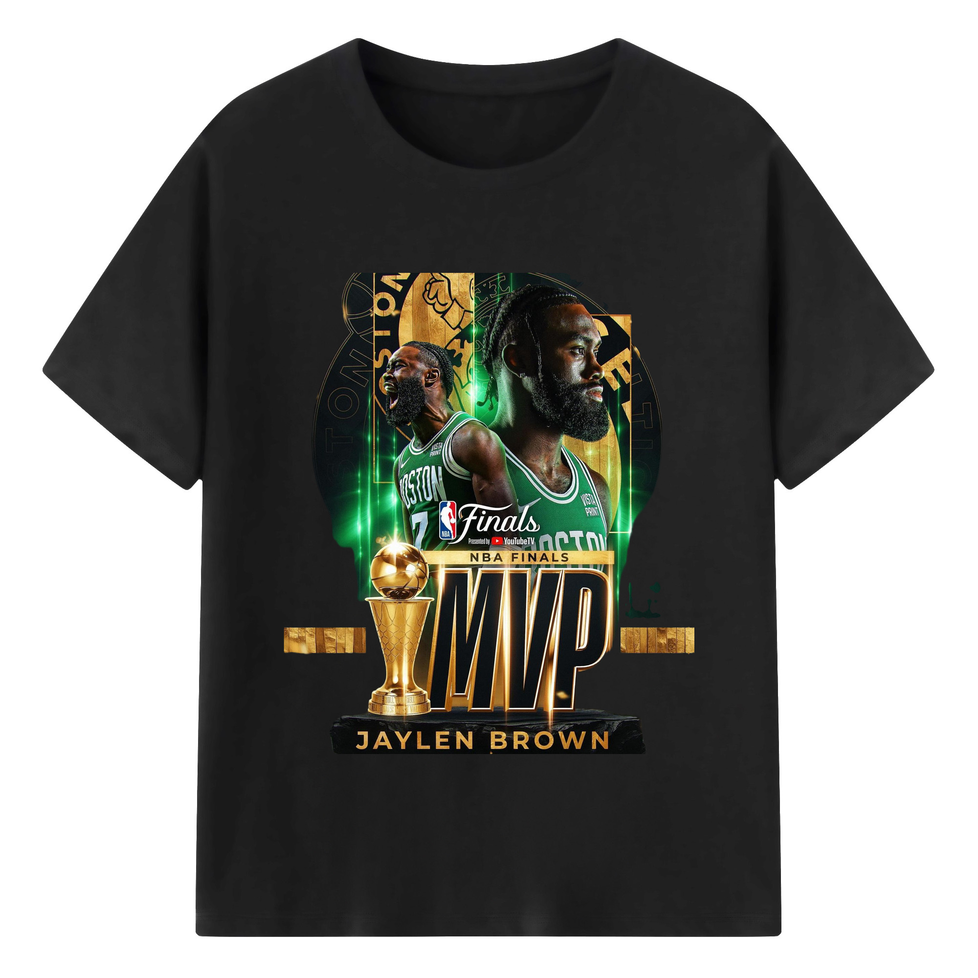 Celtics Jaylen Brown NBA FMVP T-Shirt - 180g Cotton T-Shirt With Front Heat Transfer Print – Soft, Lightweight, Fitted Design – Comfortable Casual Wear For Sports & Everyday Use